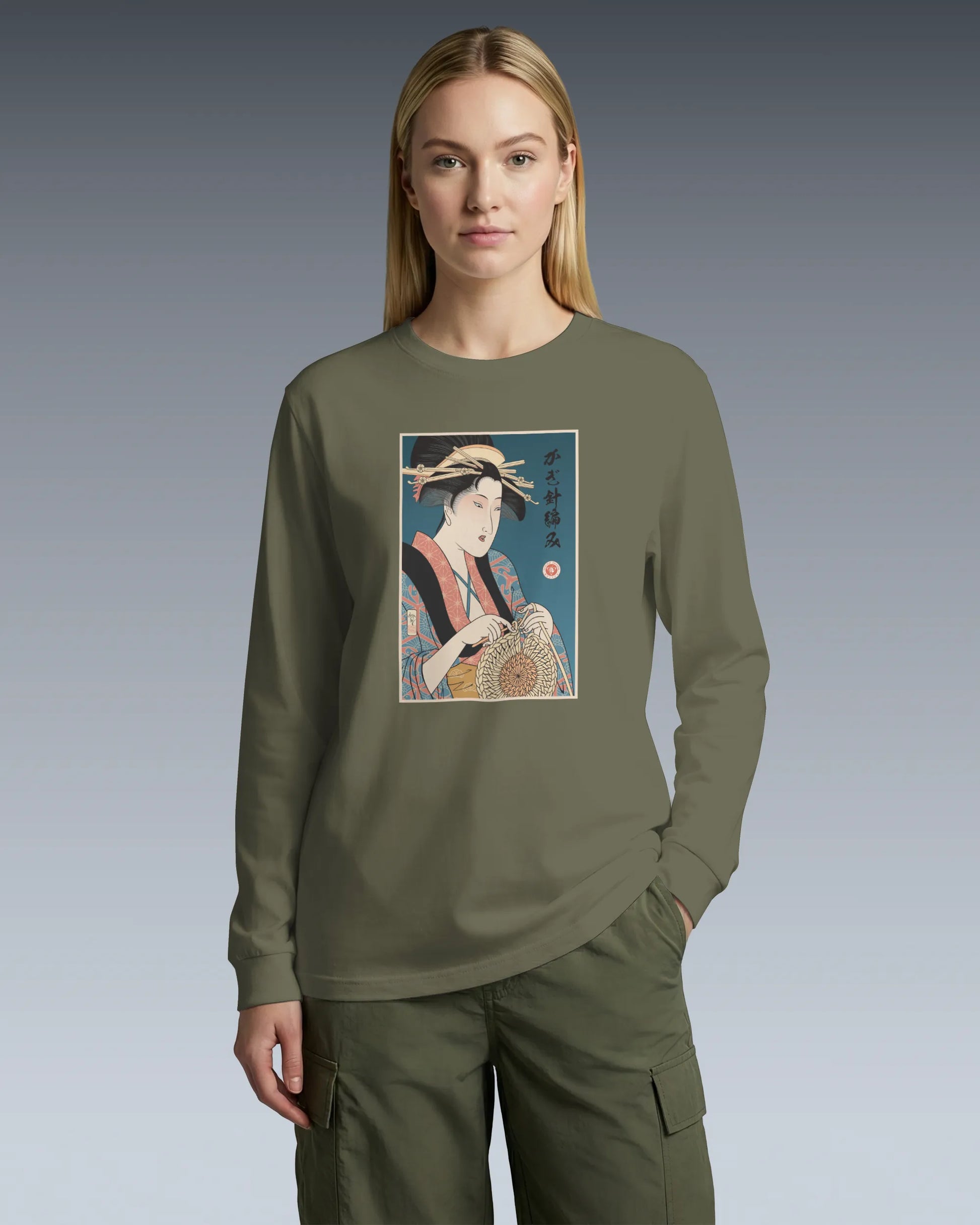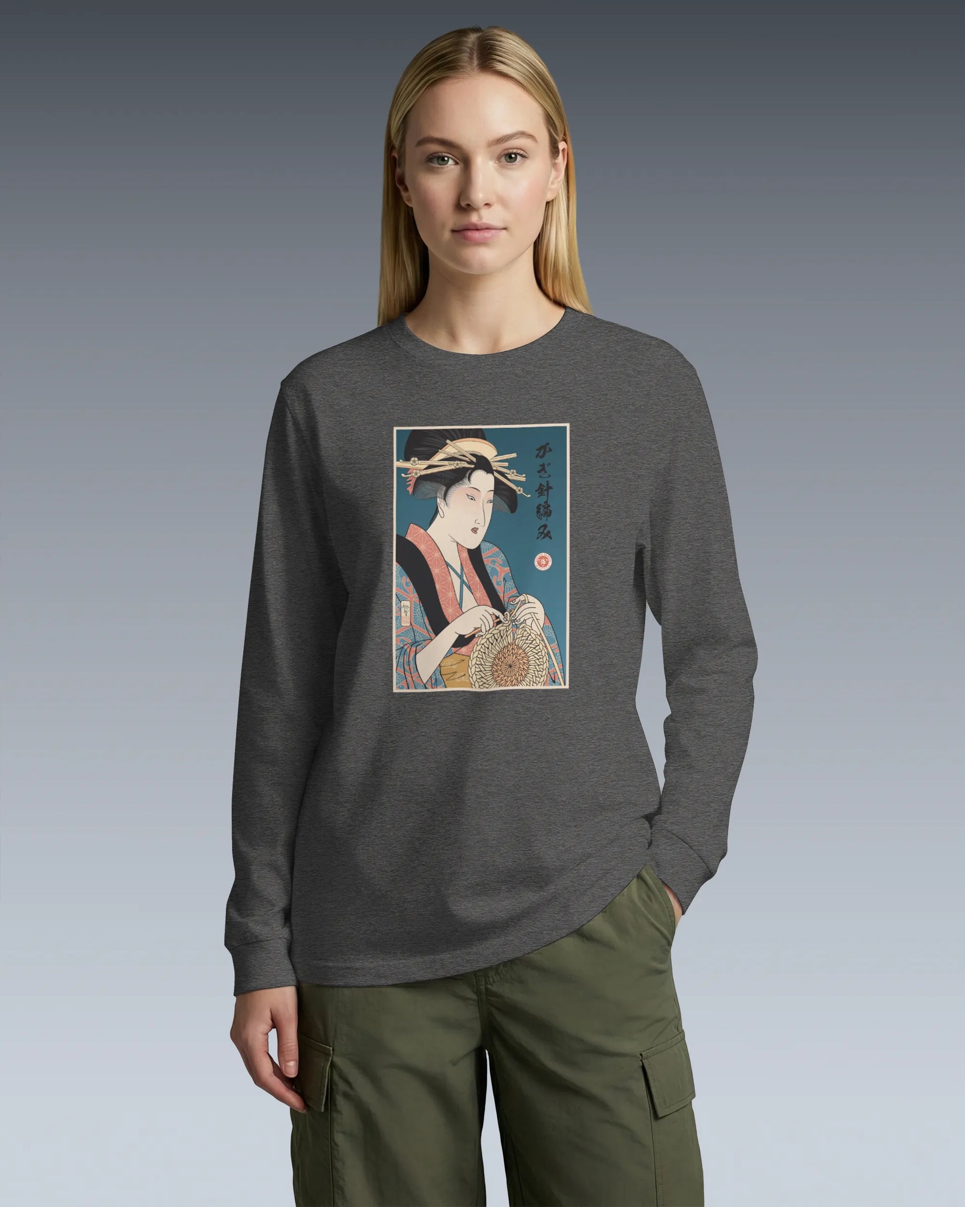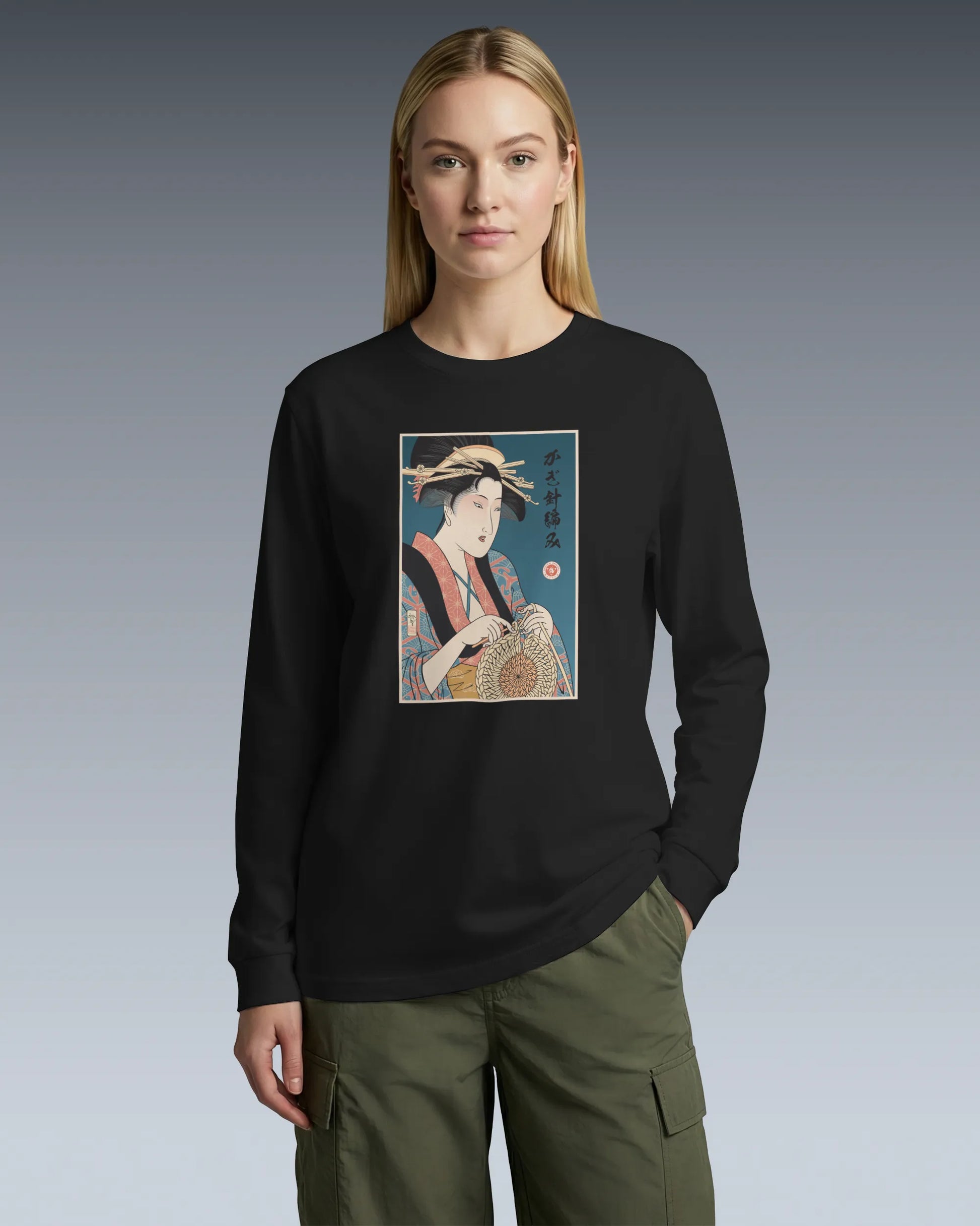 Geisha Crochet Mom Ukiyo-e Unisex Long Sleeve Tee