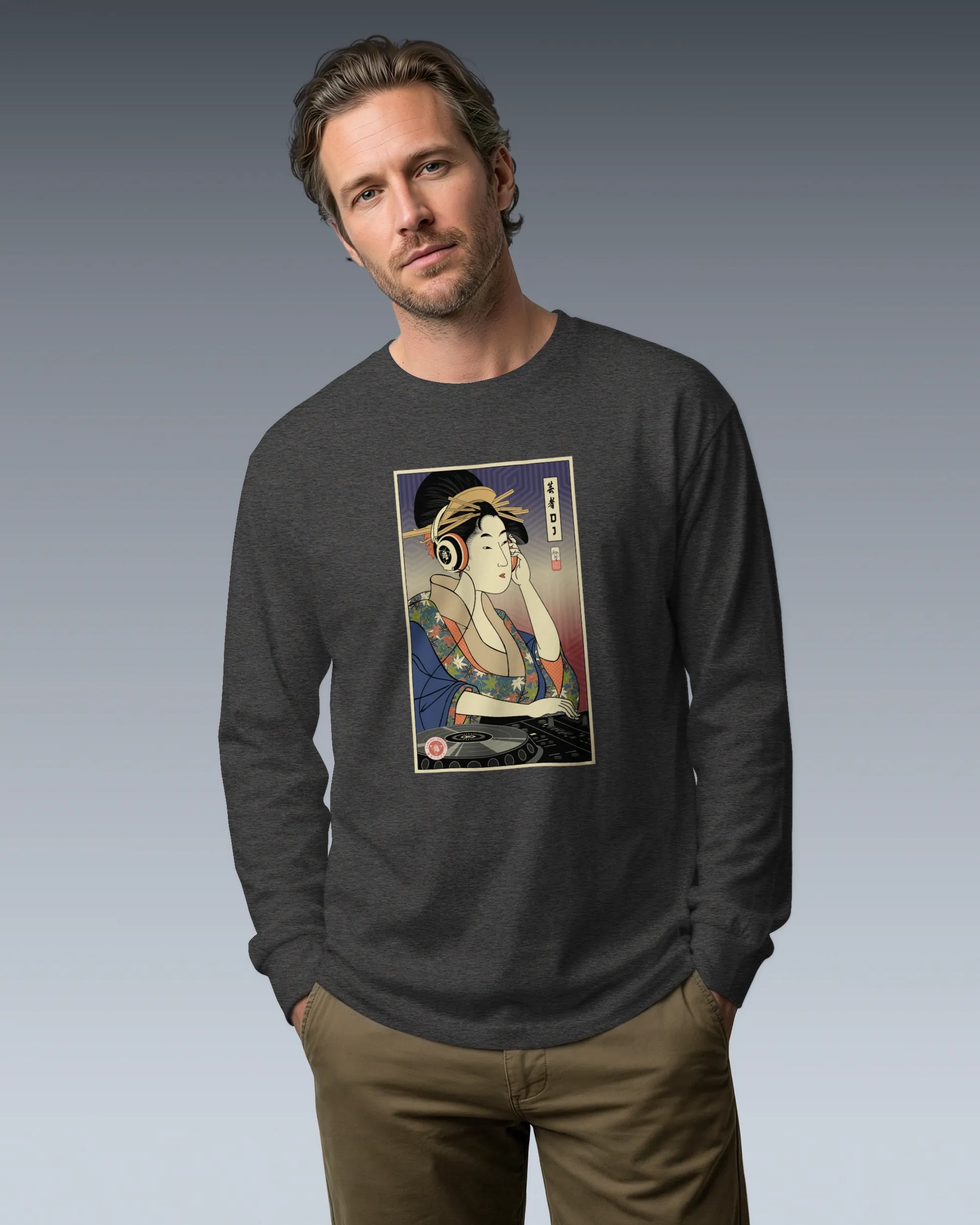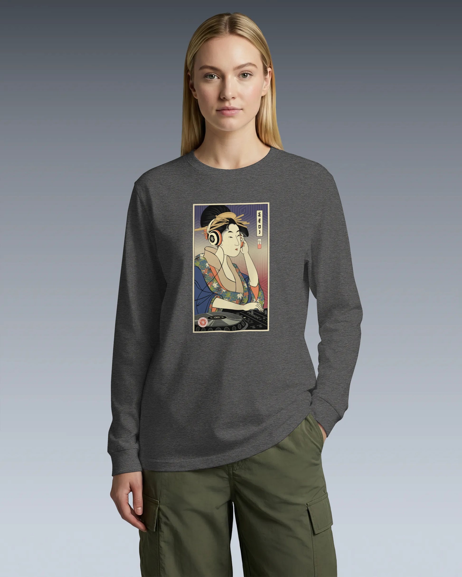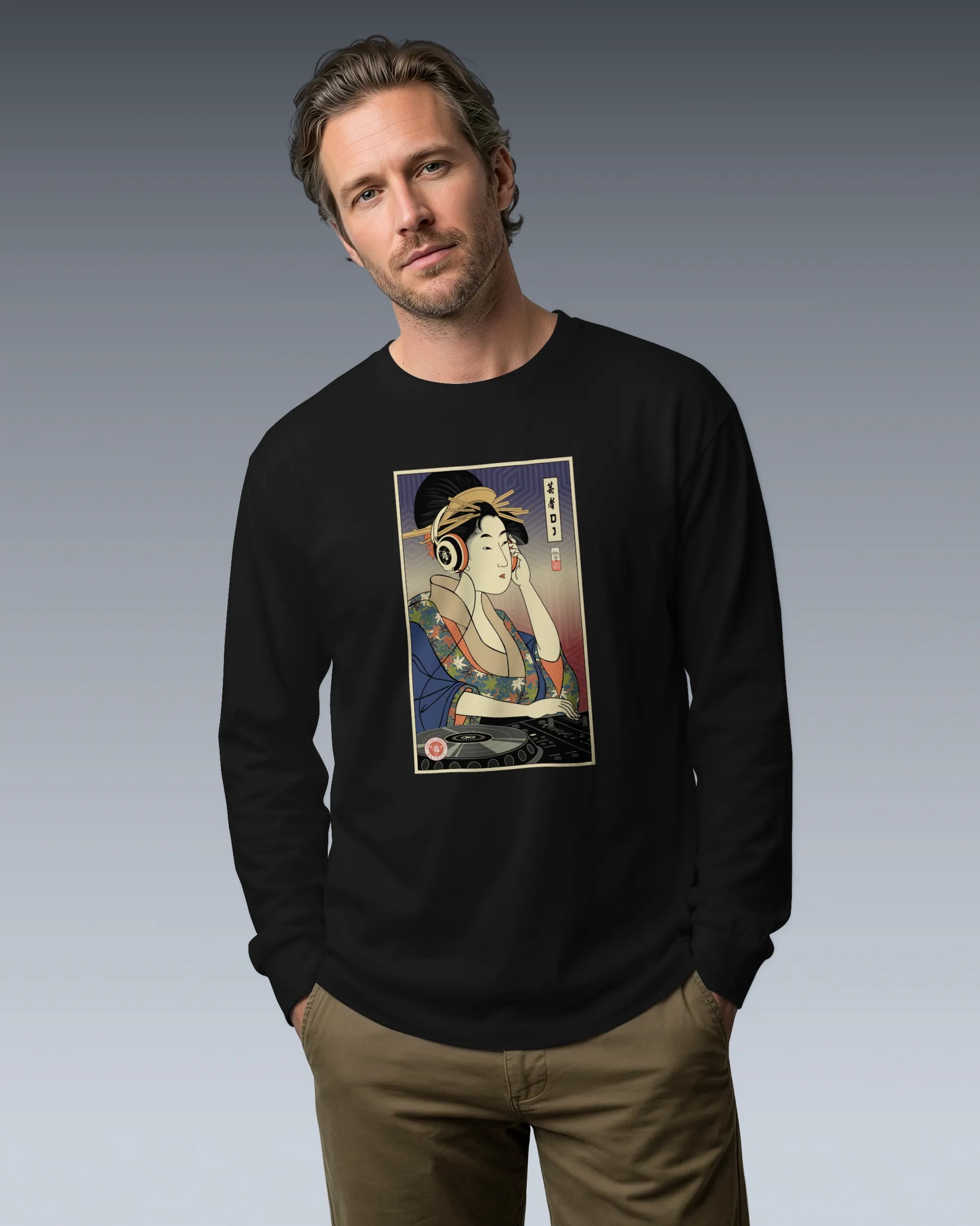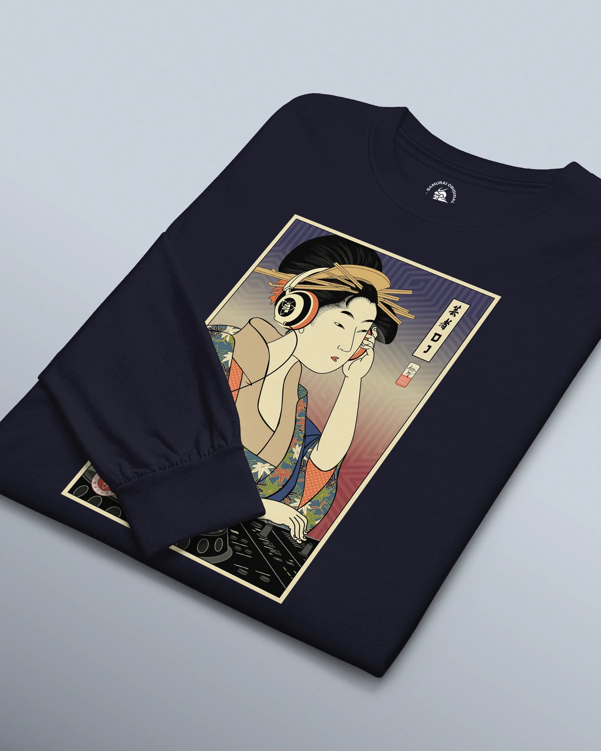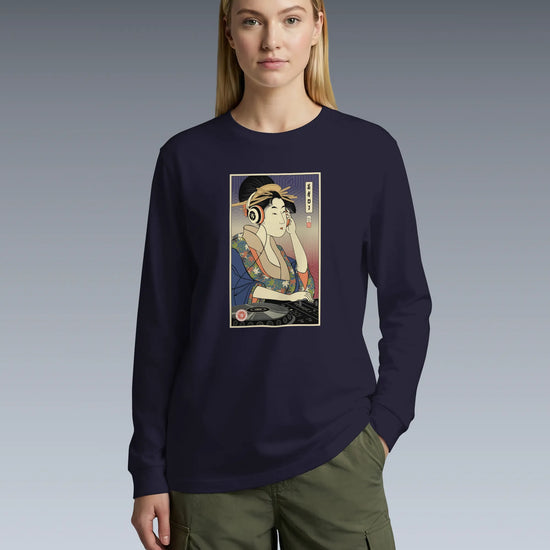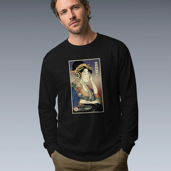 Geisha DJ Music Ukiyo-e Unisex Long Sleeve Tee