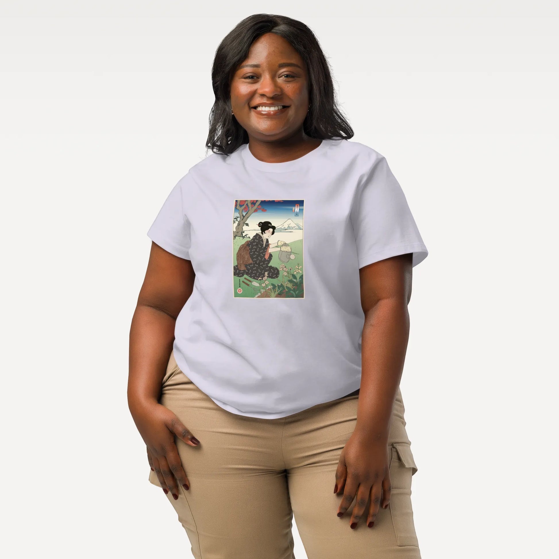 Grow in style with our Geisha Gardening Ukiyo-e Women’s Organic T-shirt! Soft, eco-friendly cotton with a nature-inspired design. Shop now!