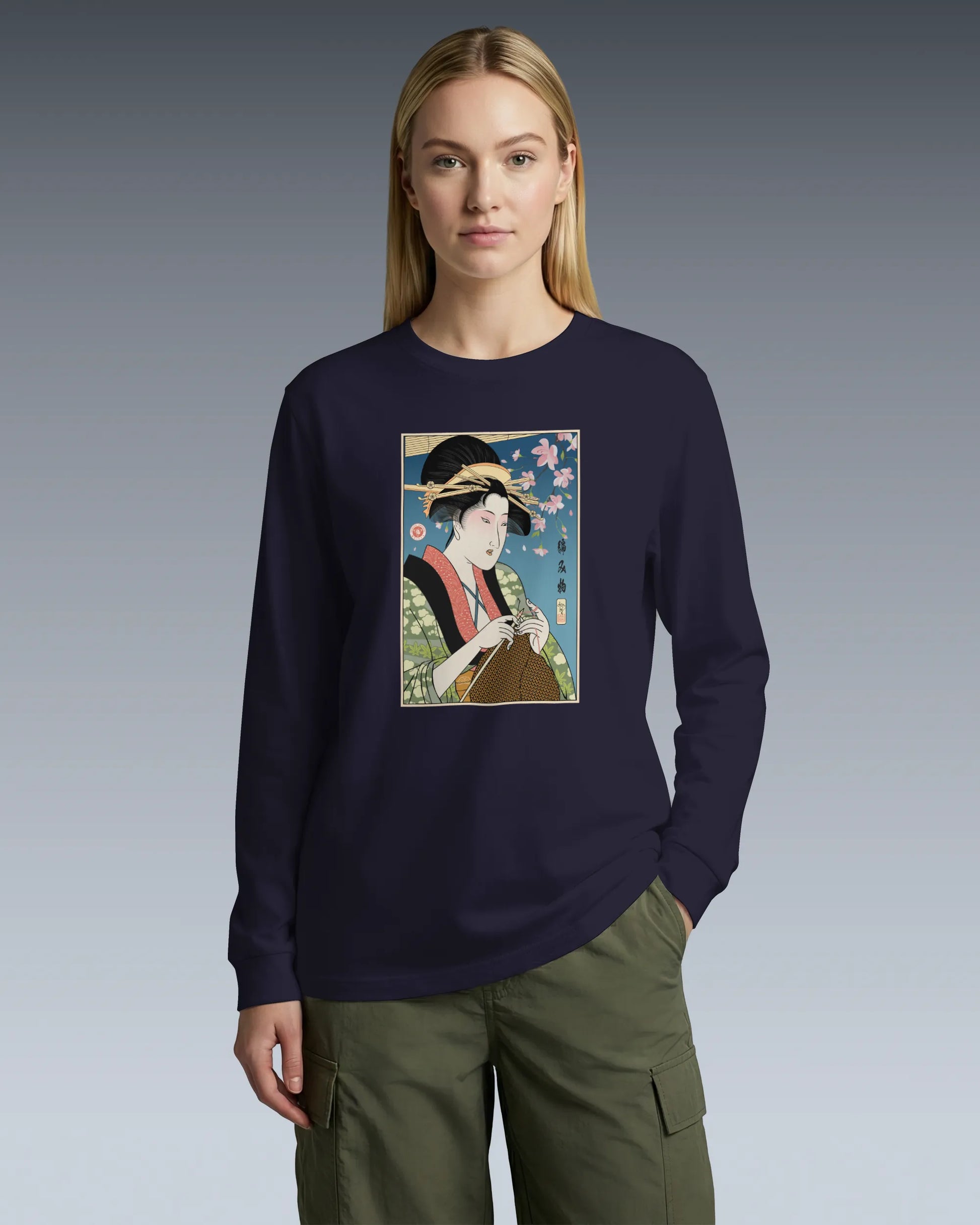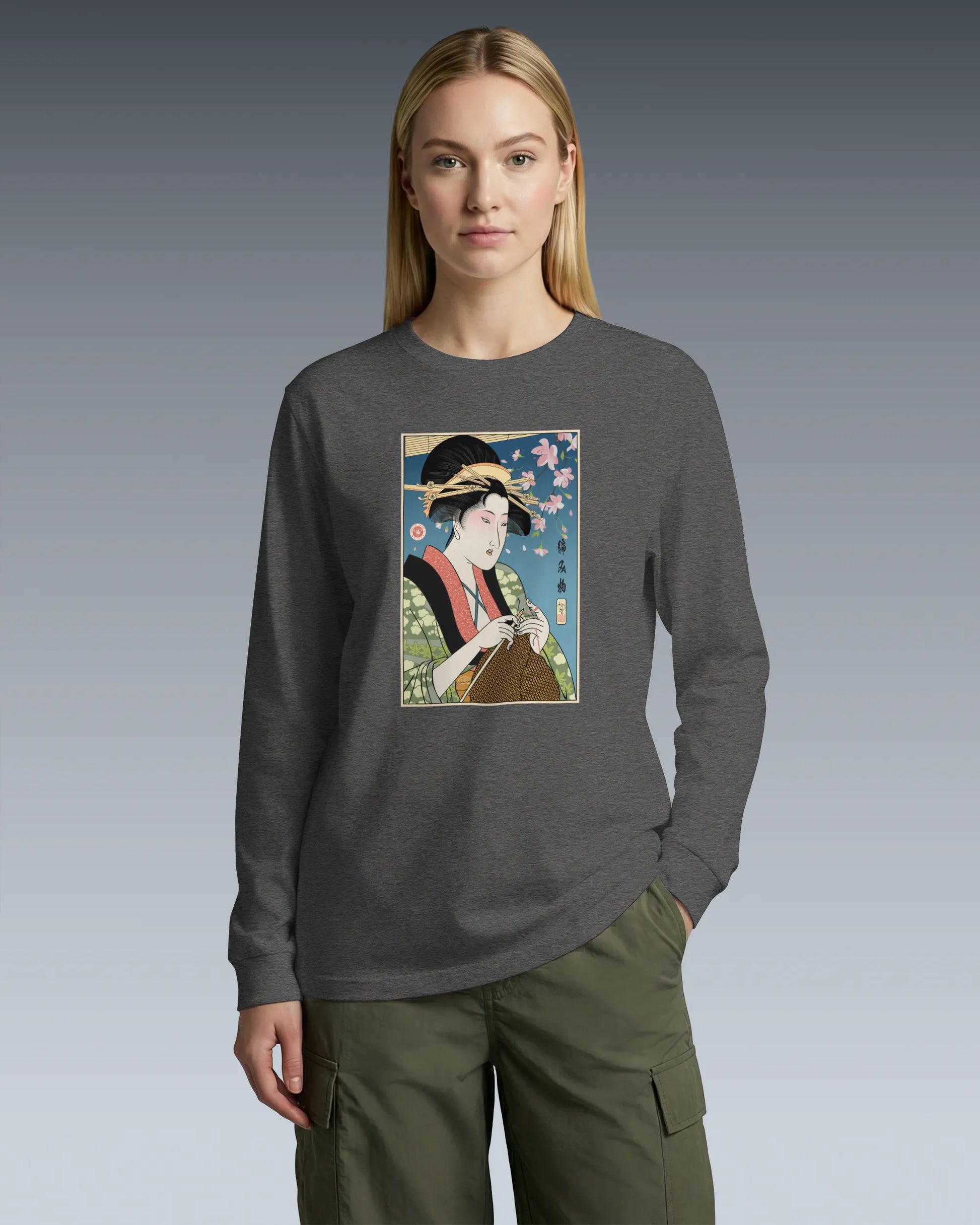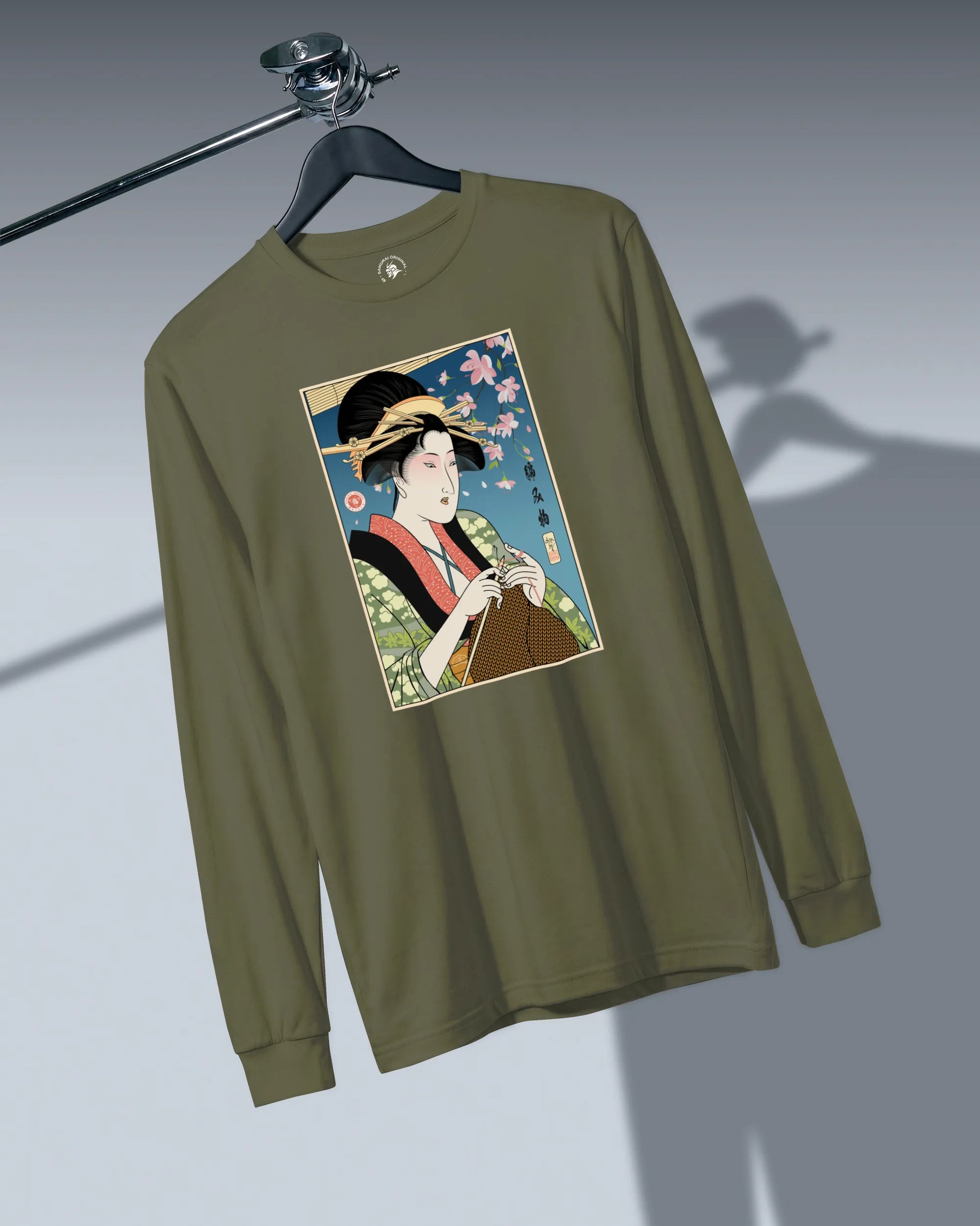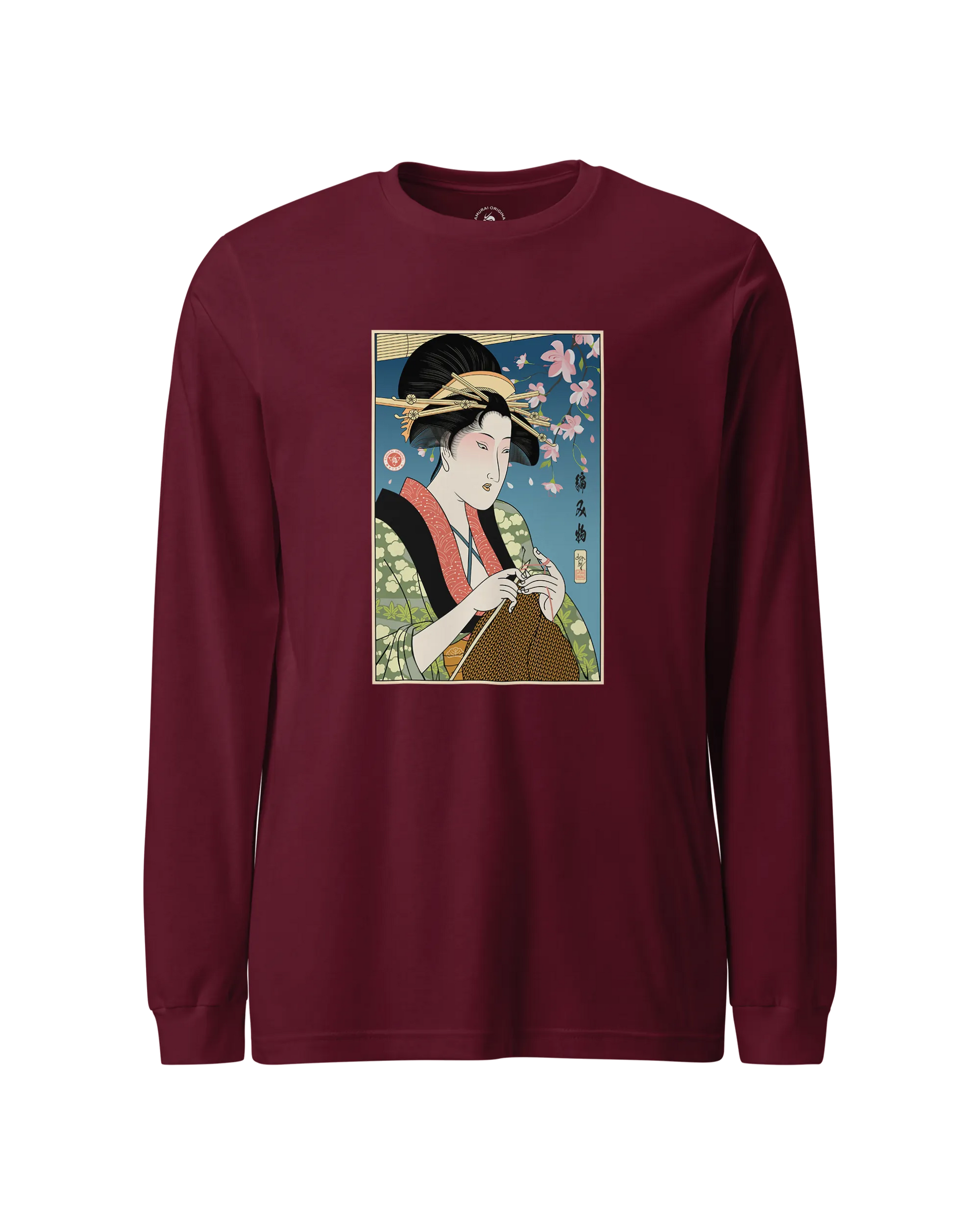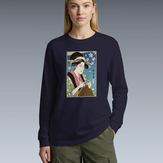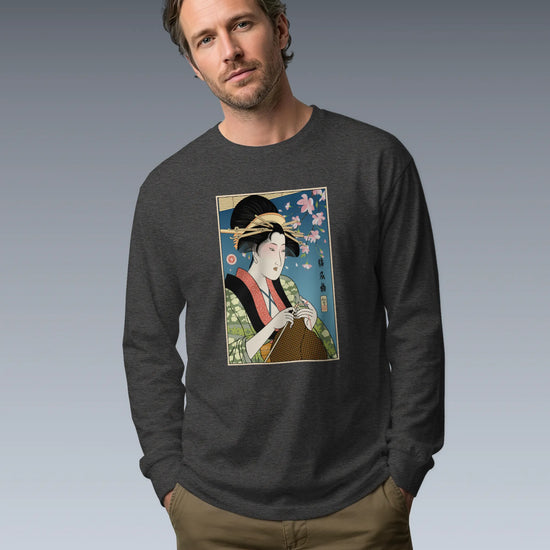Geisha Knitting Mom Ukiyo-e Unisex Long Sleeve Tee No.2