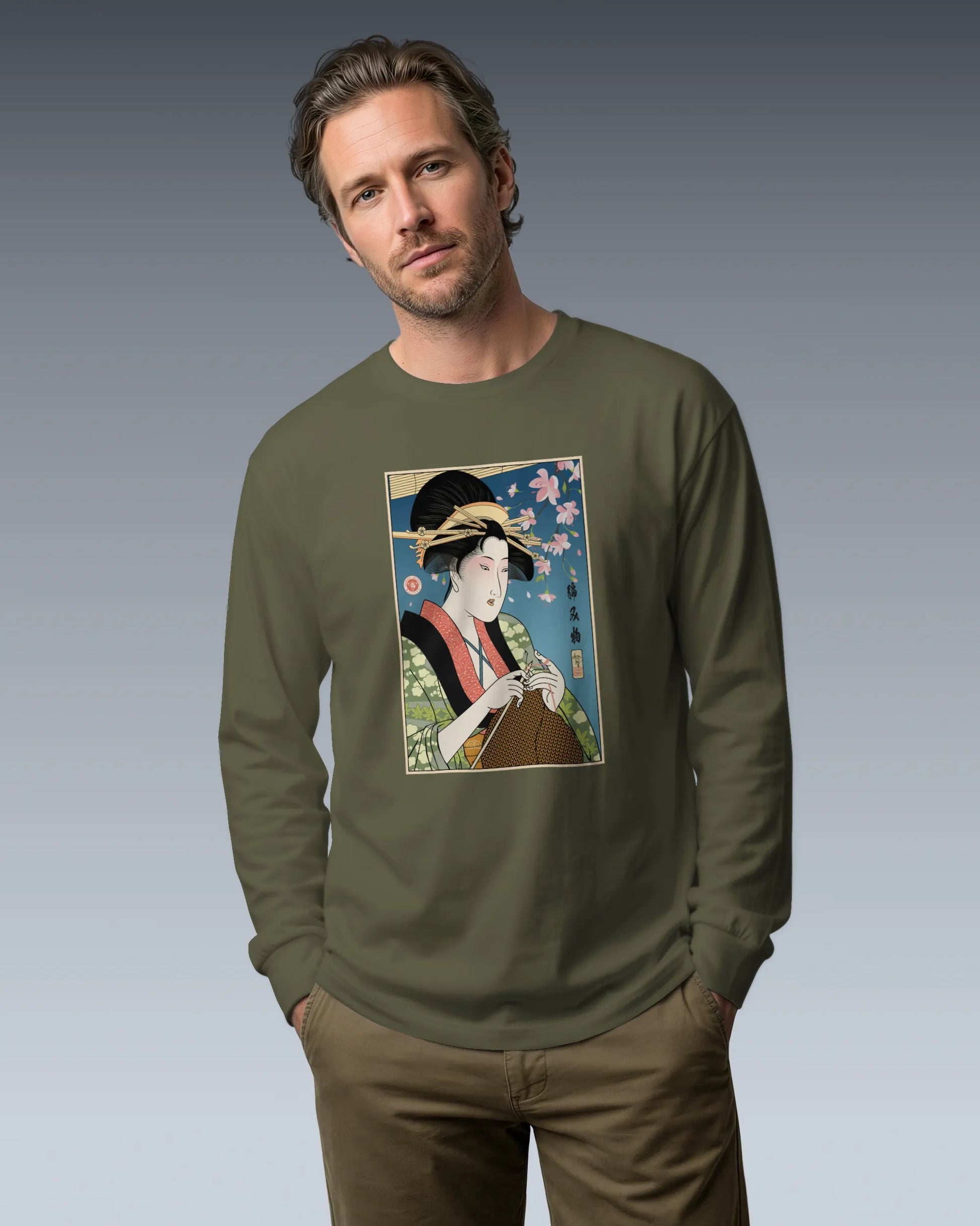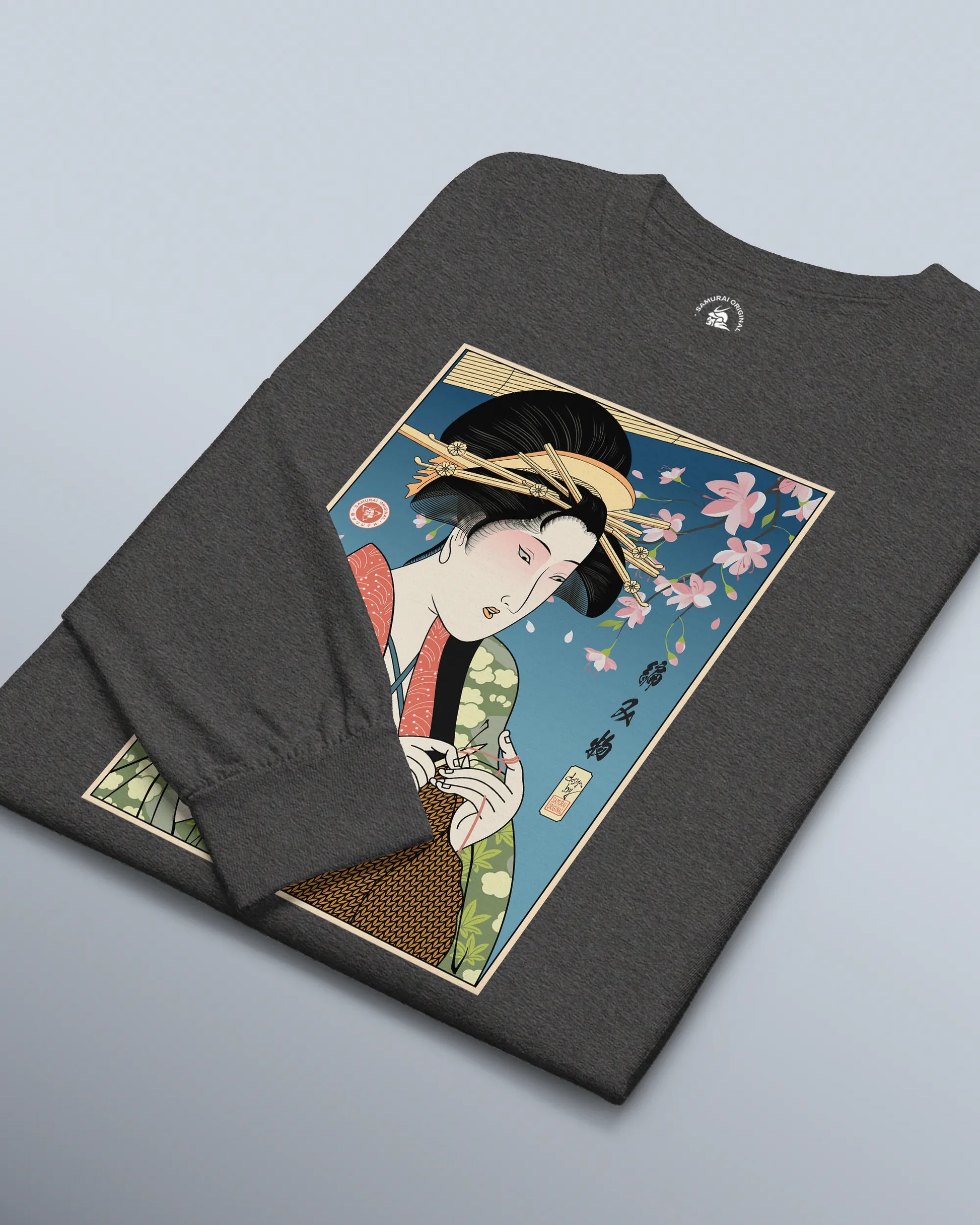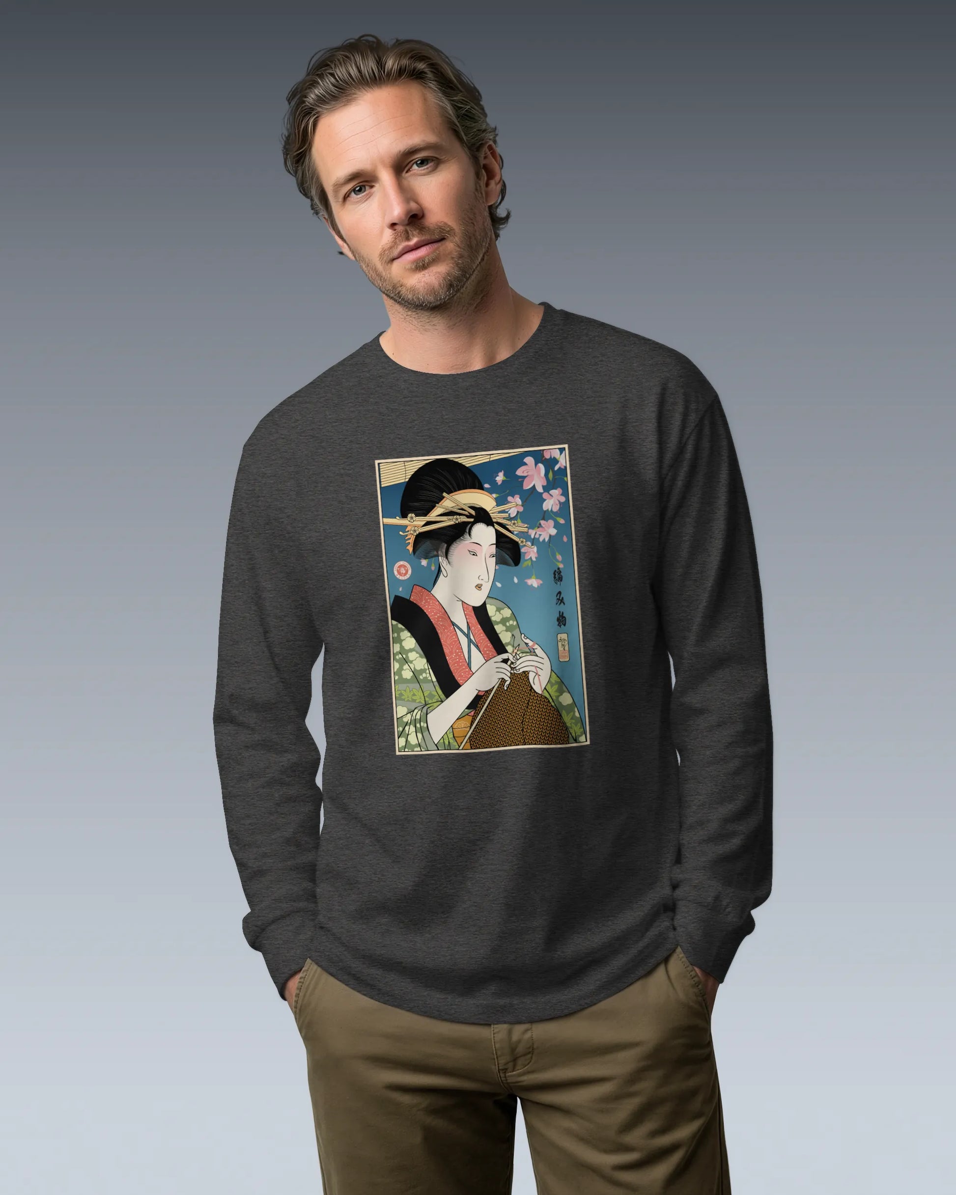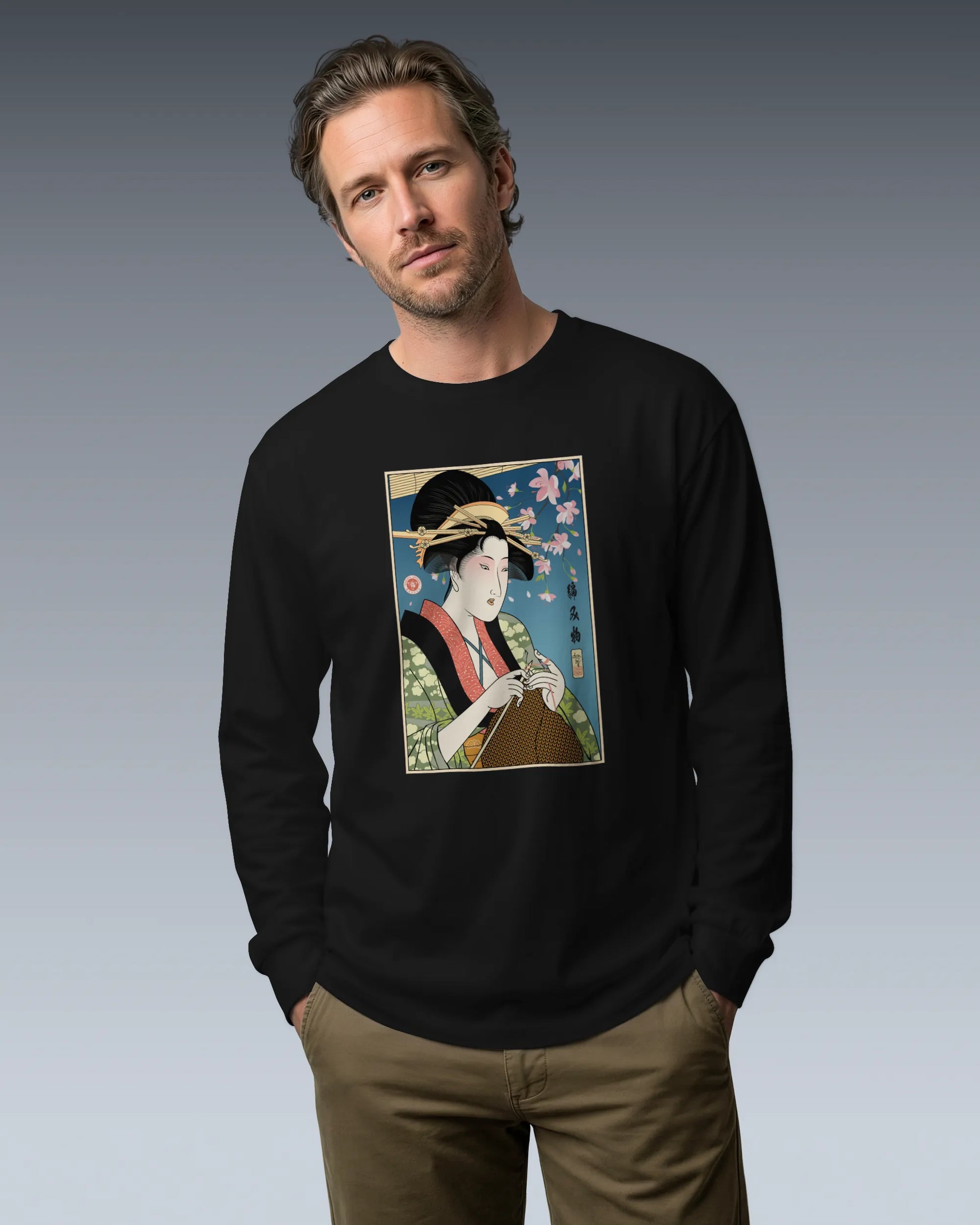 Geisha Knitting Mom Ukiyo-e Unisex Long Sleeve Tee No.2