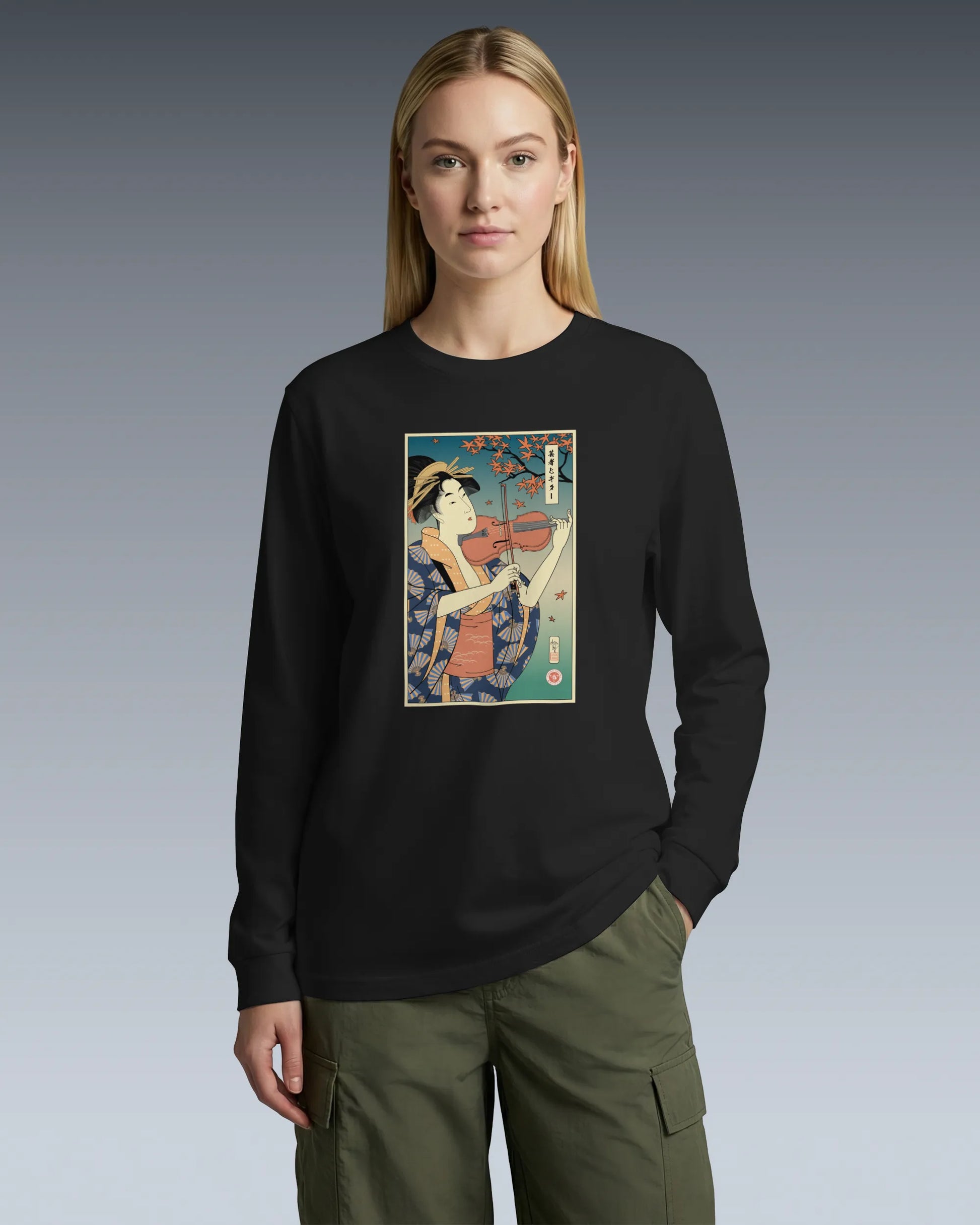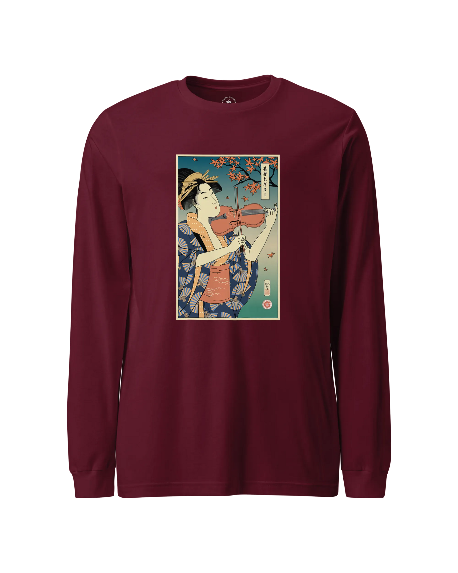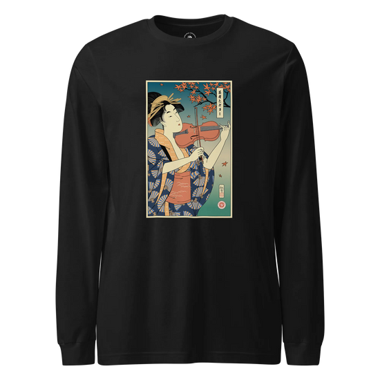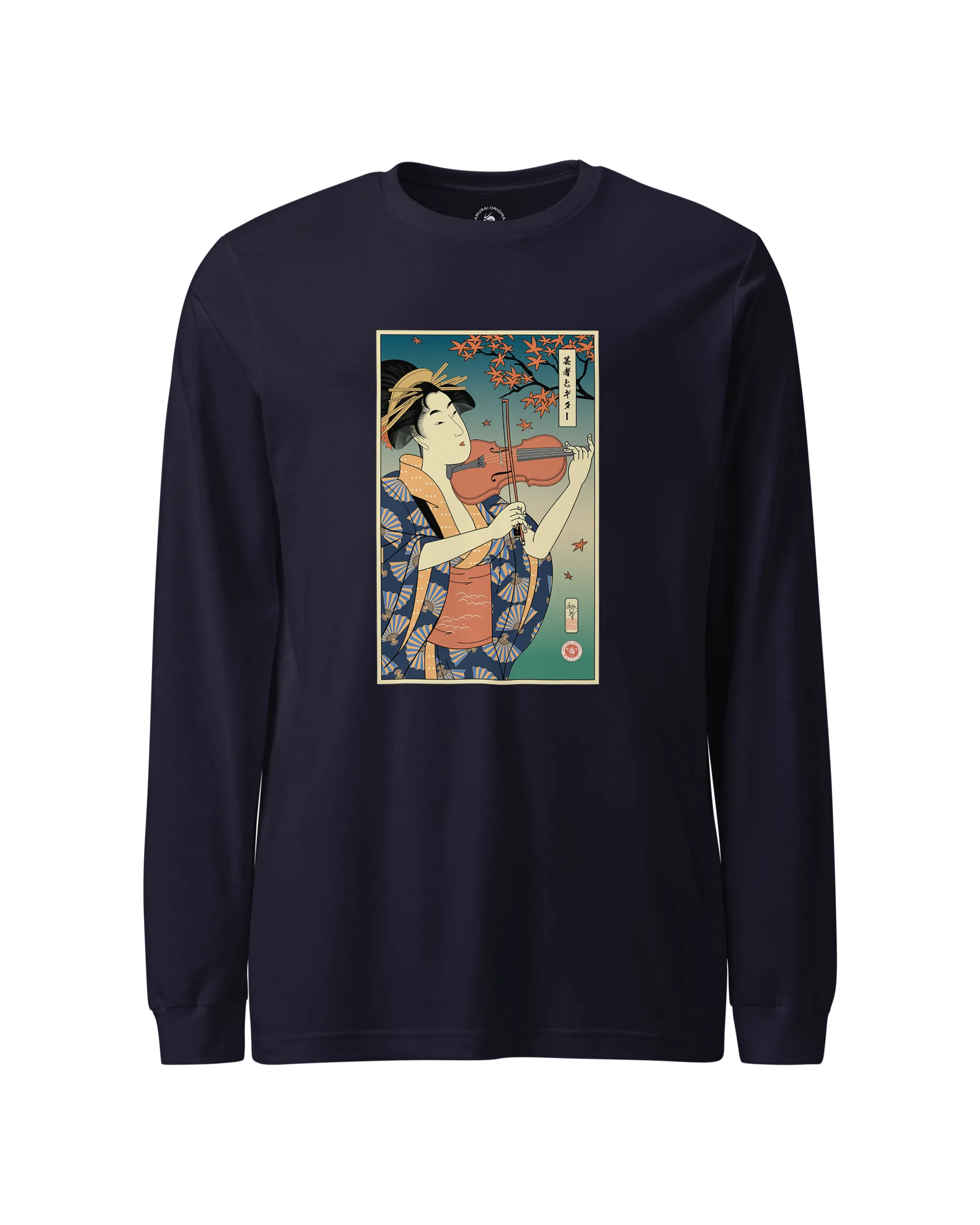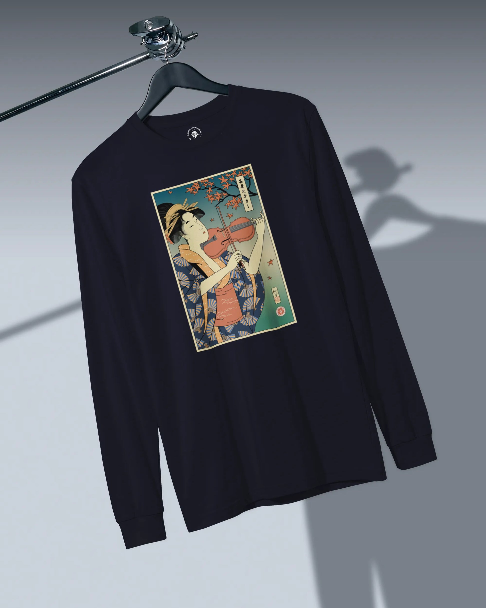 Geisha Violin Music Ukiyo-e Unisex Long Sleeve Tee