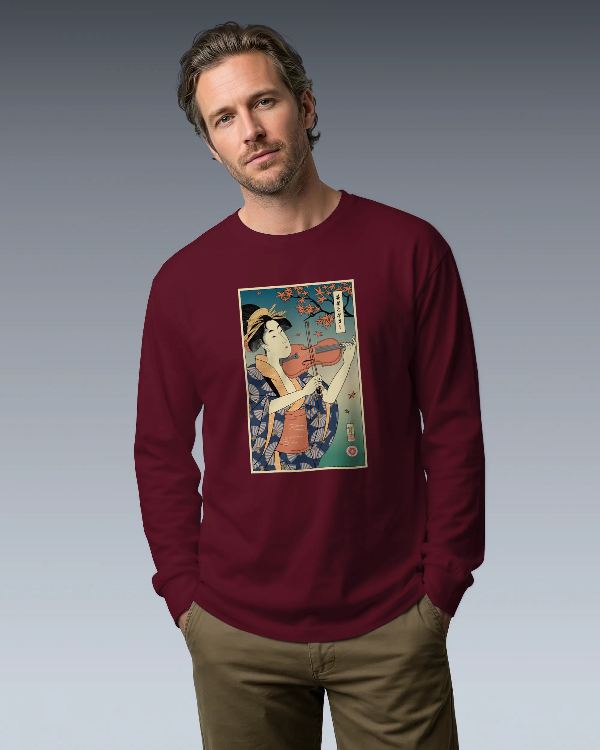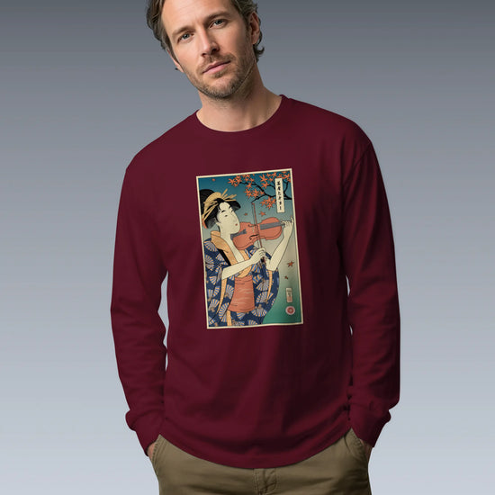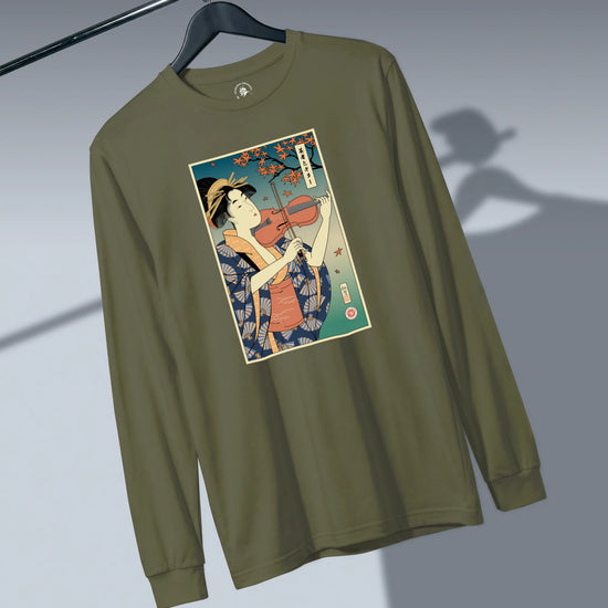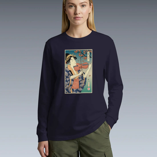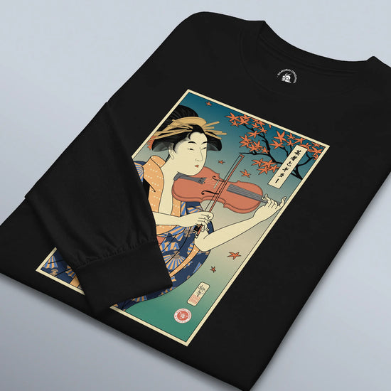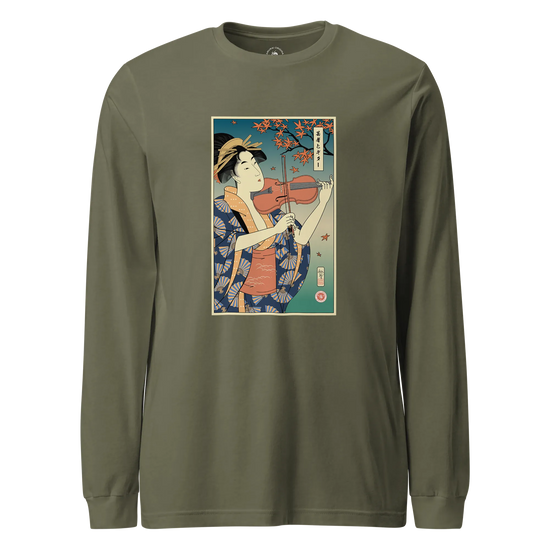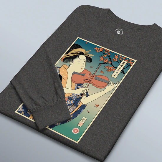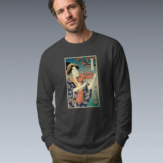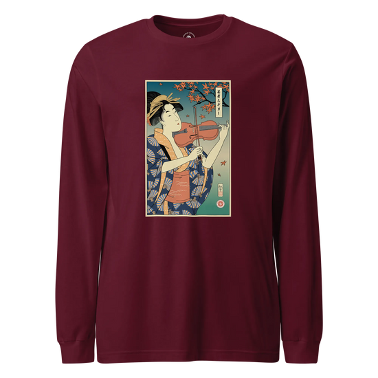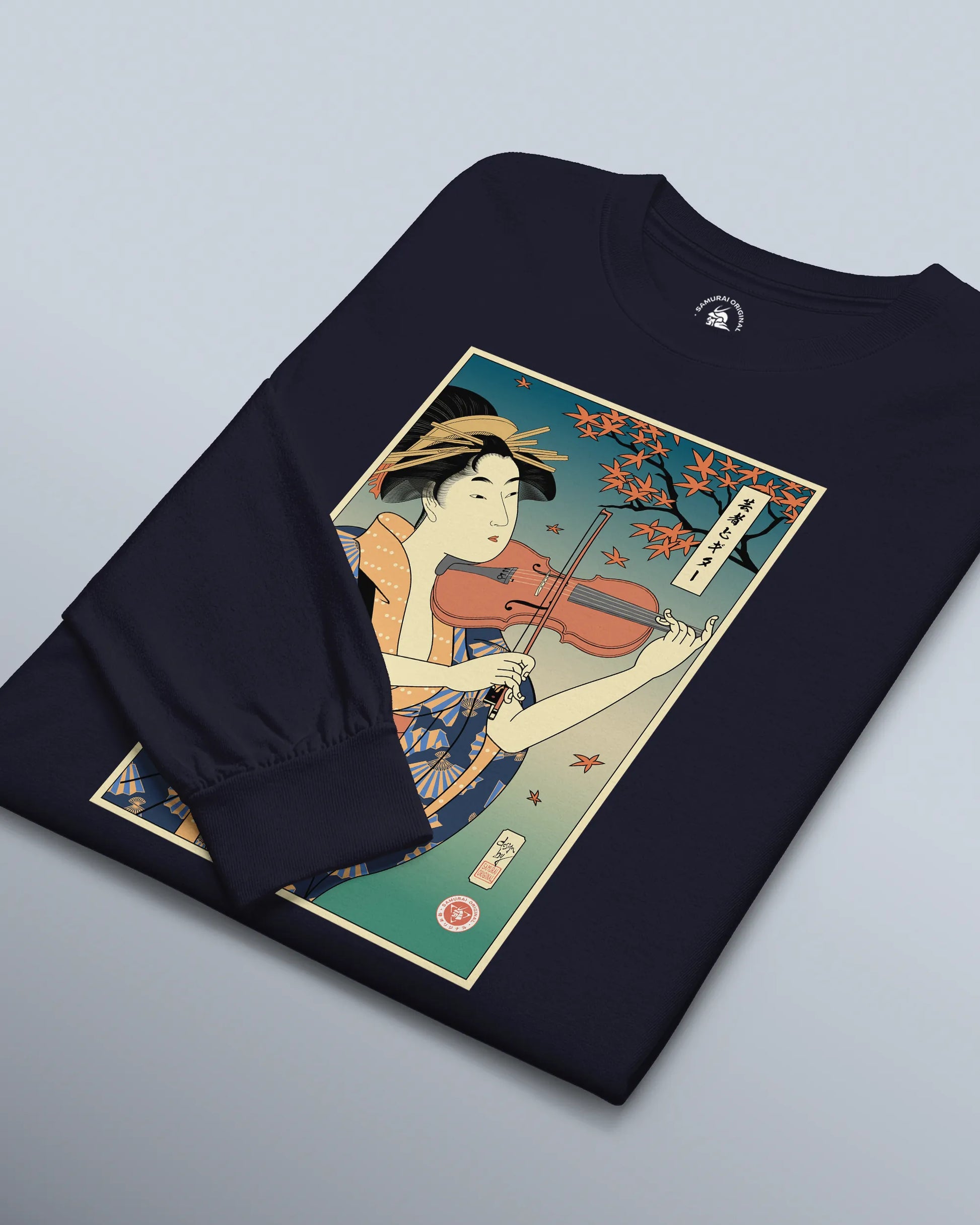 Geisha Violin Music Ukiyo-e Unisex Long Sleeve Tee