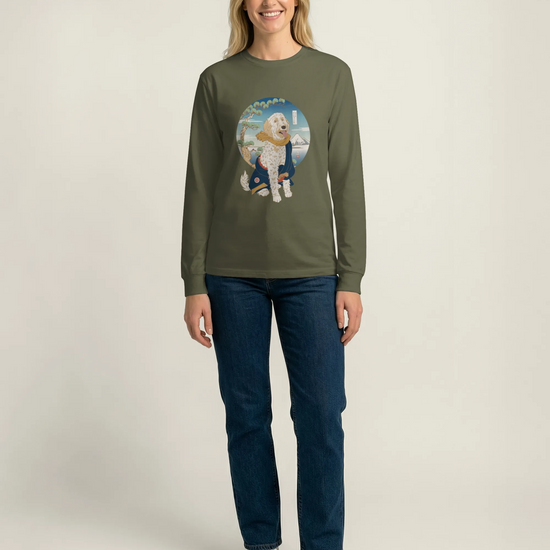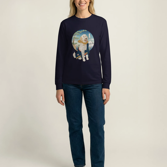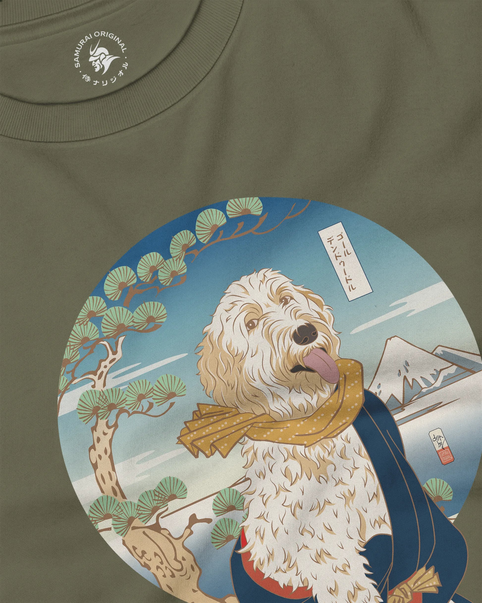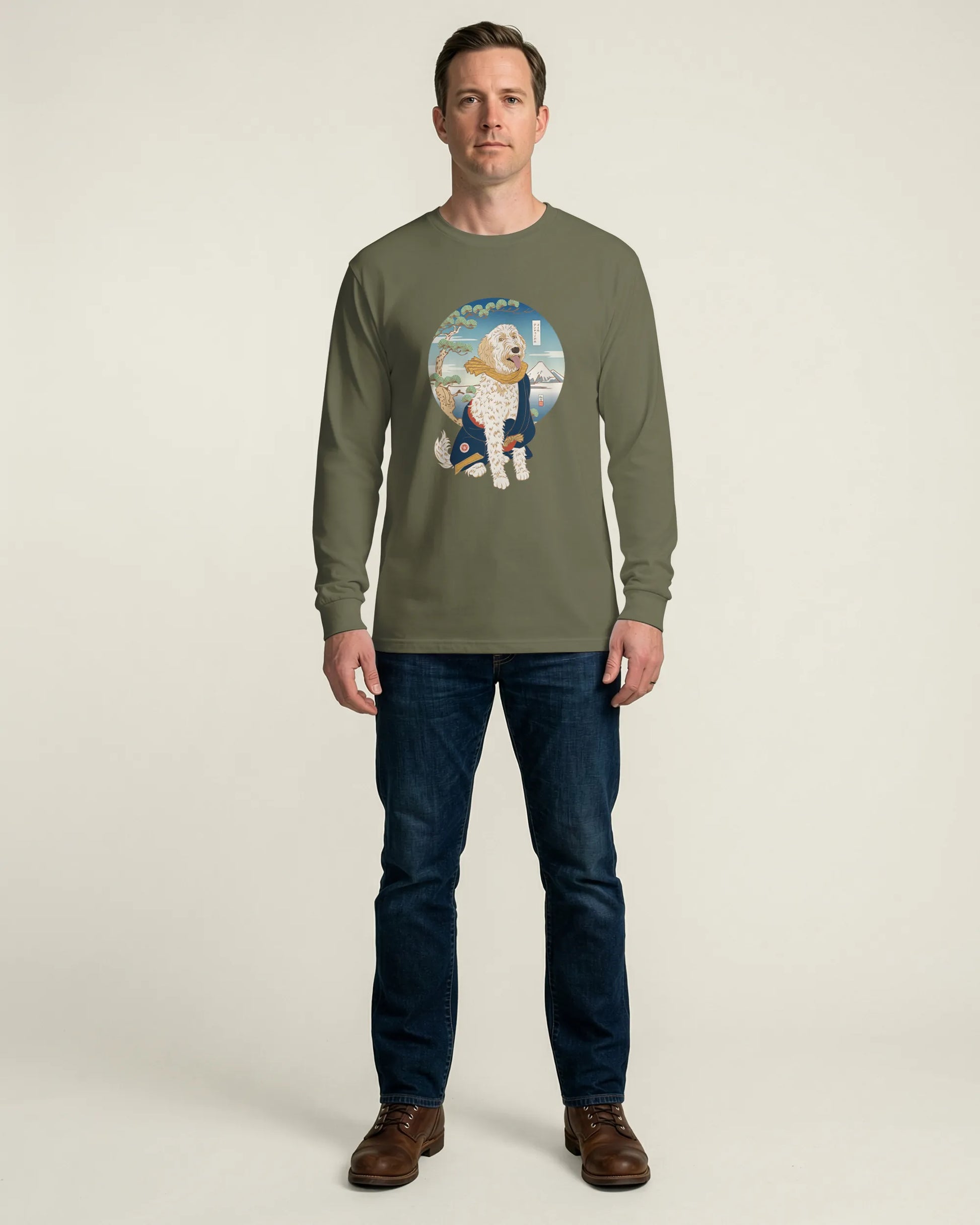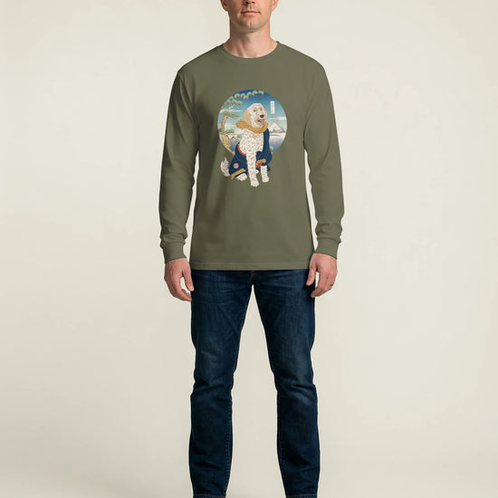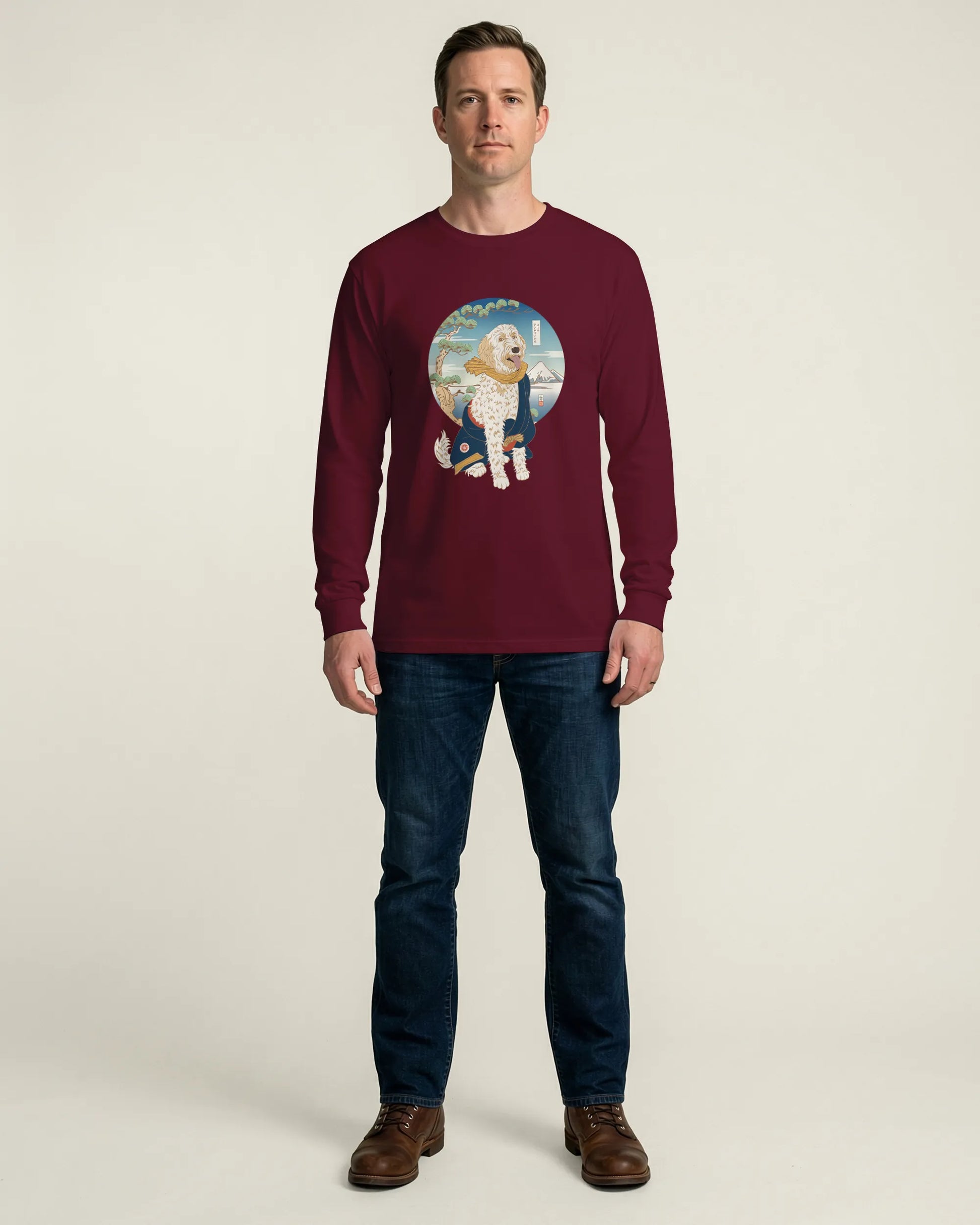 Golden Doodle Dog Funny Japanese Ukiyo-e Unisex Long Sleeve Tee 2