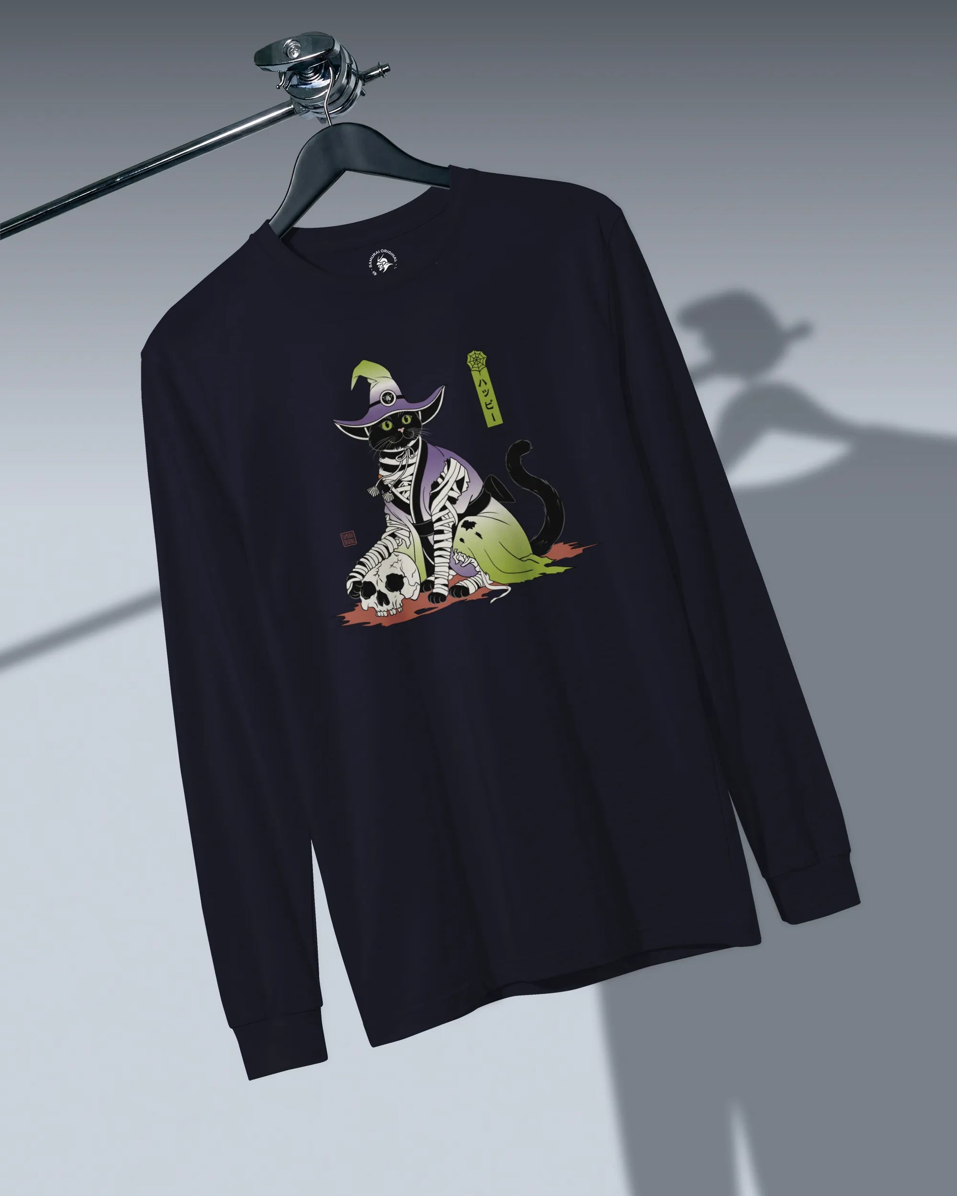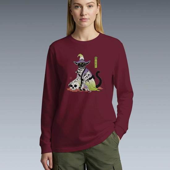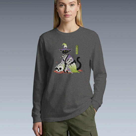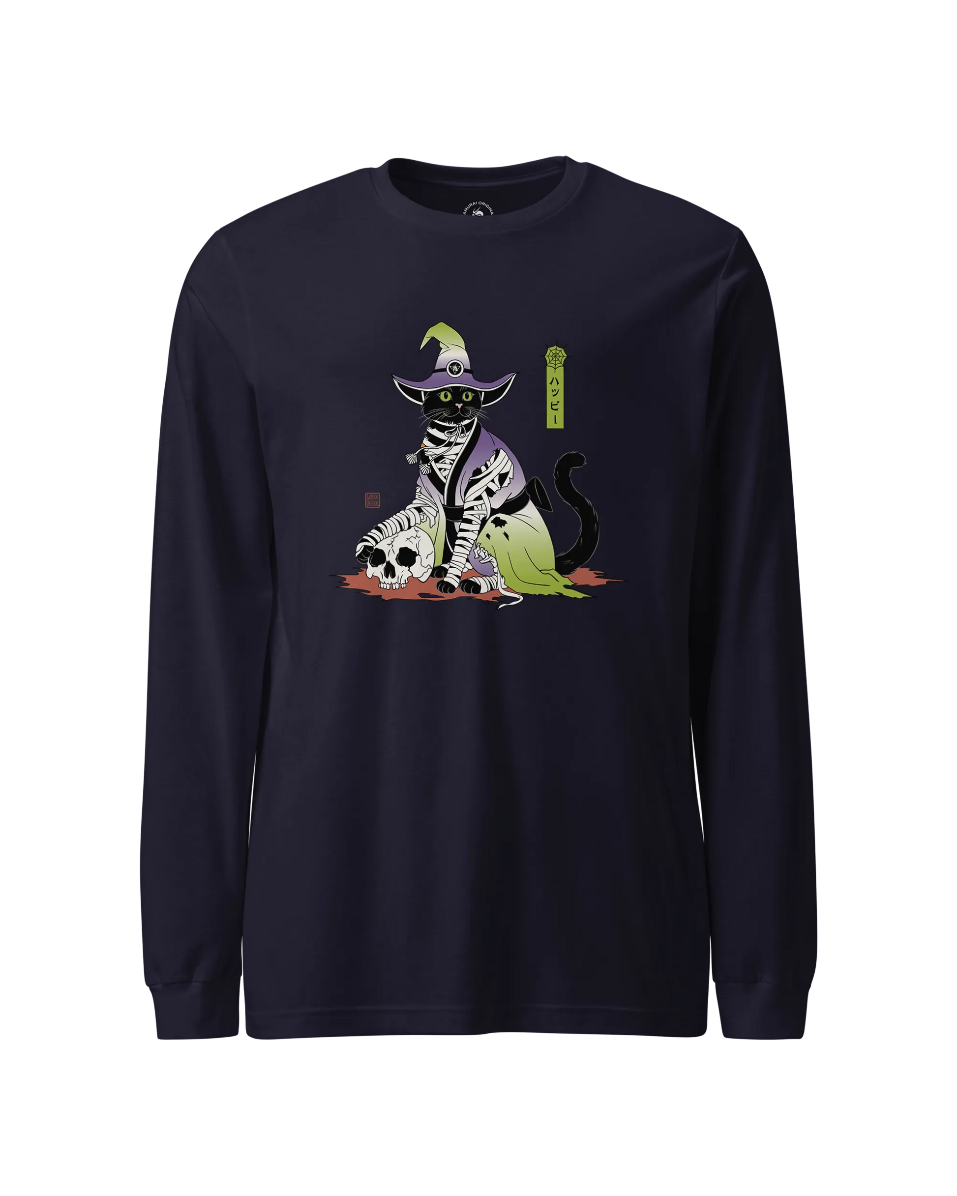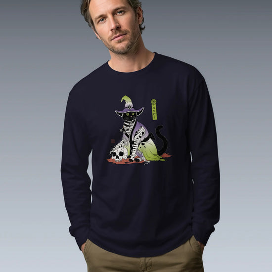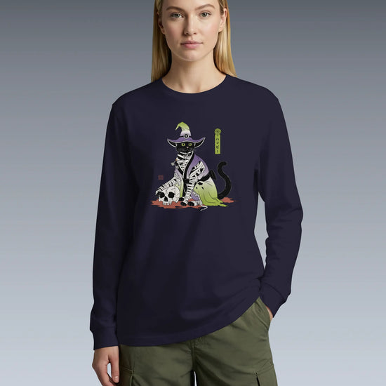 Halloween Black Cat Ukiyo-e Unisex Long Sleeve Tee