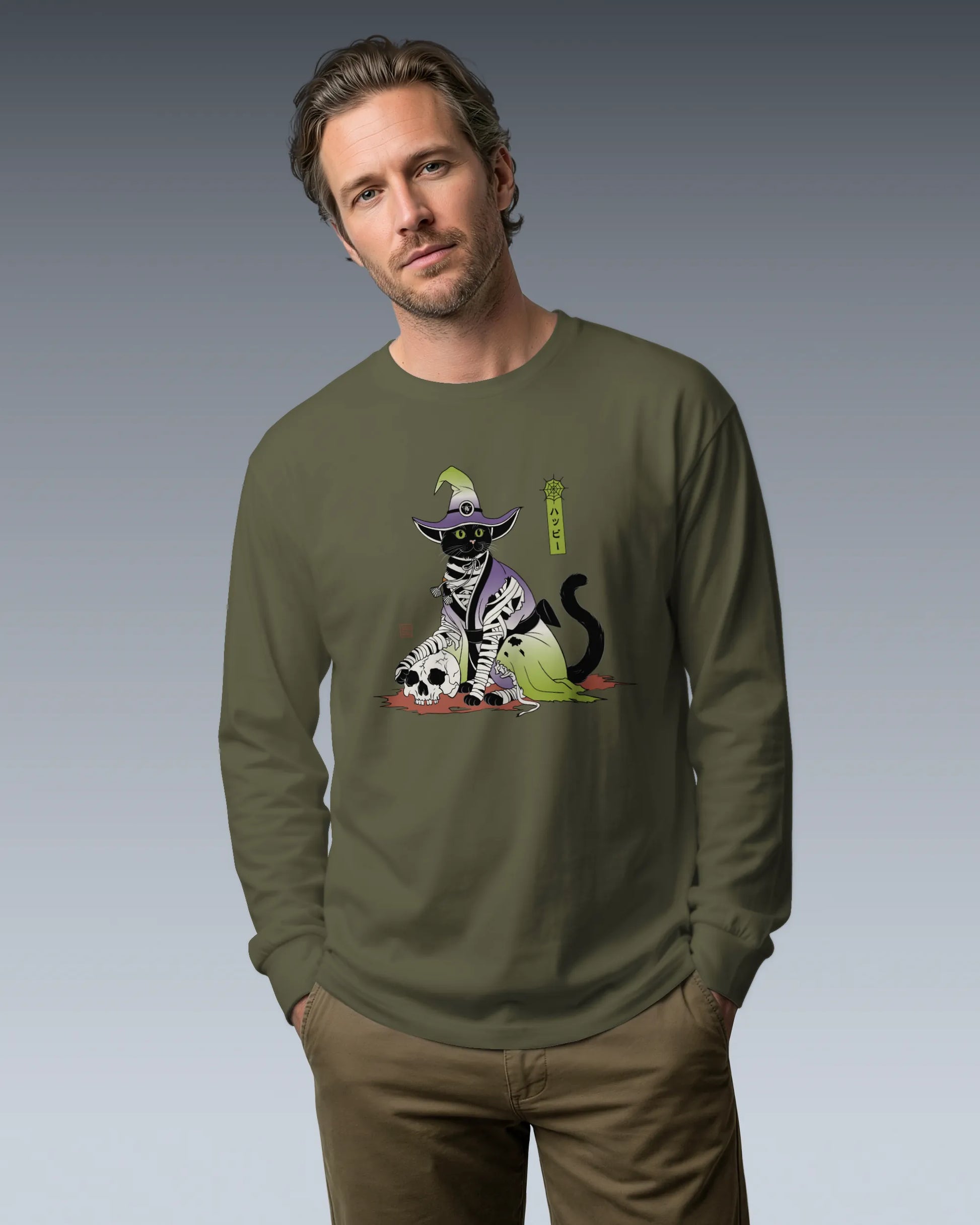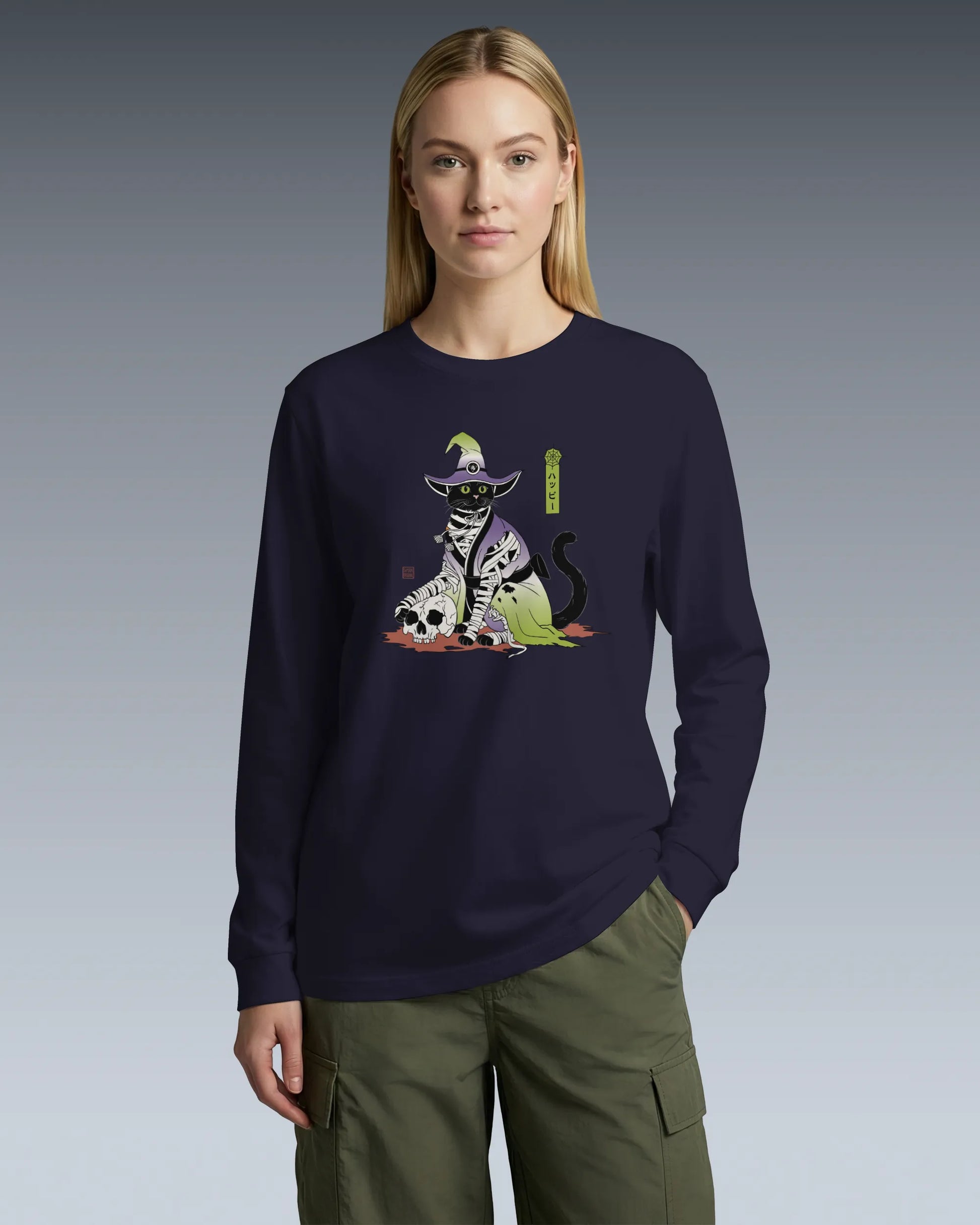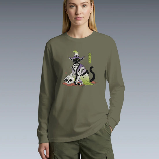 Halloween Black Cat Ukiyo-e Unisex Long Sleeve Tee