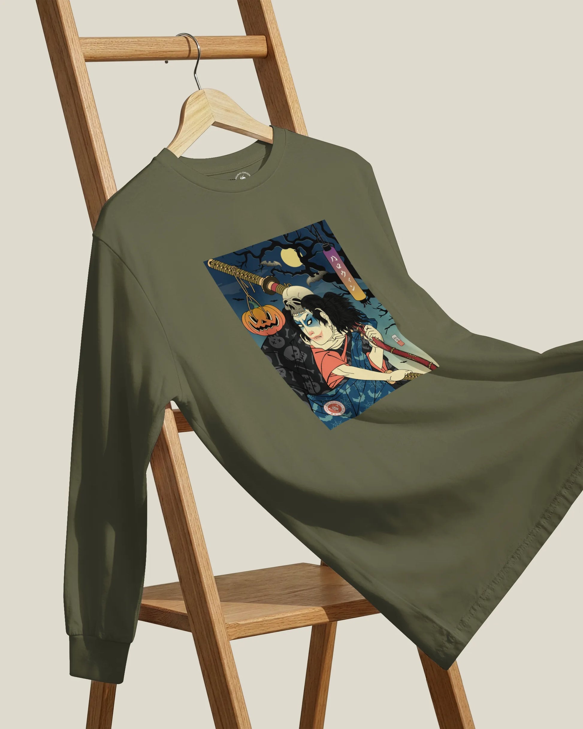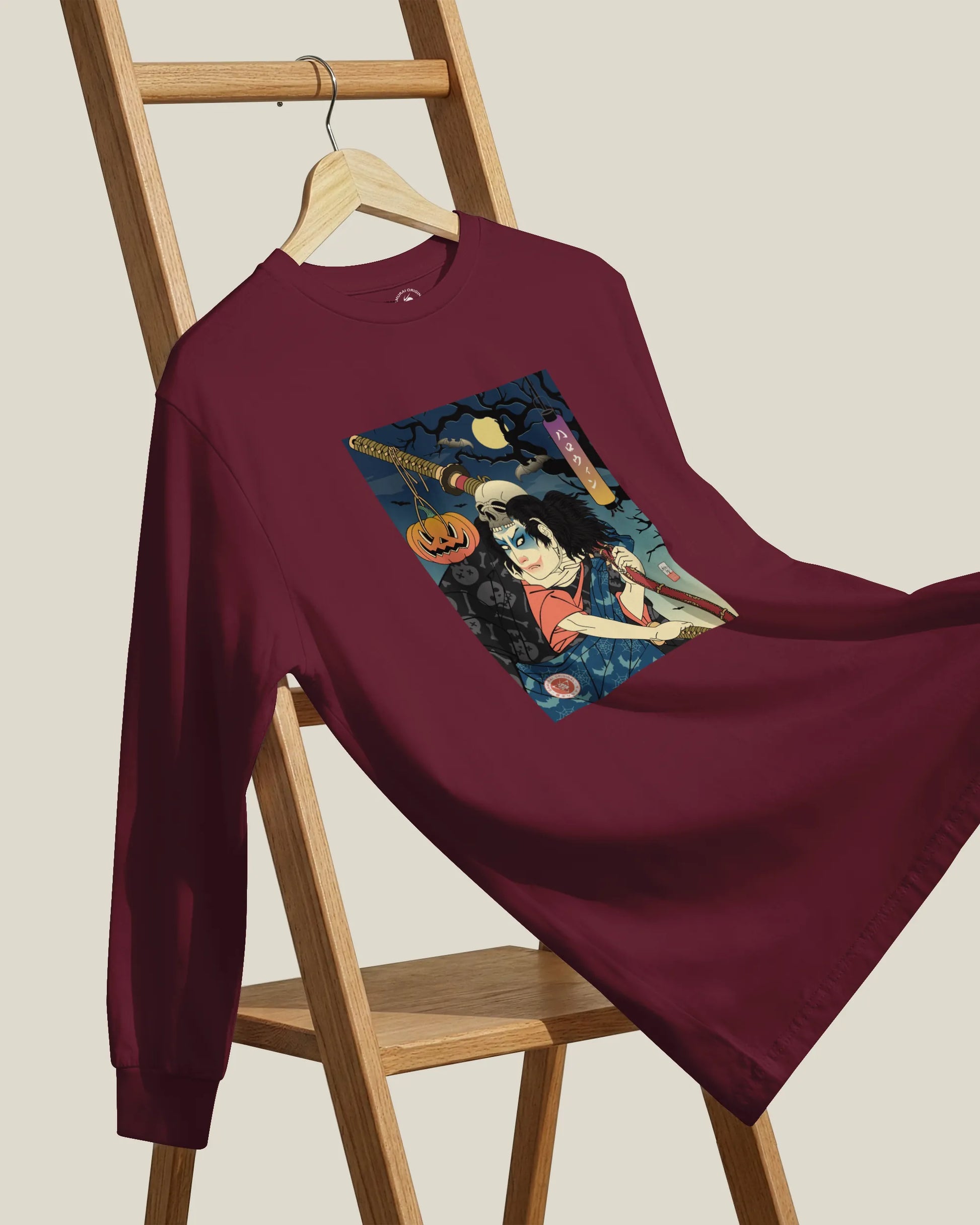 Halloween Samurai Joker Japanese Ukiyo-e Unisex Long Sleeve Tee