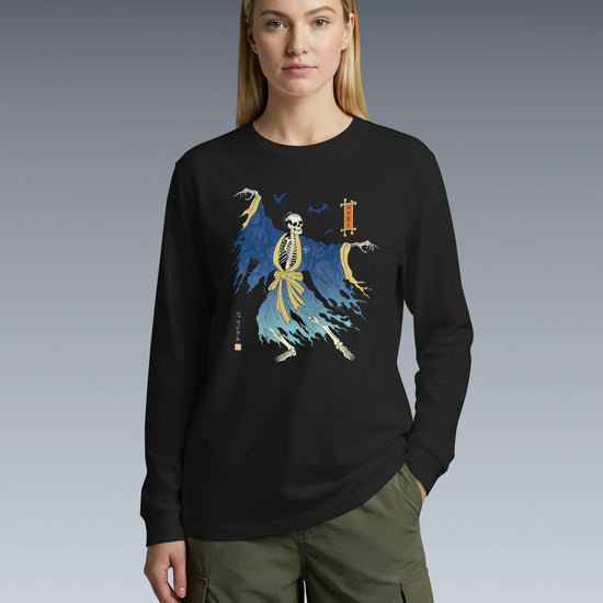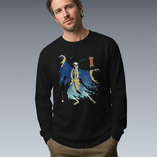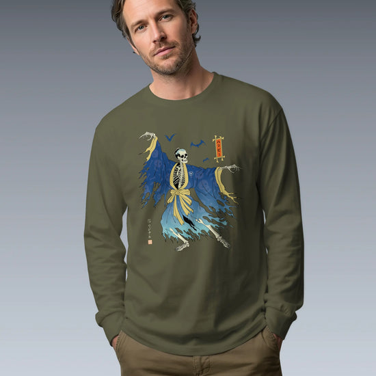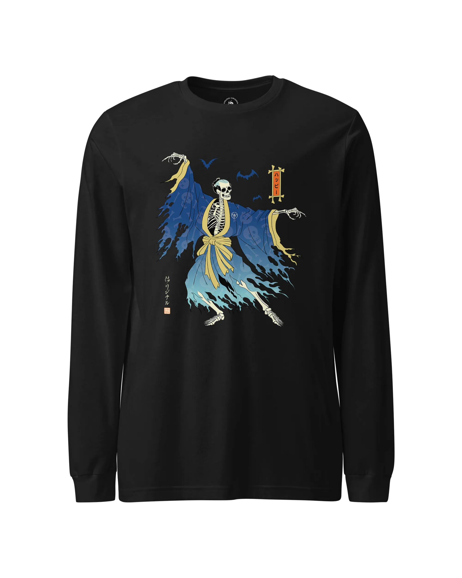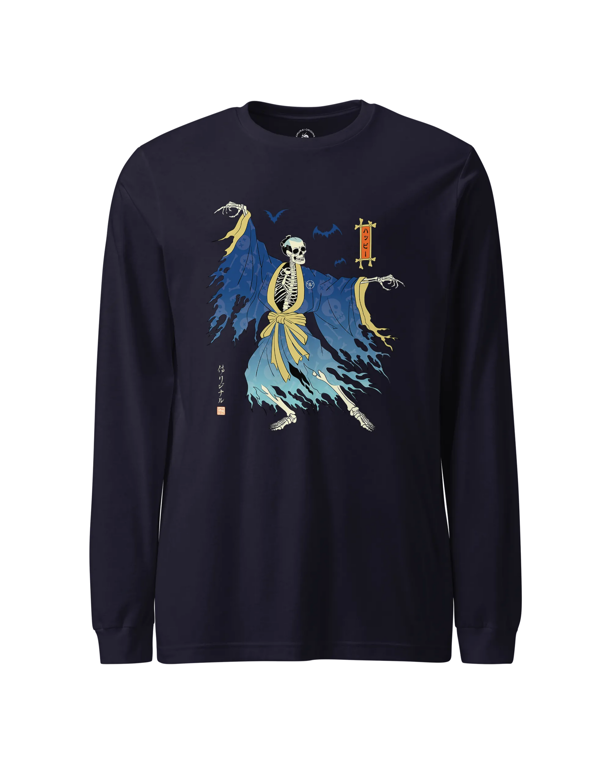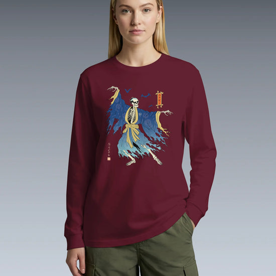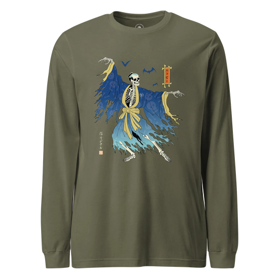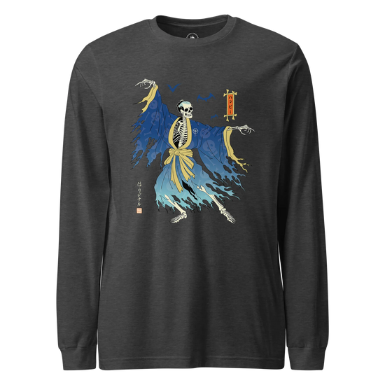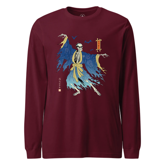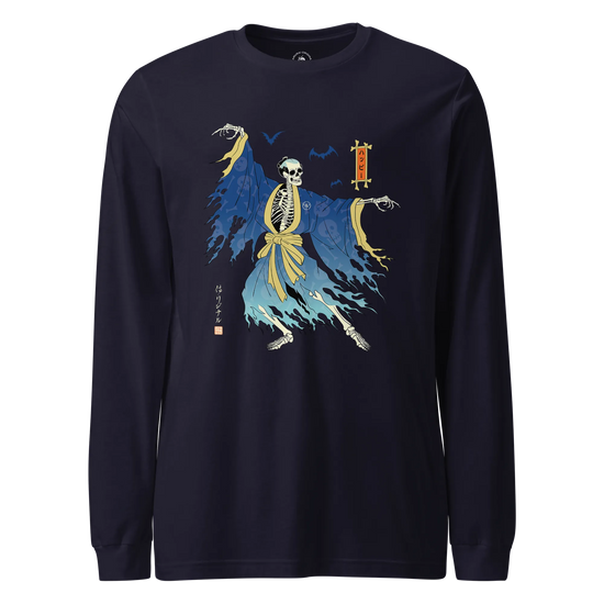 Halloween Samurai Skeleton Ukiyo-e Unisex Long Sleeve Tee No.2