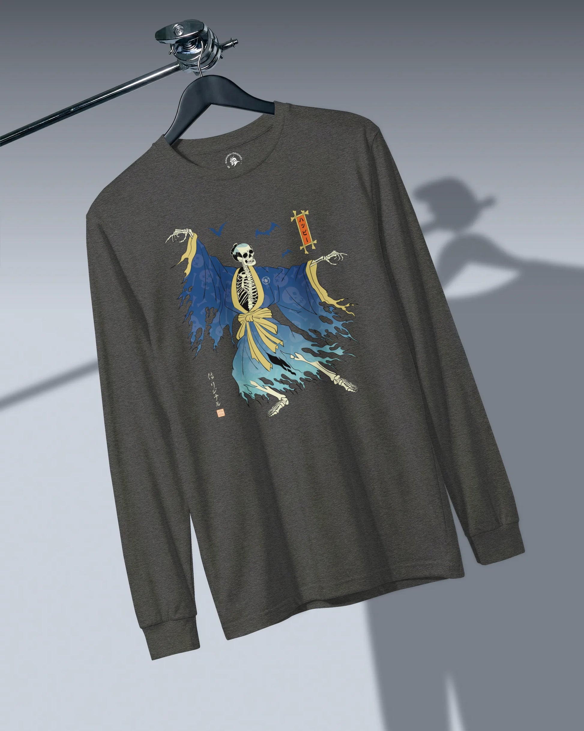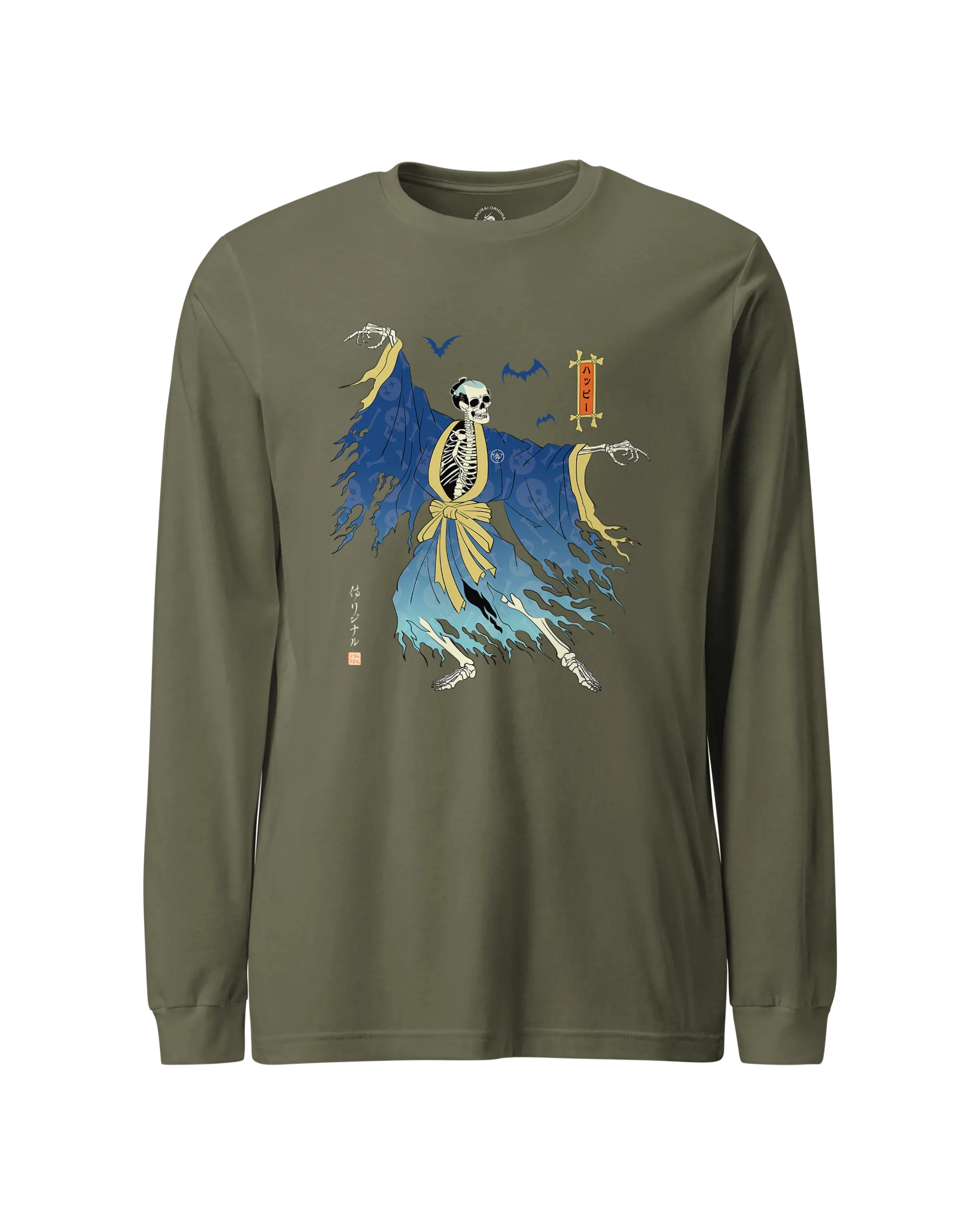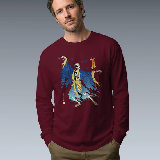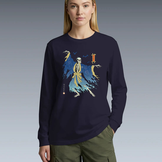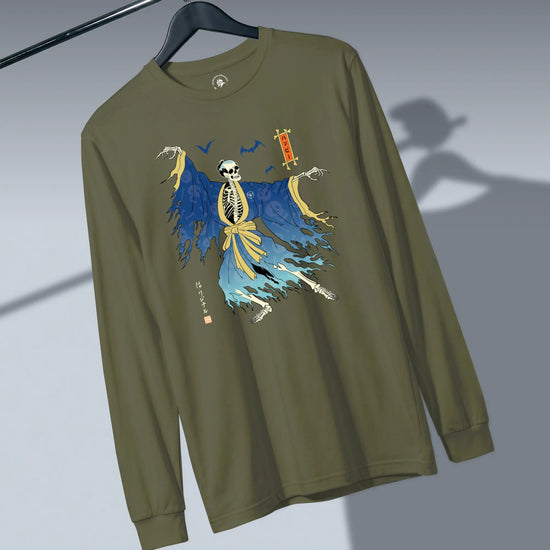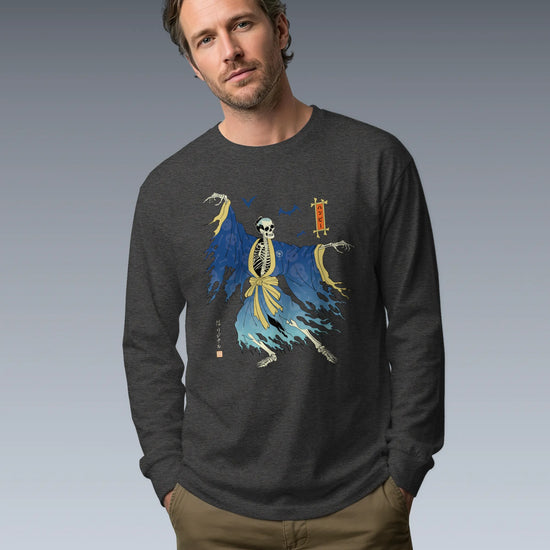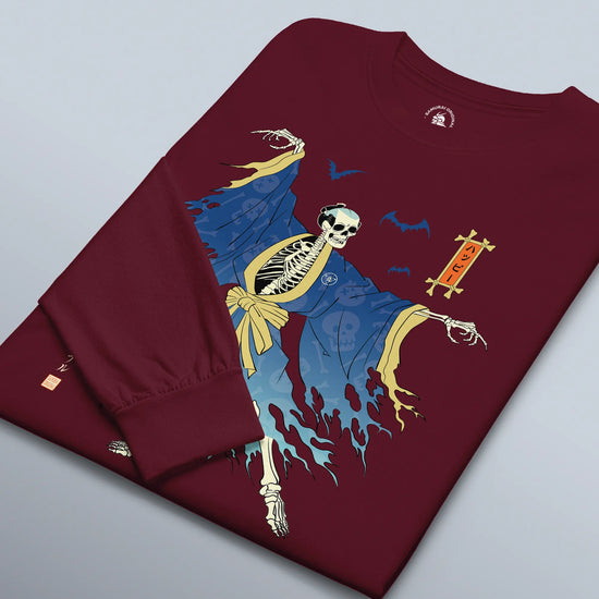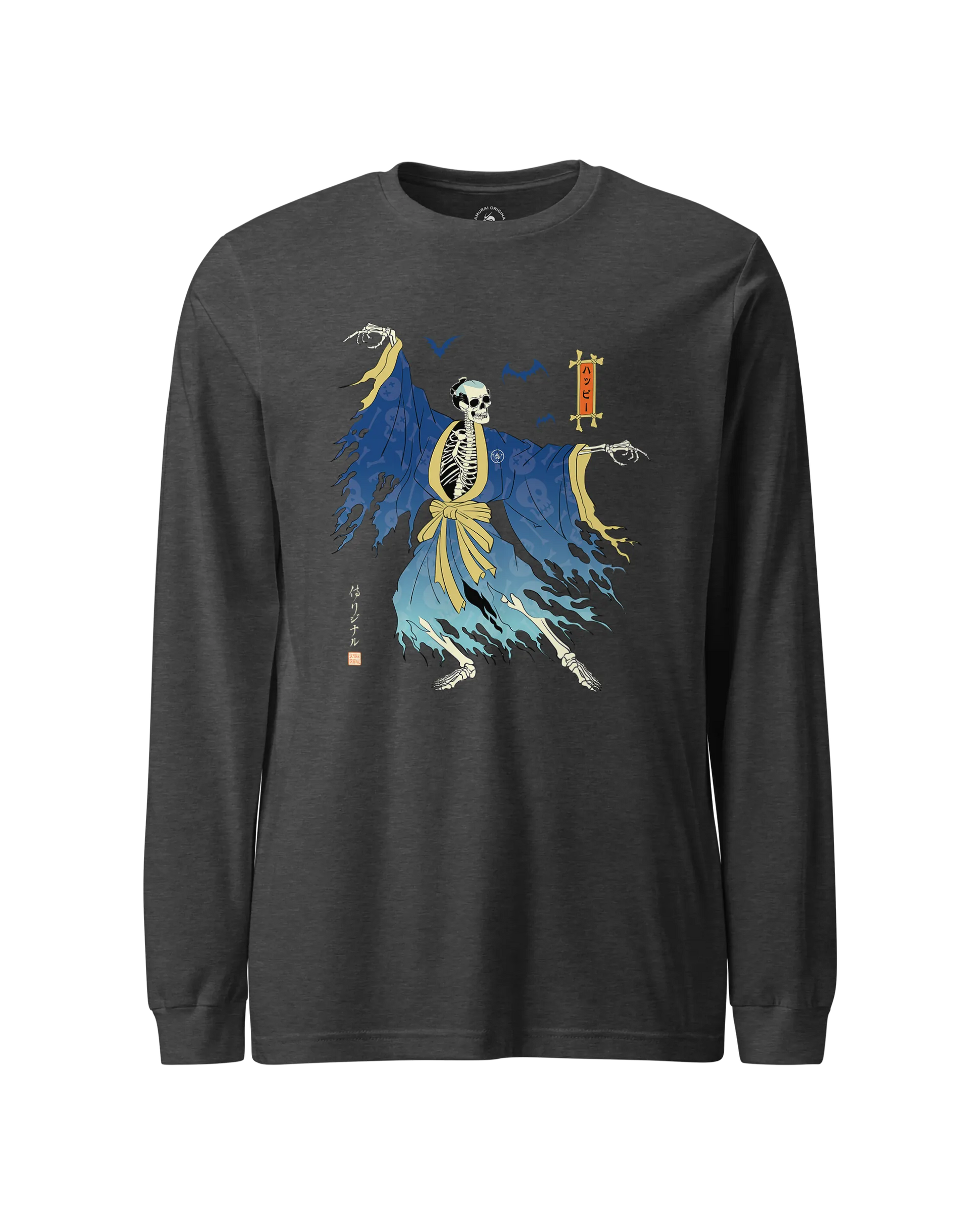 Halloween Samurai Skeleton Ukiyo-e Unisex Long Sleeve Tee No.2