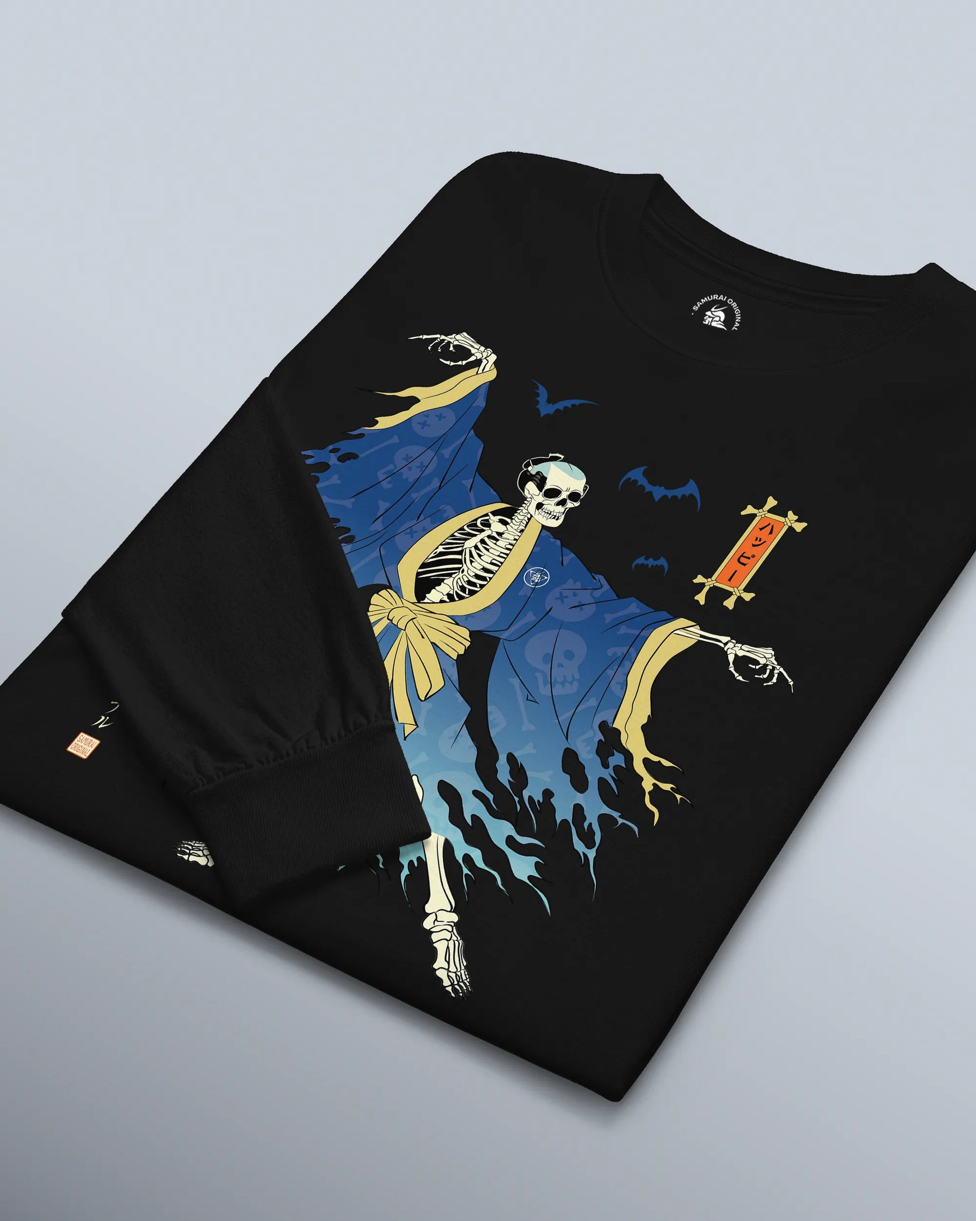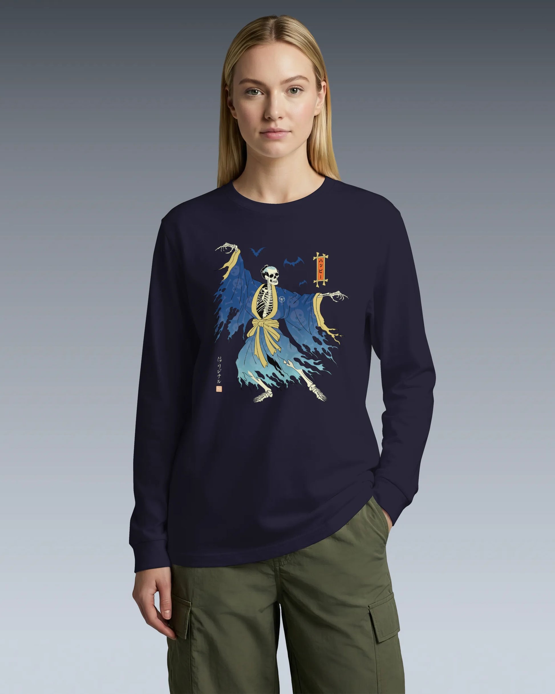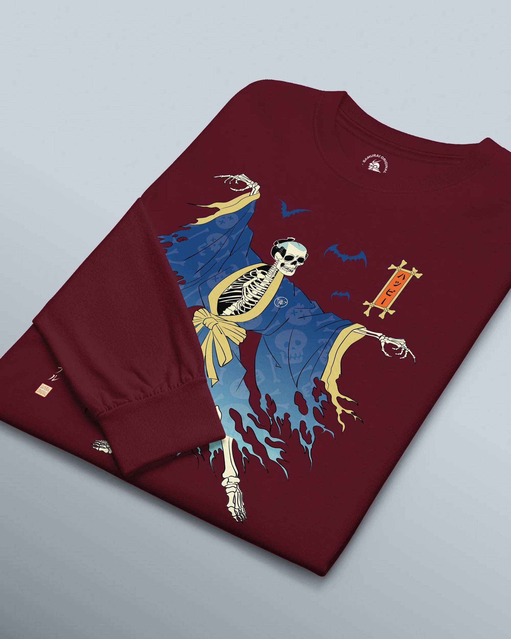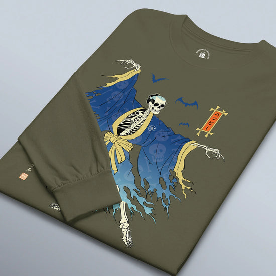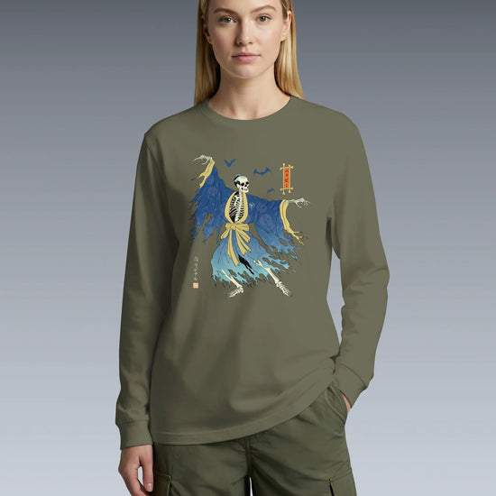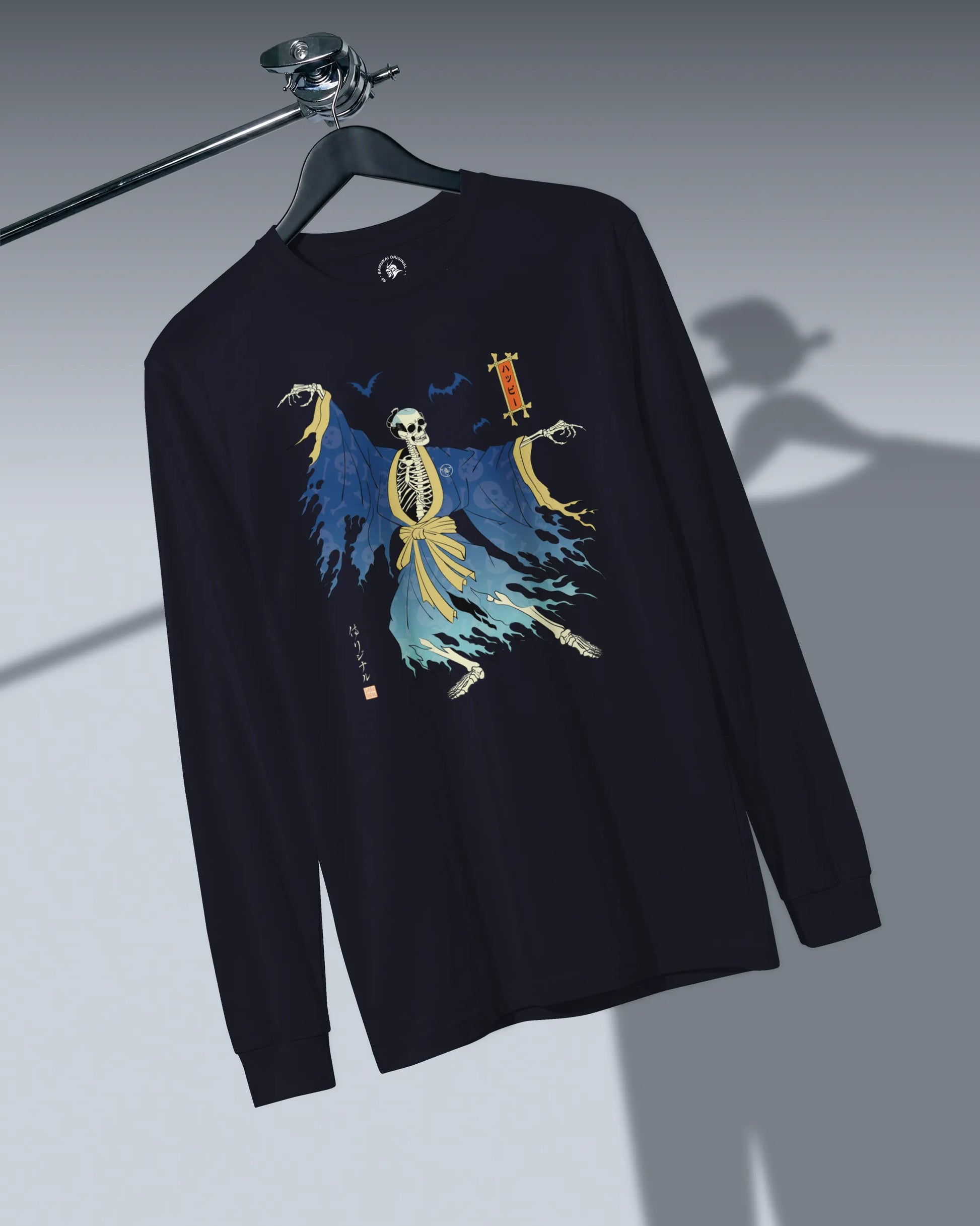 Halloween Samurai Skeleton Ukiyo-e Unisex Long Sleeve Tee No.2