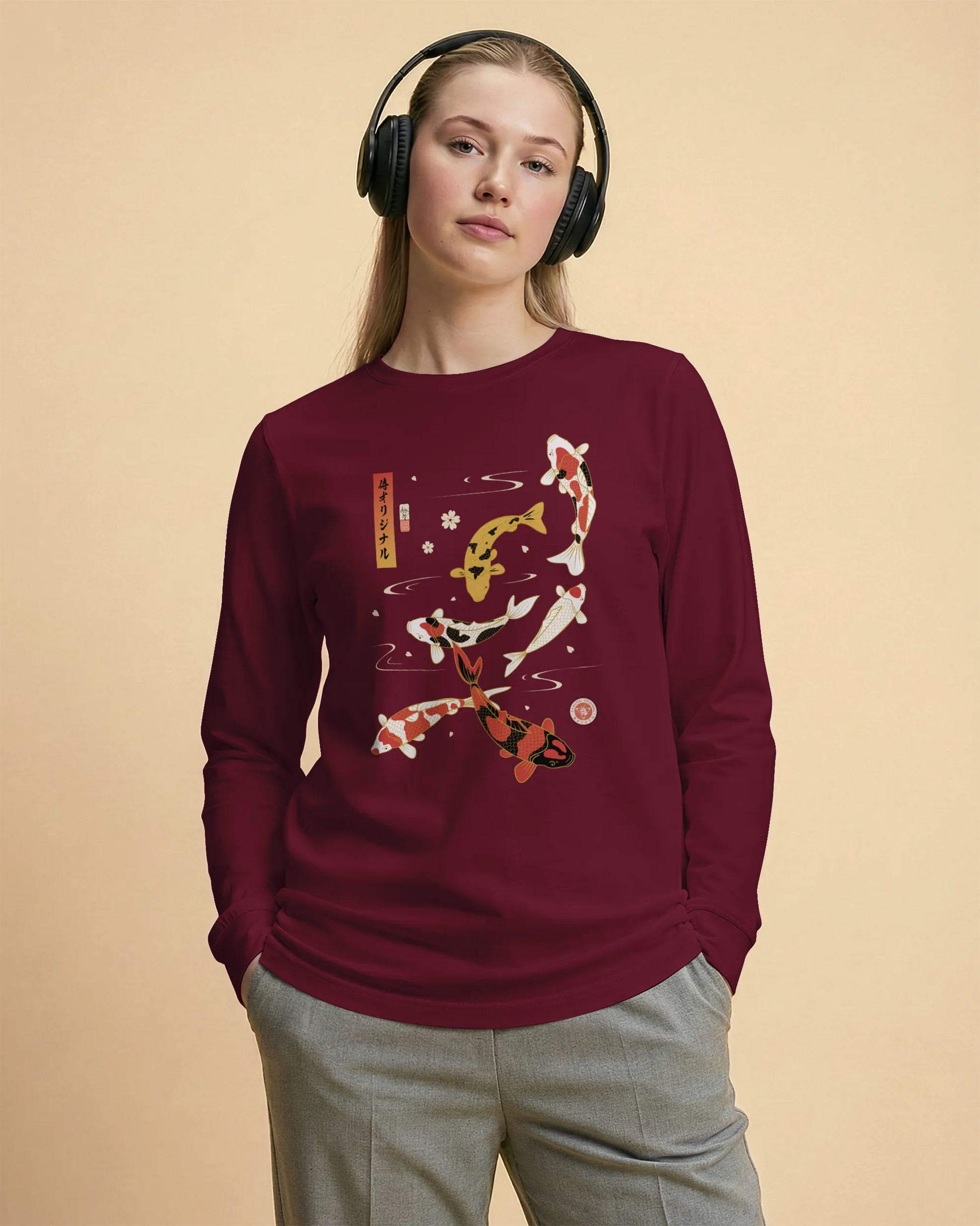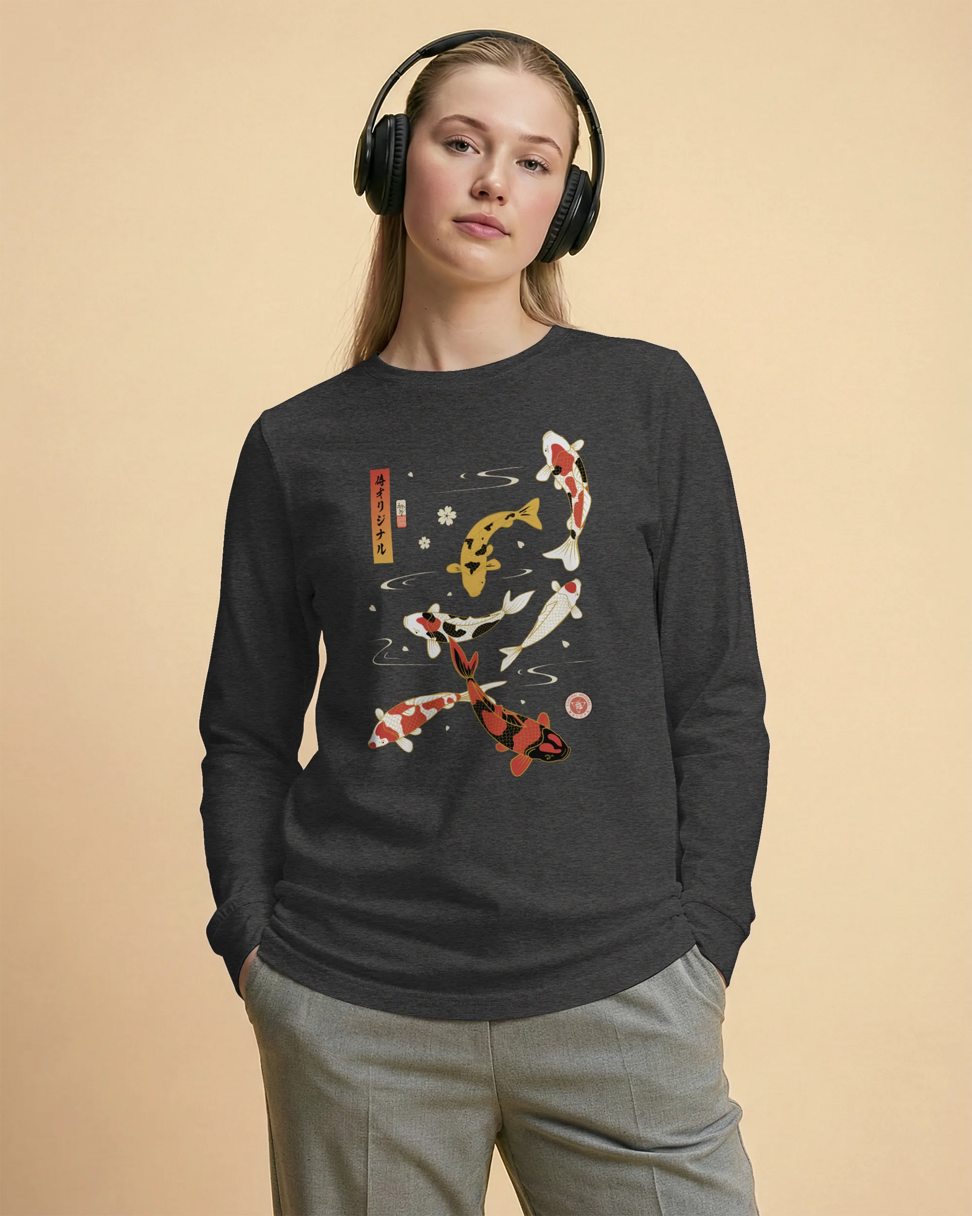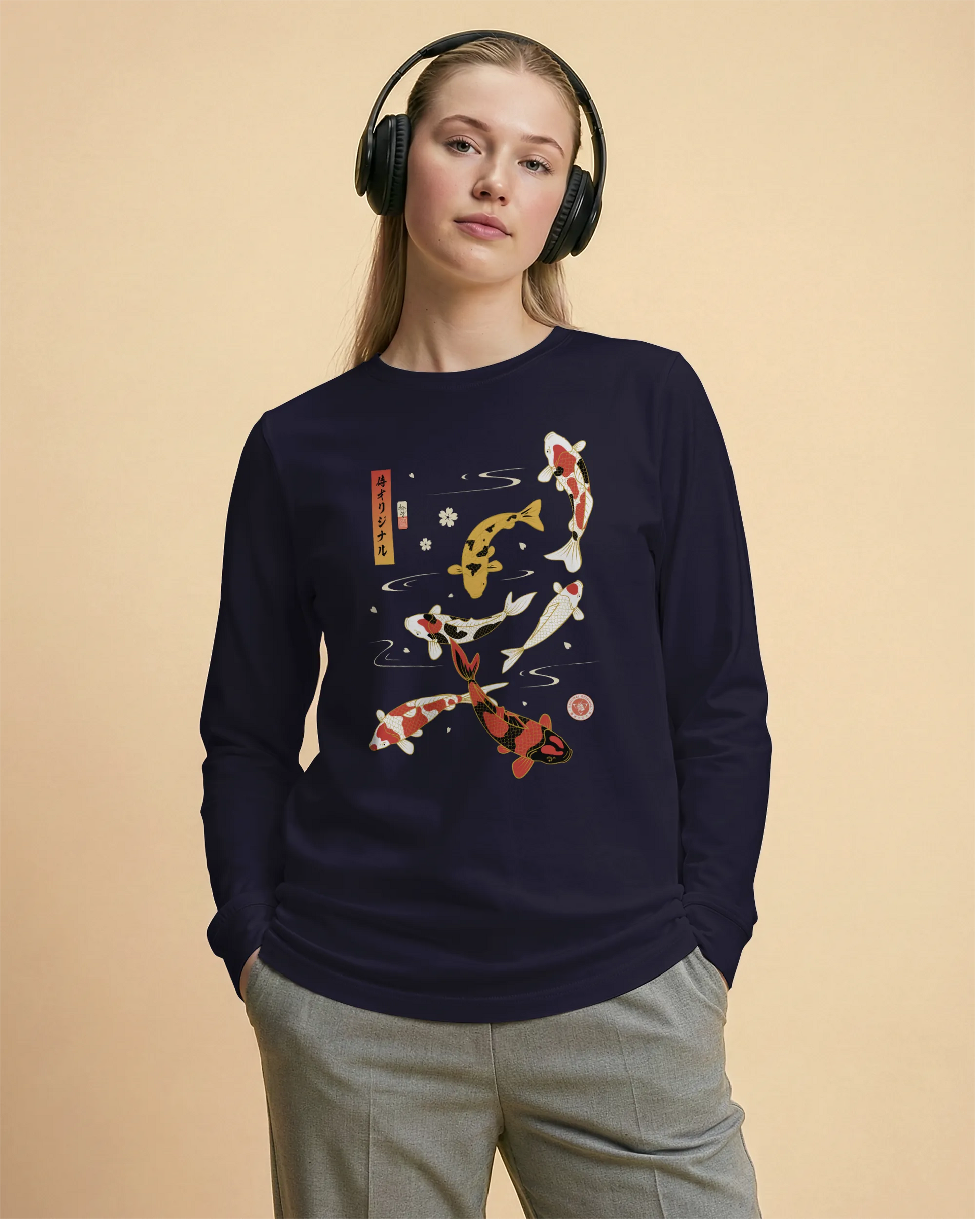 Koi Fish Japanese Ukiyo-e Unisex Long Sleeve Tee