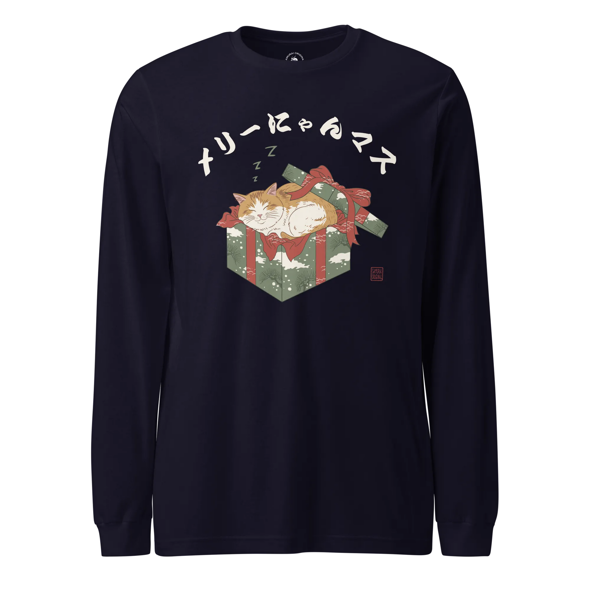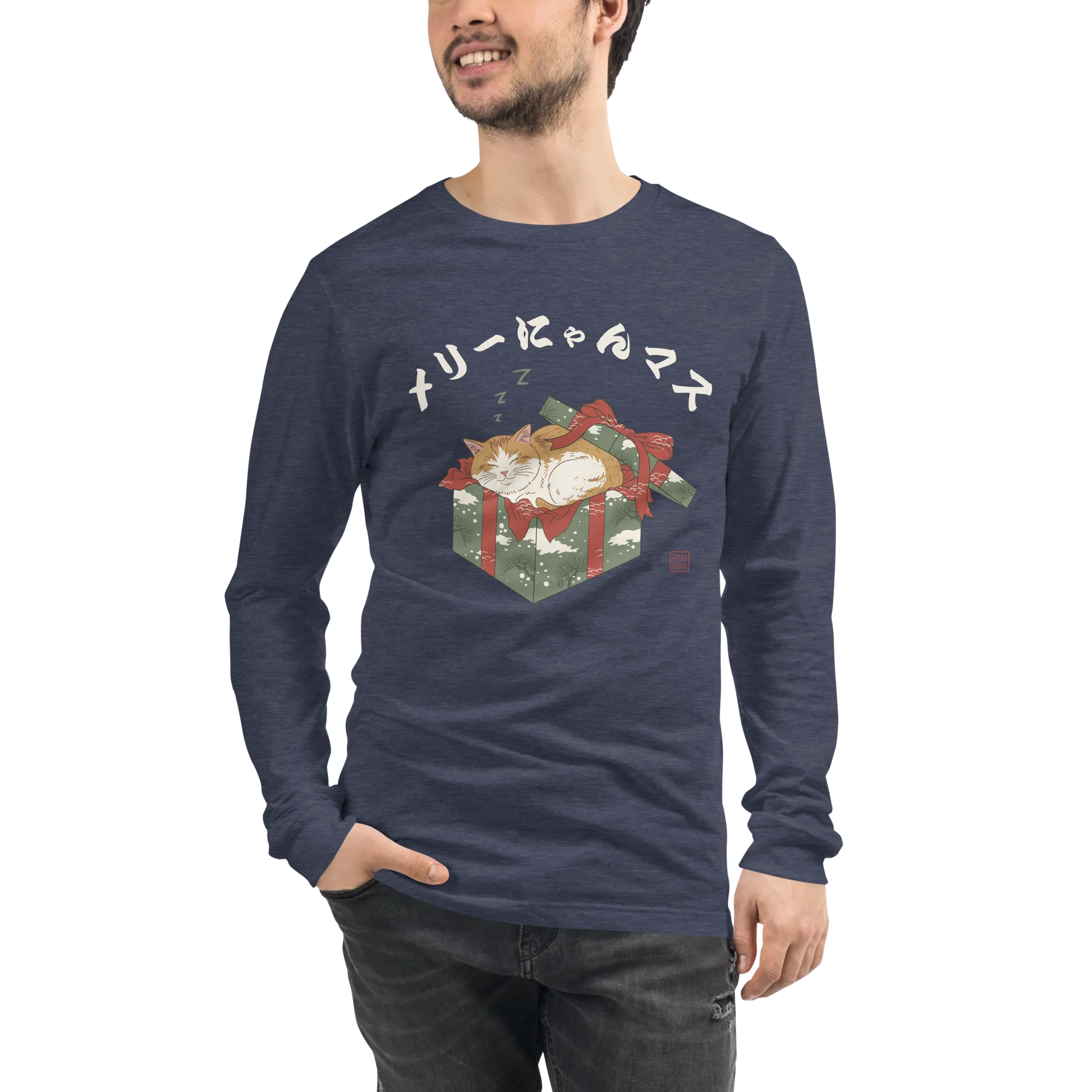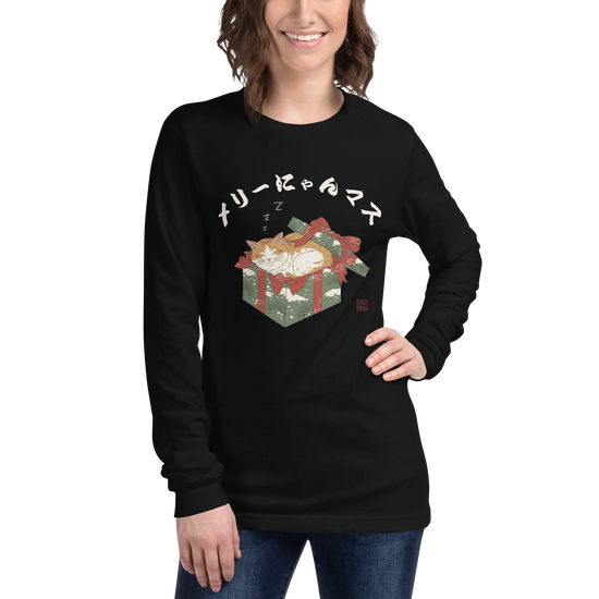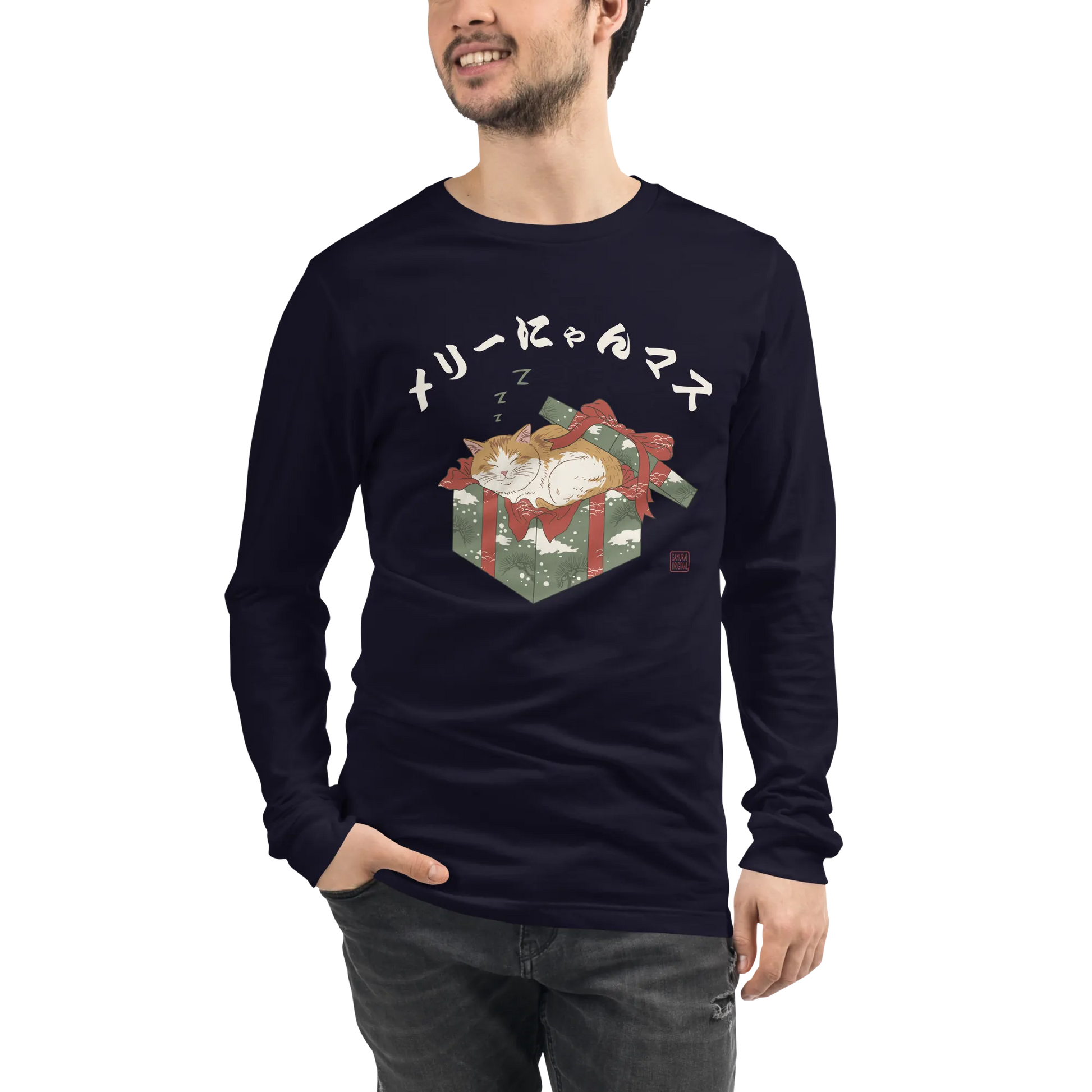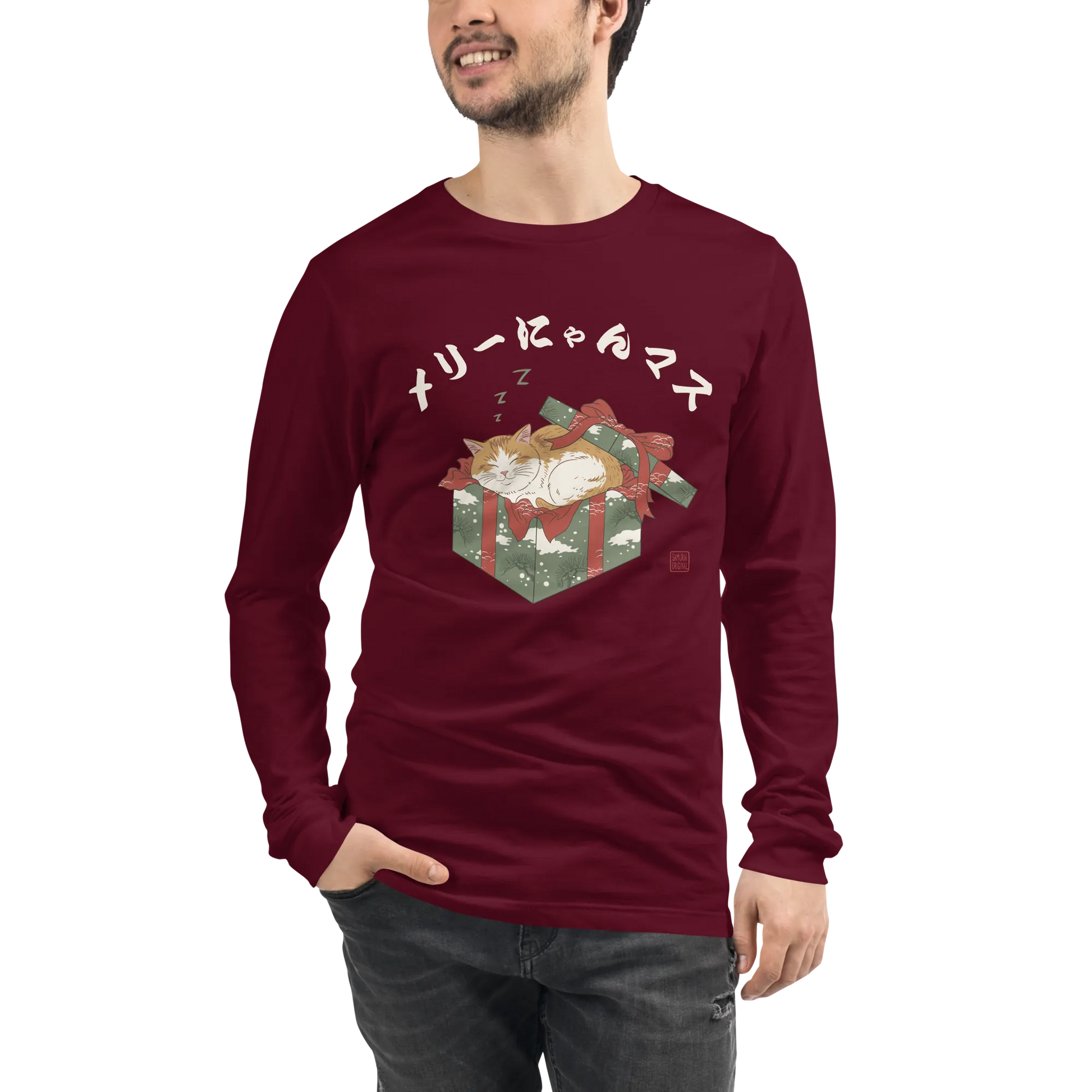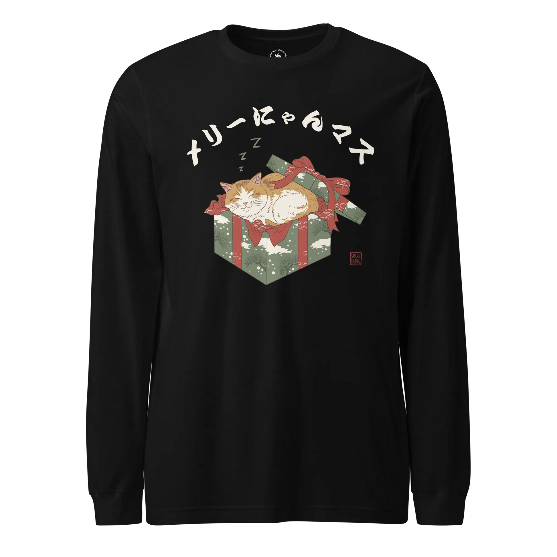 Merry Cat mas Japanese Ukiyo-e Unisex Long Sleeve Tee