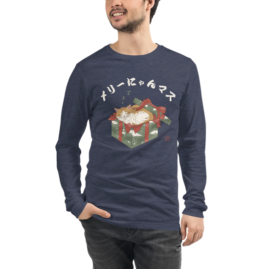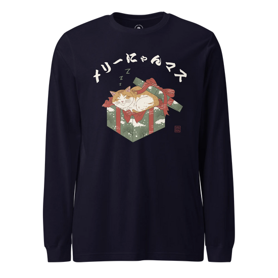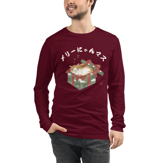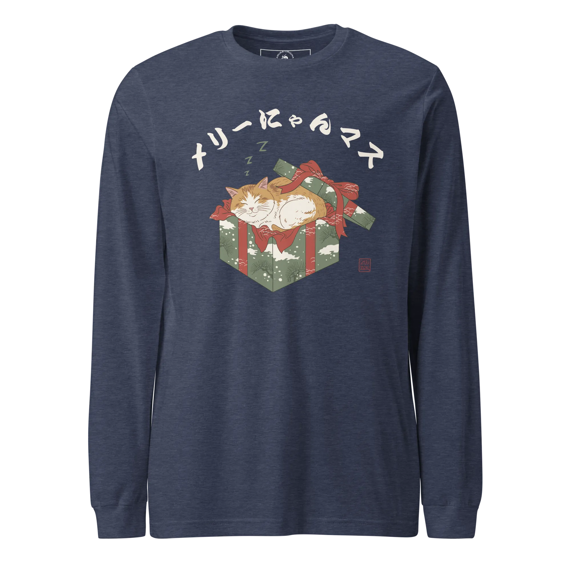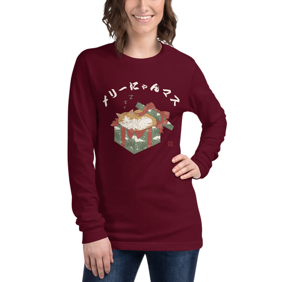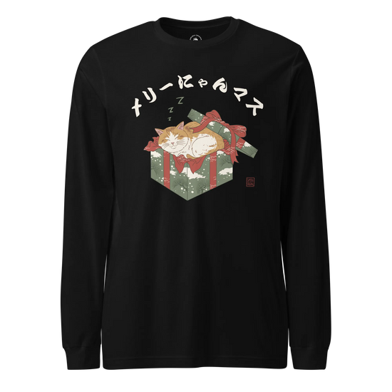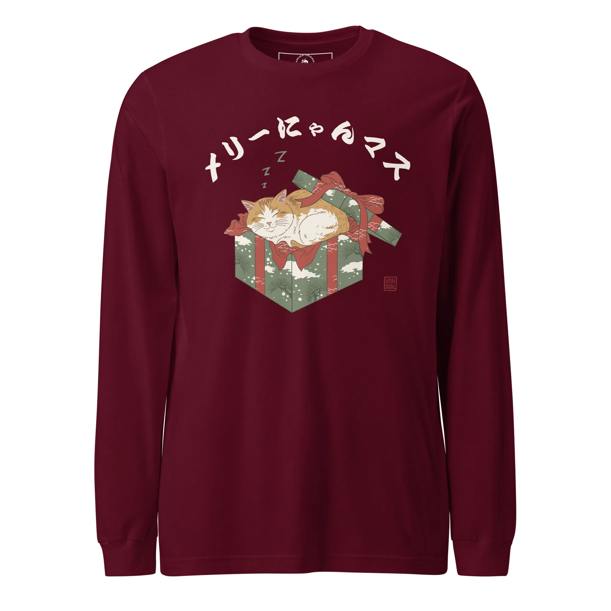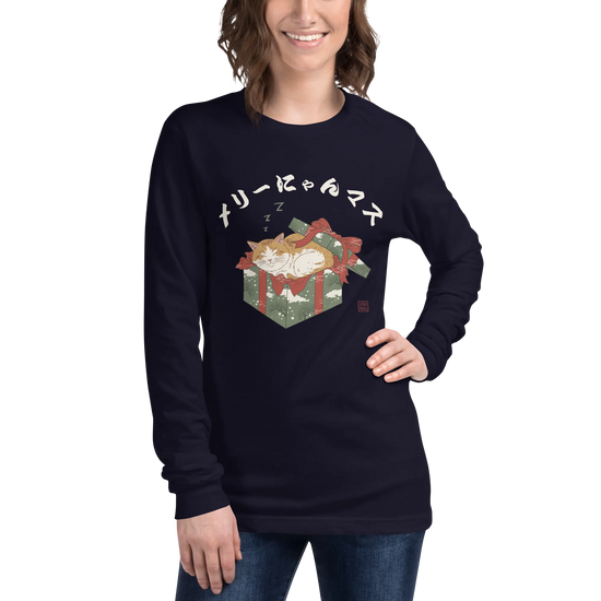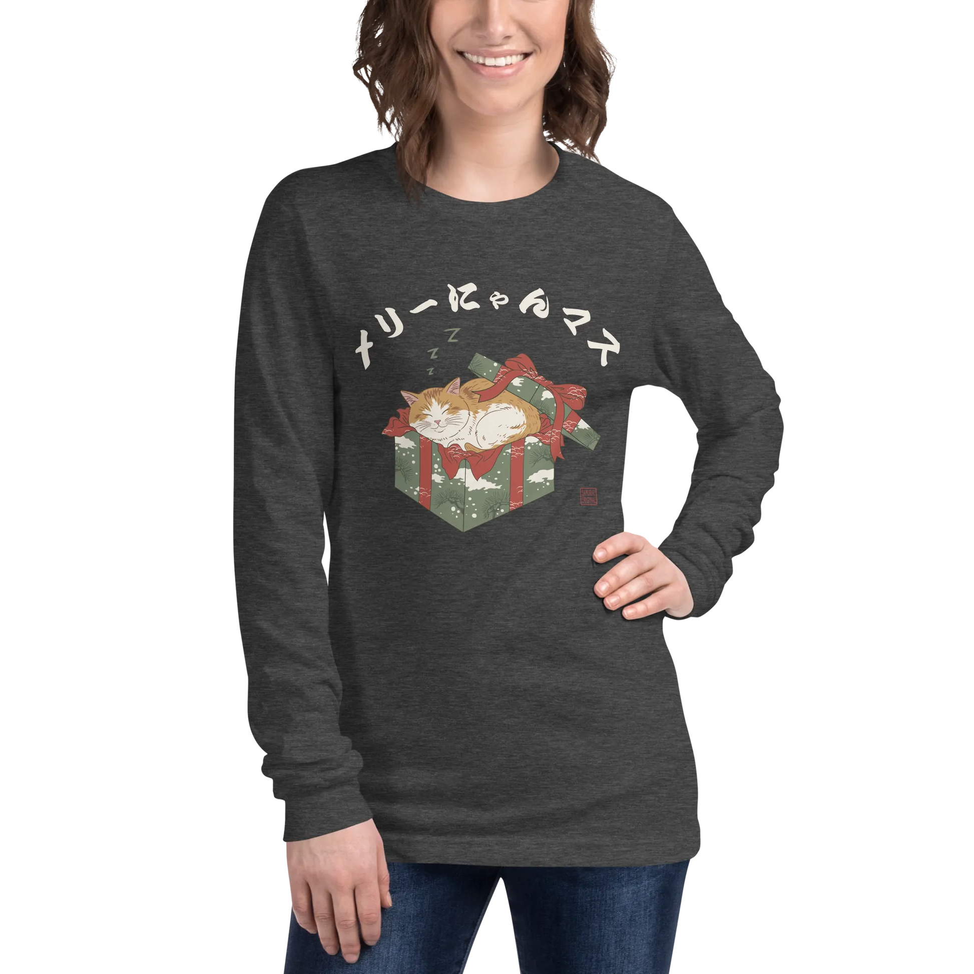 Merry Cat mas Japanese Ukiyo-e Unisex Long Sleeve Tee