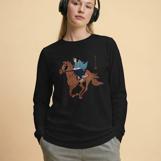 Onna Bugeisha Riding Horse Japanese Ukiyo-e Unisex Long Sleeve Tee