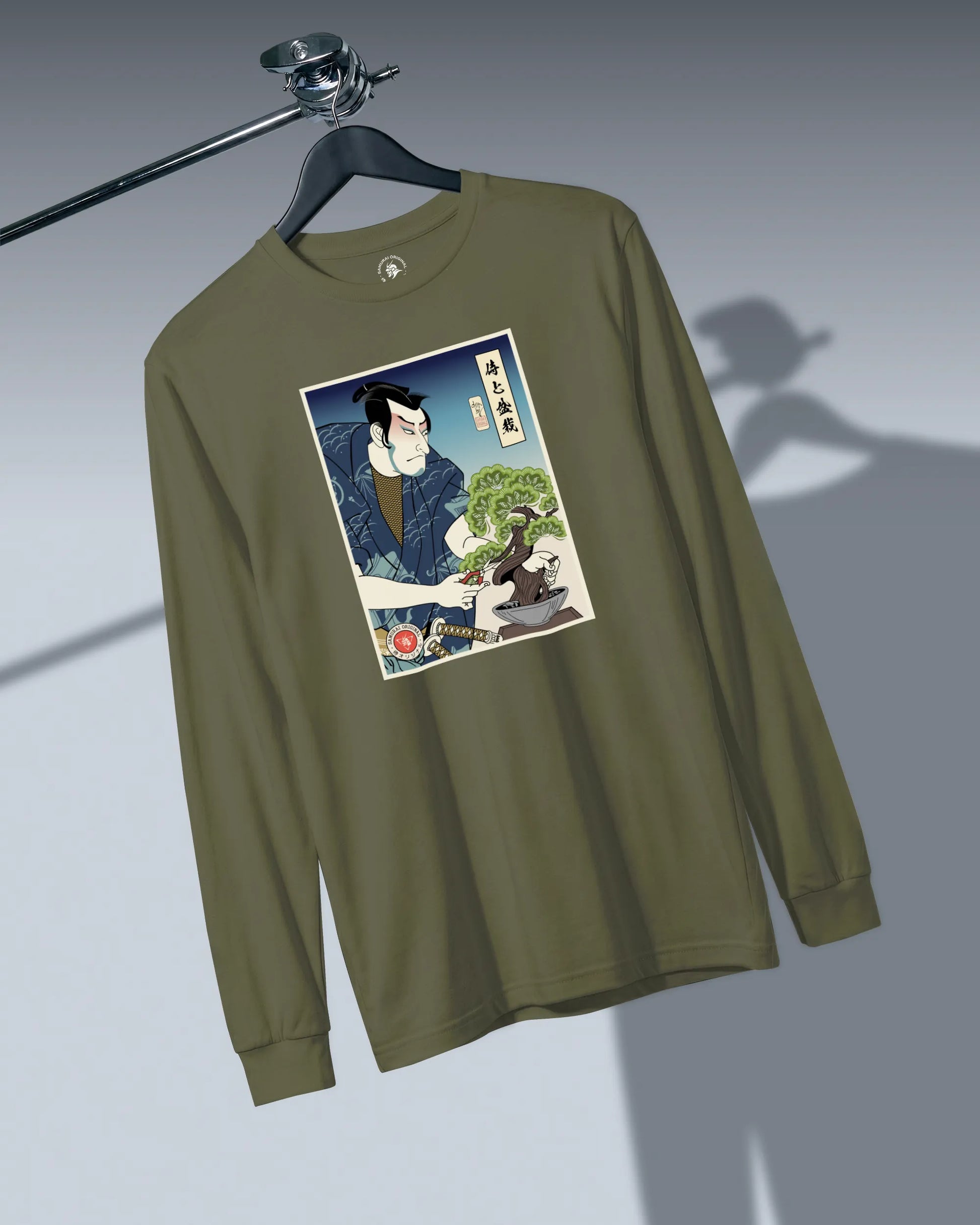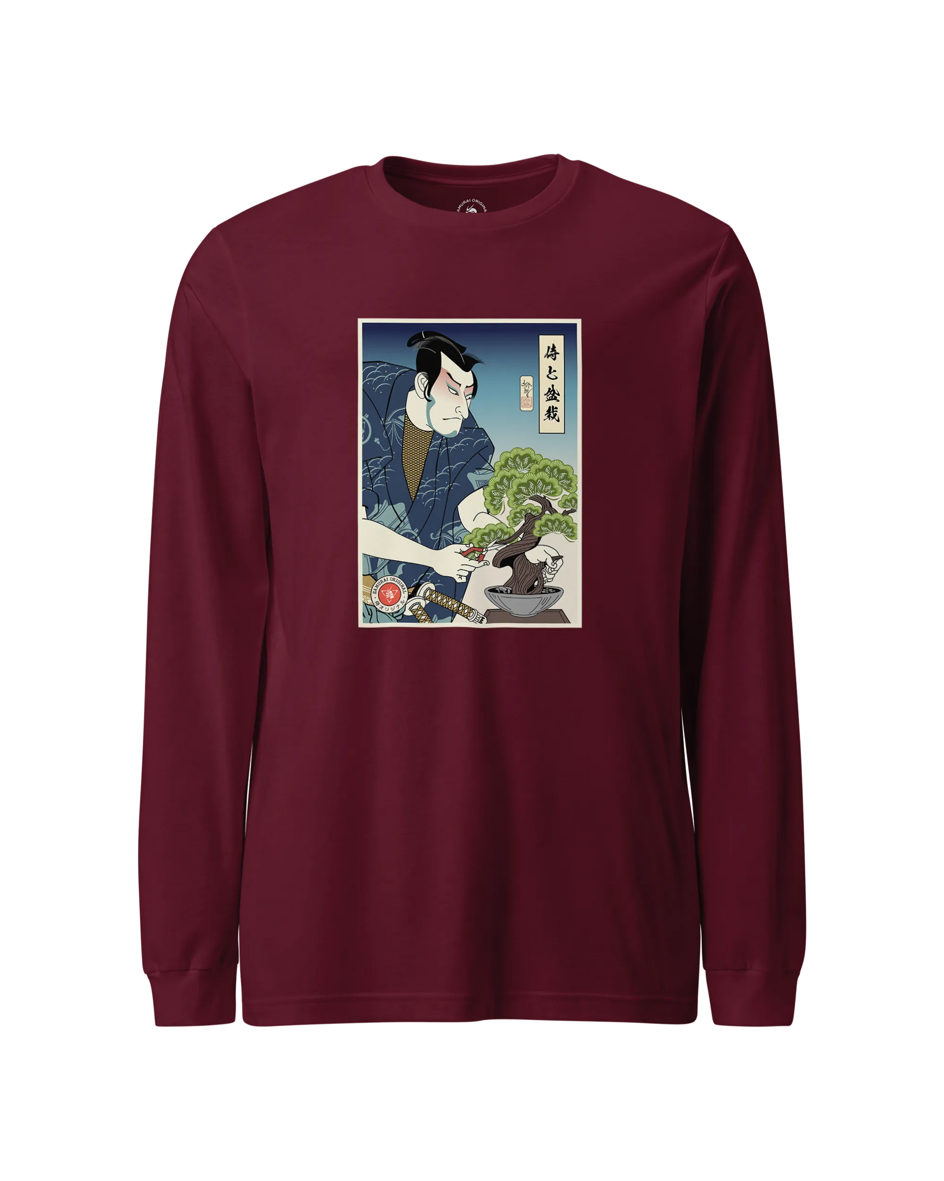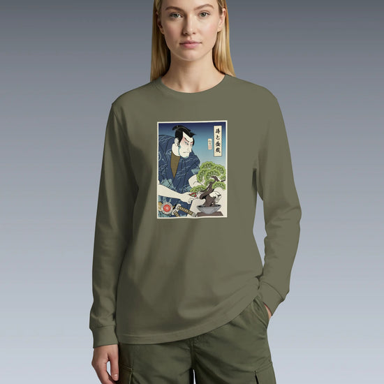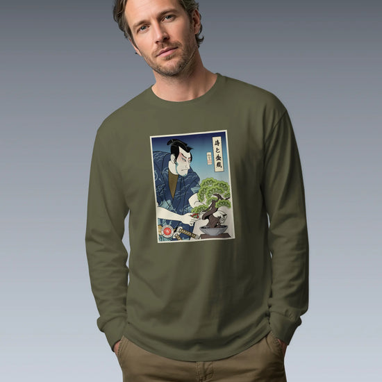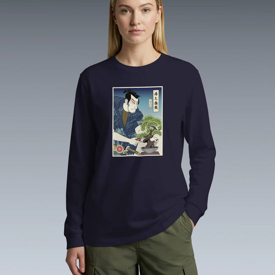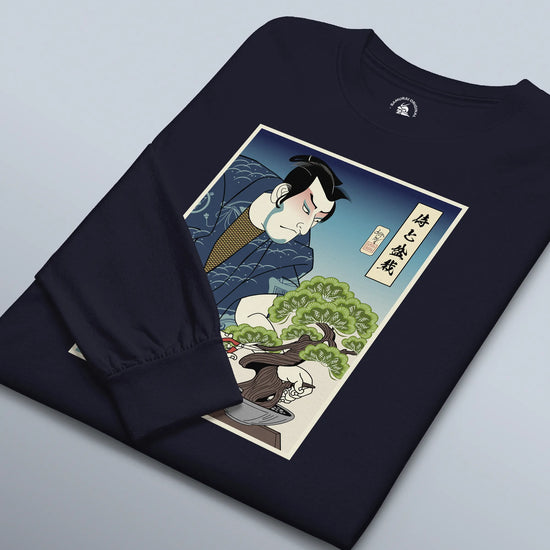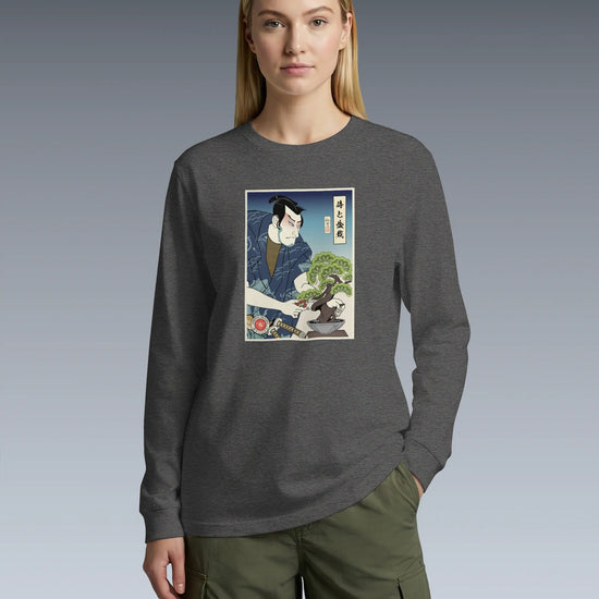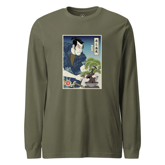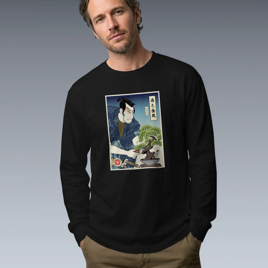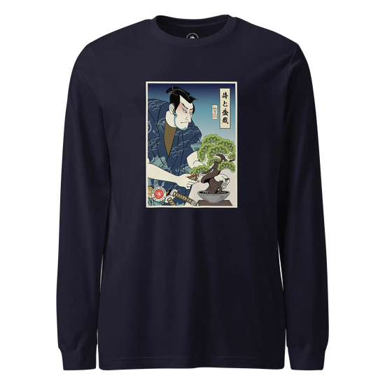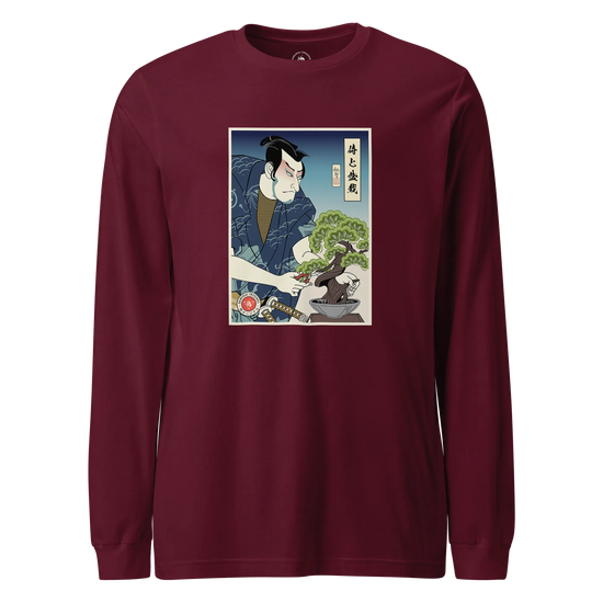 Samurai and Bonsai Tree Ukiyo-e Unisex Long Sleeve Tee