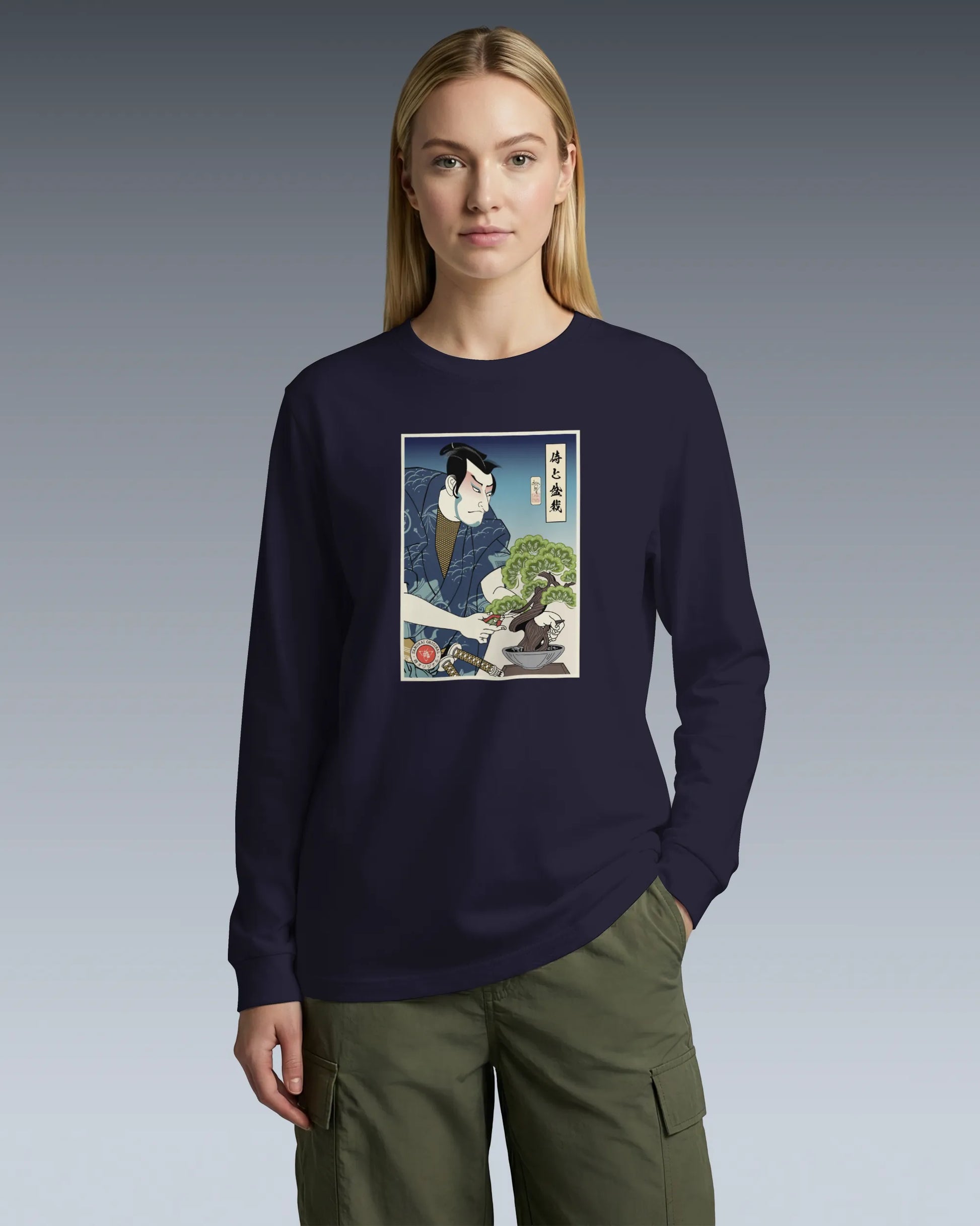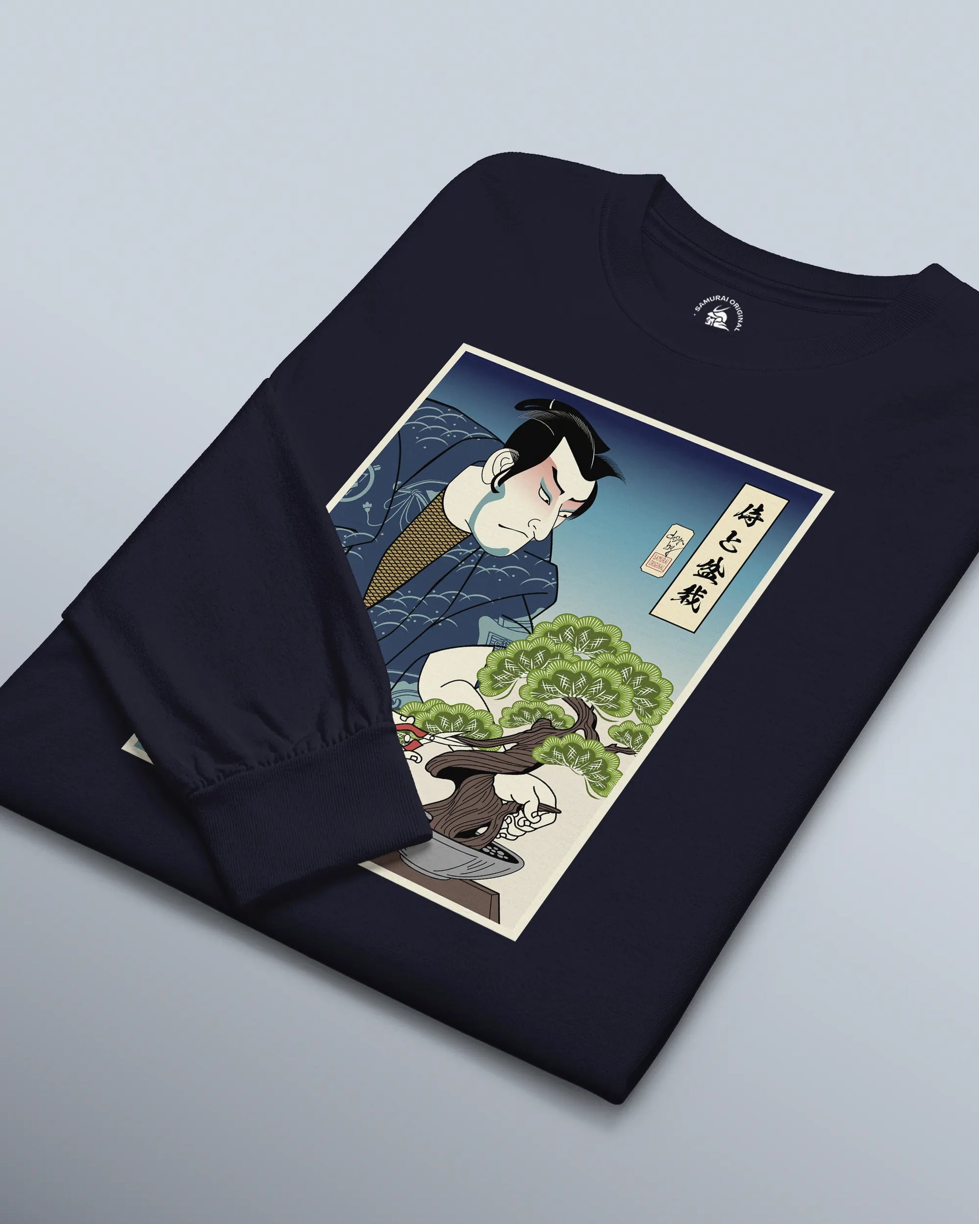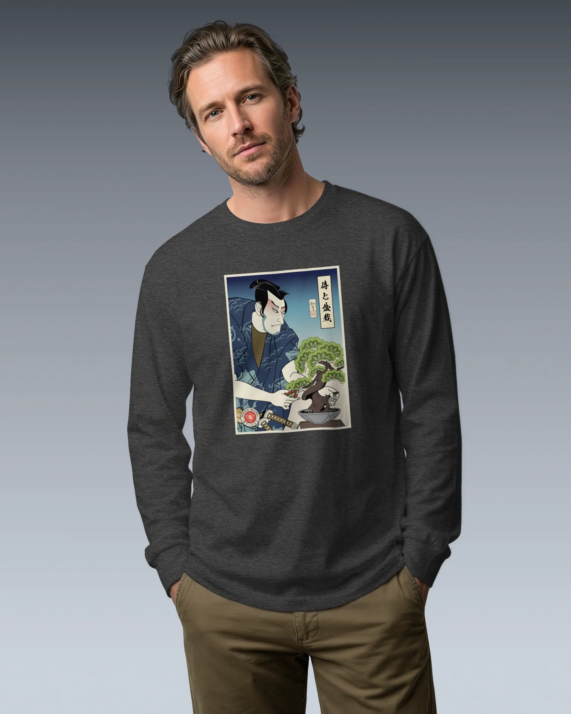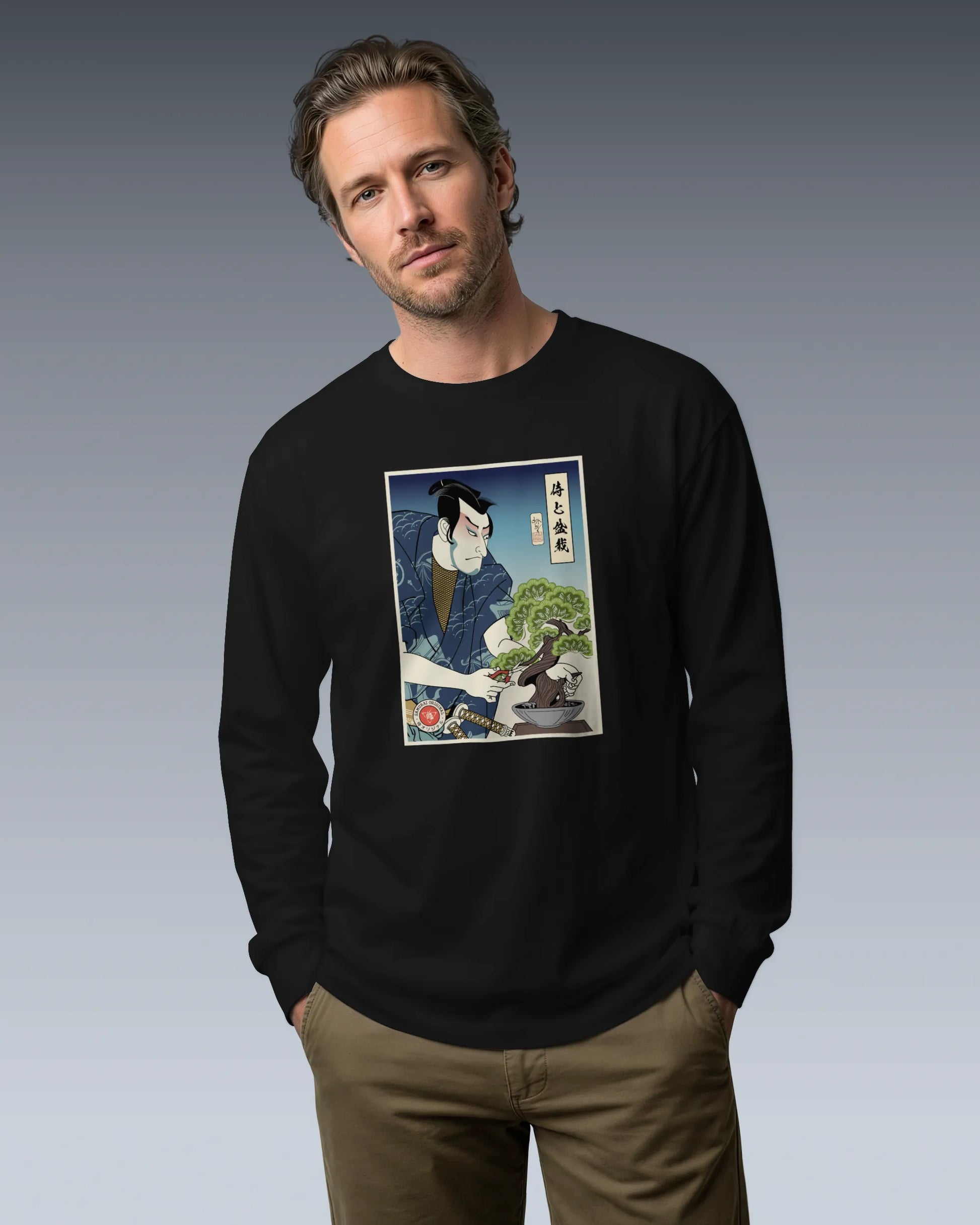 Samurai and Bonsai Tree Ukiyo-e Unisex Long Sleeve Tee