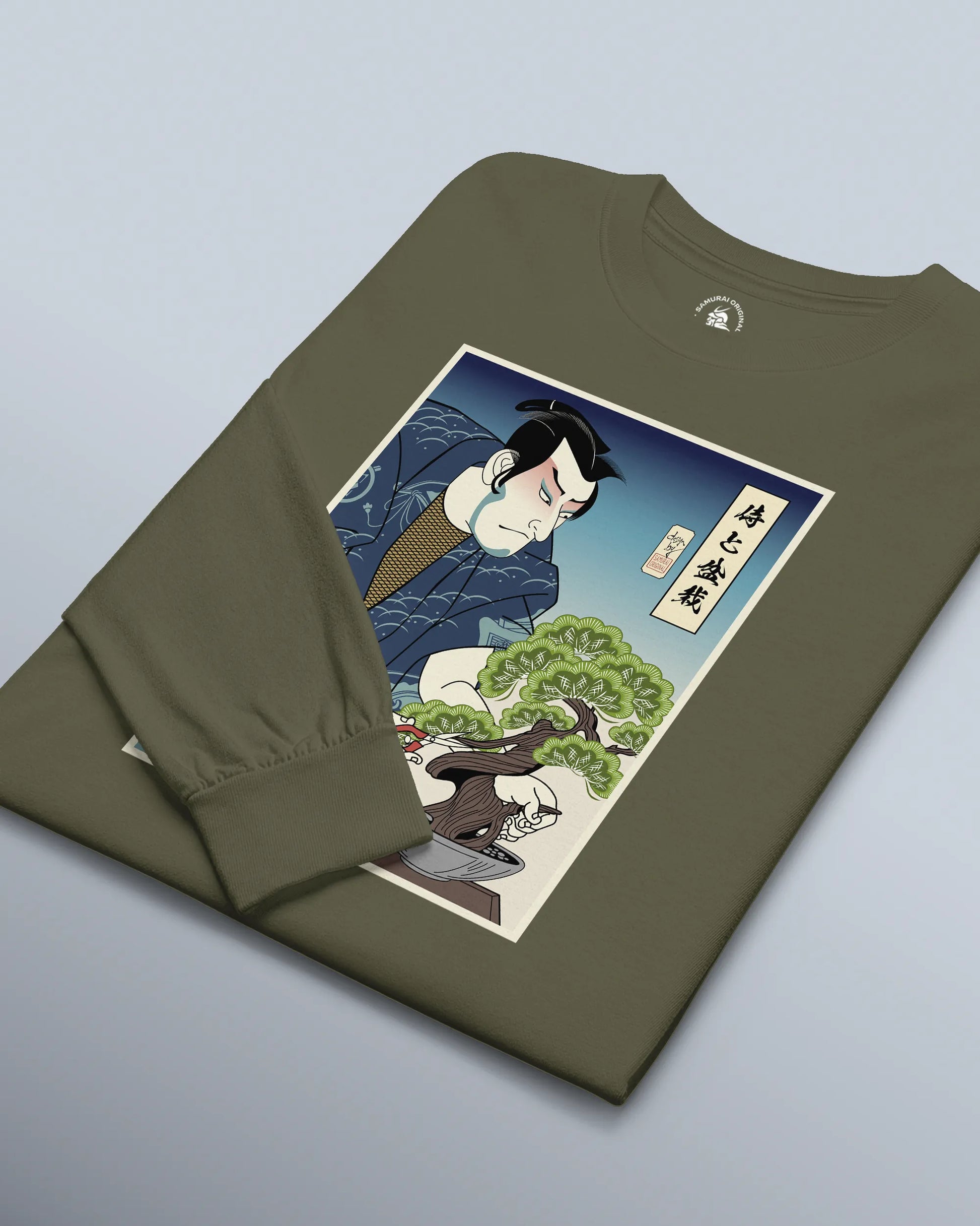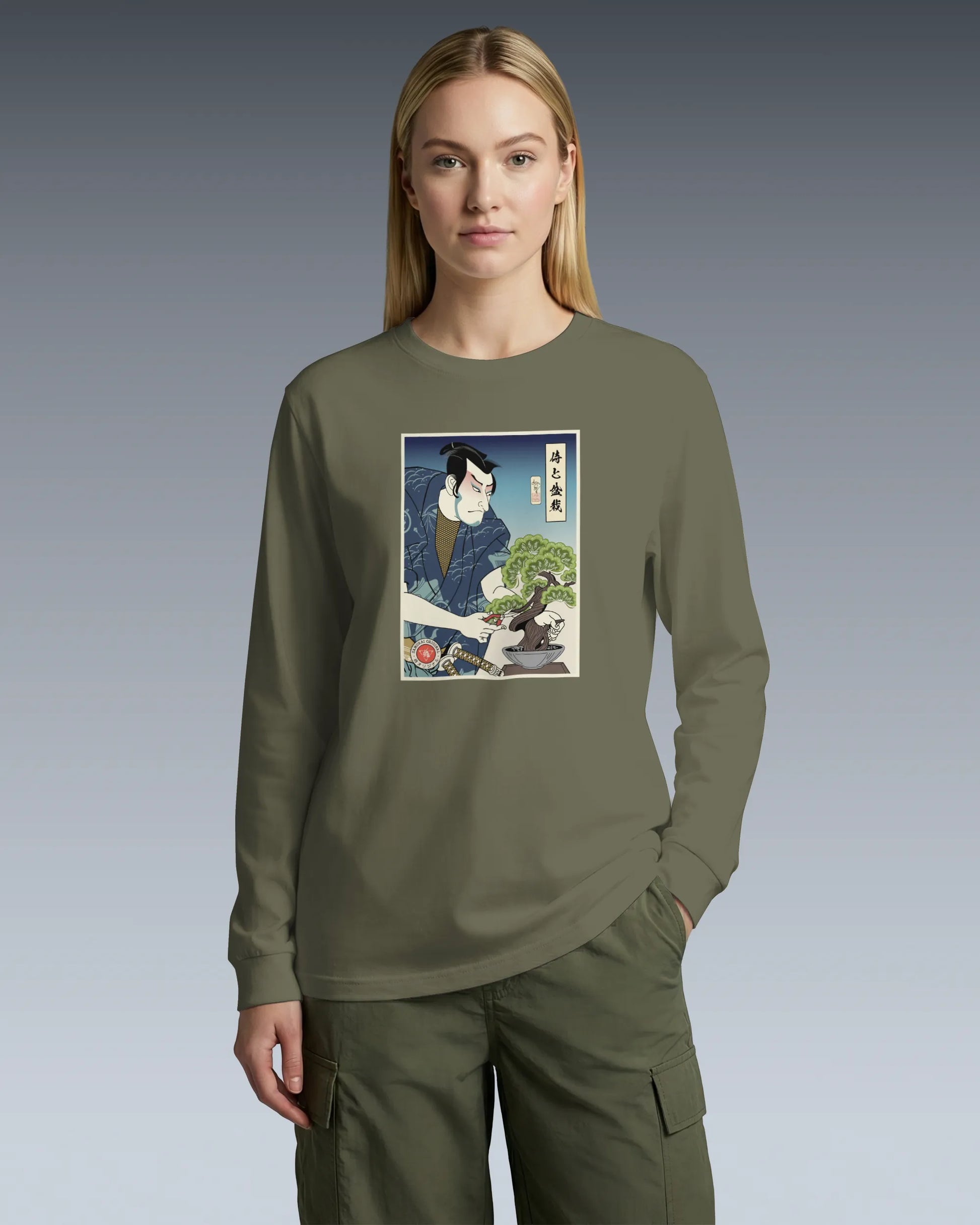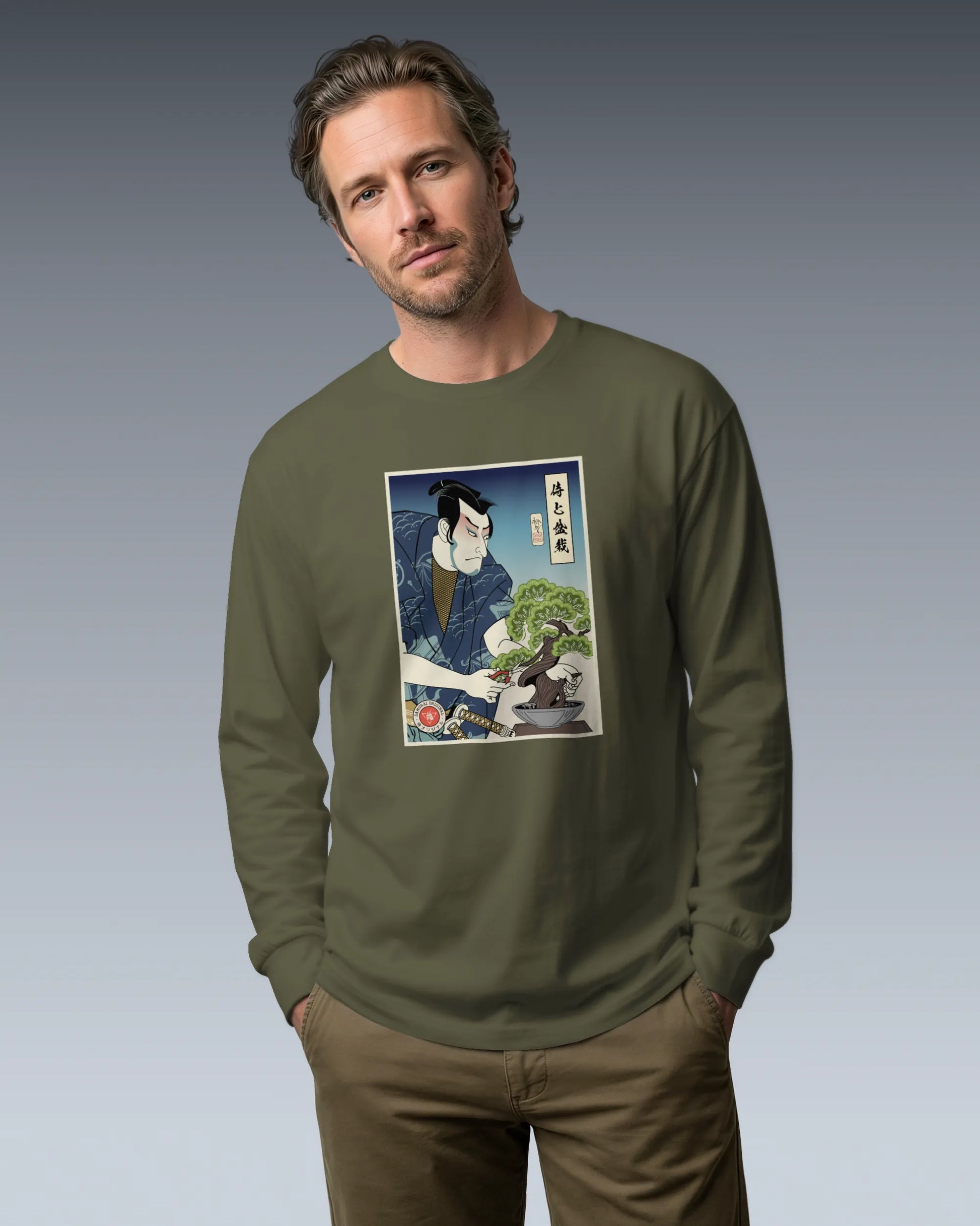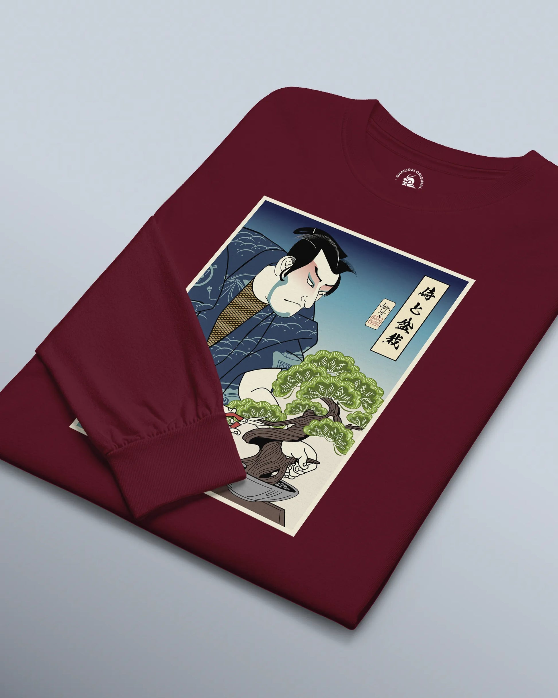 Samurai and Bonsai Tree Ukiyo-e Unisex Long Sleeve Tee