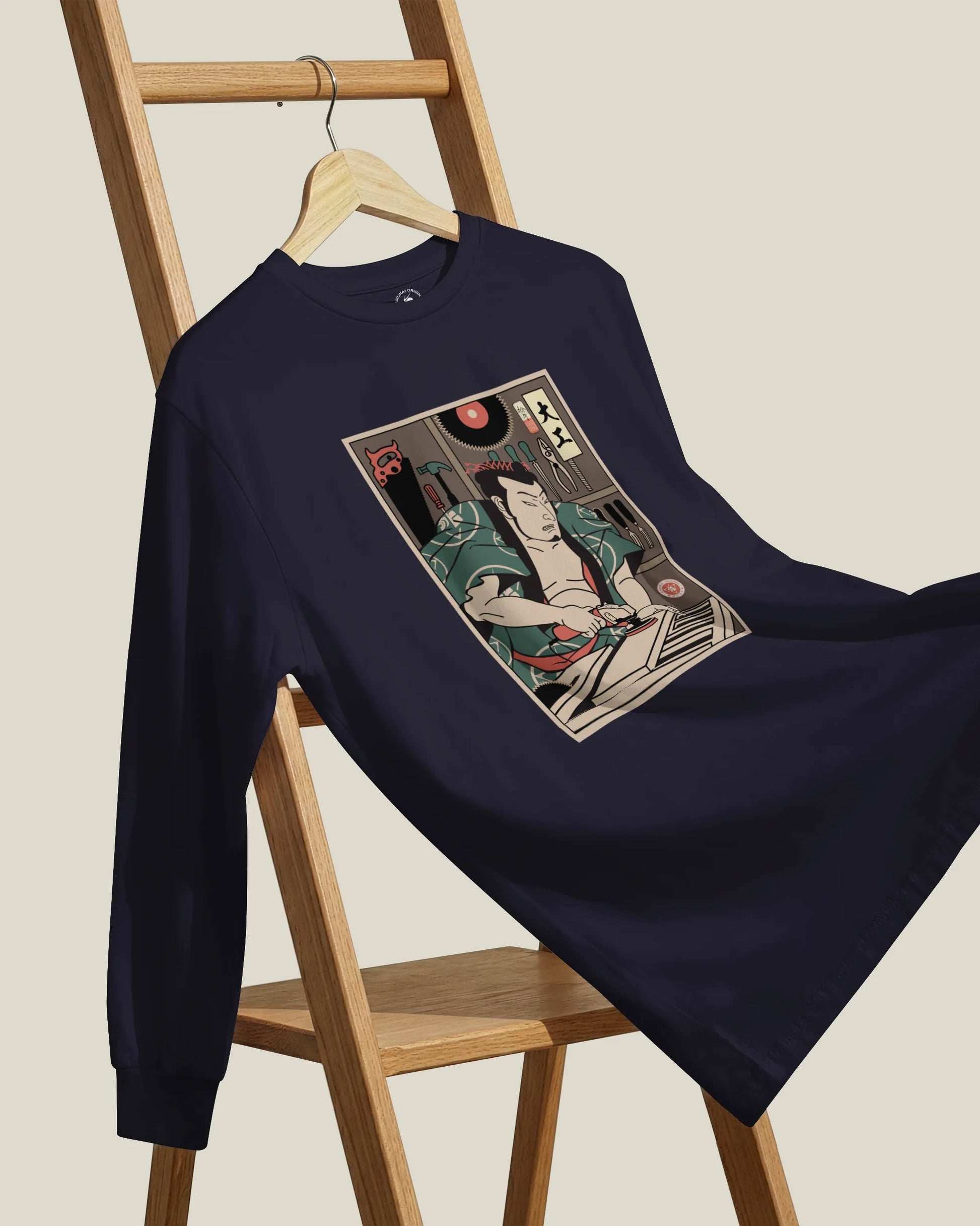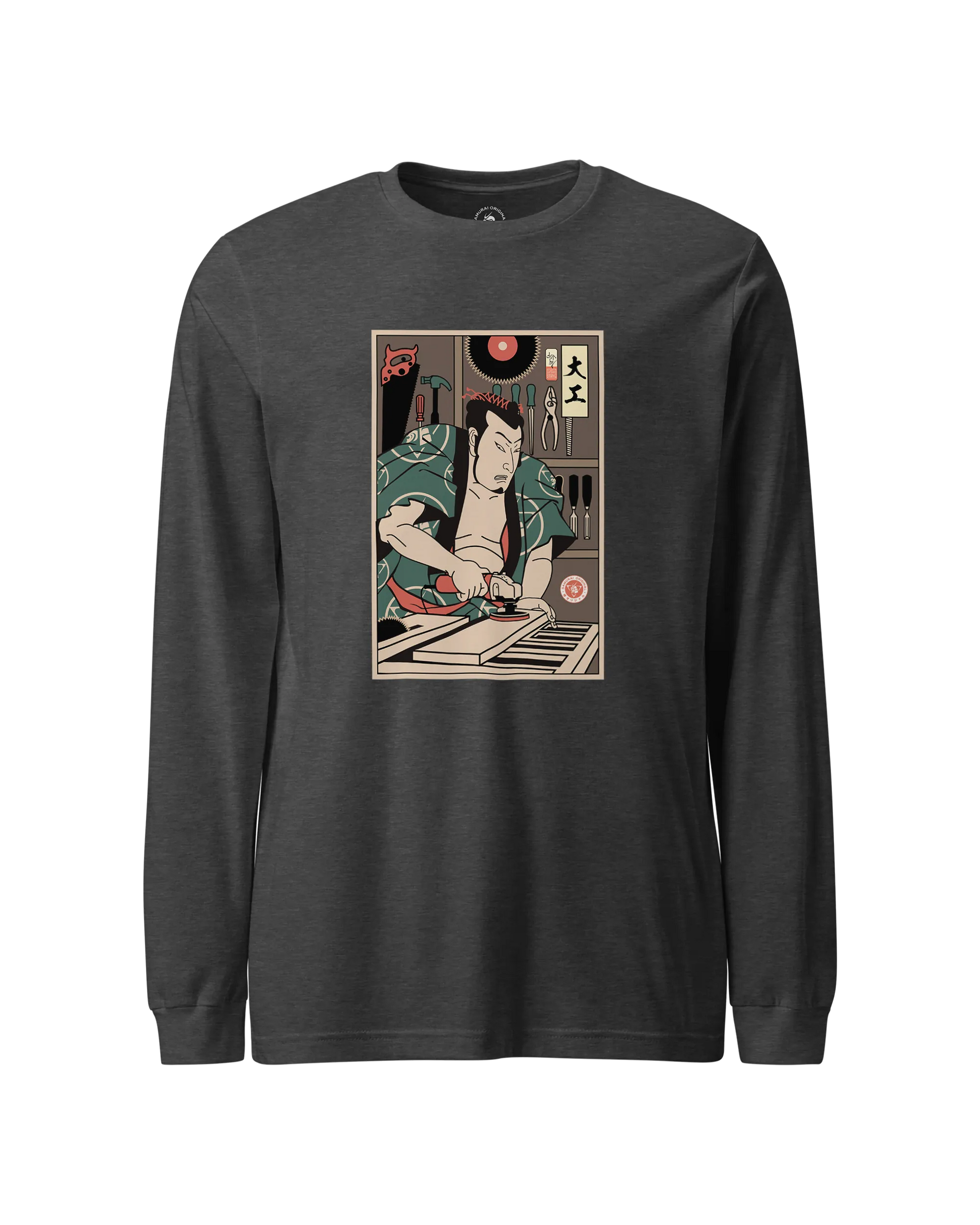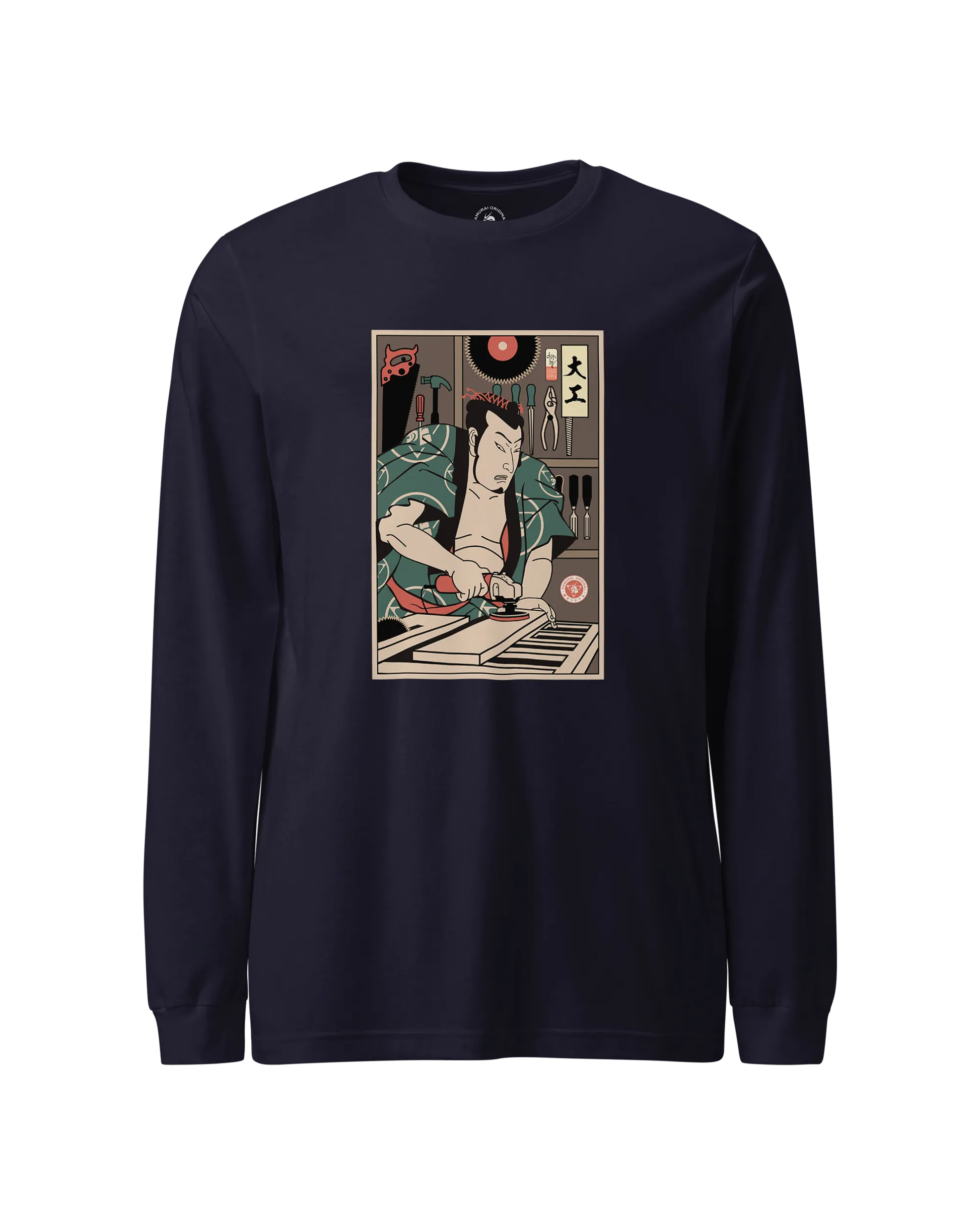 Samurai Carpenter Wood Artisan Ukiyo-e Unisex Long Sleeve Tee No.3