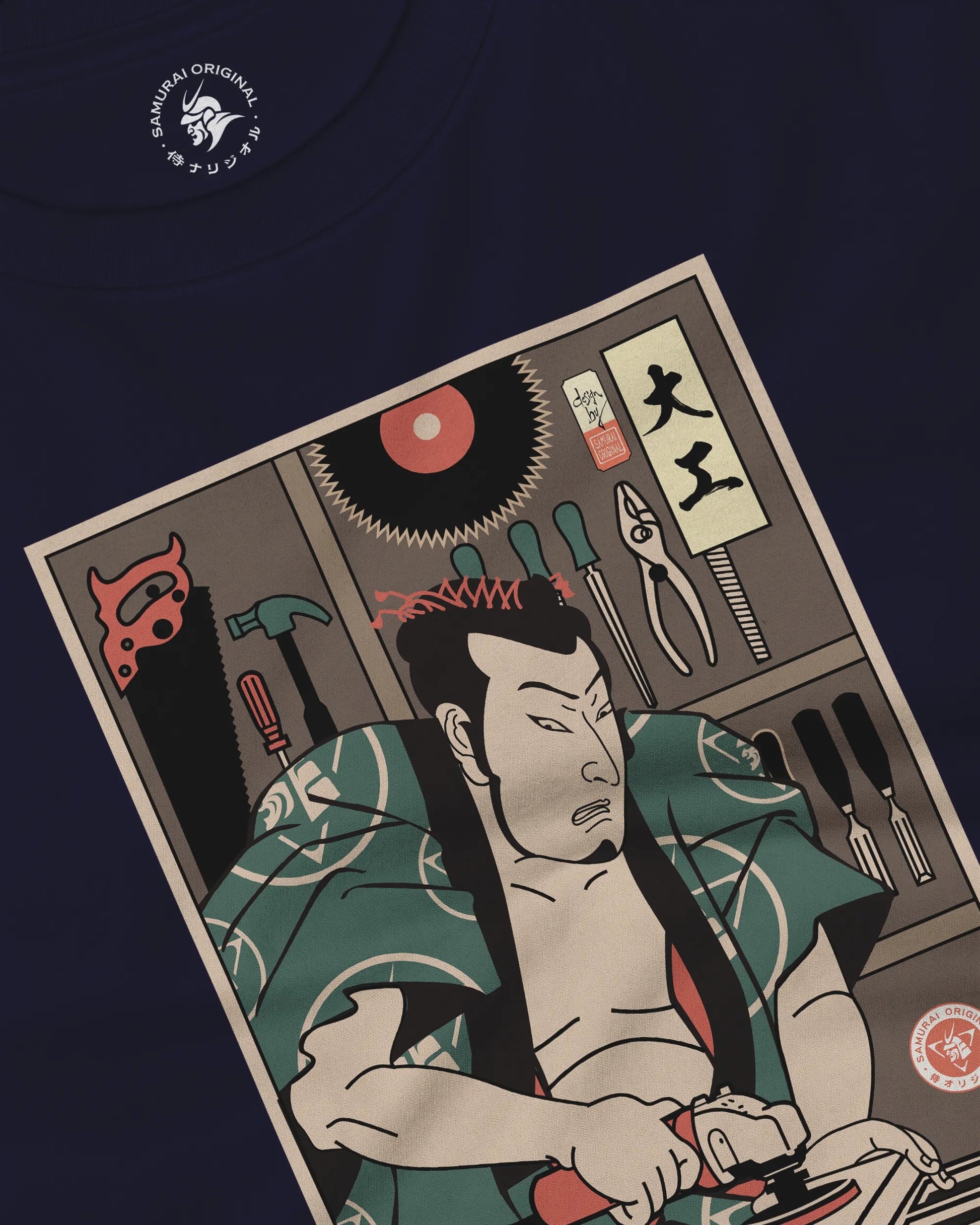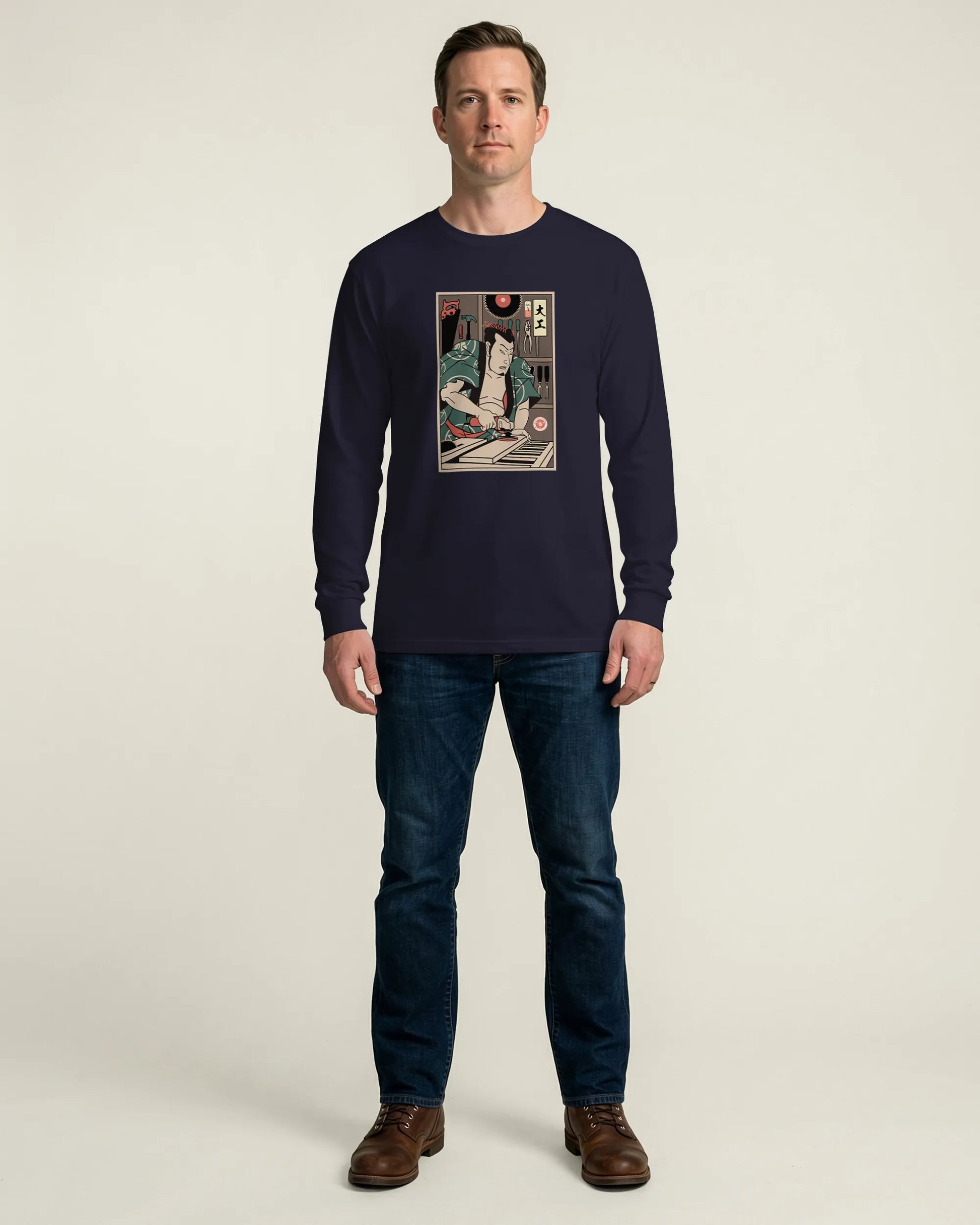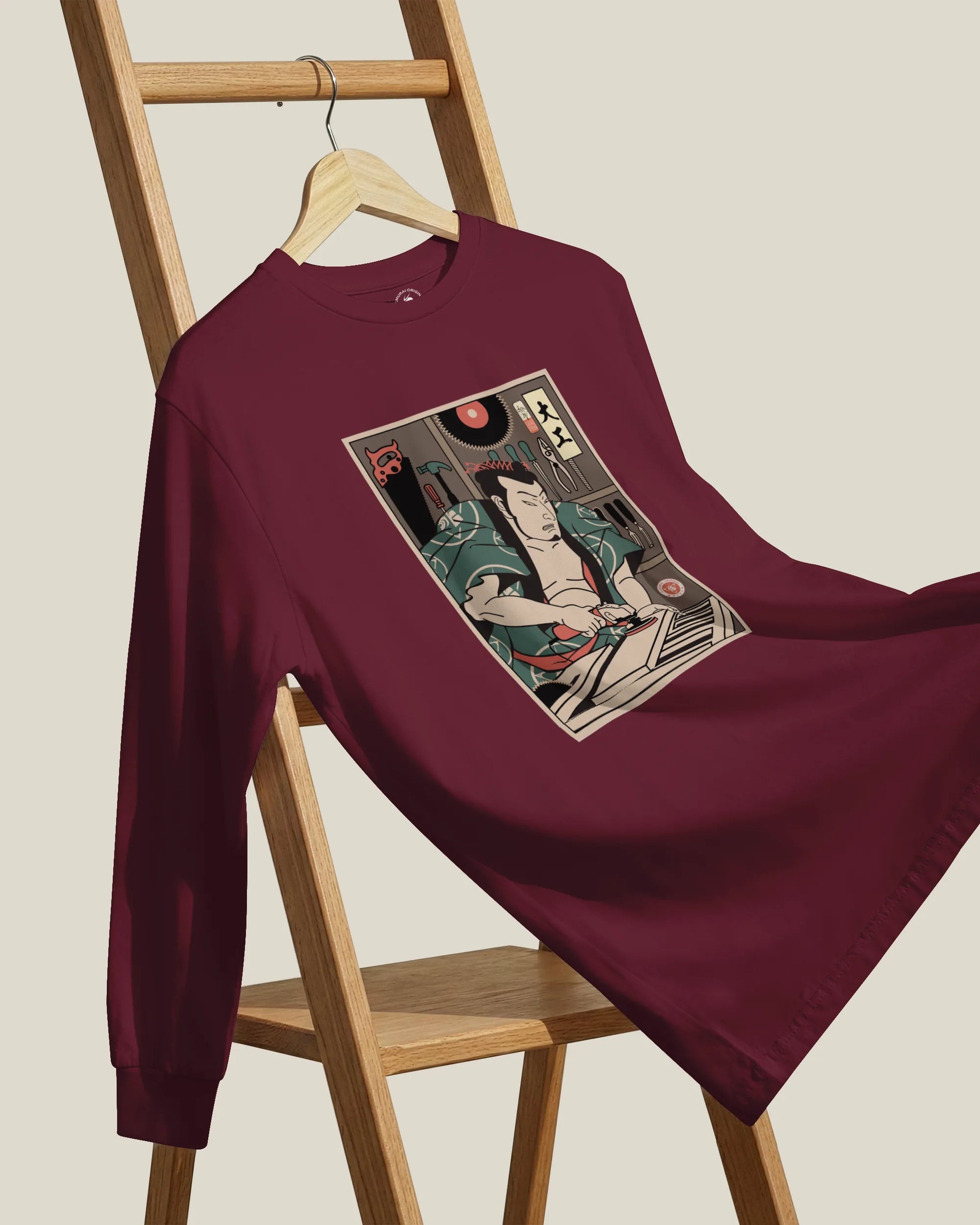 Samurai Carpenter Wood Artisan Ukiyo-e Unisex Long Sleeve Tee No.3