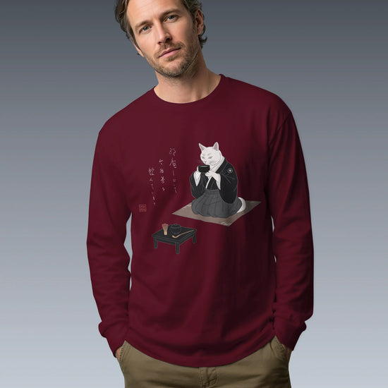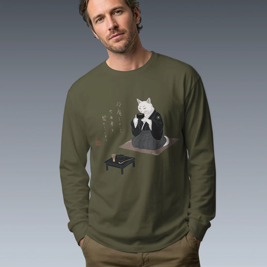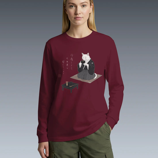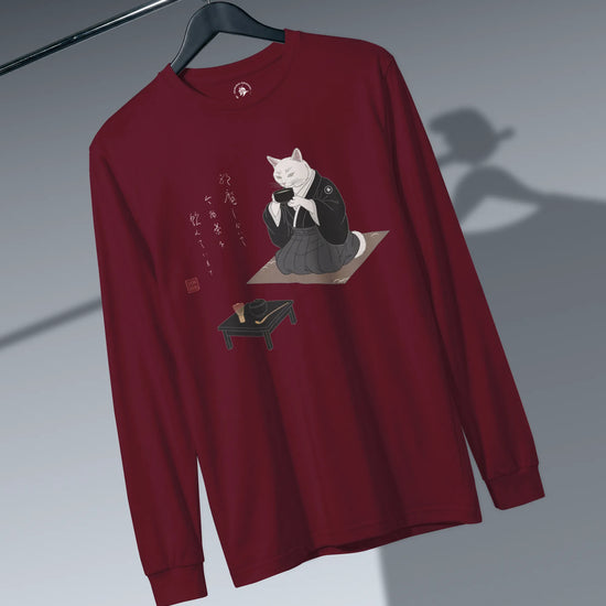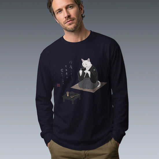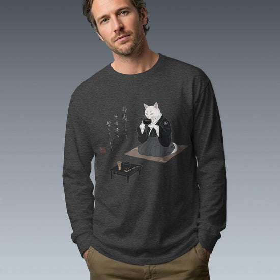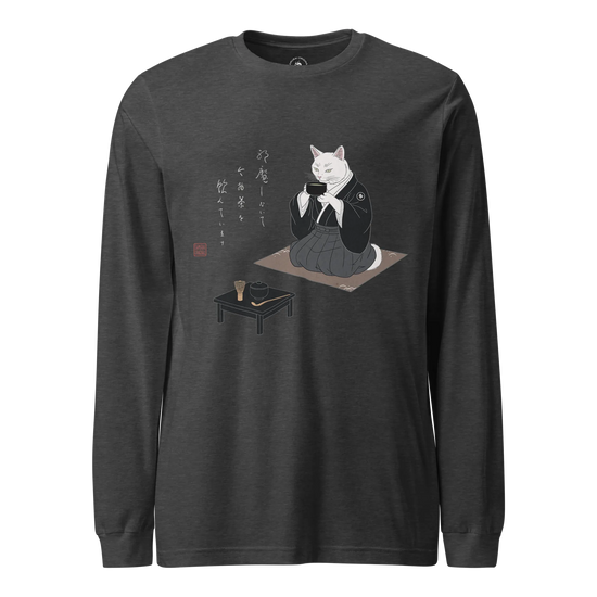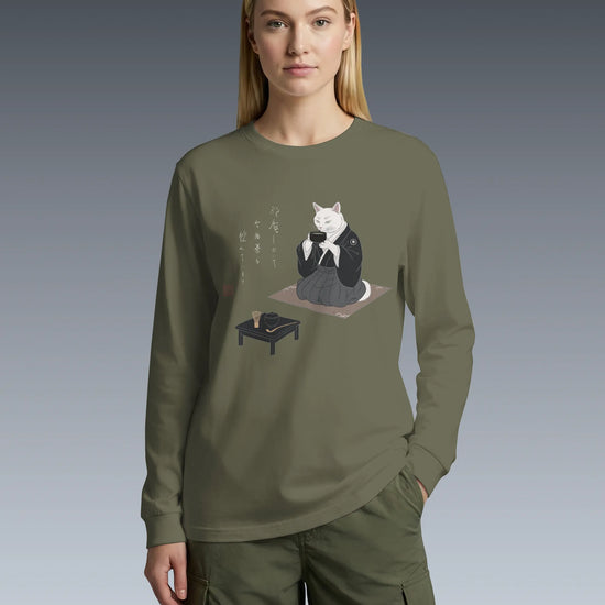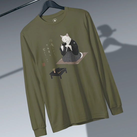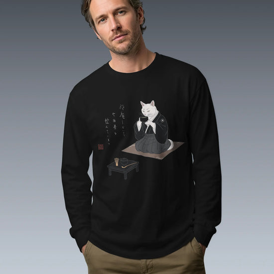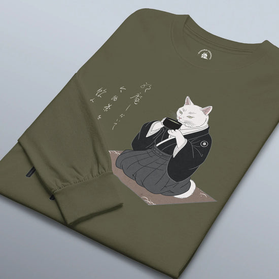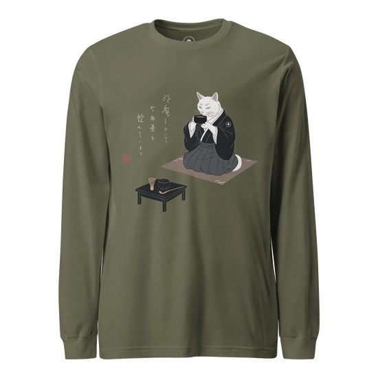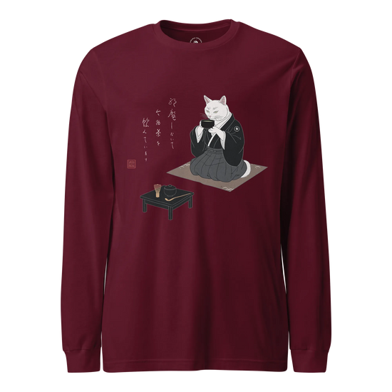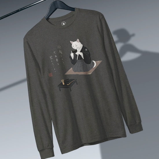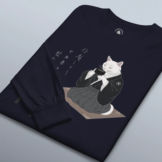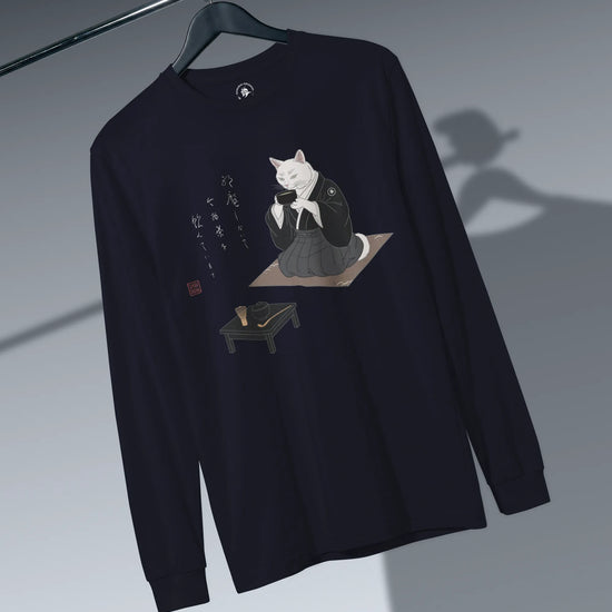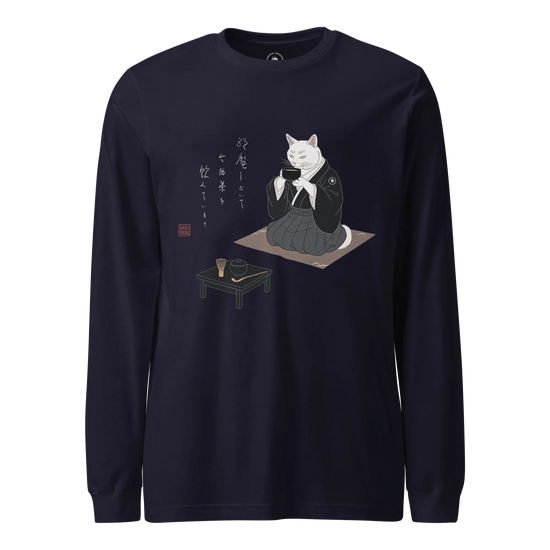 Samurai Cat Tea Time Tee Japanese Ukiyo-e Unisex Long Sleeve Tee