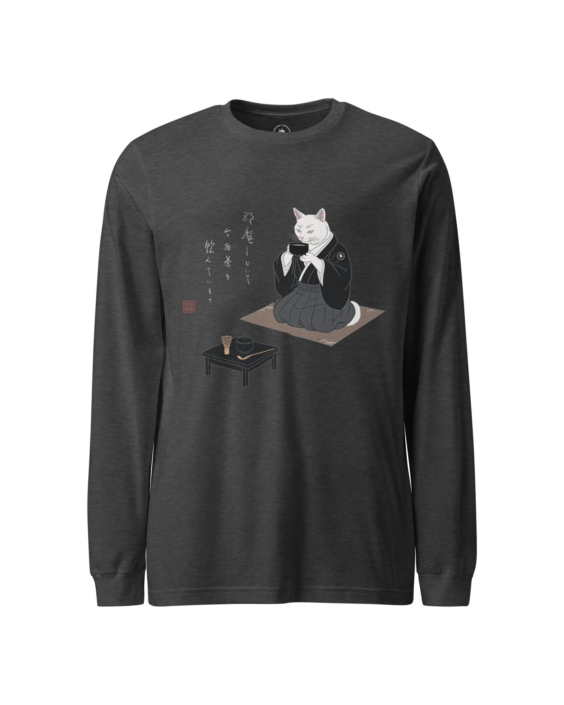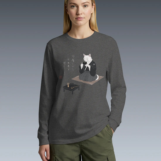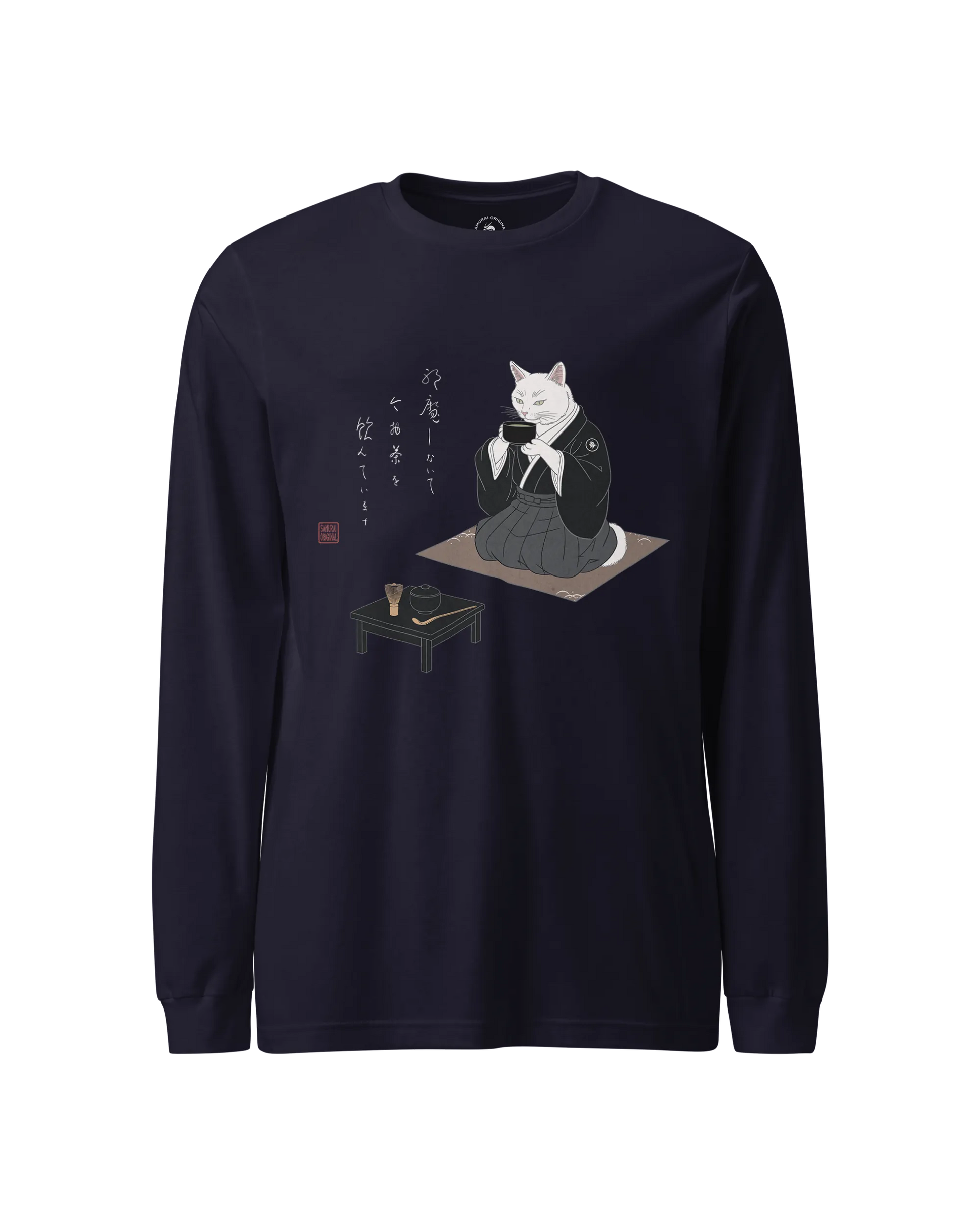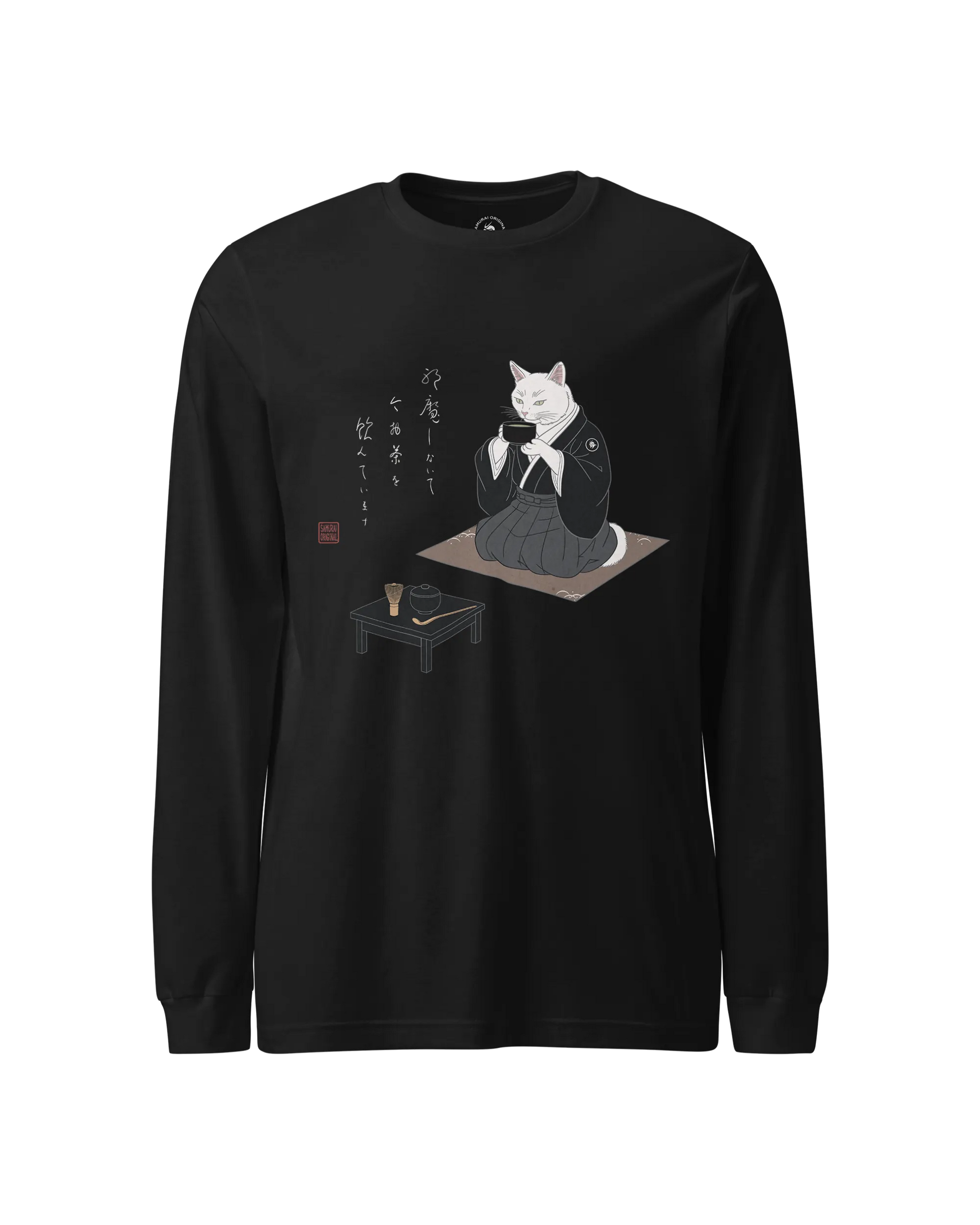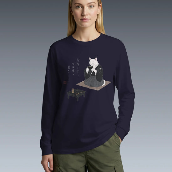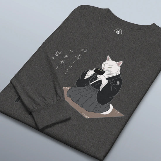 Samurai Cat Tea Time Tee Japanese Ukiyo-e Unisex Long Sleeve Tee
