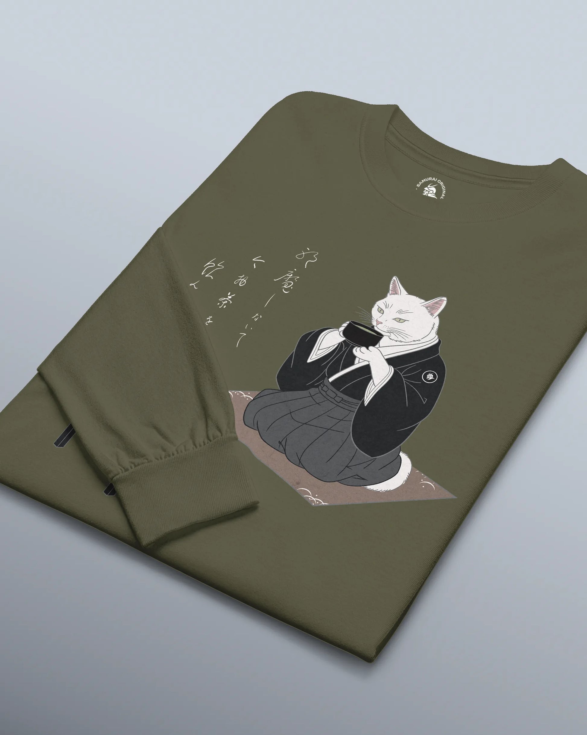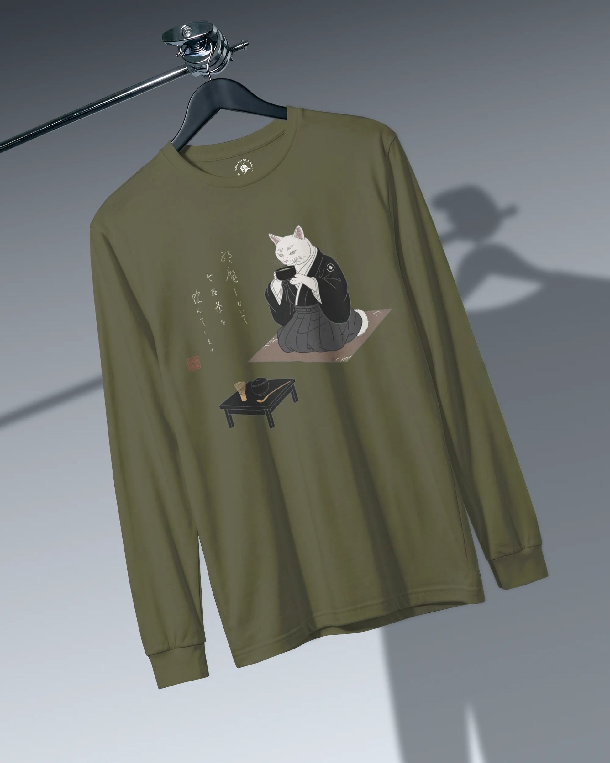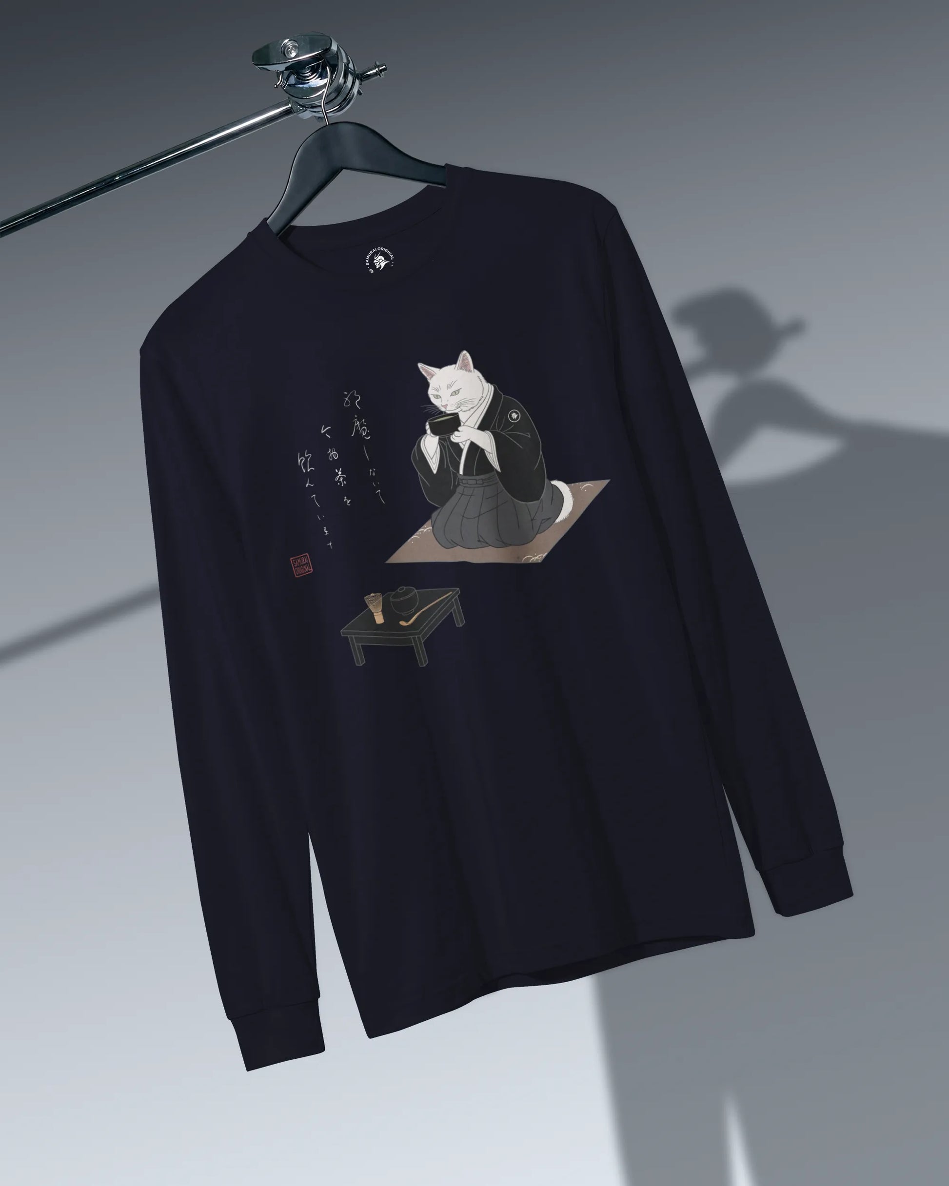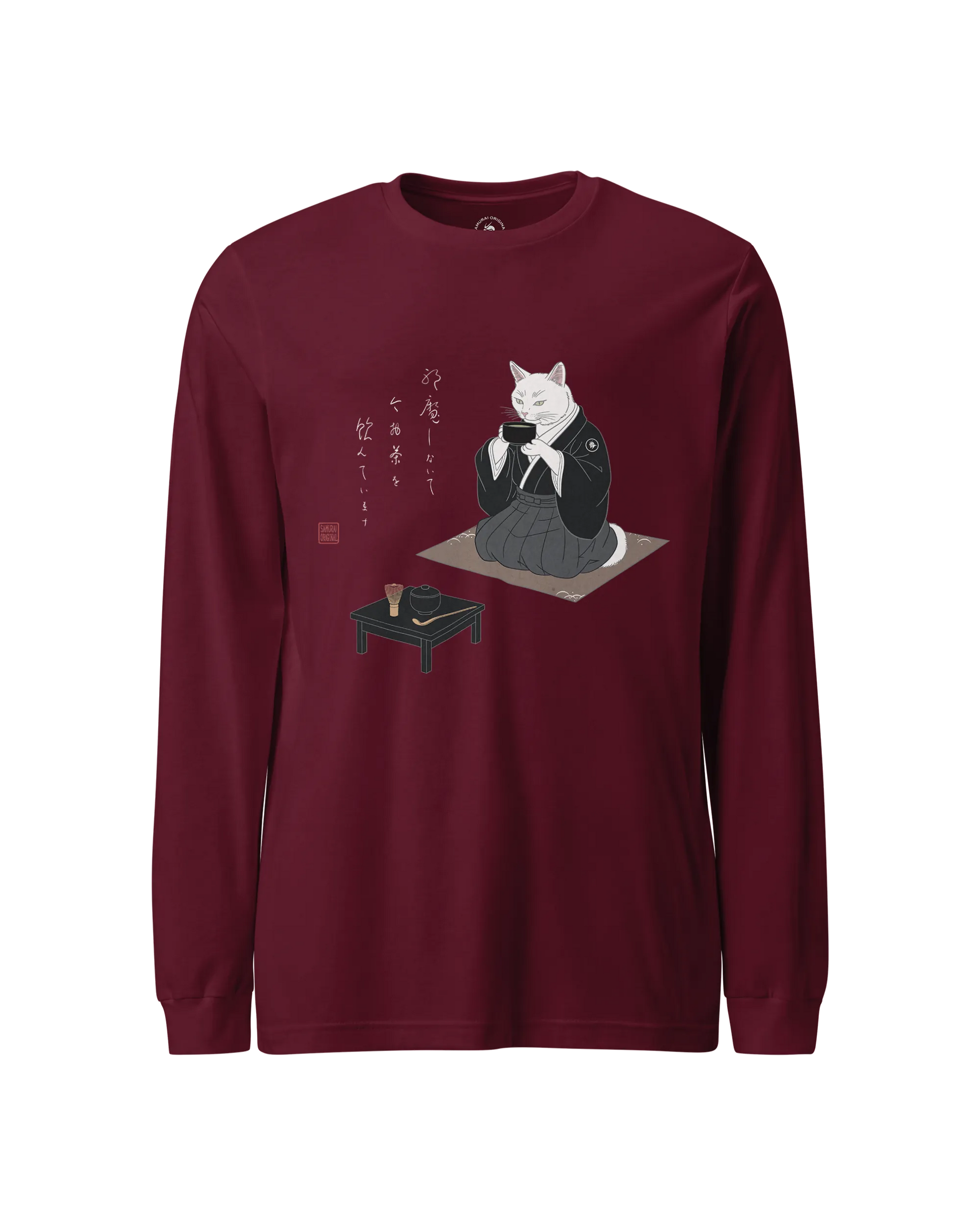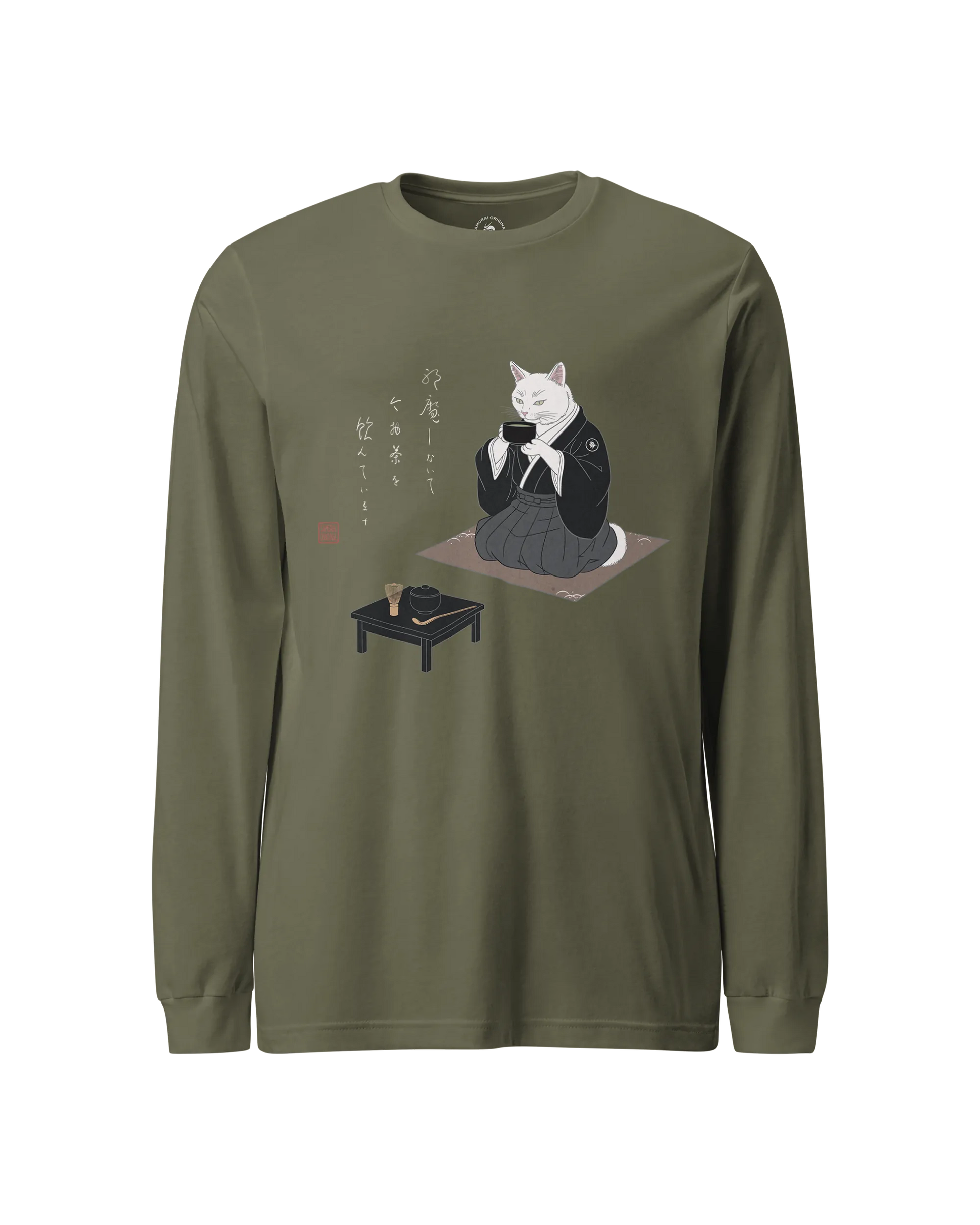 Samurai Cat Tea Time Tee Japanese Ukiyo-e Unisex Long Sleeve Tee