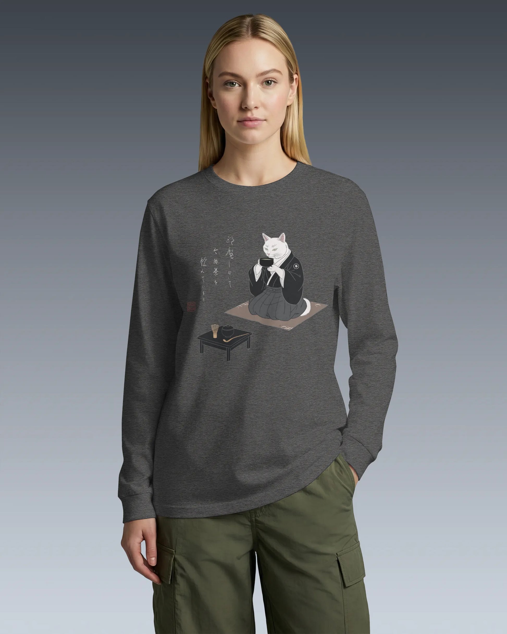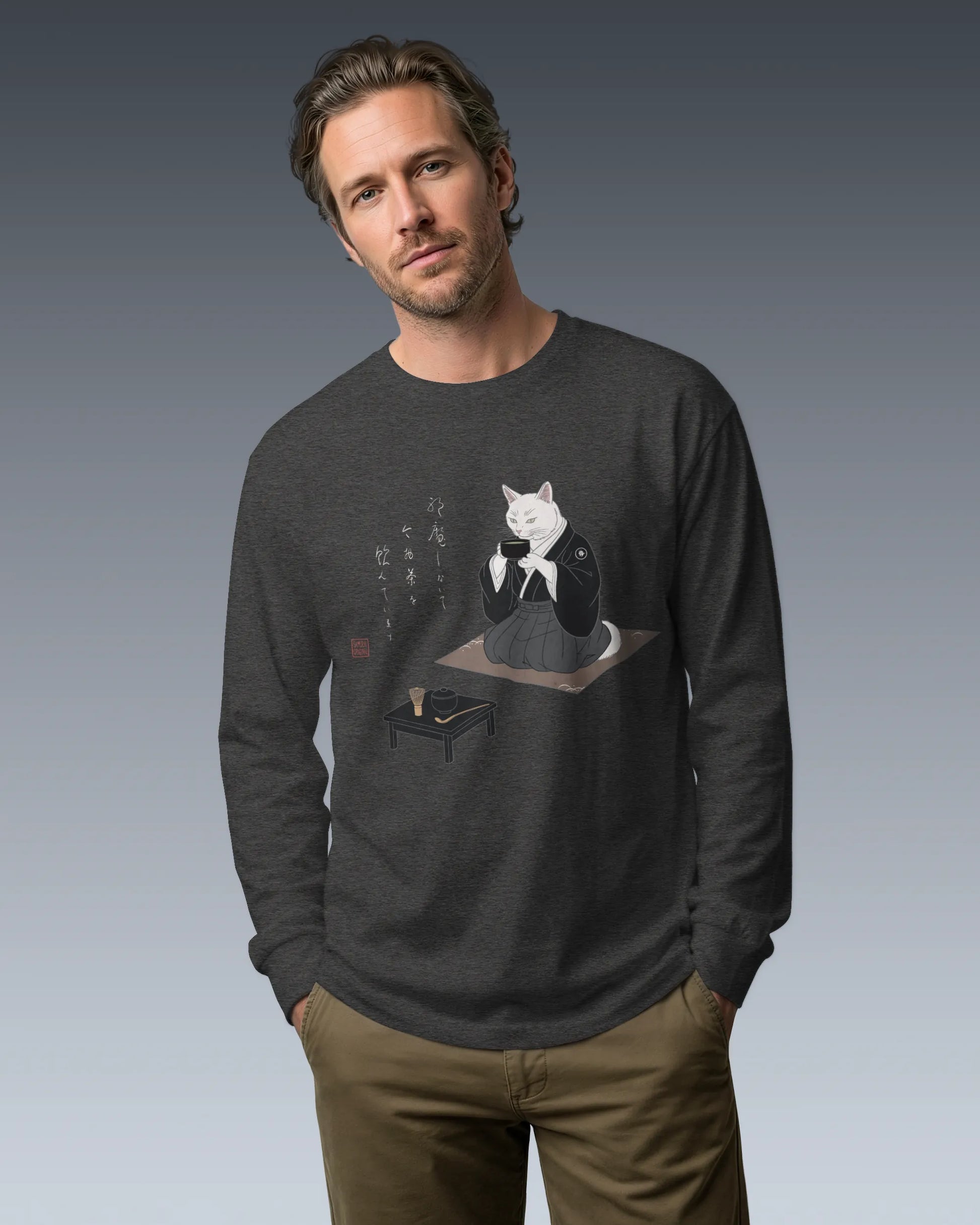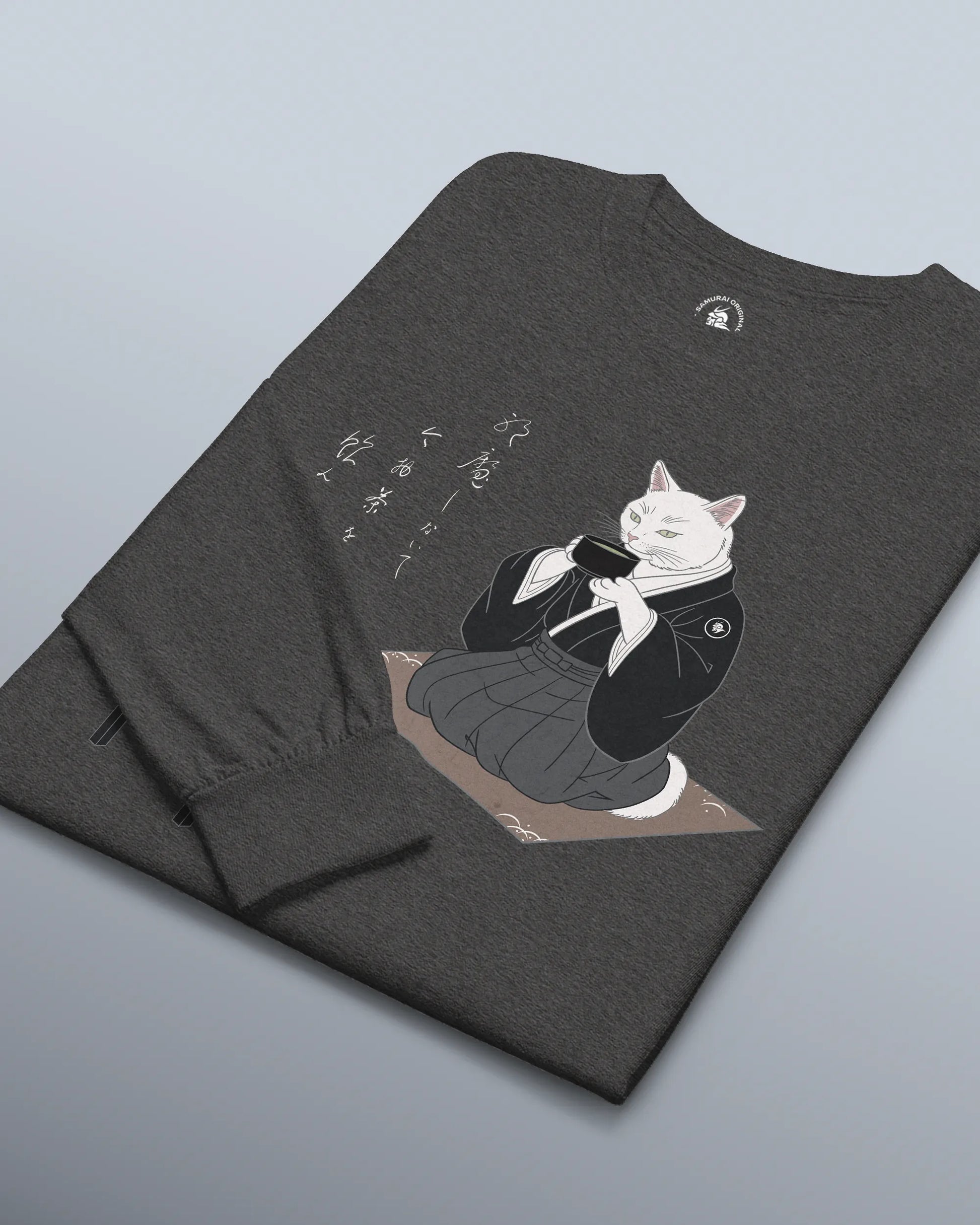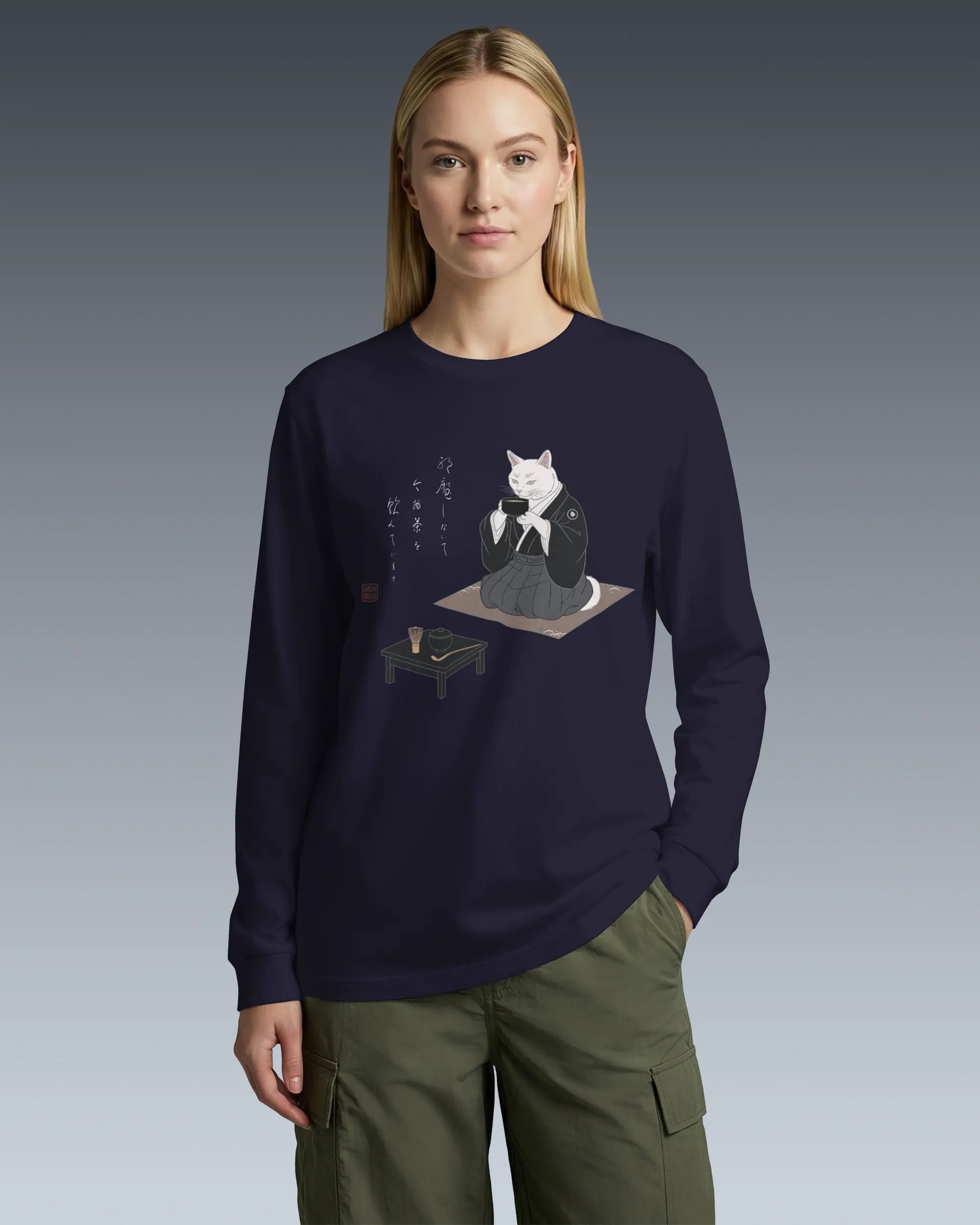 Samurai Cat Tea Time Tee Japanese Ukiyo-e Unisex Long Sleeve Tee