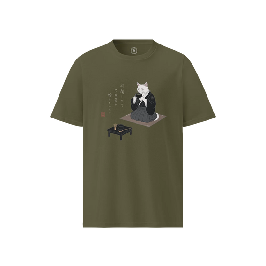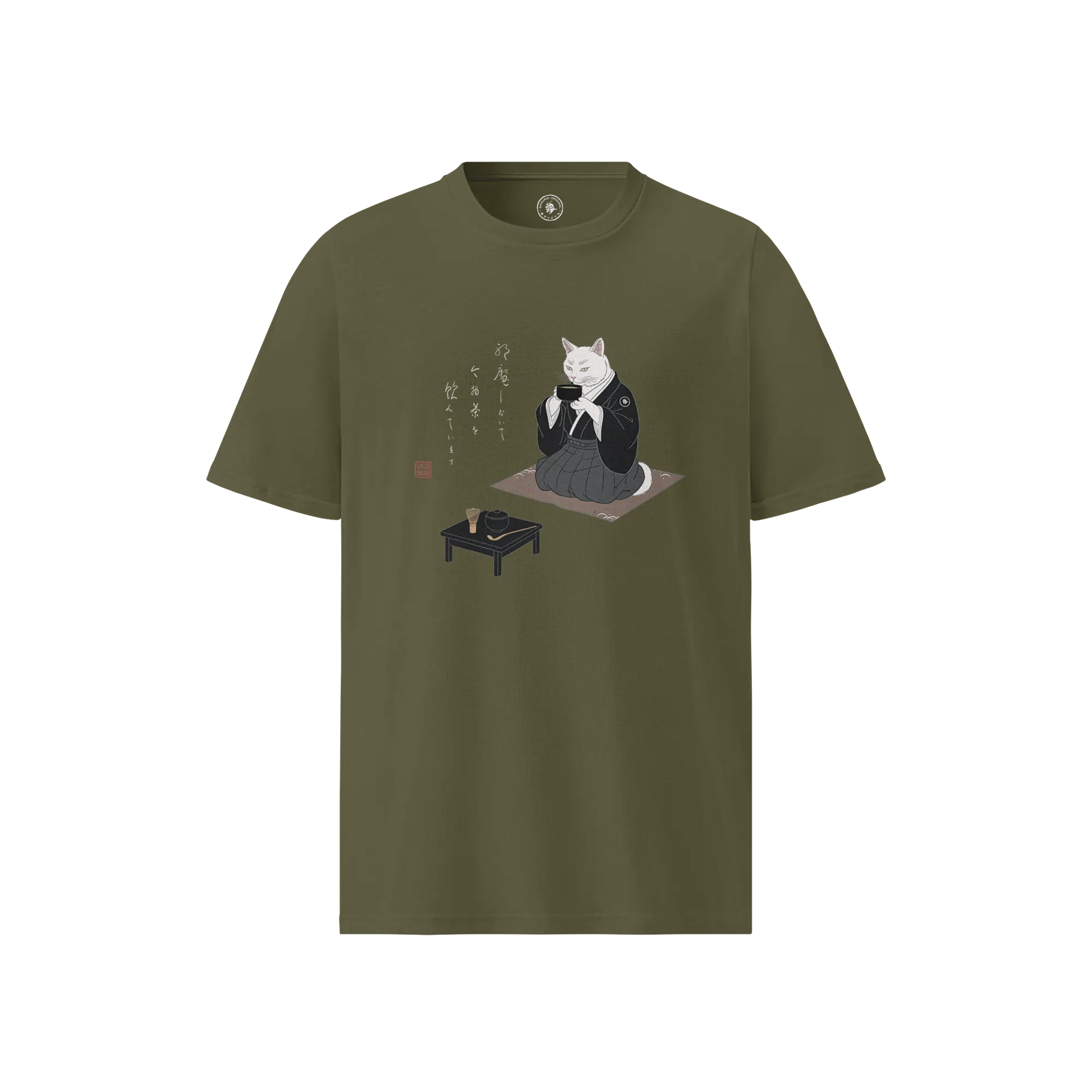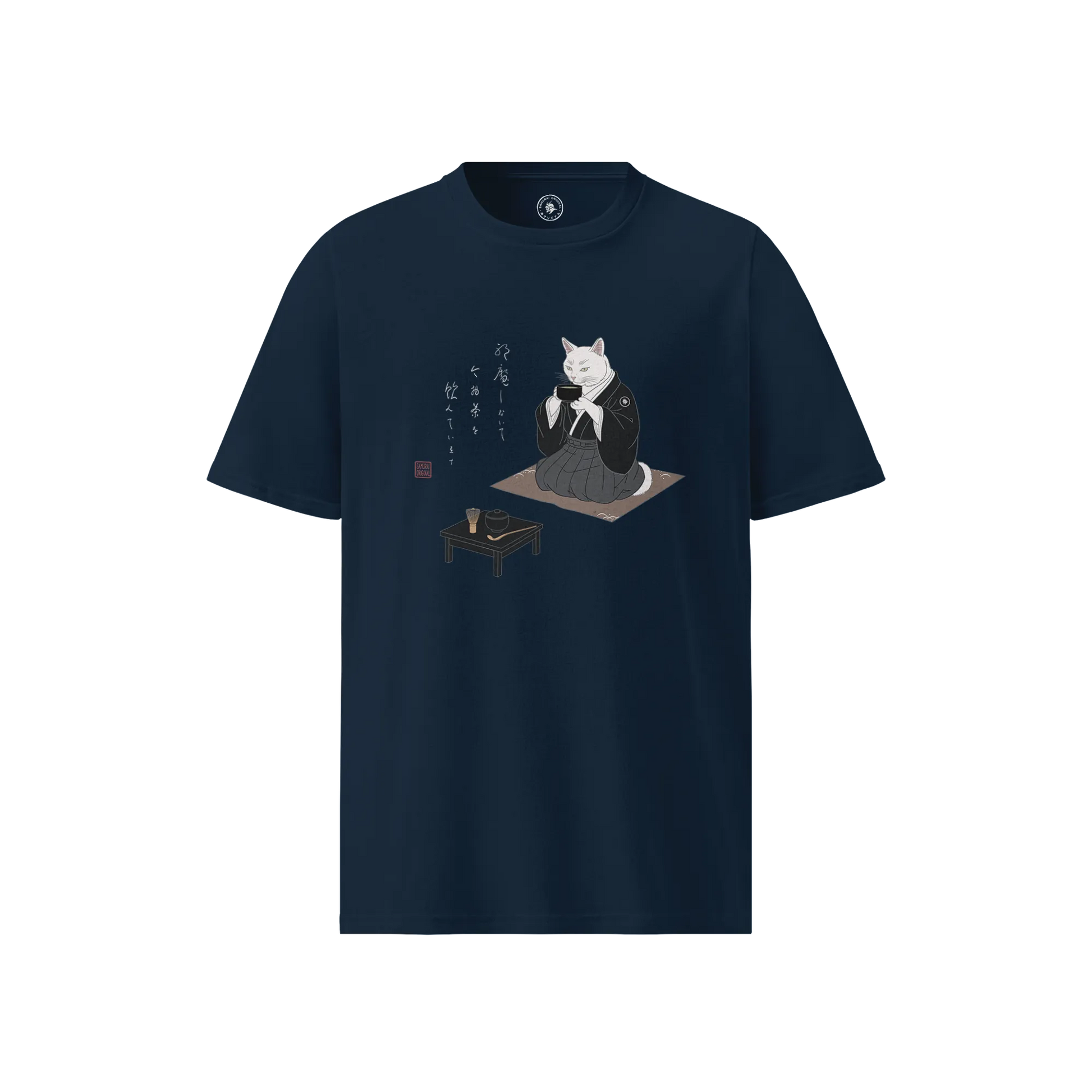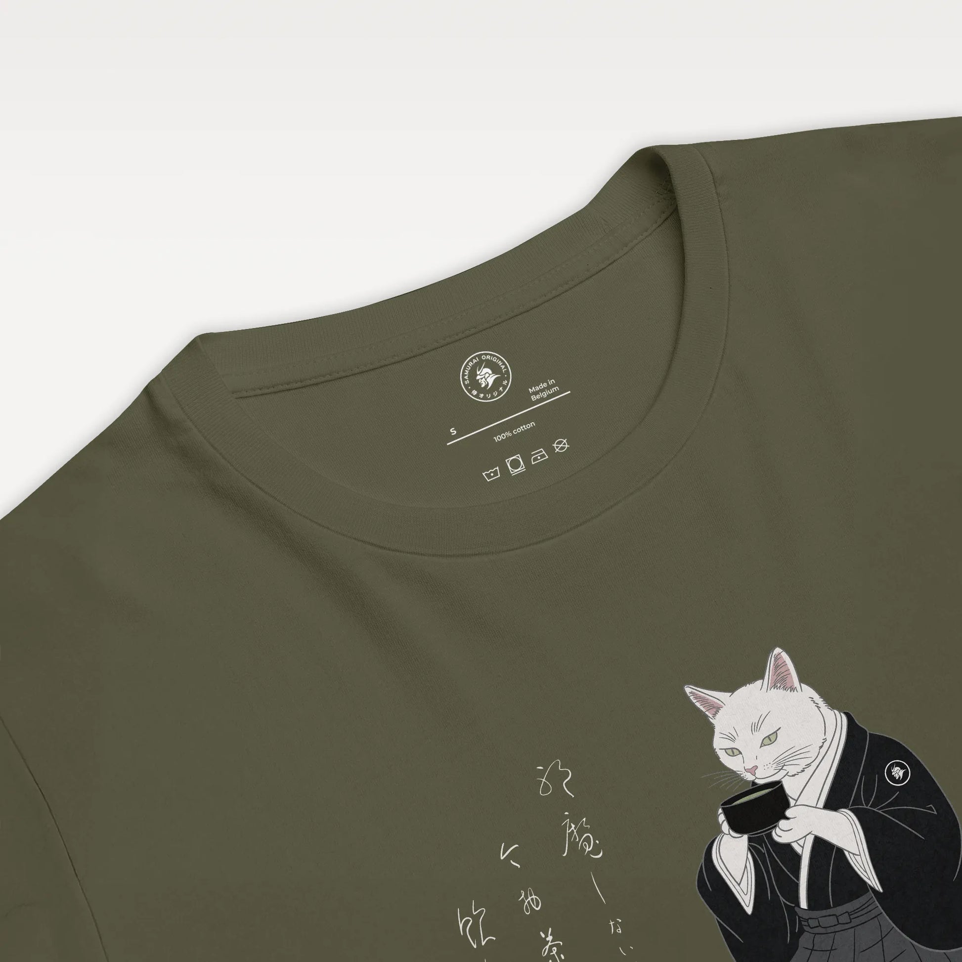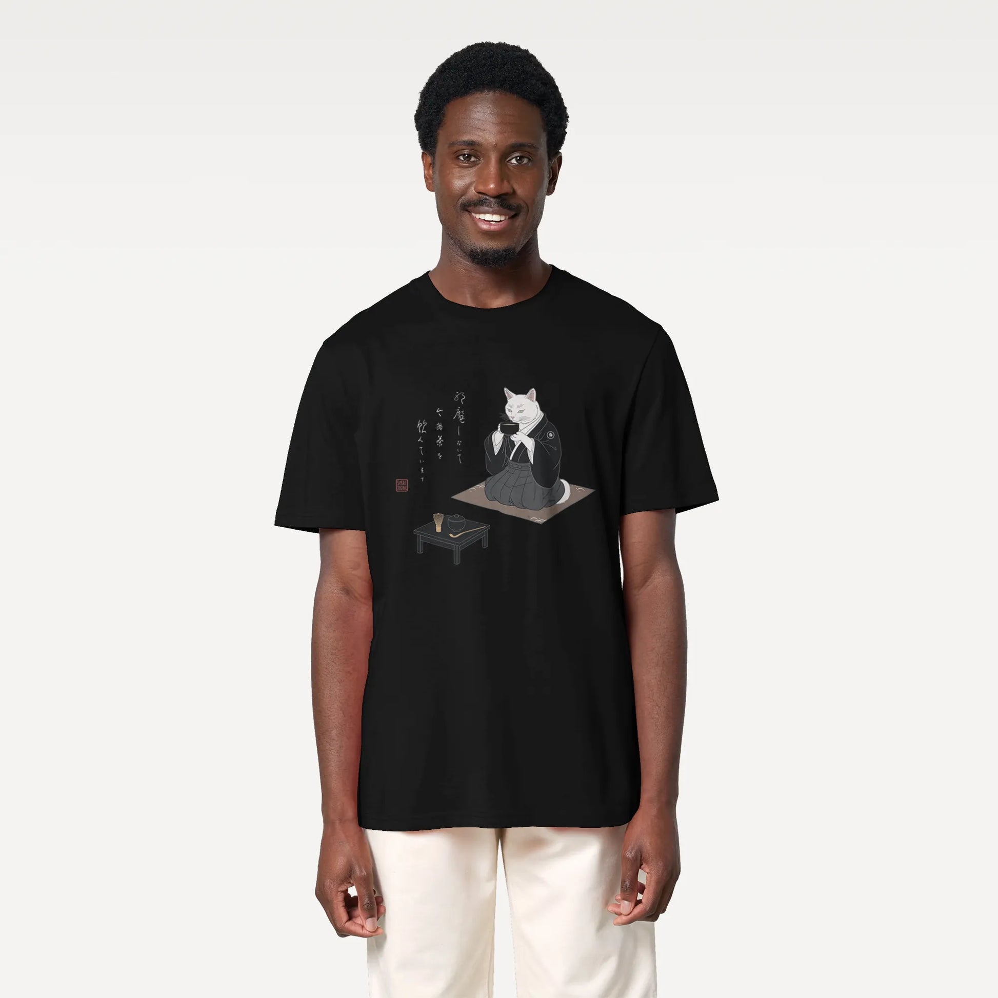 Samurai Cat Tea Time Tee Japanese Ukiyo-e Unisex Organic T-shirt