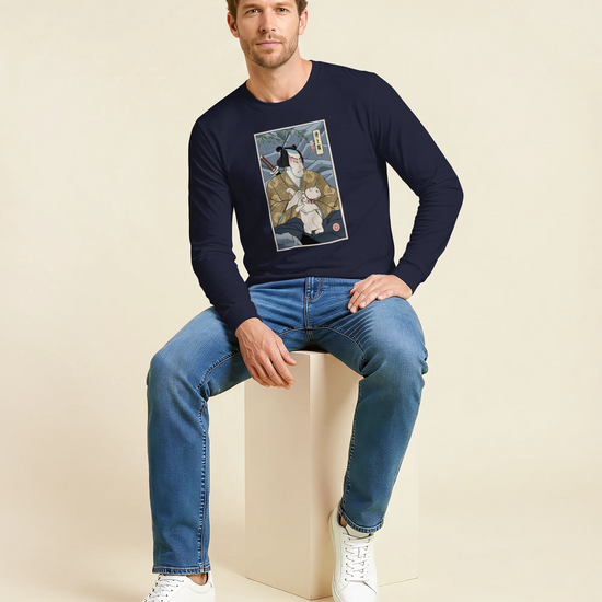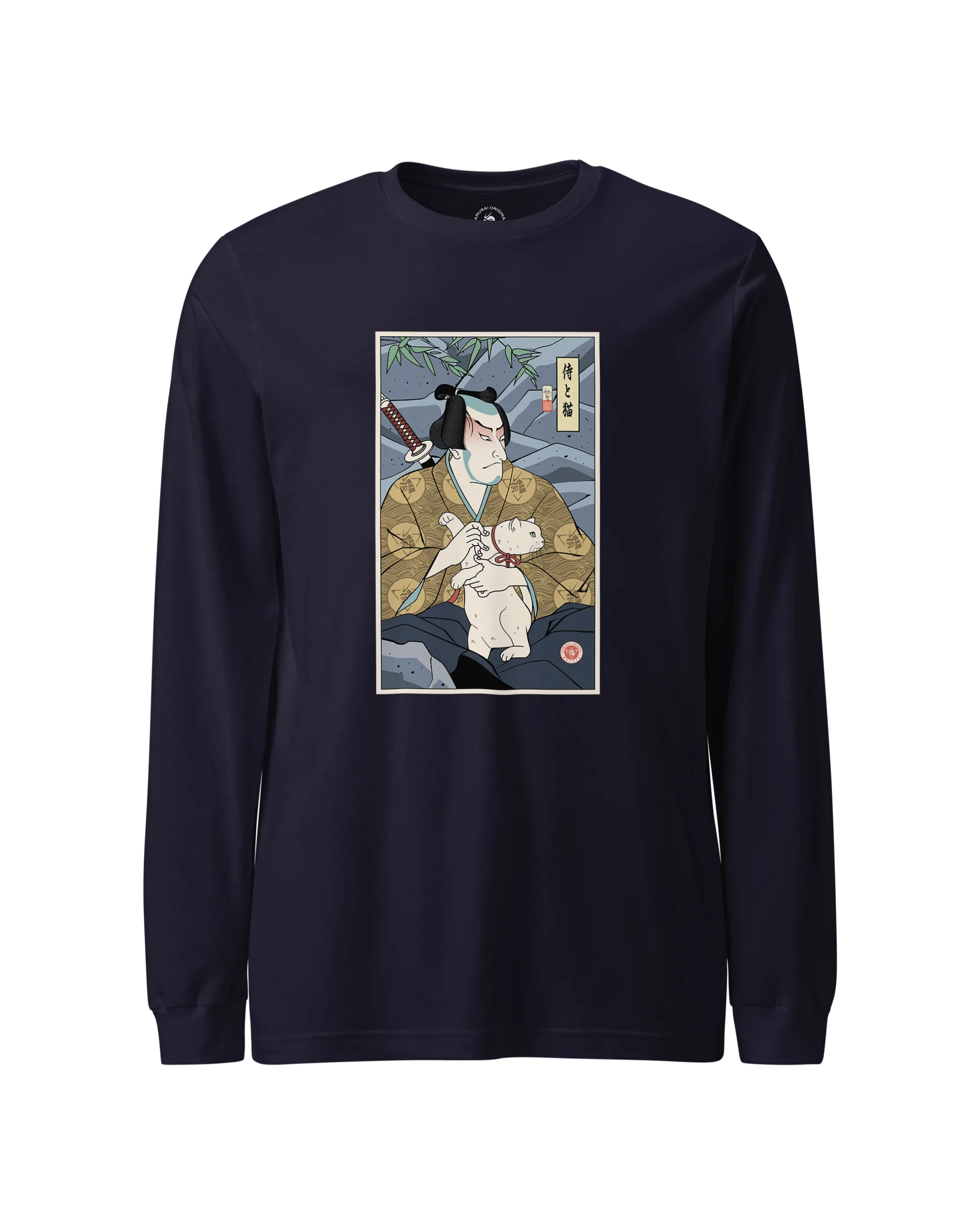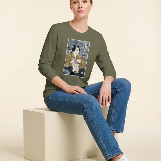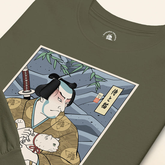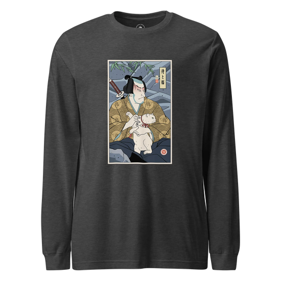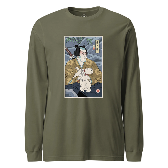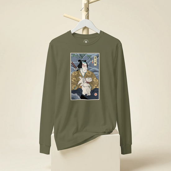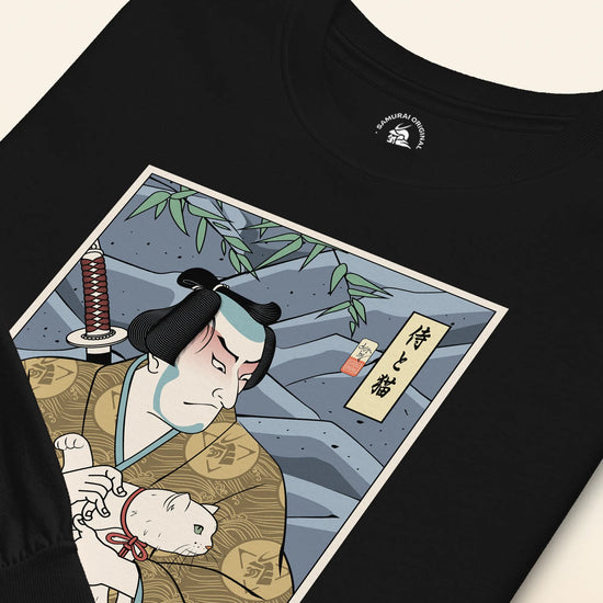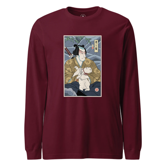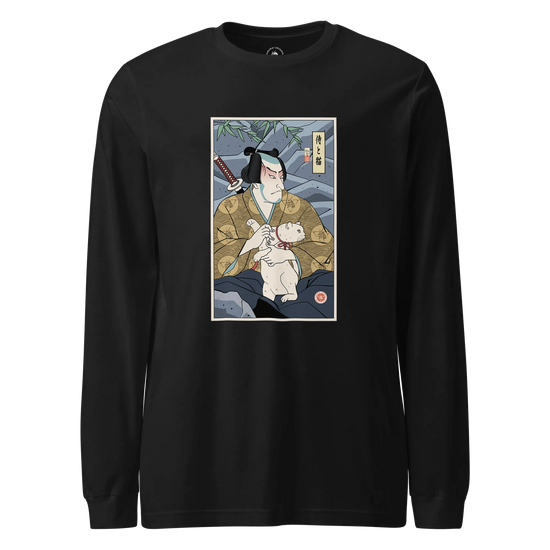 Samurai & Cat Funny Japanese Ukiyo-e Unisex Long Sleeve Tee