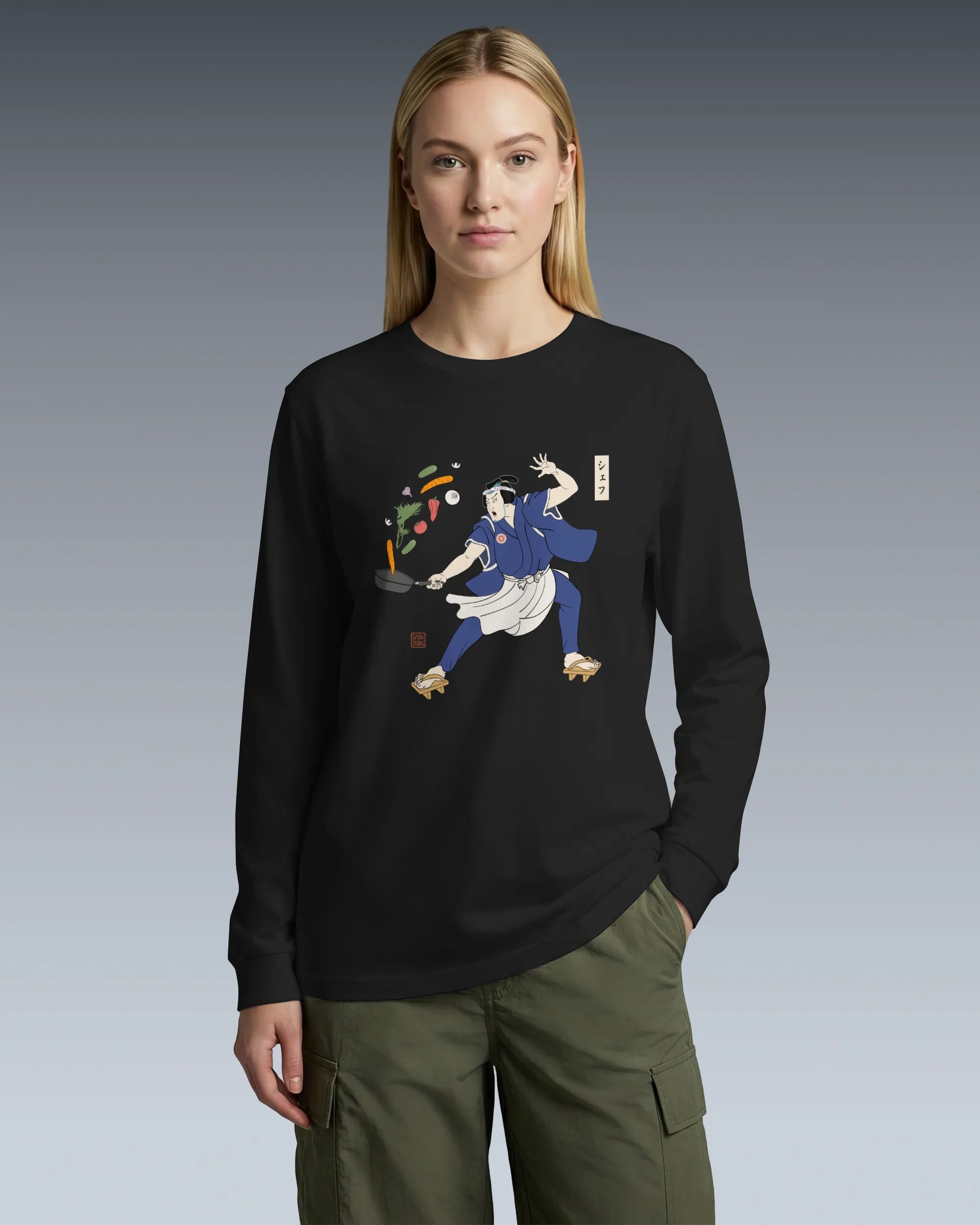Samurai Chef Japanese Ukiyo-e Unisex Long Sleeve Tee