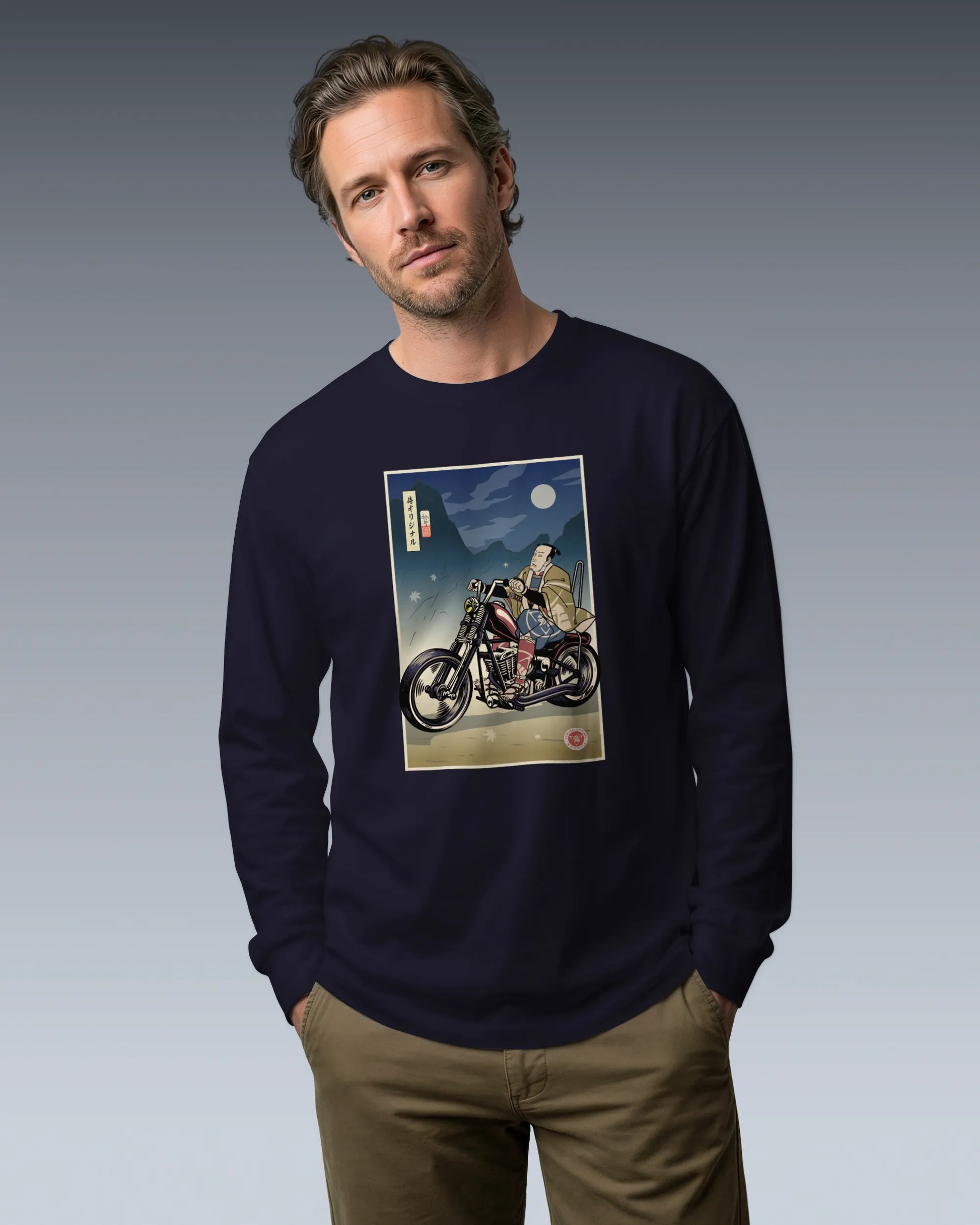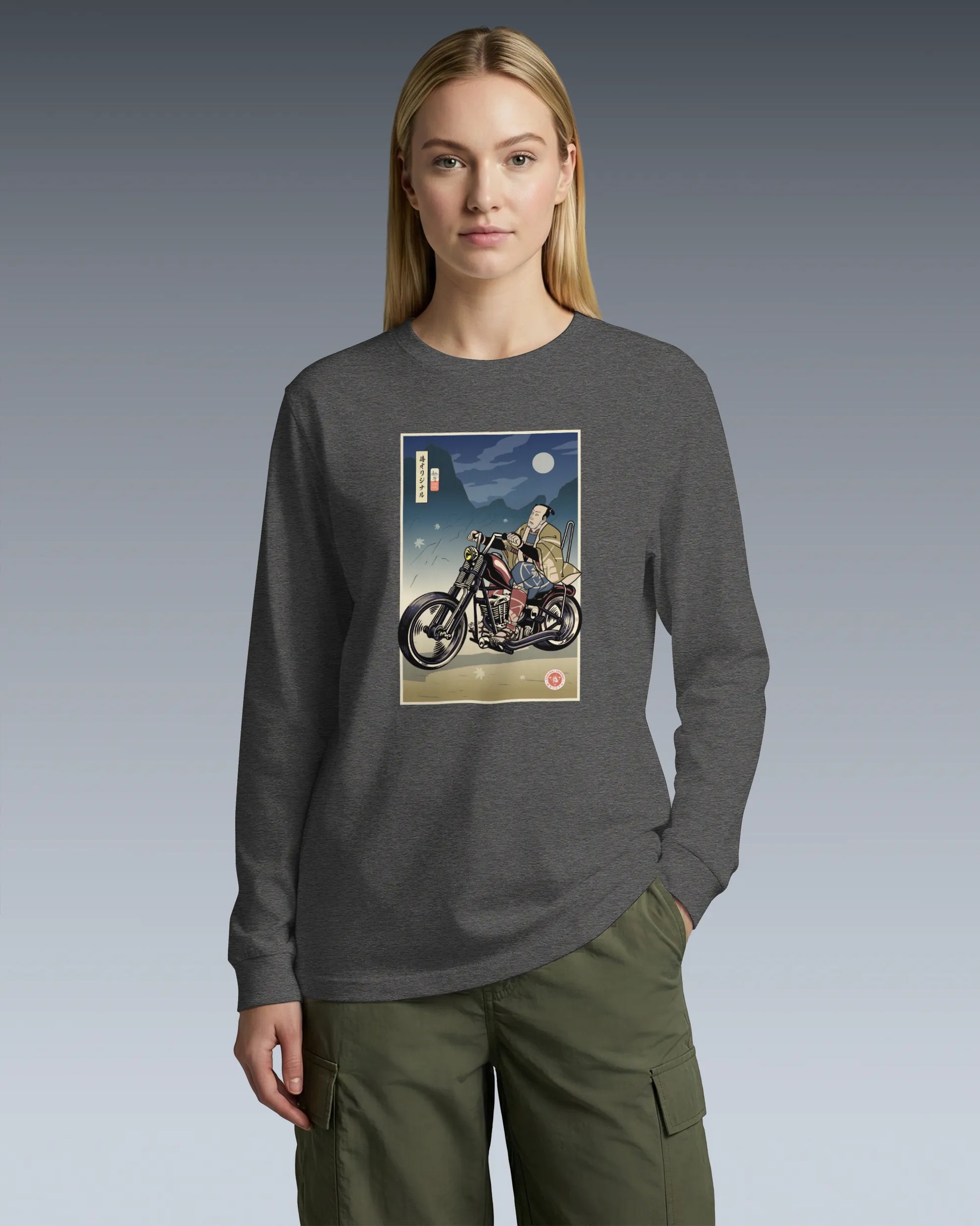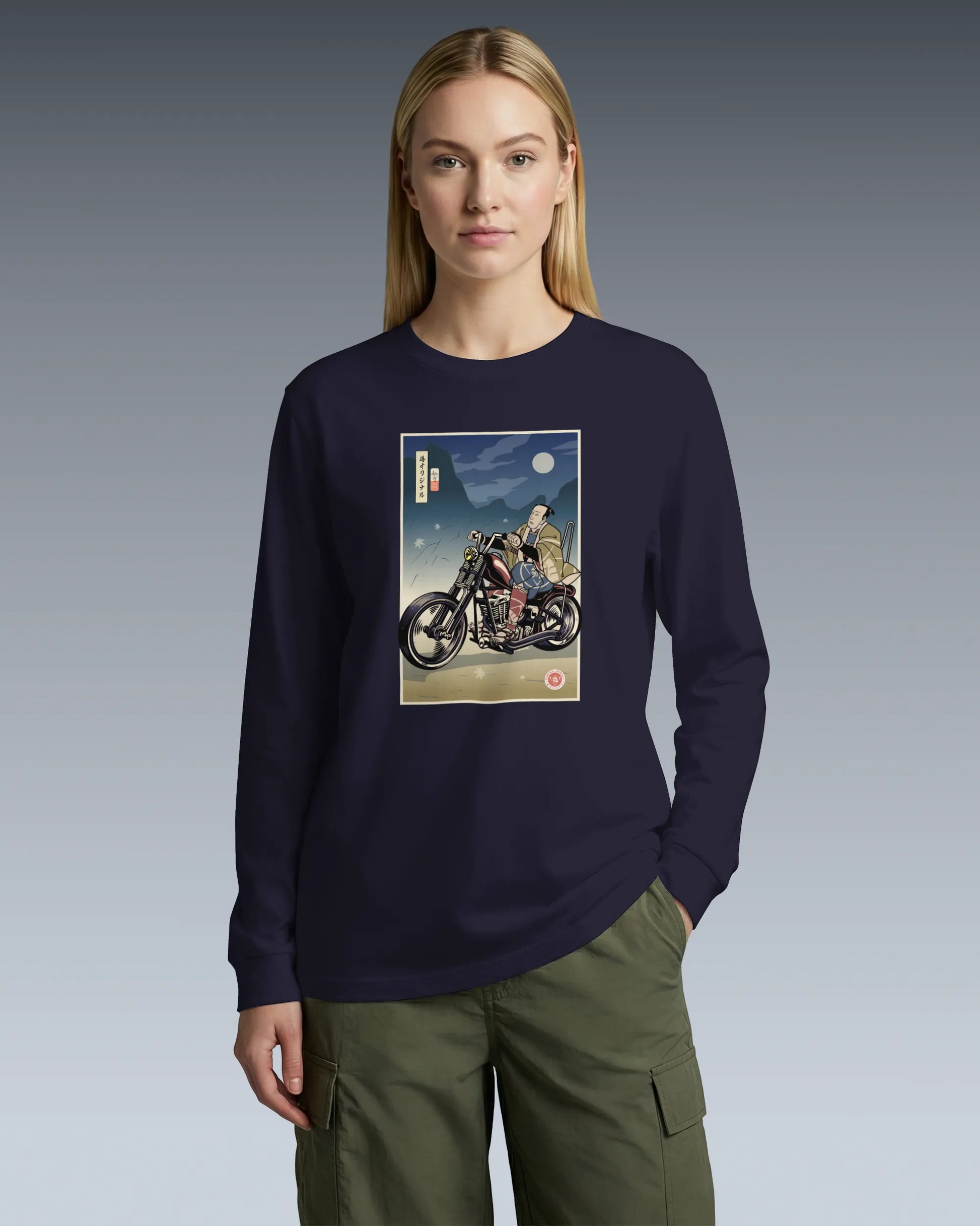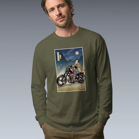Samurai Chopper Motorcycle Ukiyo-e Unisex Long Sleeve Tee