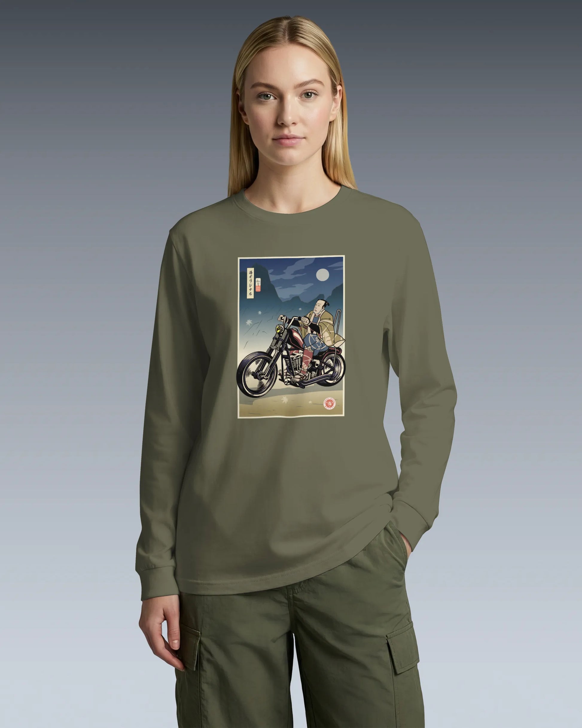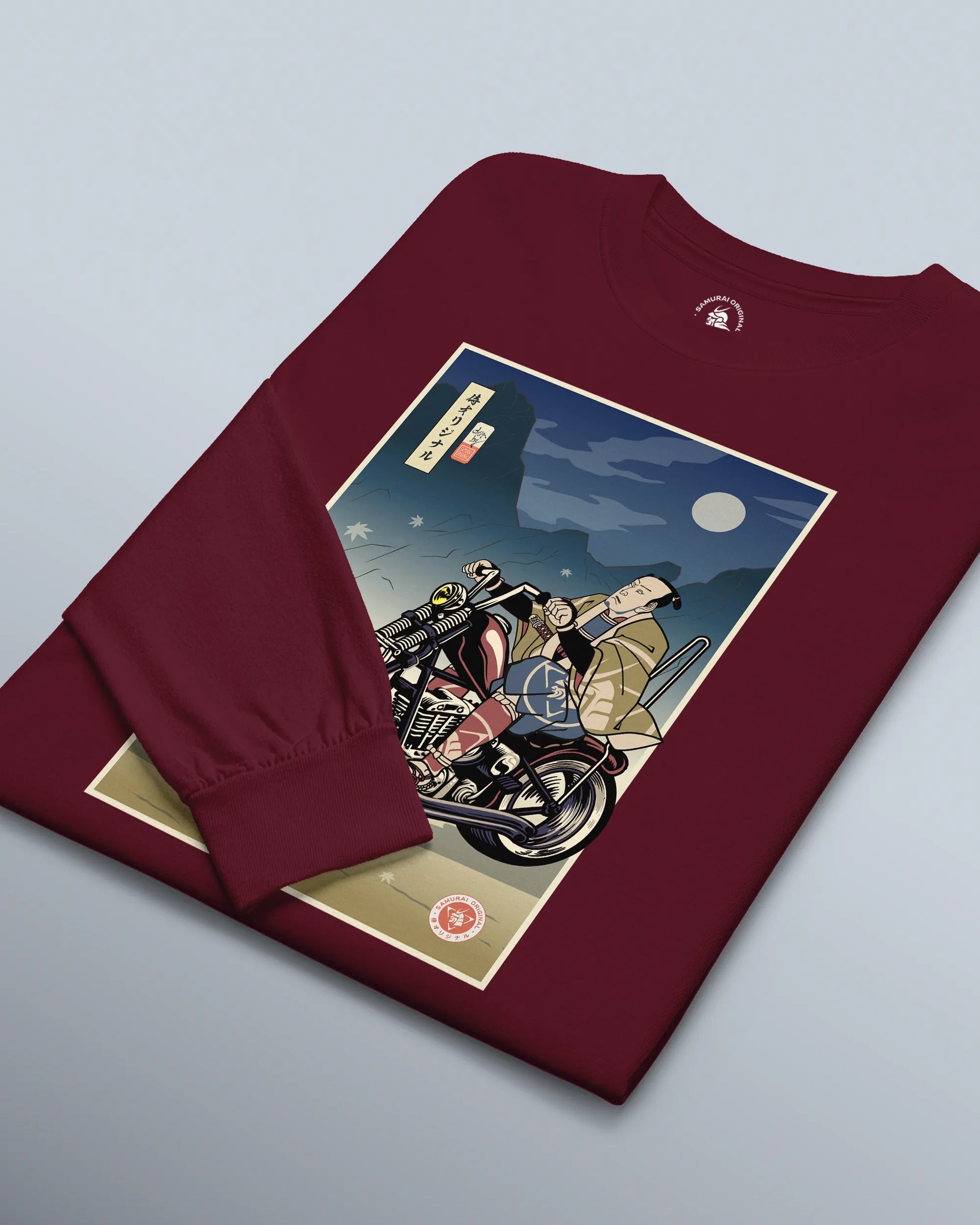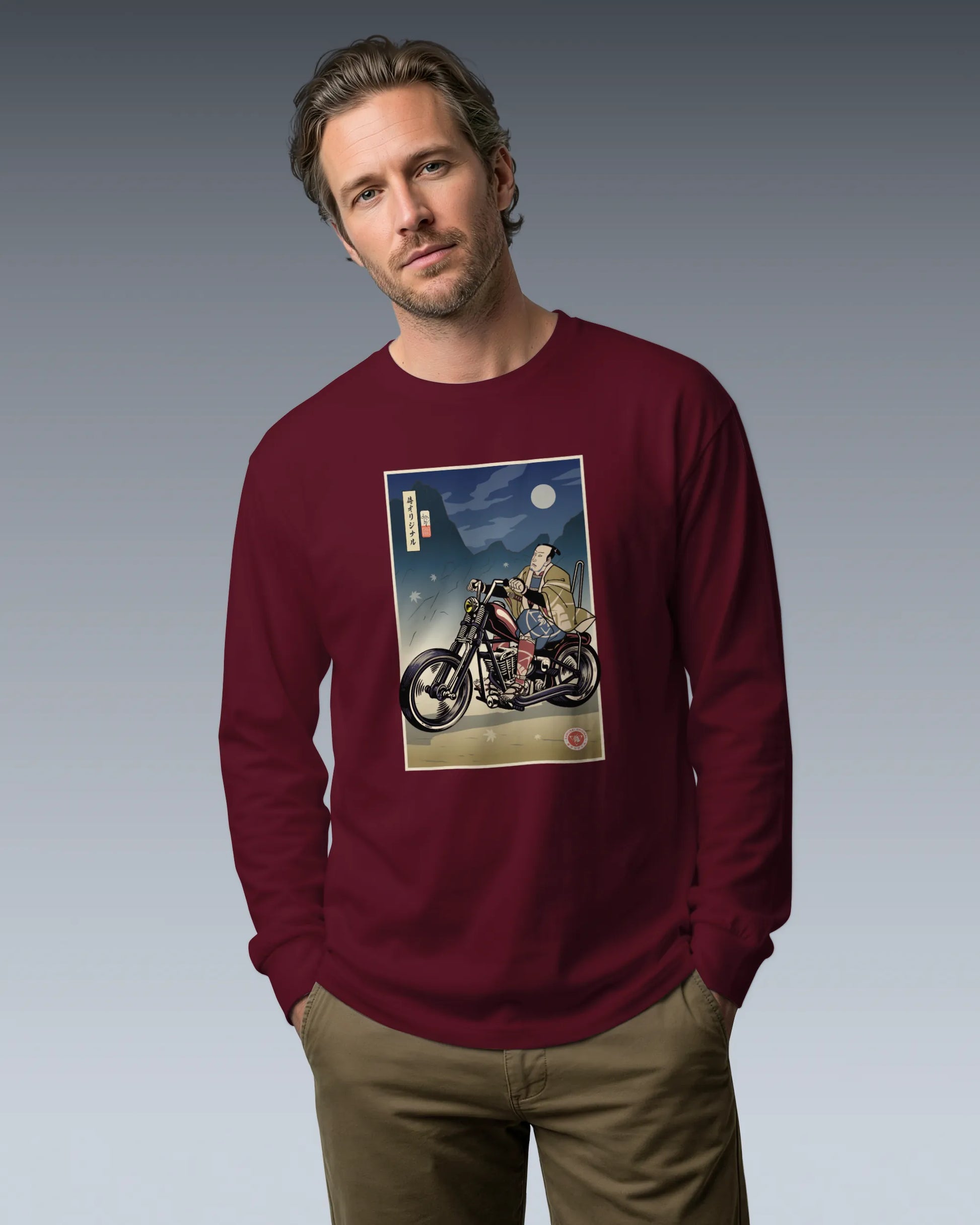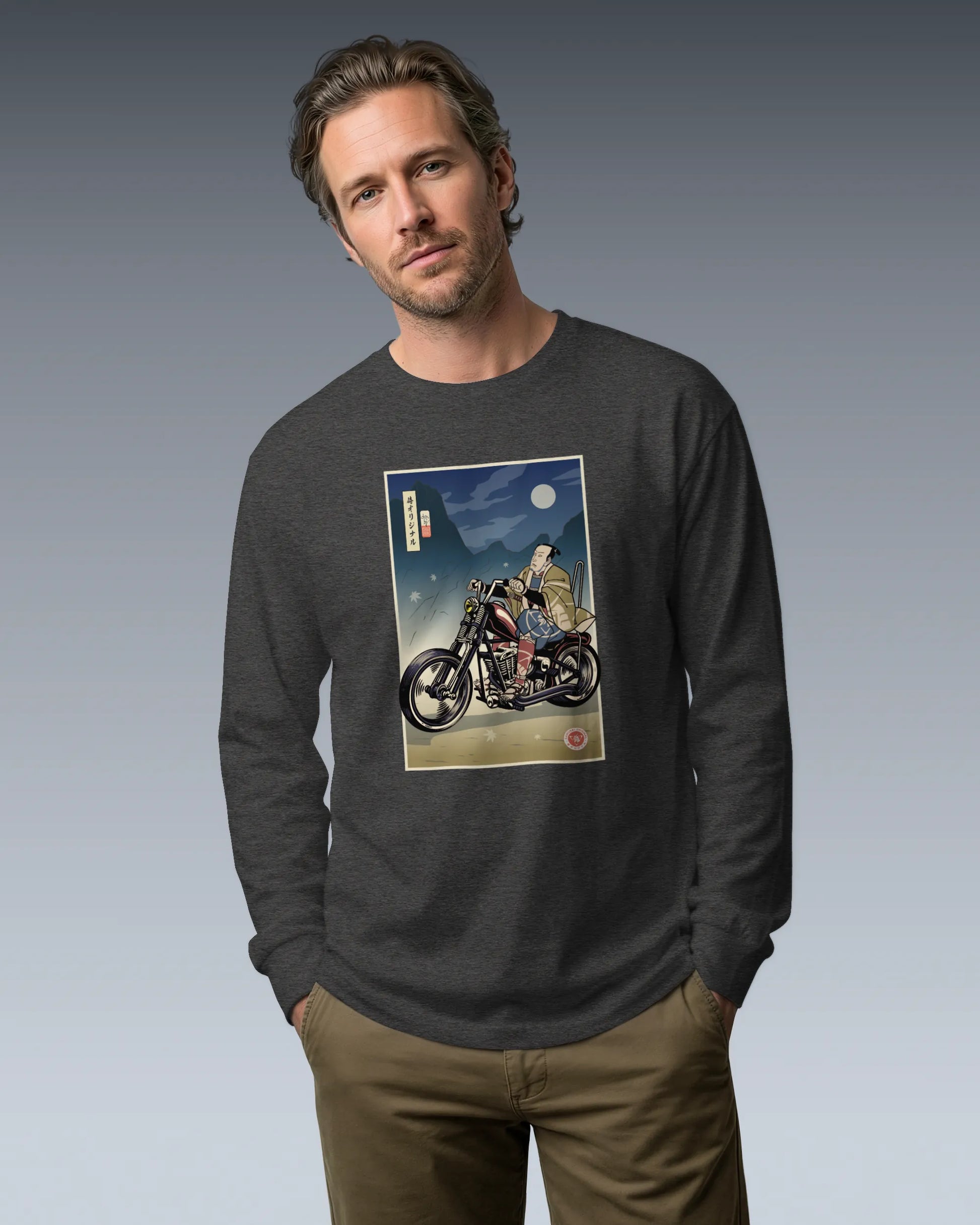 Samurai Chopper Motorcycle Ukiyo-e Unisex Long Sleeve Tee