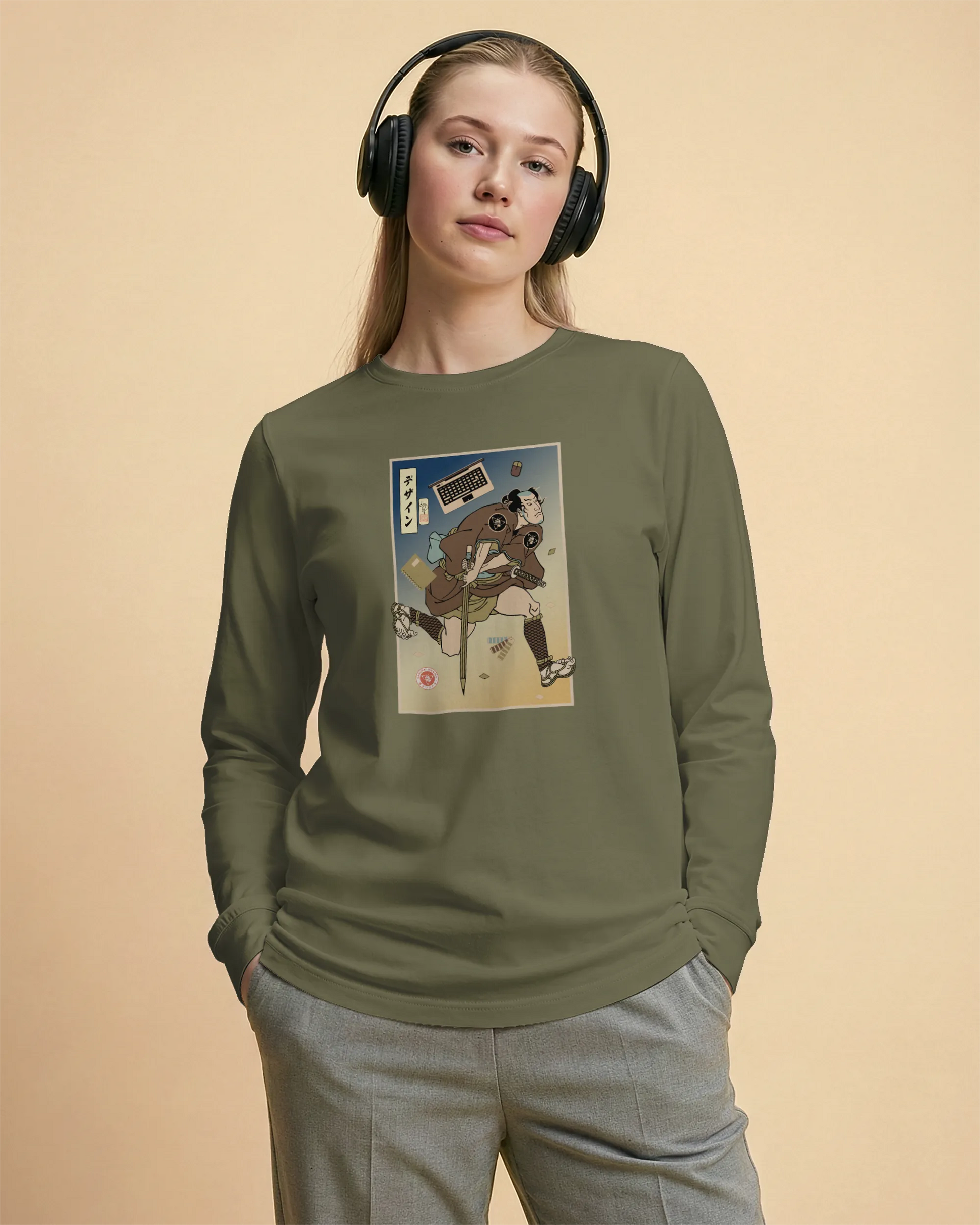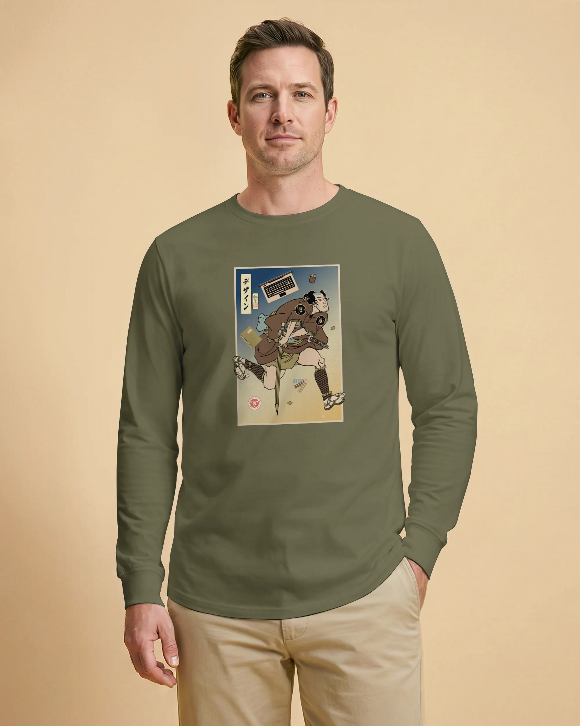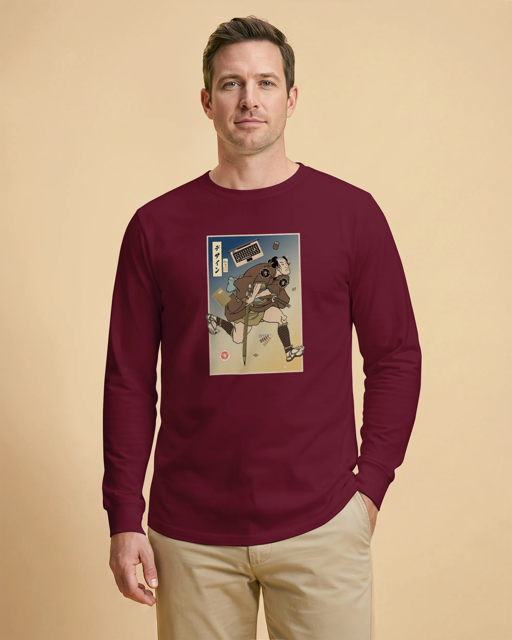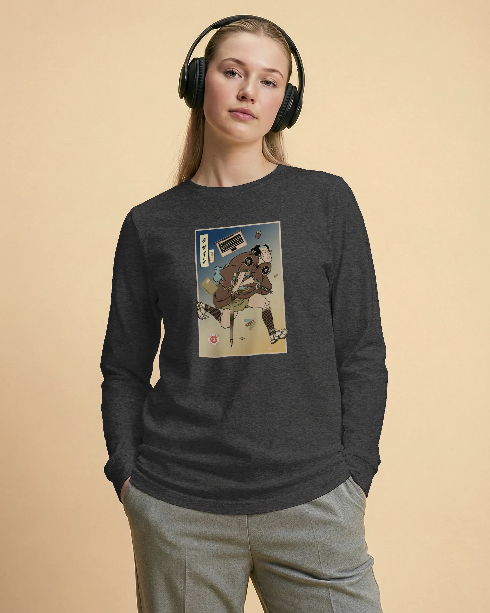 Samurai Graphic Design Ukiyo-e Unisex Long Sleeve Tee