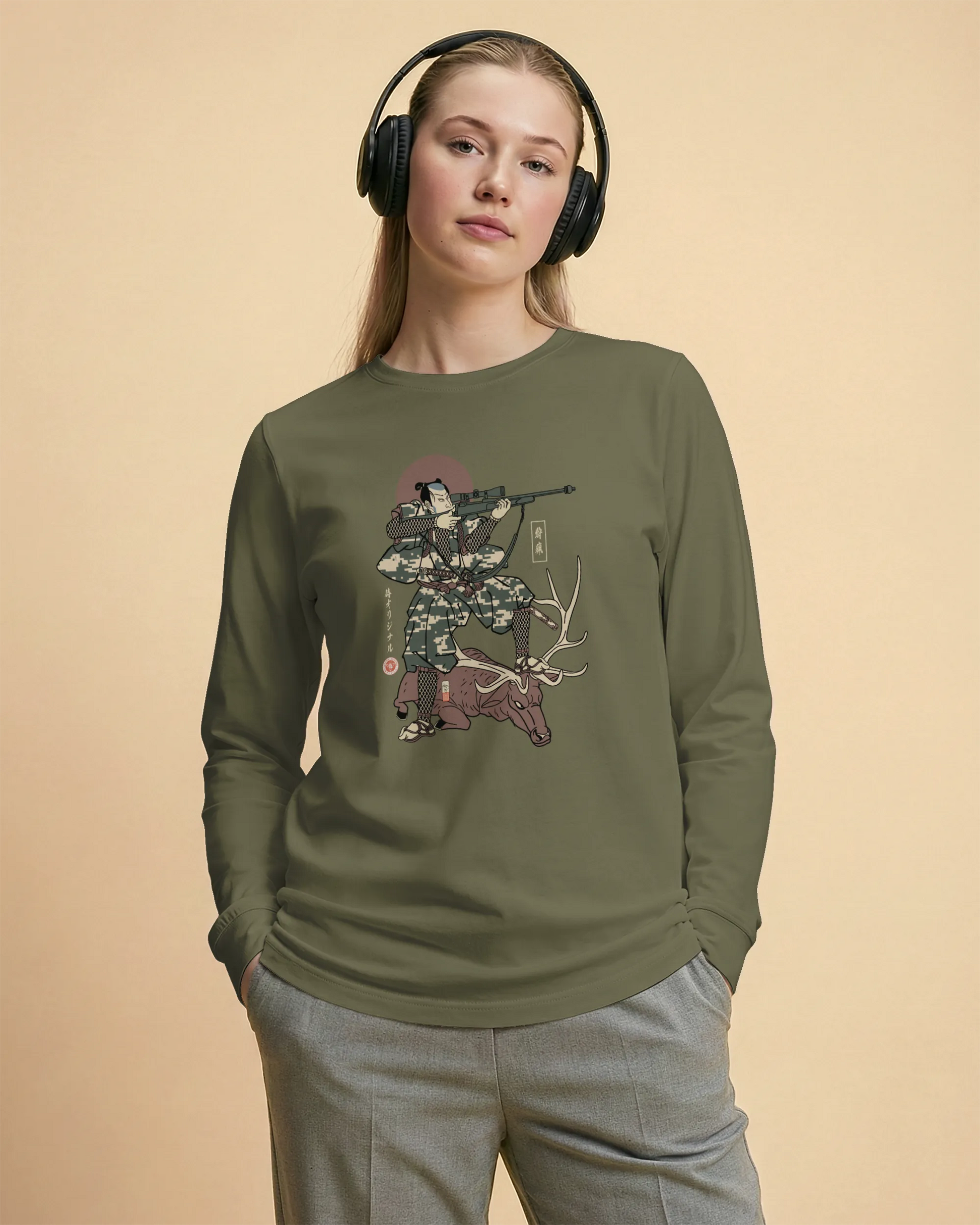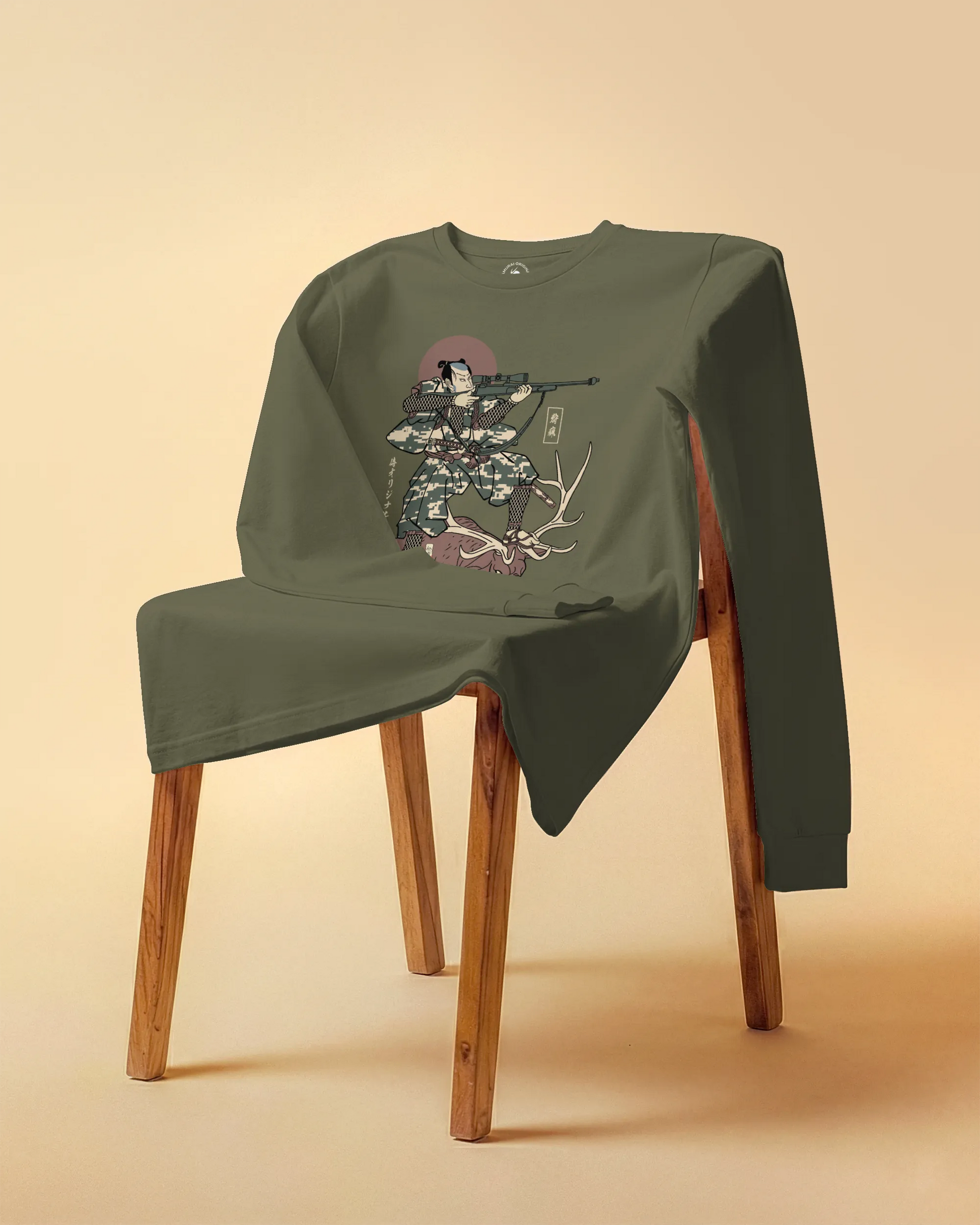 Samurai Hunting Prey Ukiyo-e Unisex Long Sleeve Tee