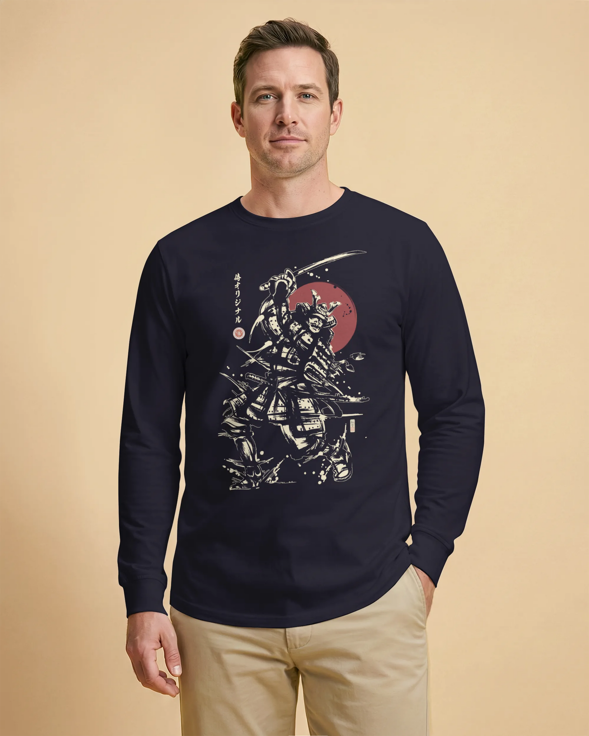 Samurai Katana Sumi-e Japanese Ink Painting Unisex Long Sleeve Tee No.2