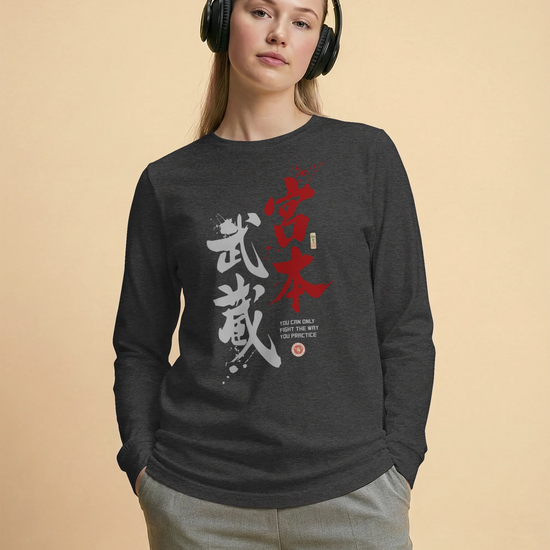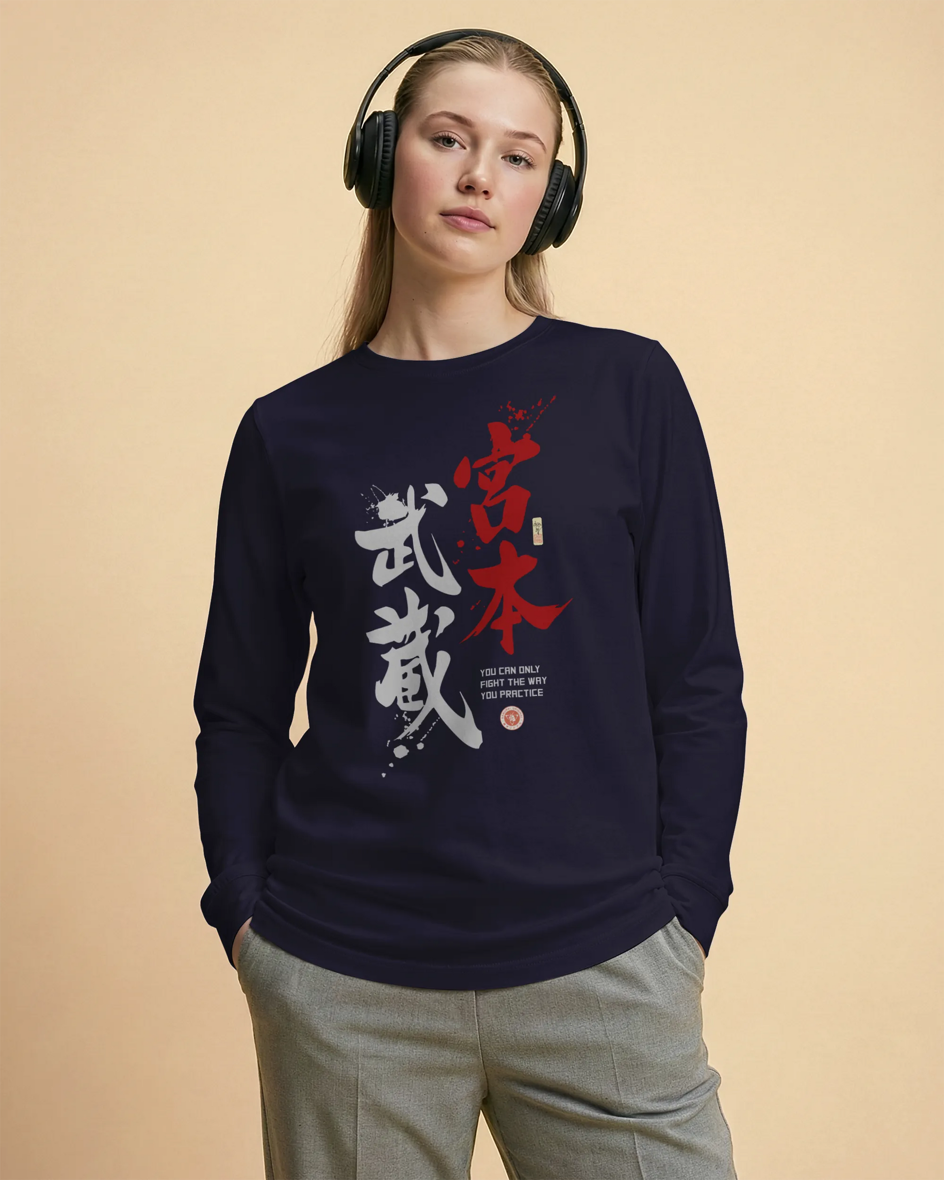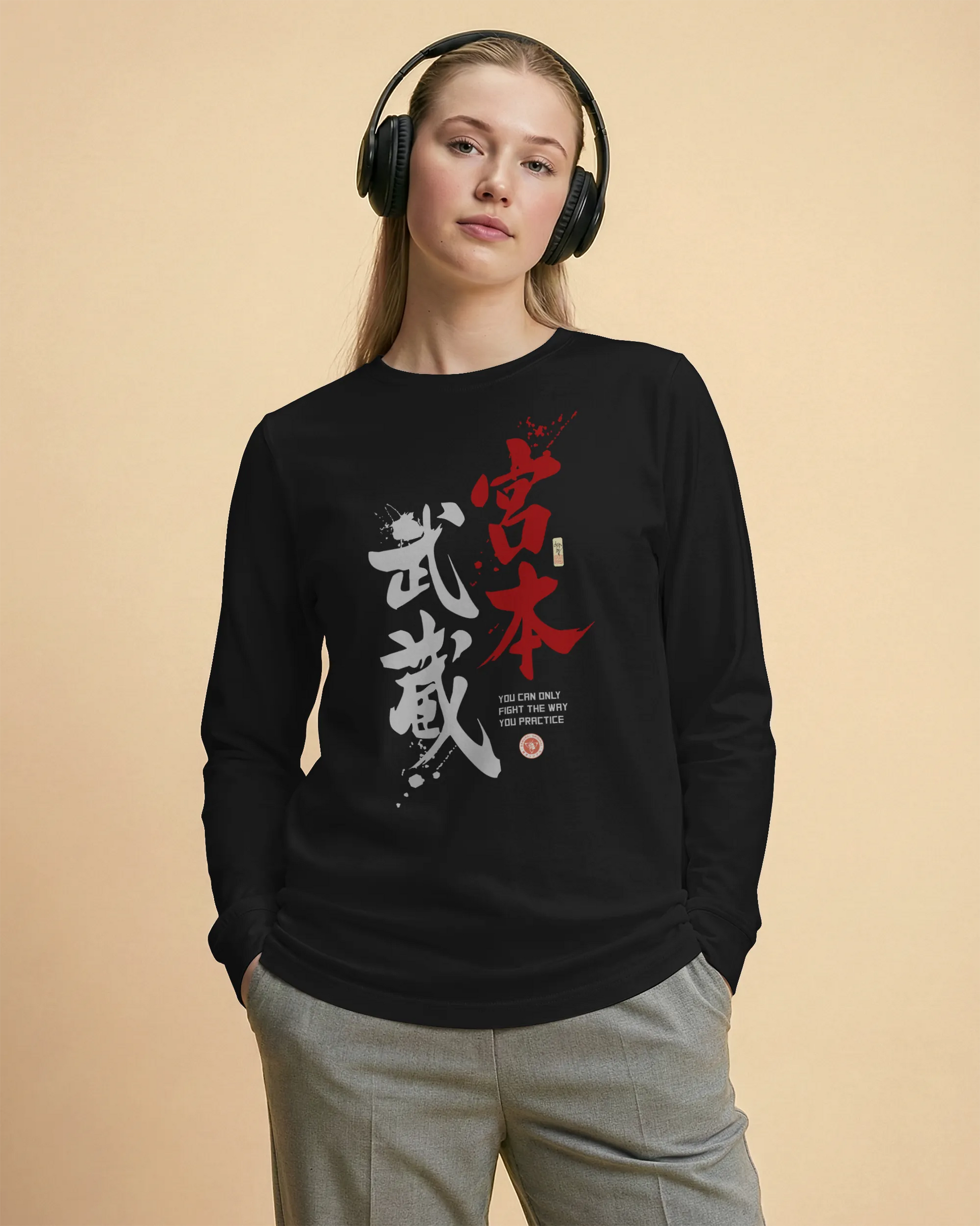 Samurai Miyamoto Musashi Ronin Calligraphy Unisex Long Sleeve Tee