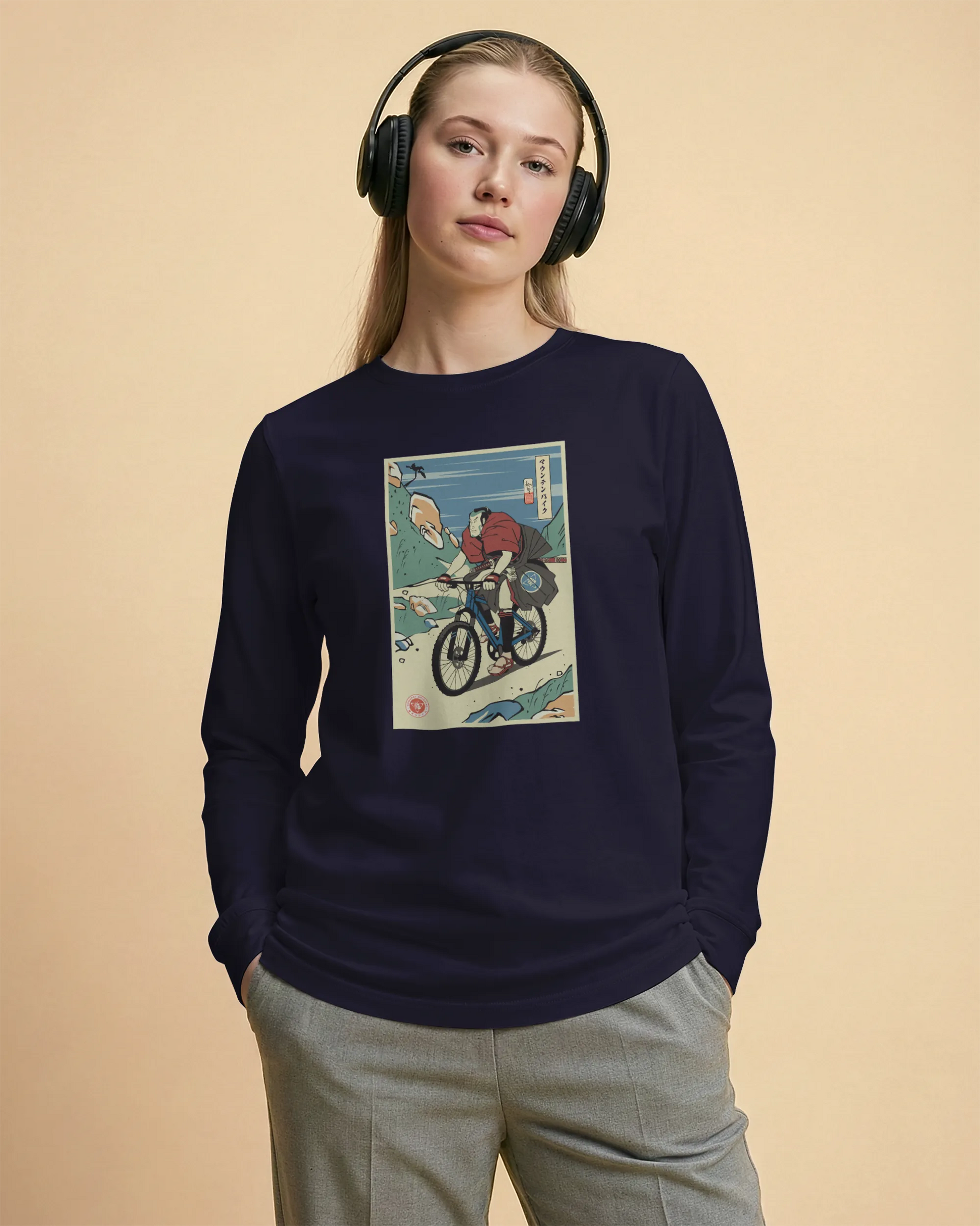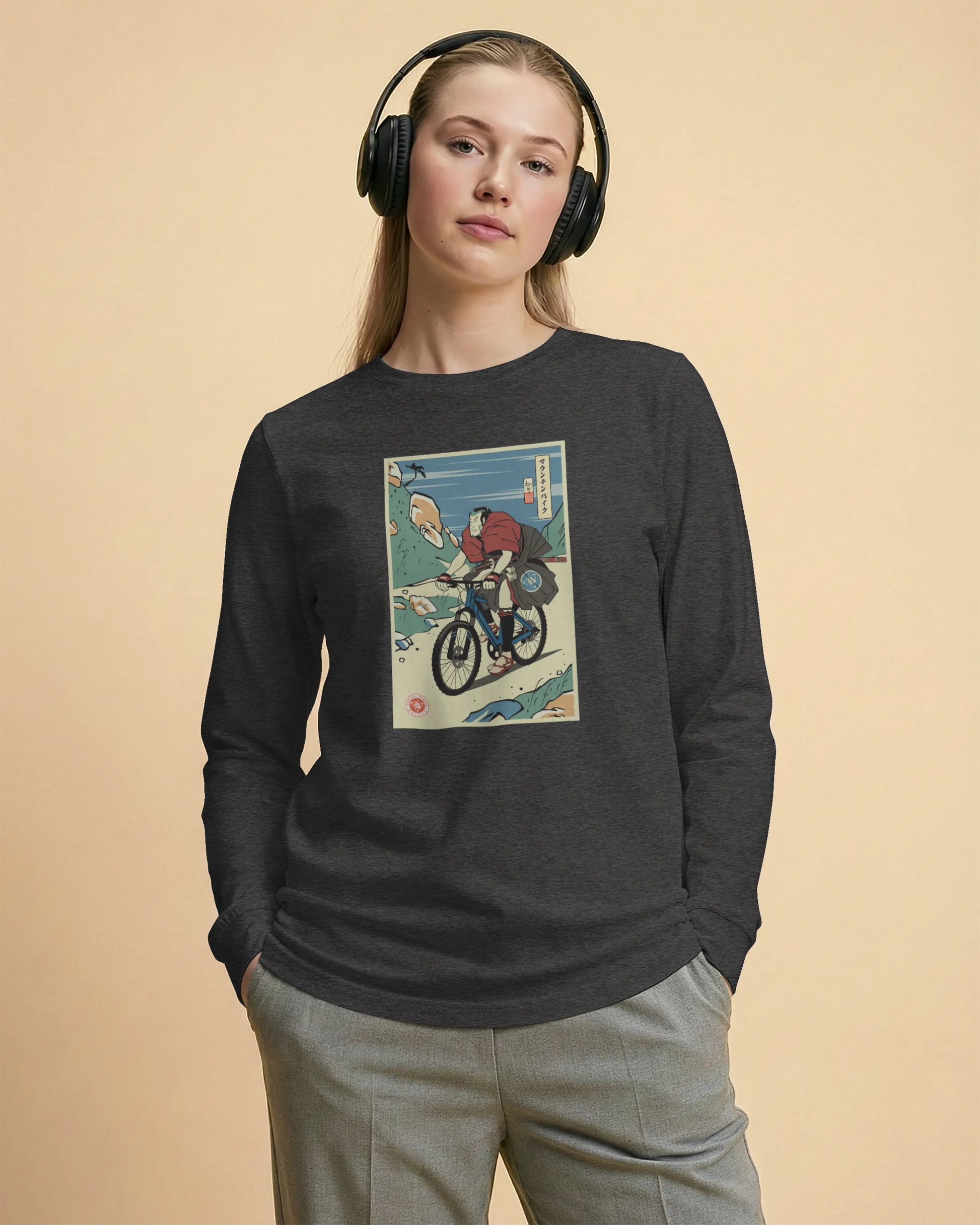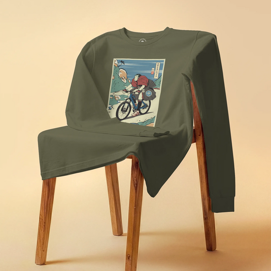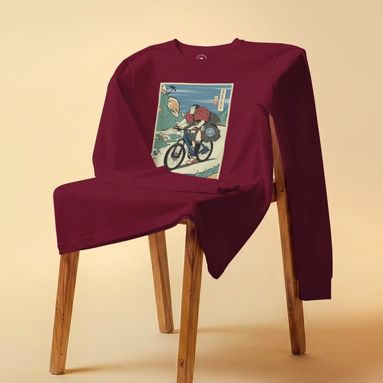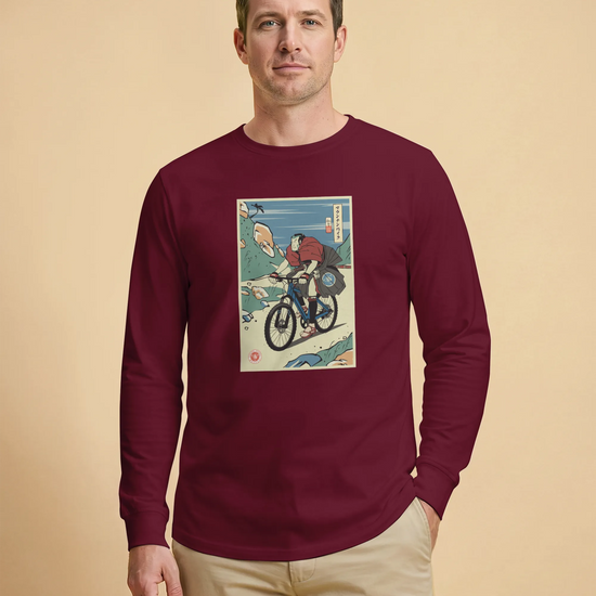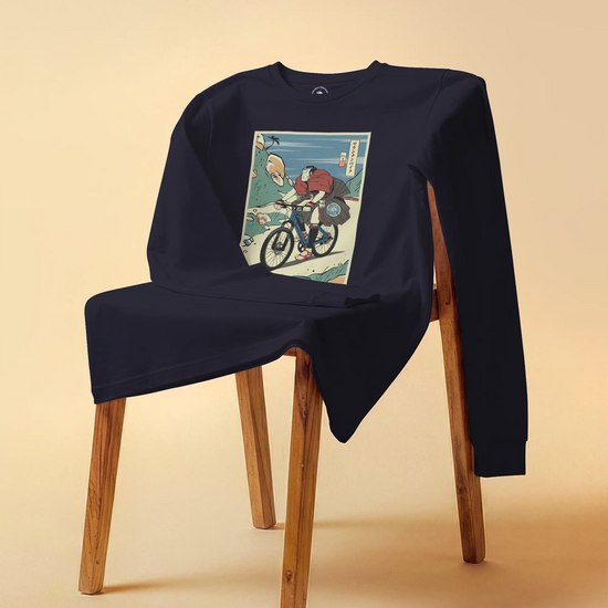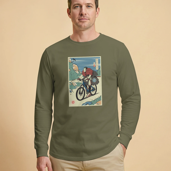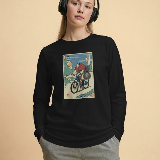 Samurai Mountain Bike Ukiyo-e Unisex Long Sleeve Tee