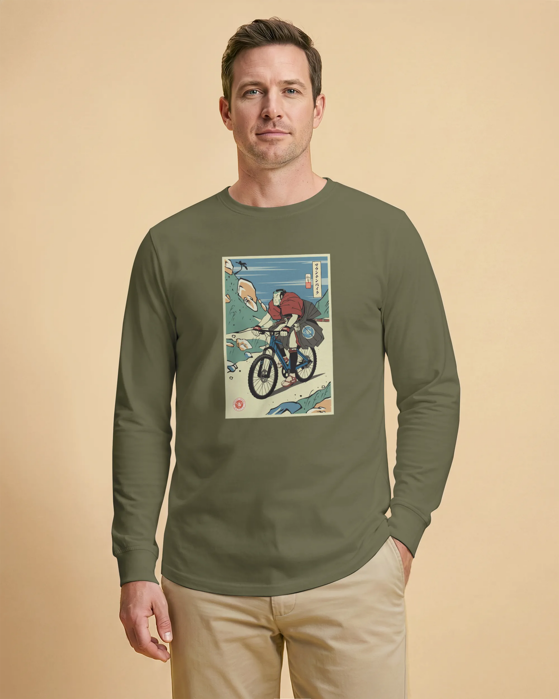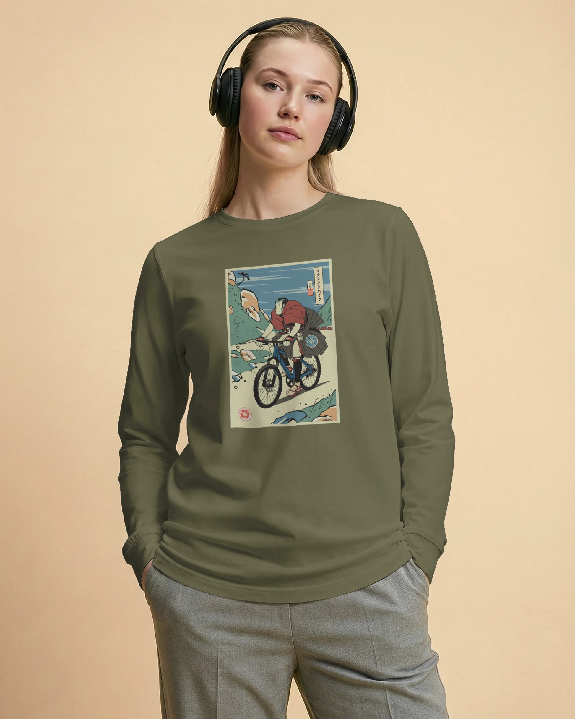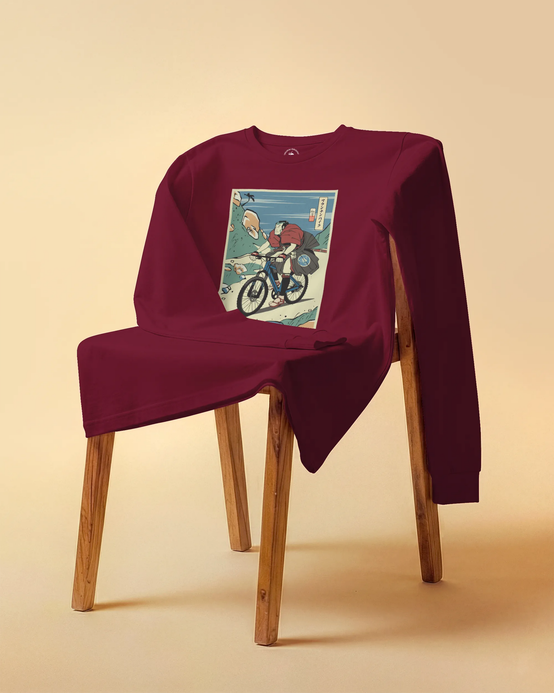 Samurai Mountain Bike Ukiyo-e Unisex Long Sleeve Tee