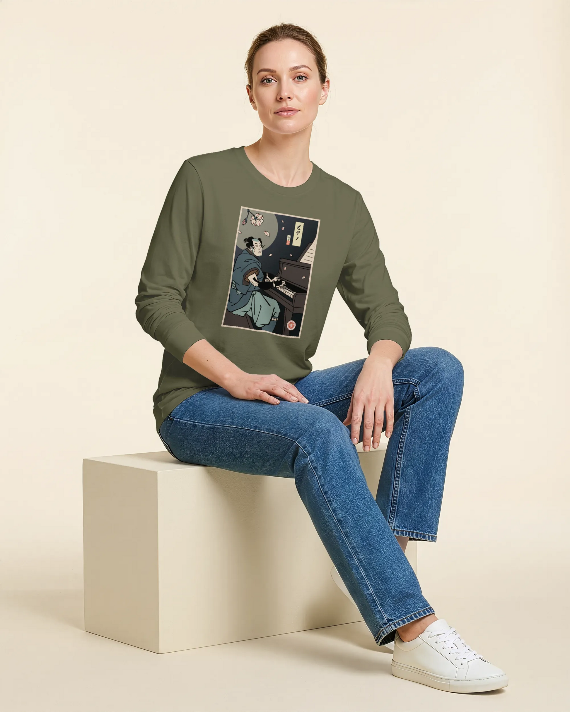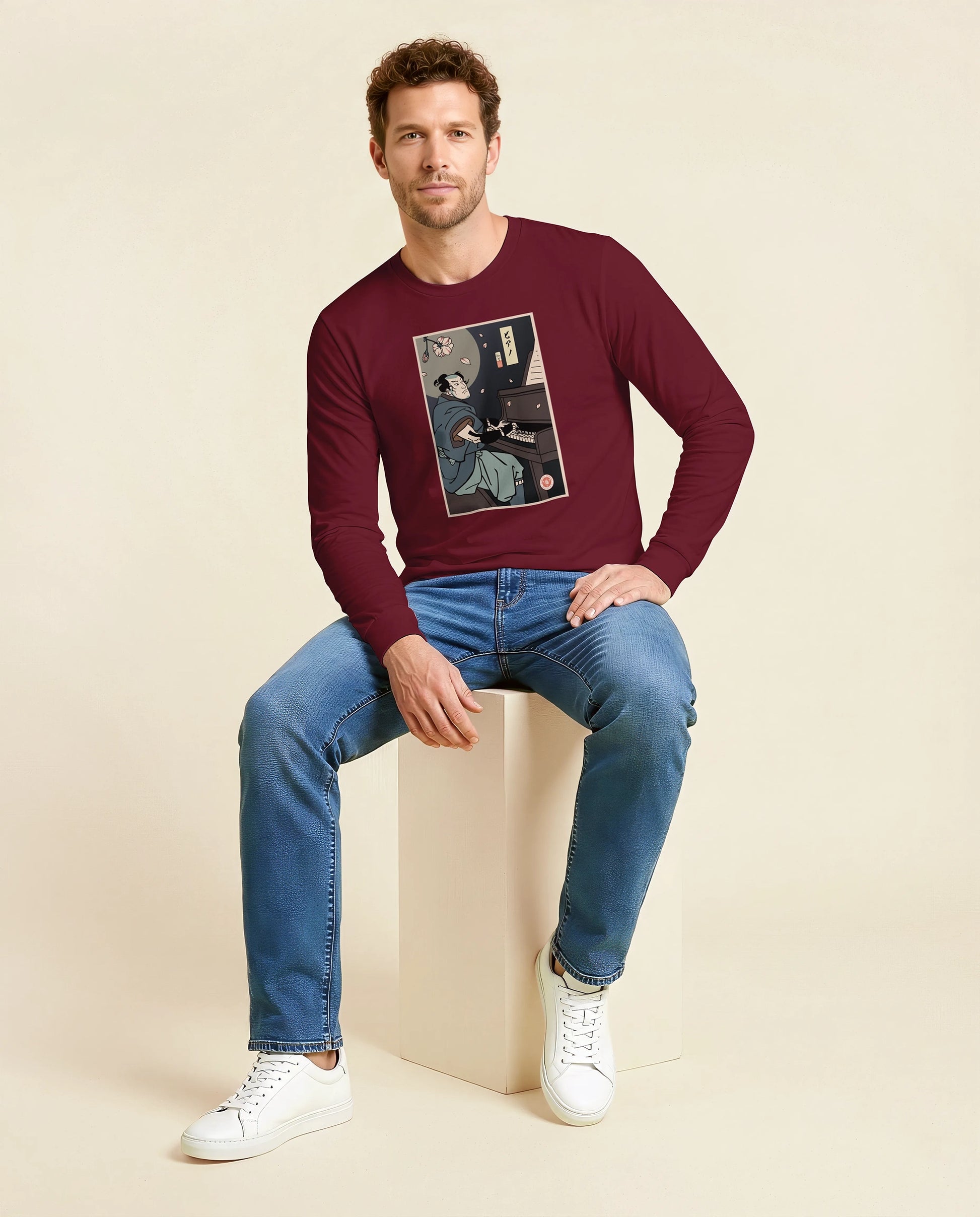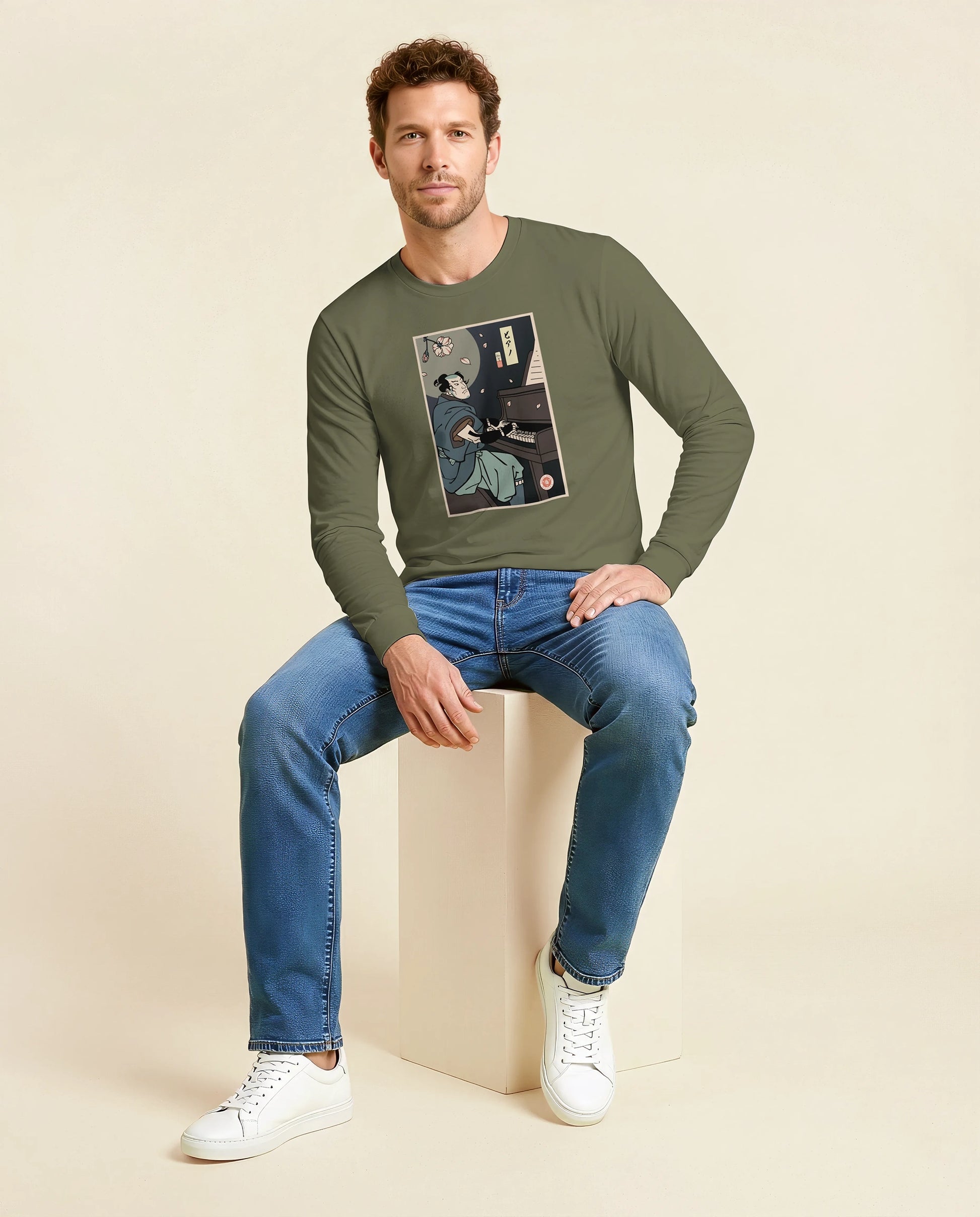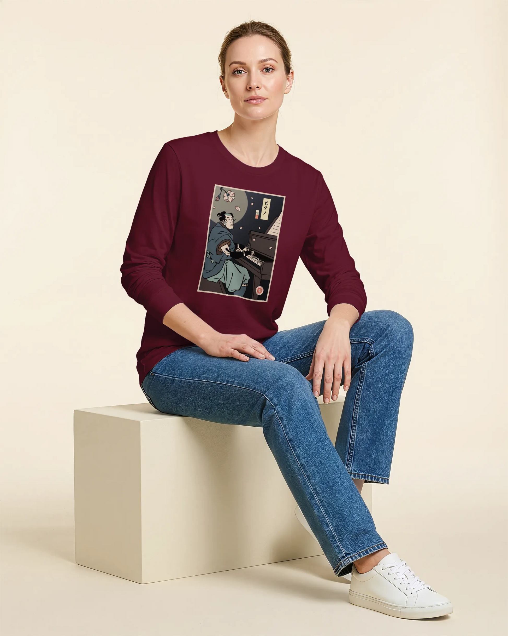 Samurai Piano Classical Music Ukiyo-e Unisex Long Sleeve Tee