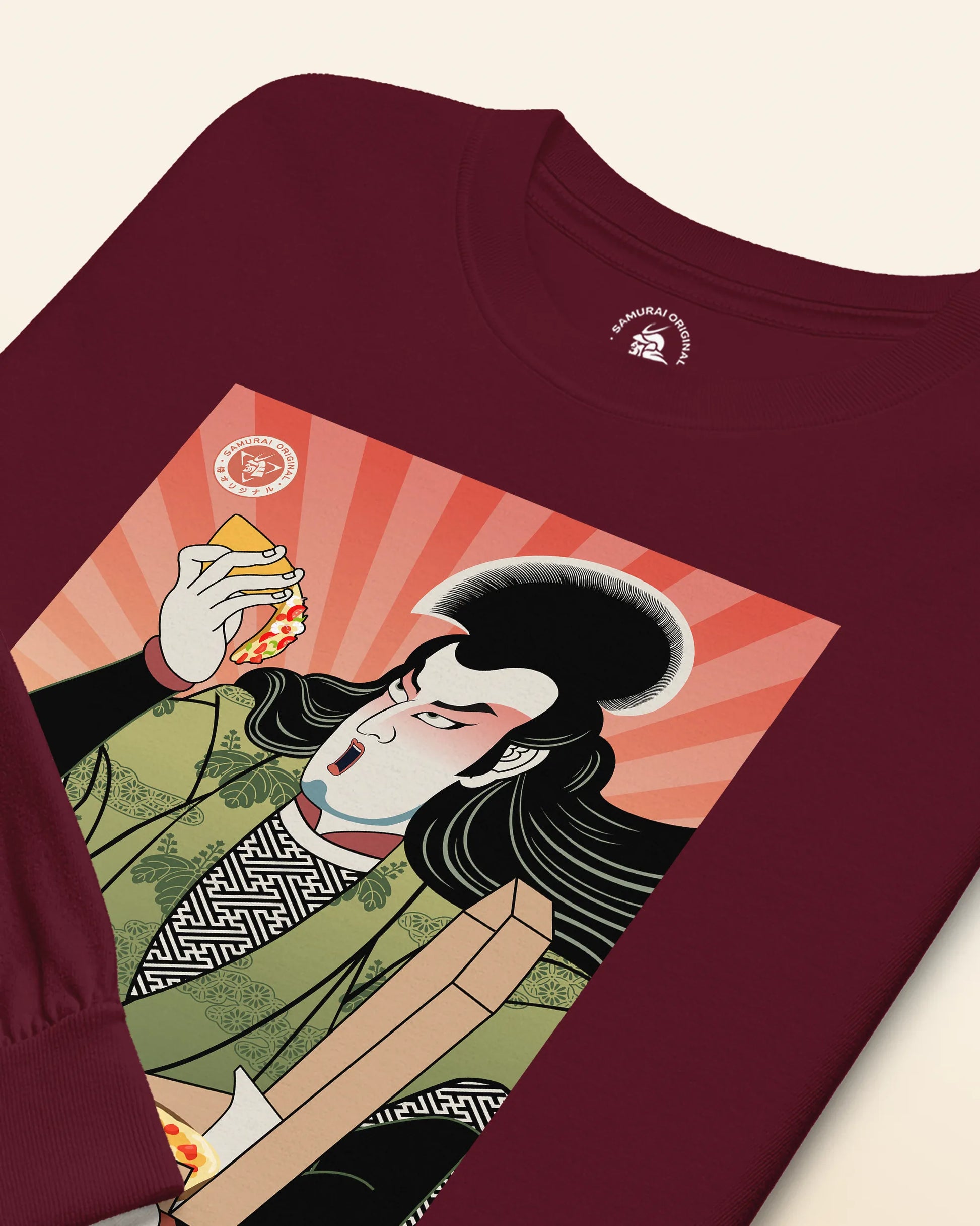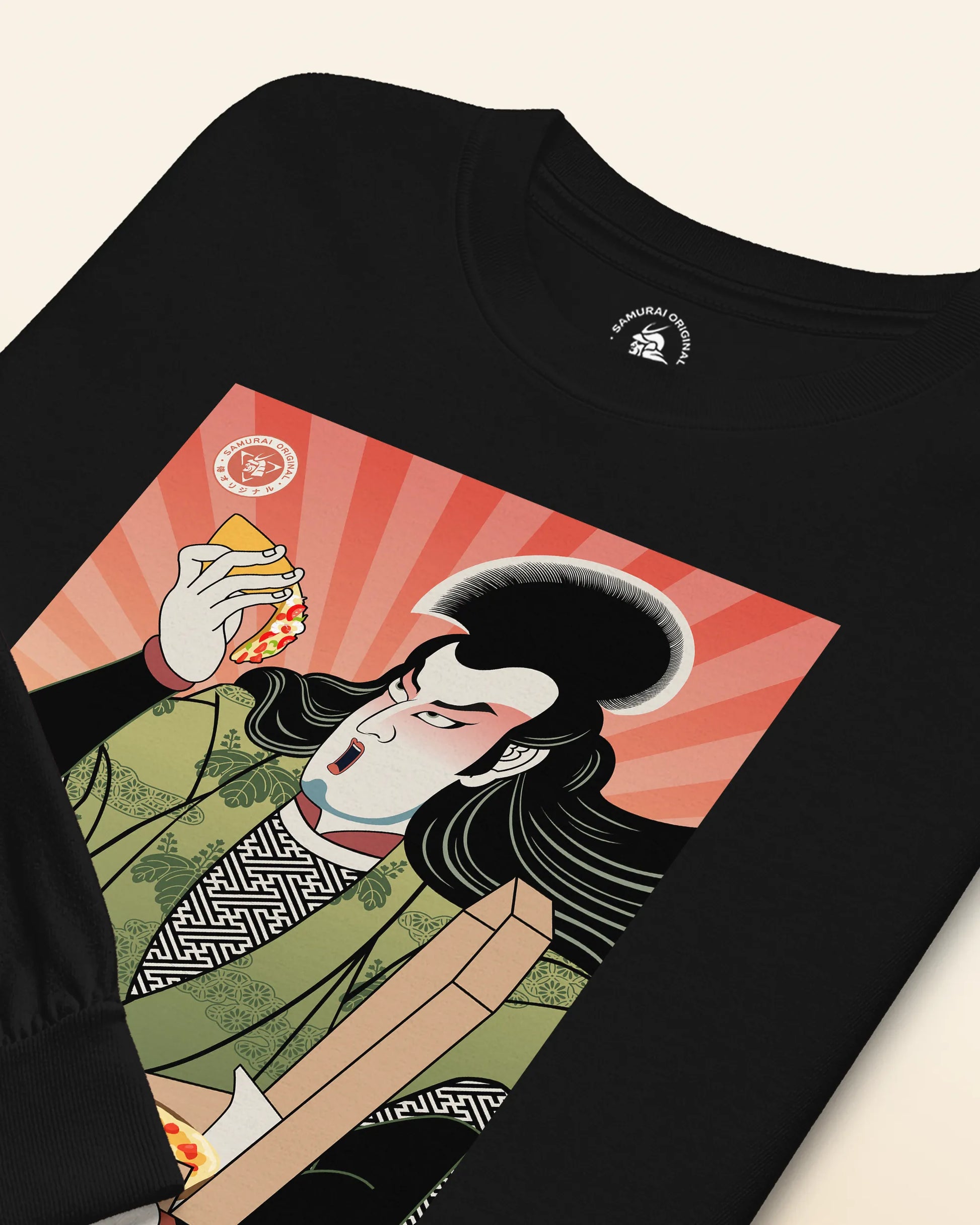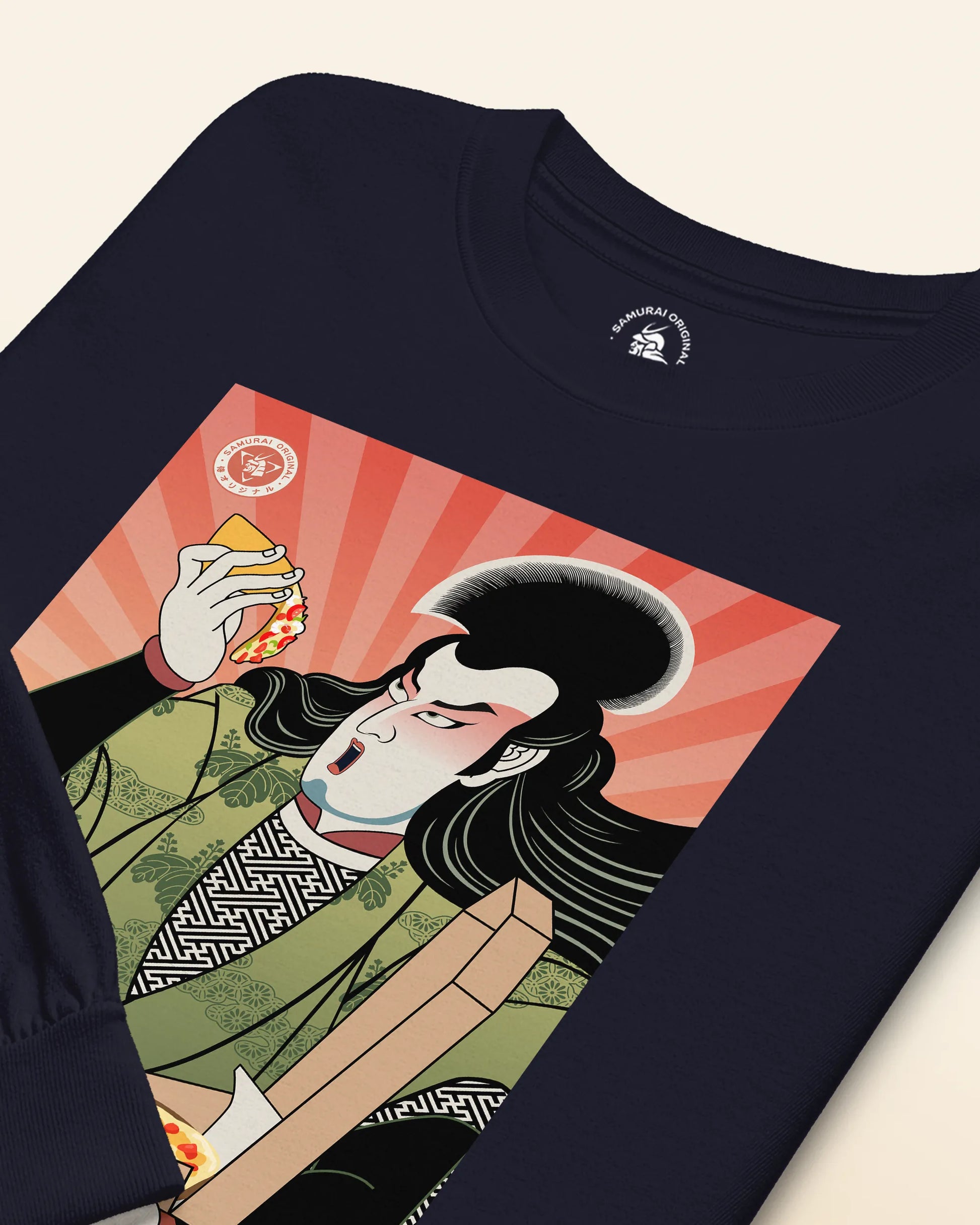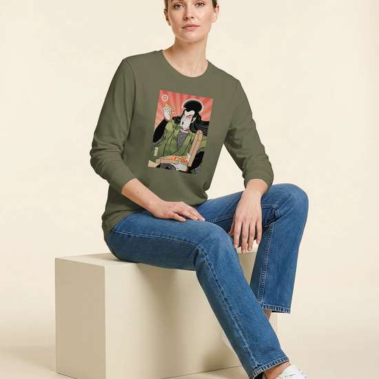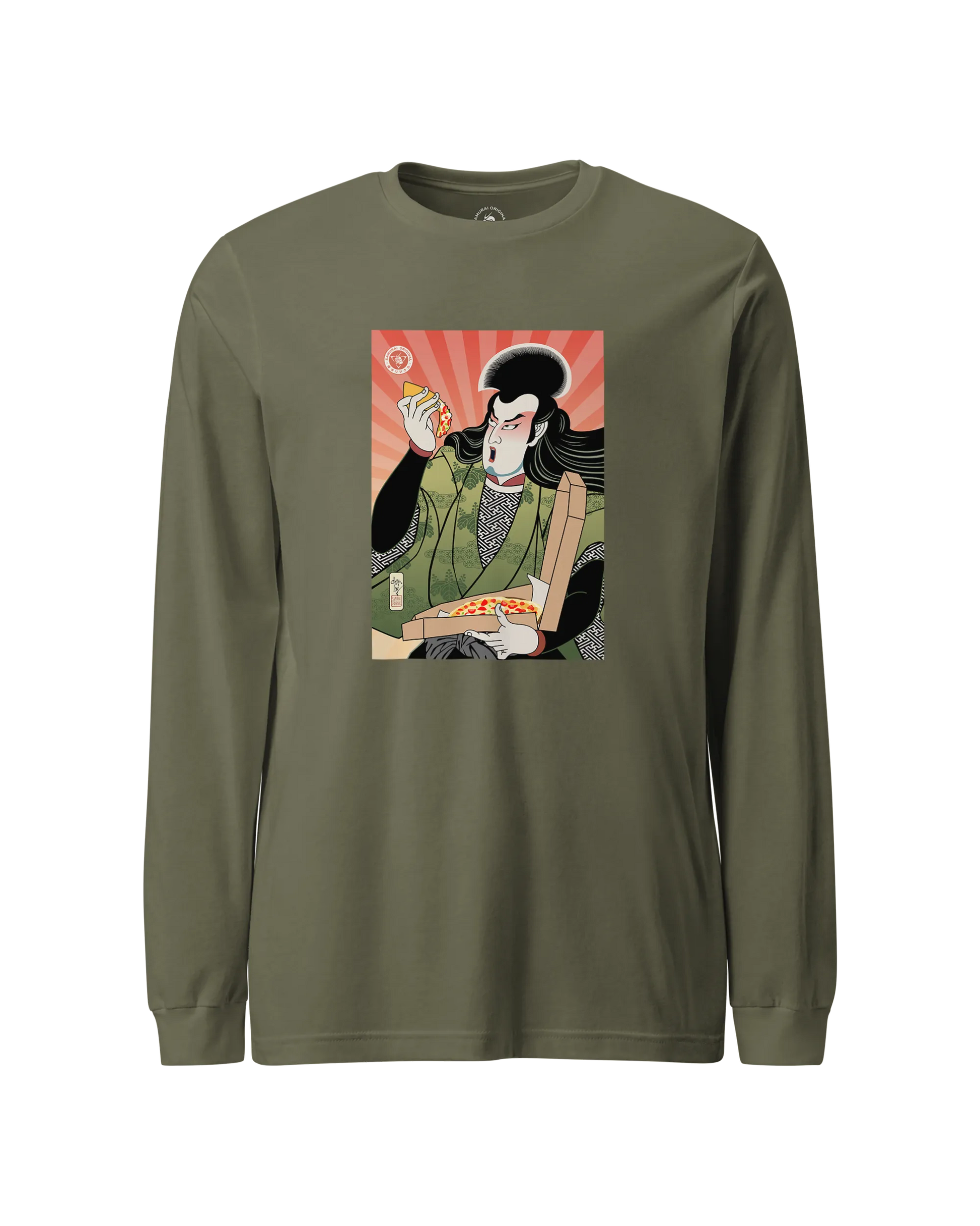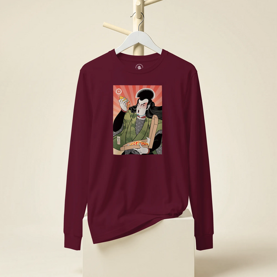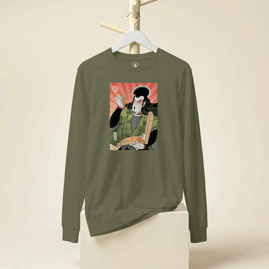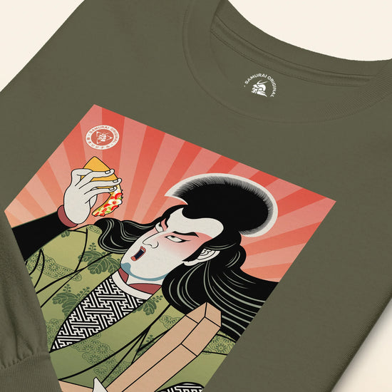 Samurai & Pizza Fast Food Japanese Ukiyo-e Unisex Long Sleeve Tee