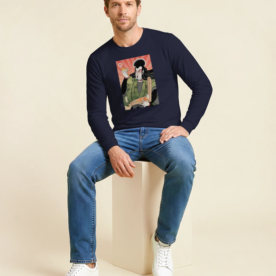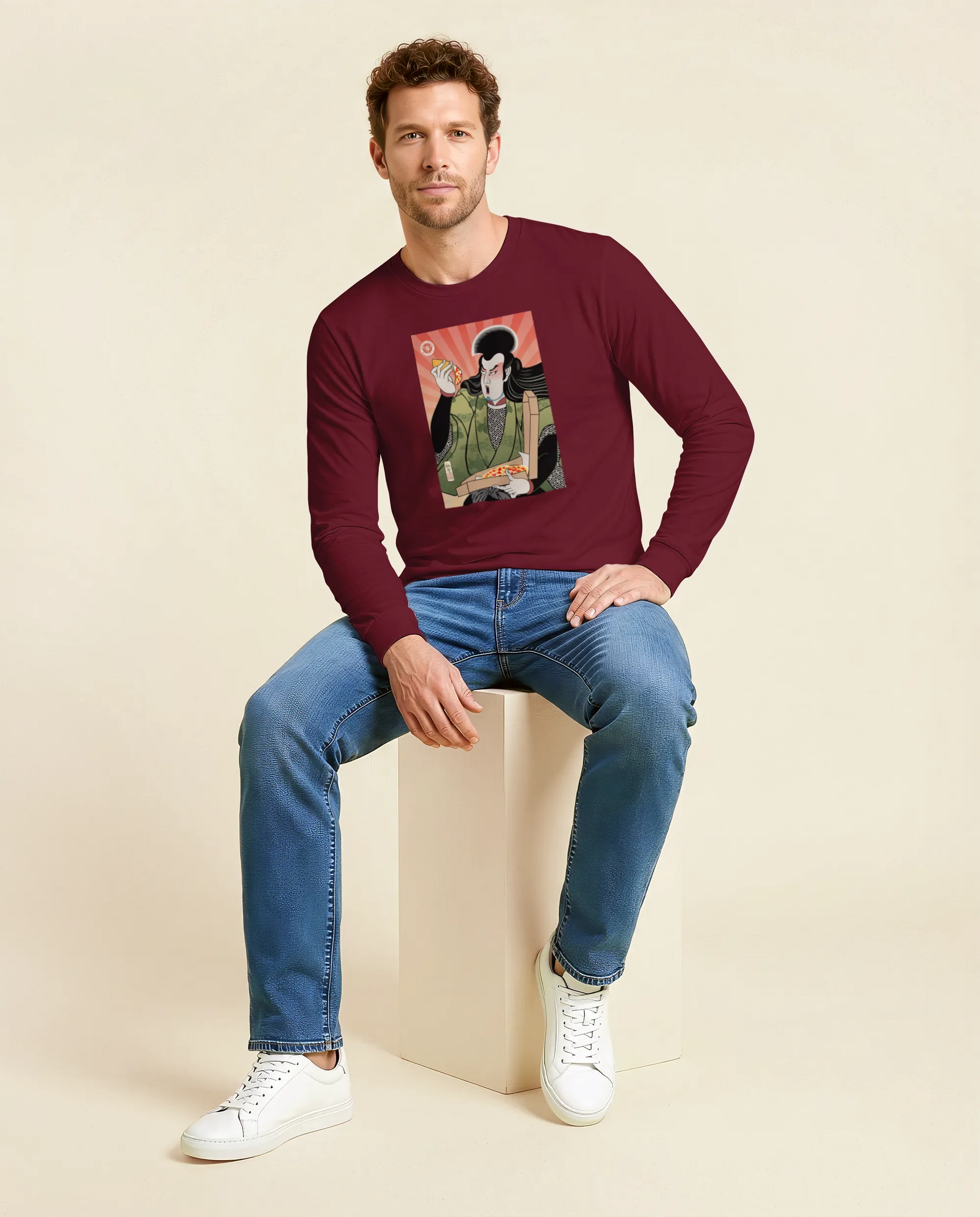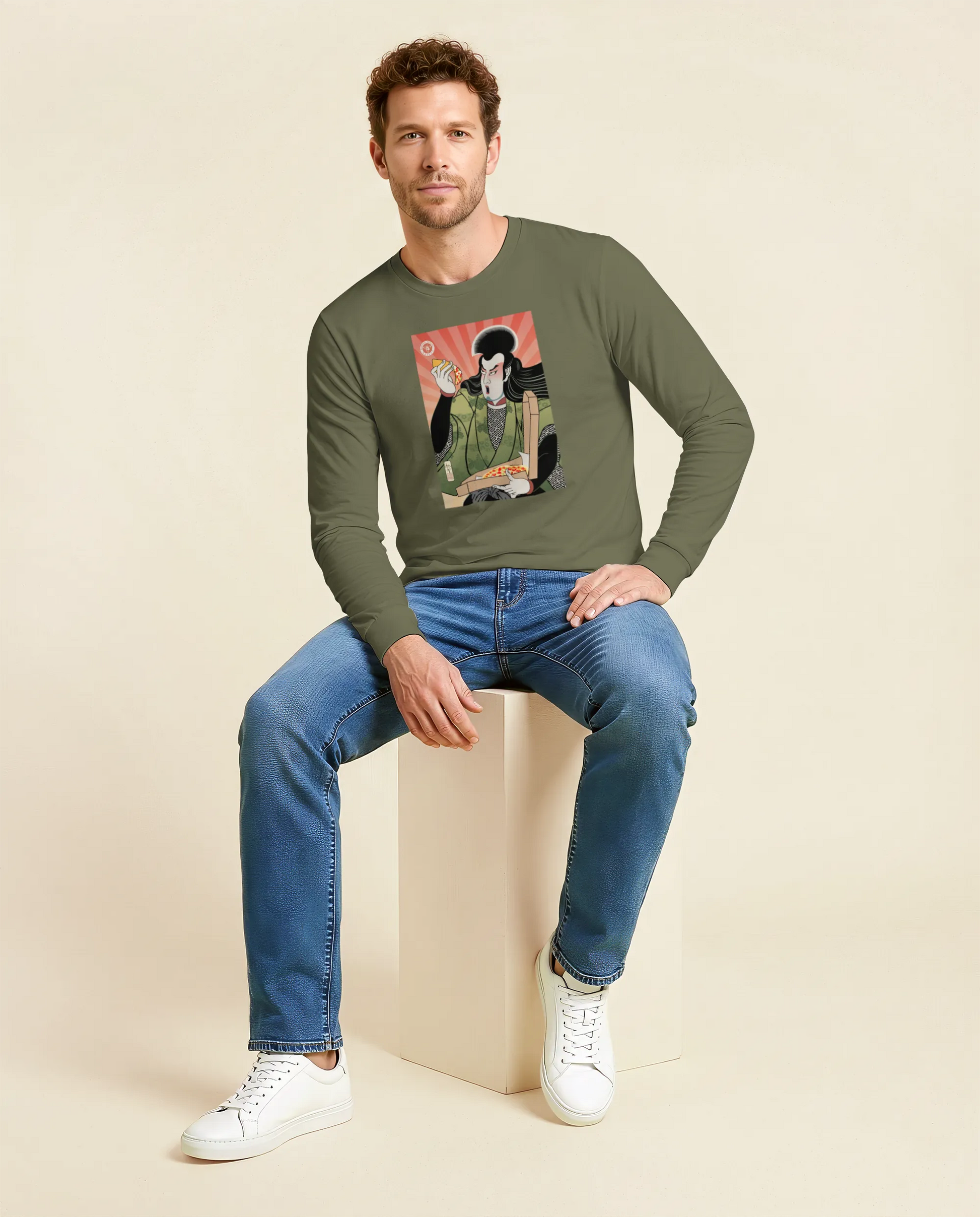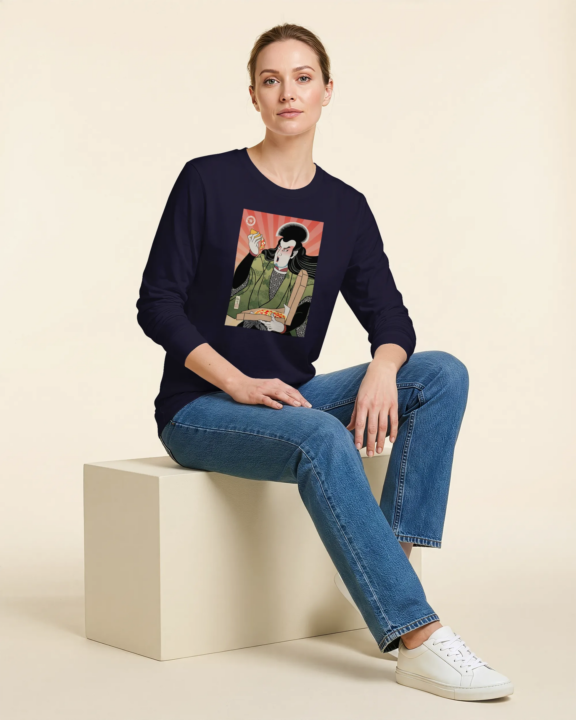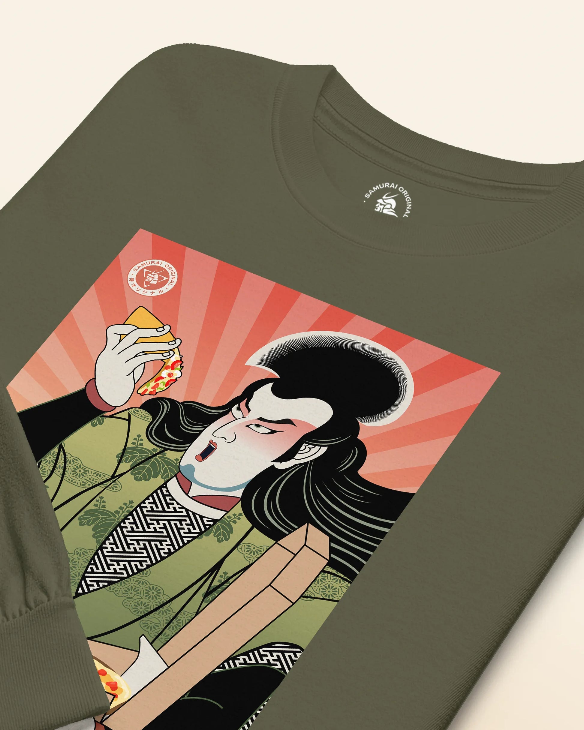Samurai & Pizza Fast Food Japanese Ukiyo-e Unisex Long Sleeve Tee