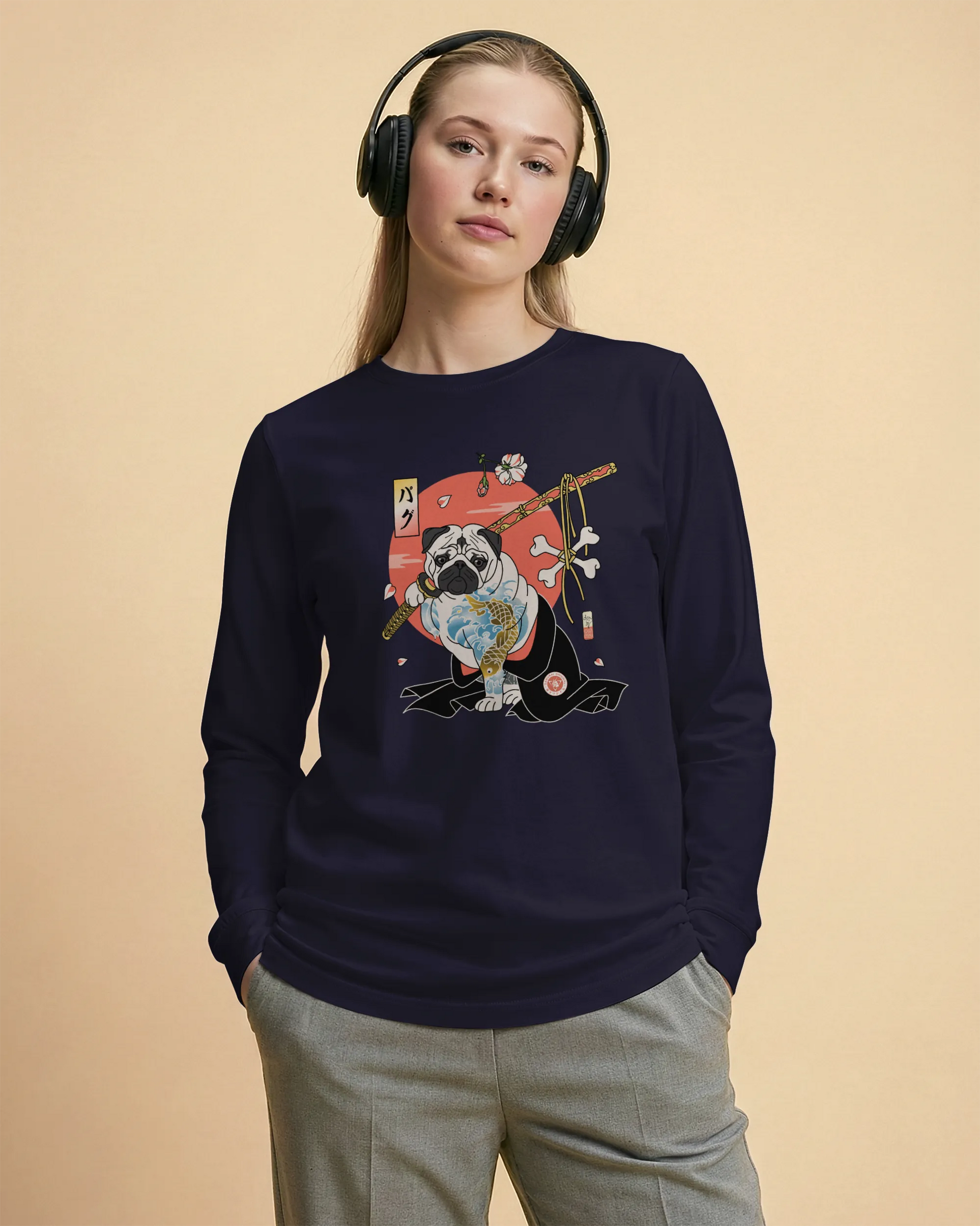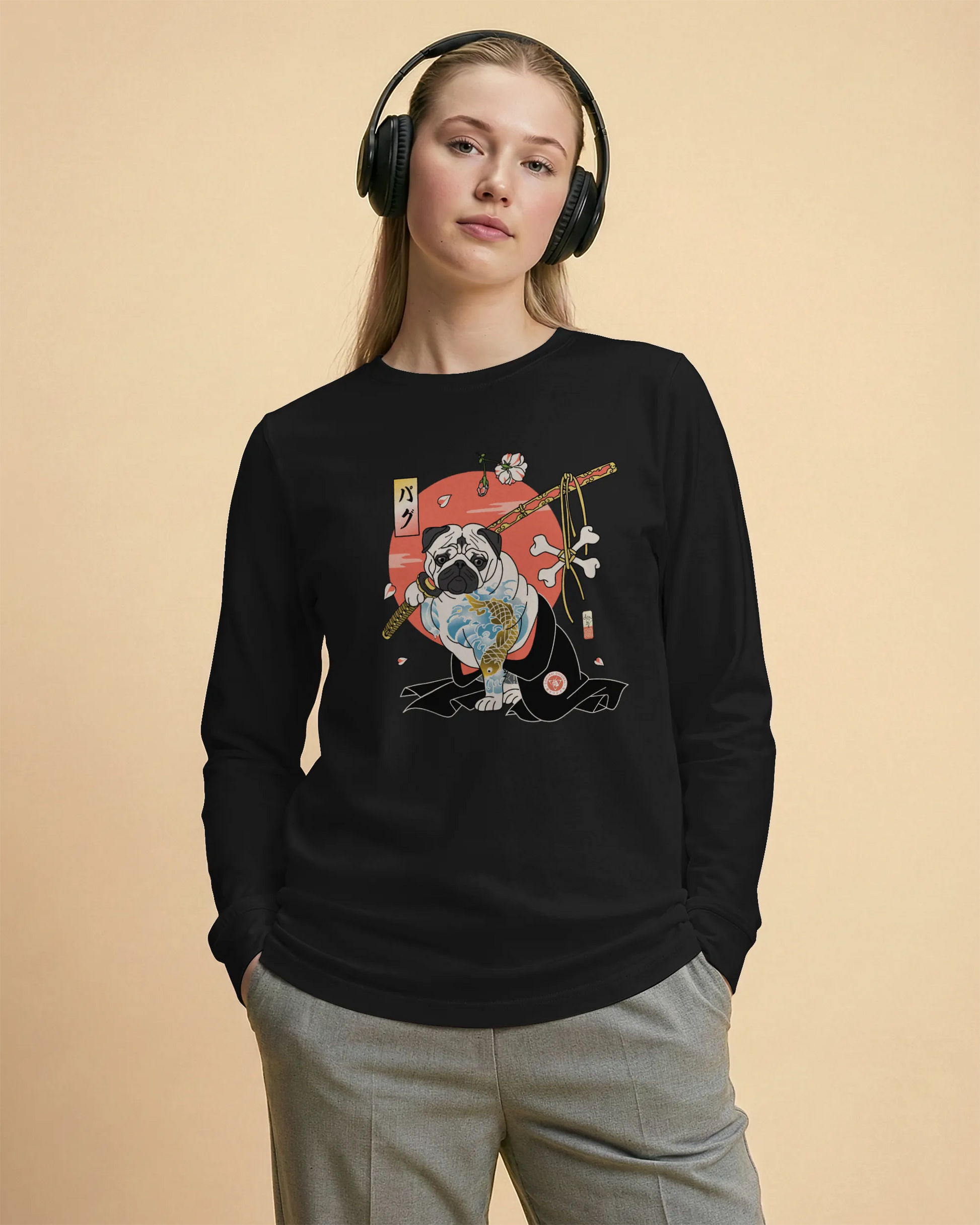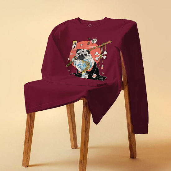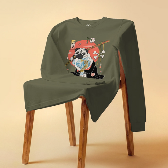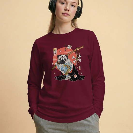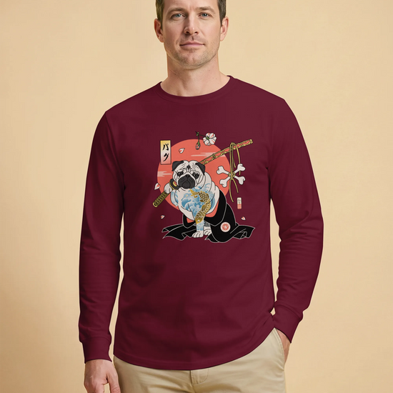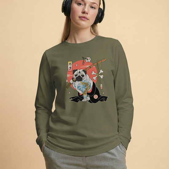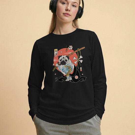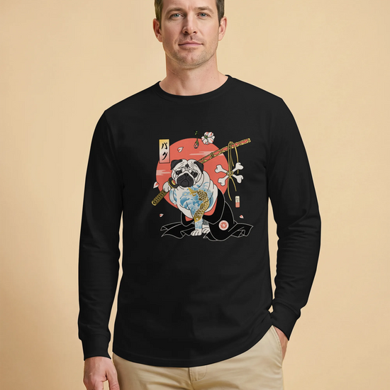Samurai Pug Dog Ukiyo-e Unisex Long Sleeve Tee
