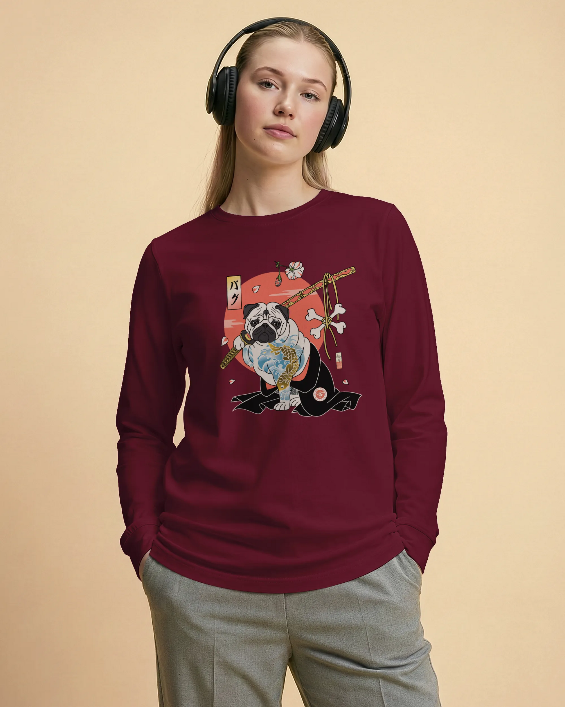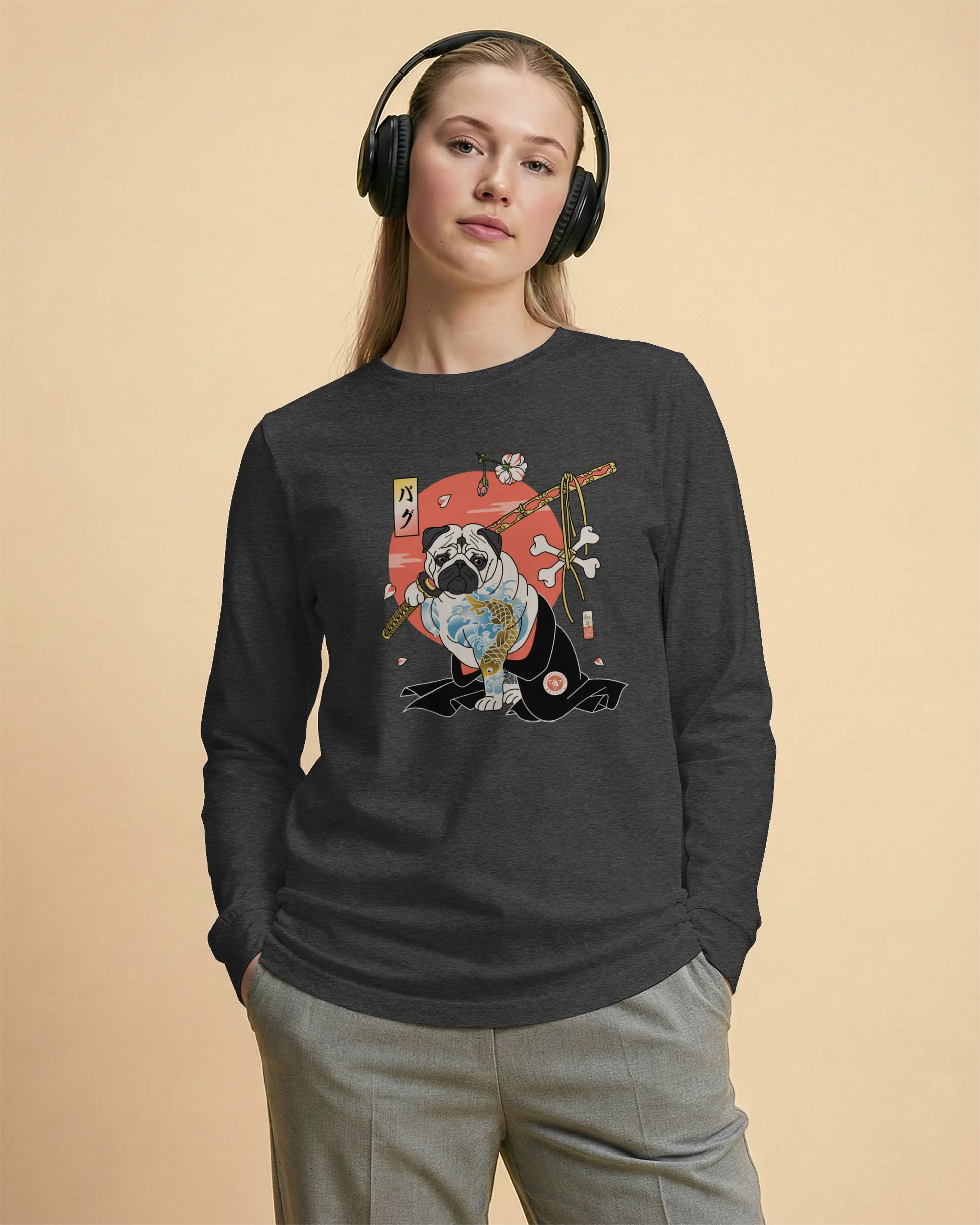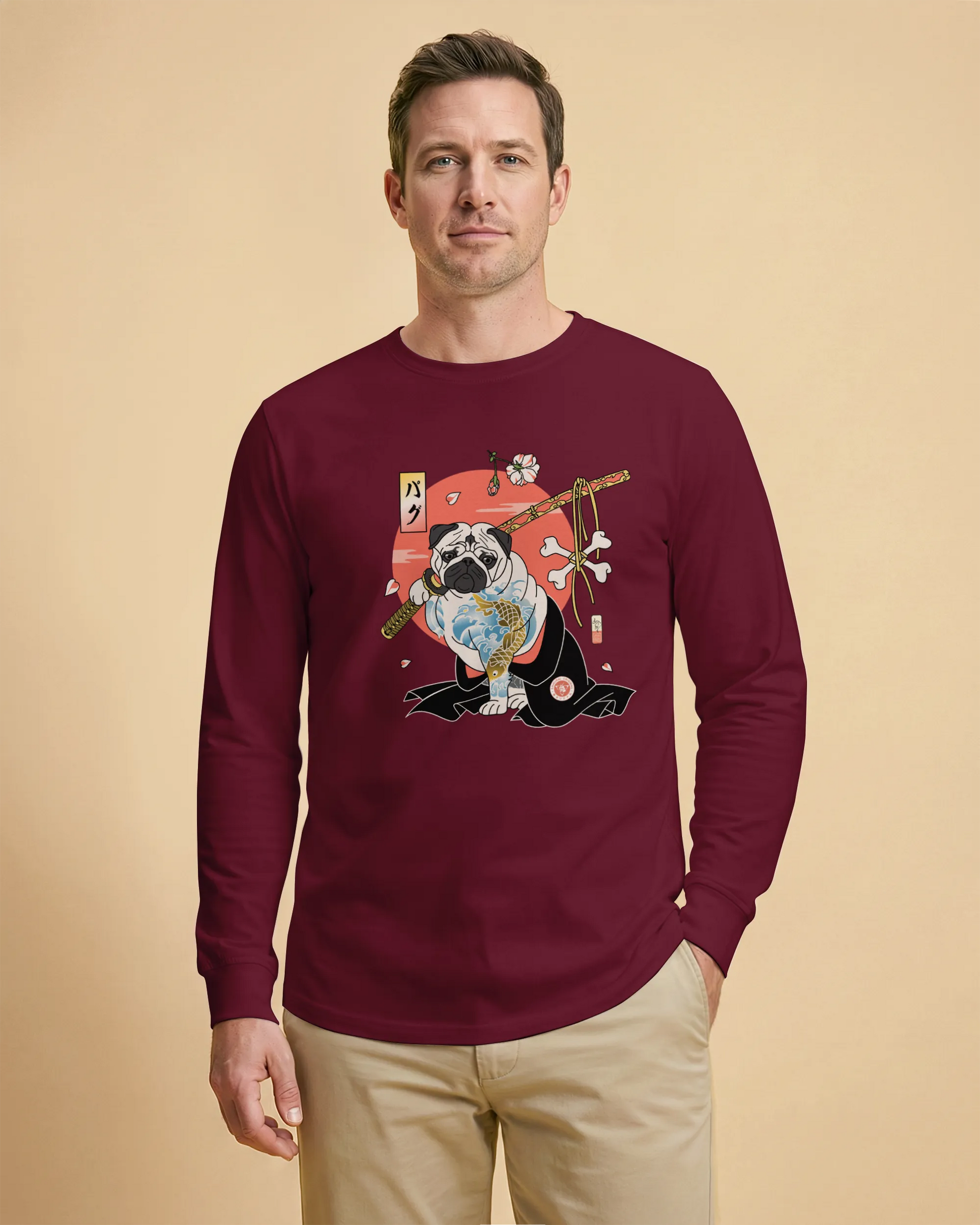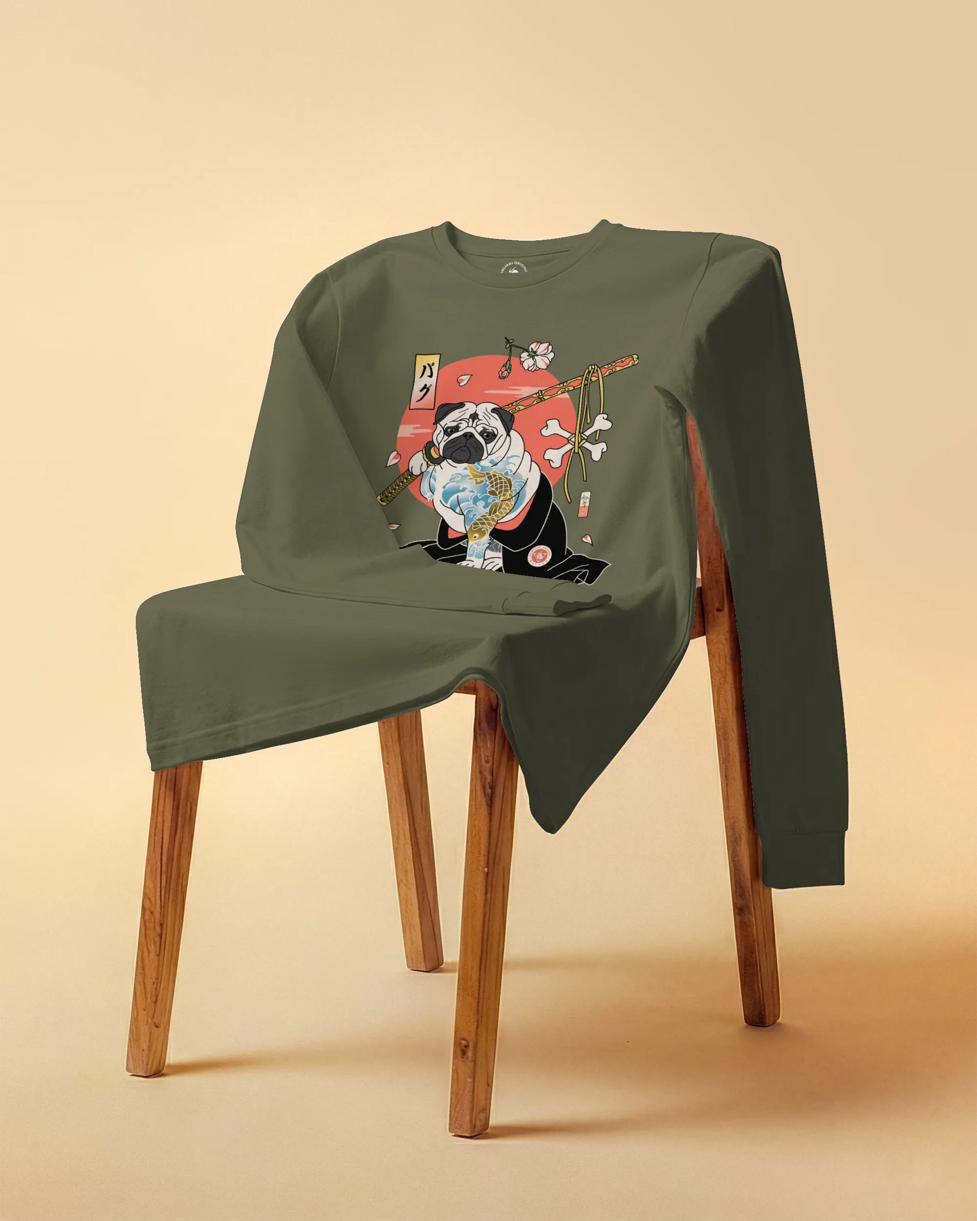 Samurai Pug Dog Ukiyo-e Unisex Long Sleeve Tee