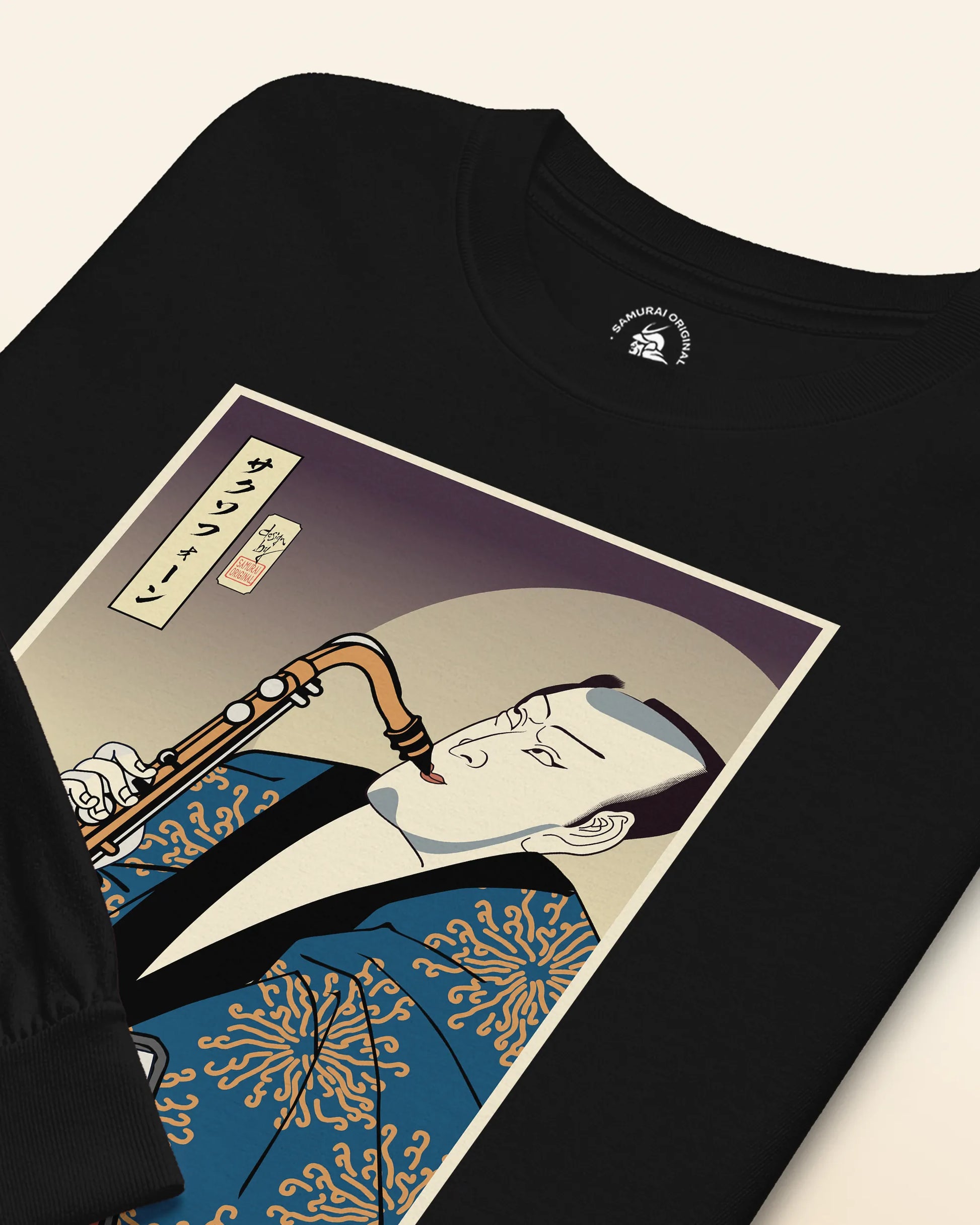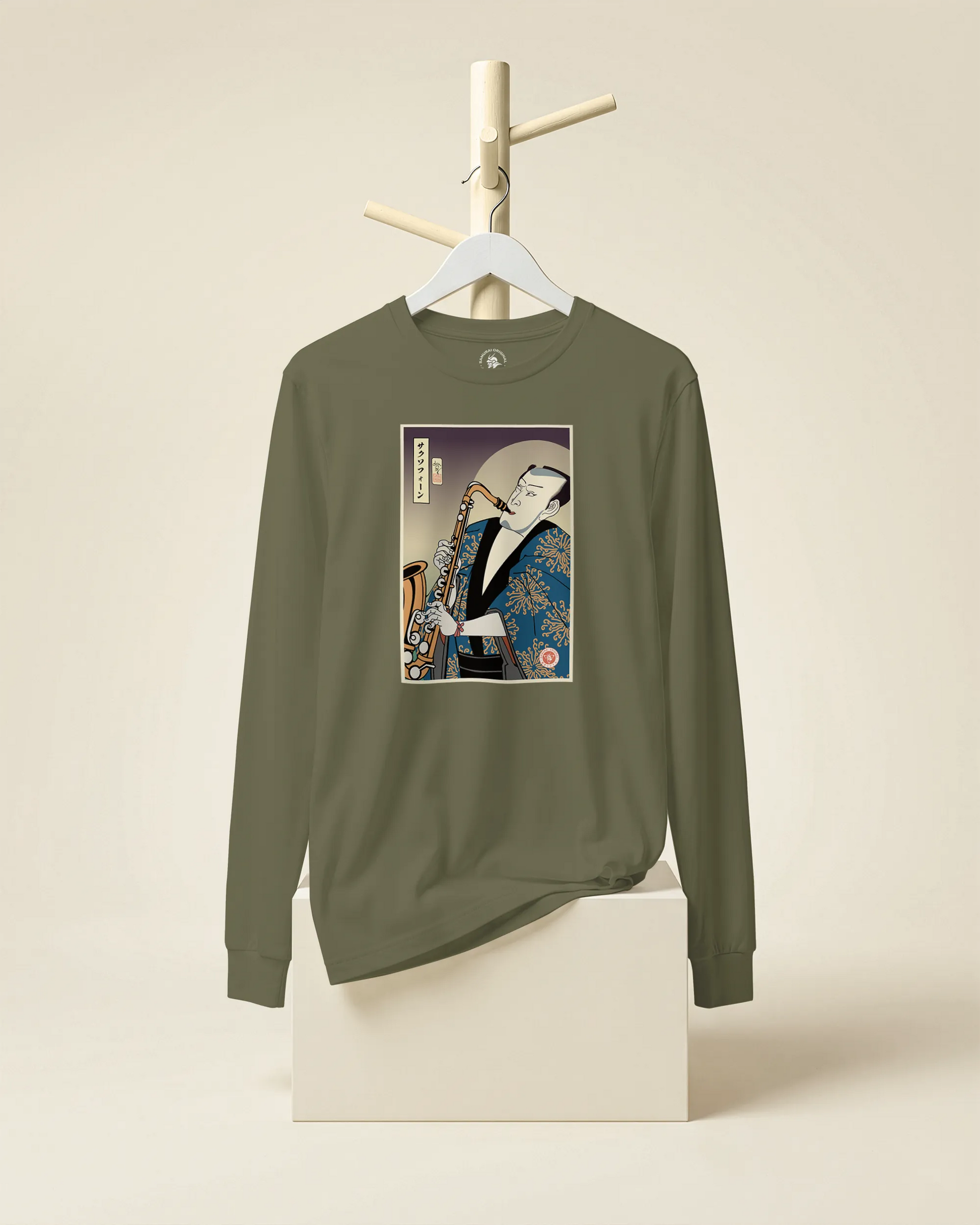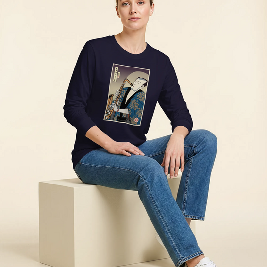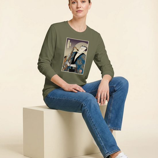 Samurai Saxophone Music Ukiyo-e Unisex Long Sleeve Tee