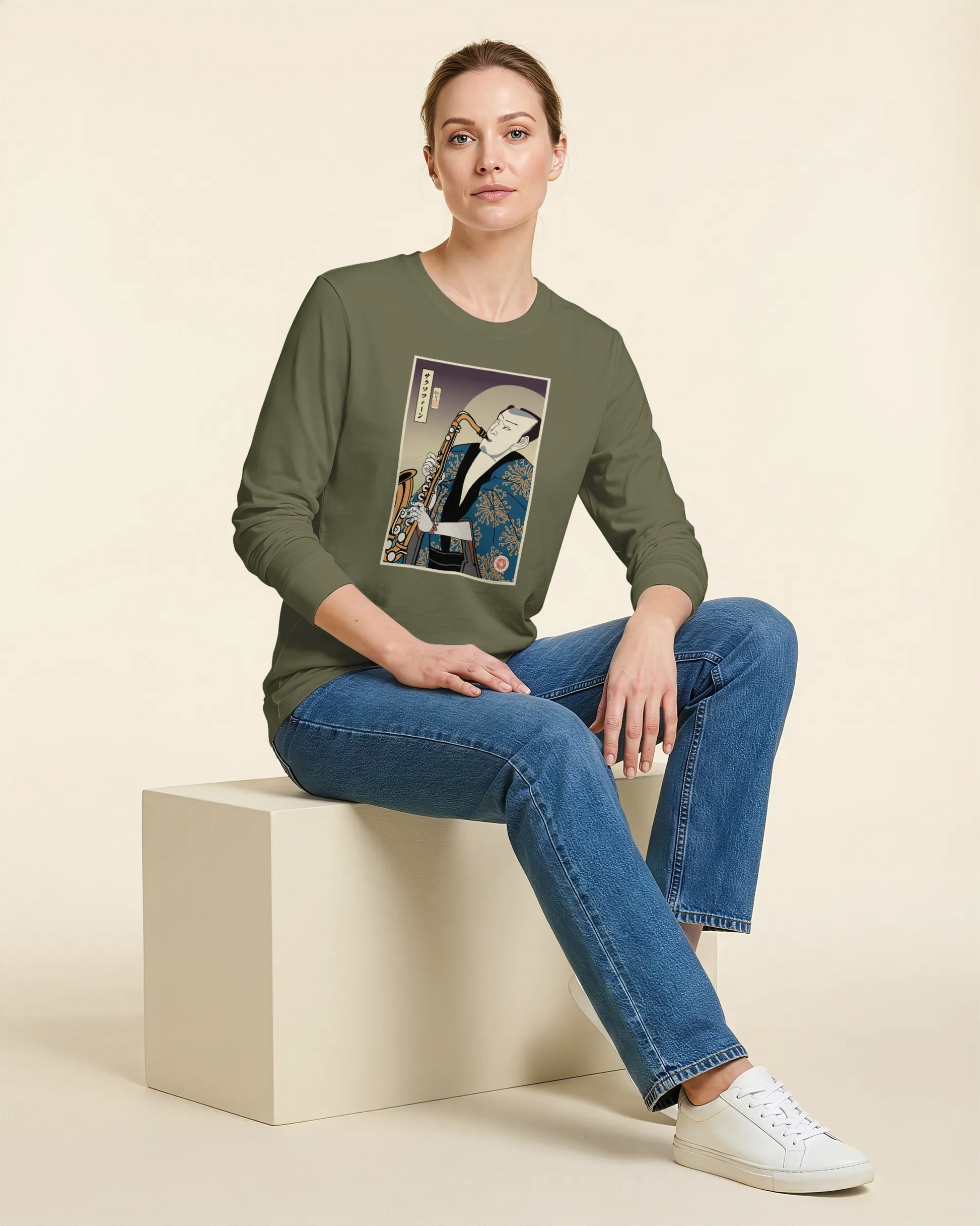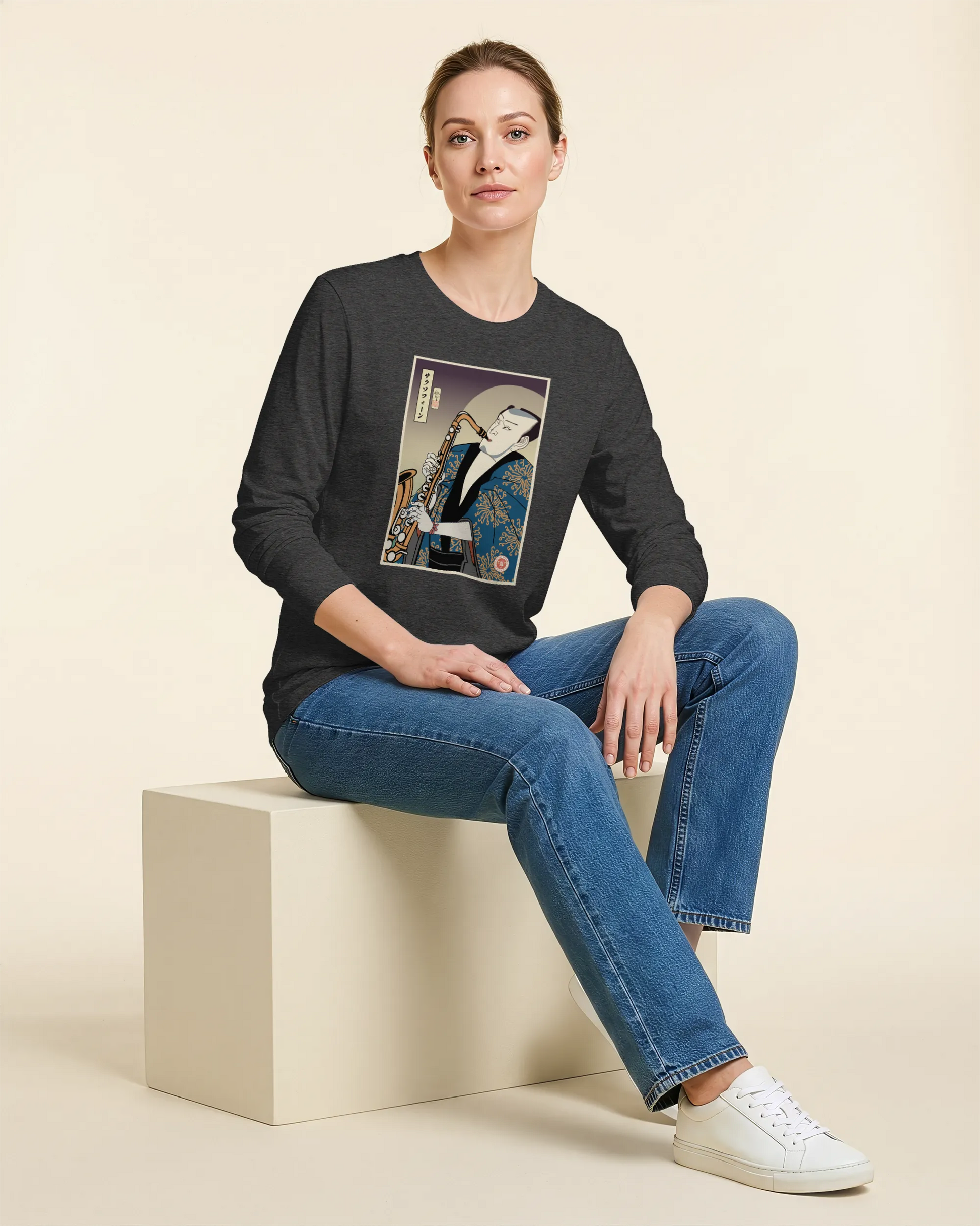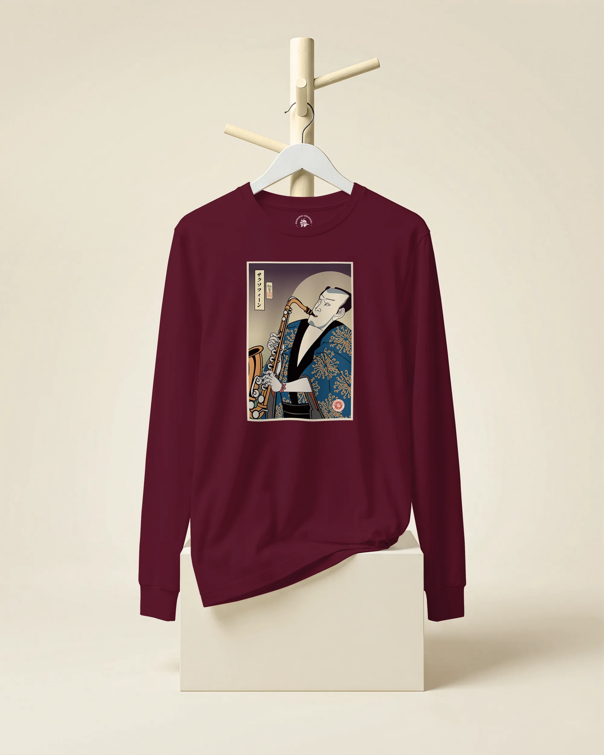 Samurai Saxophone Music Ukiyo-e Unisex Long Sleeve Tee