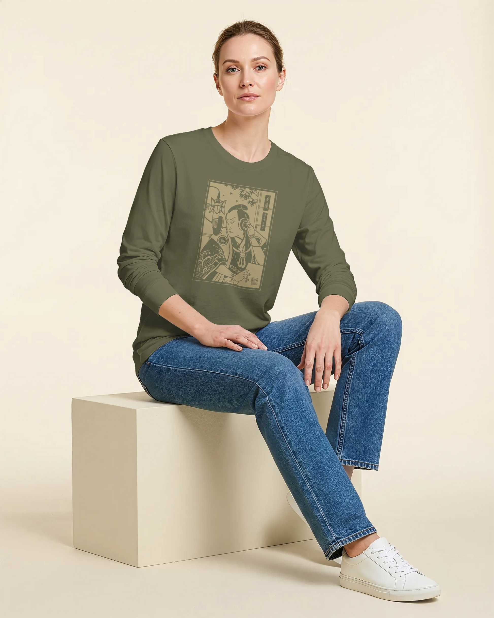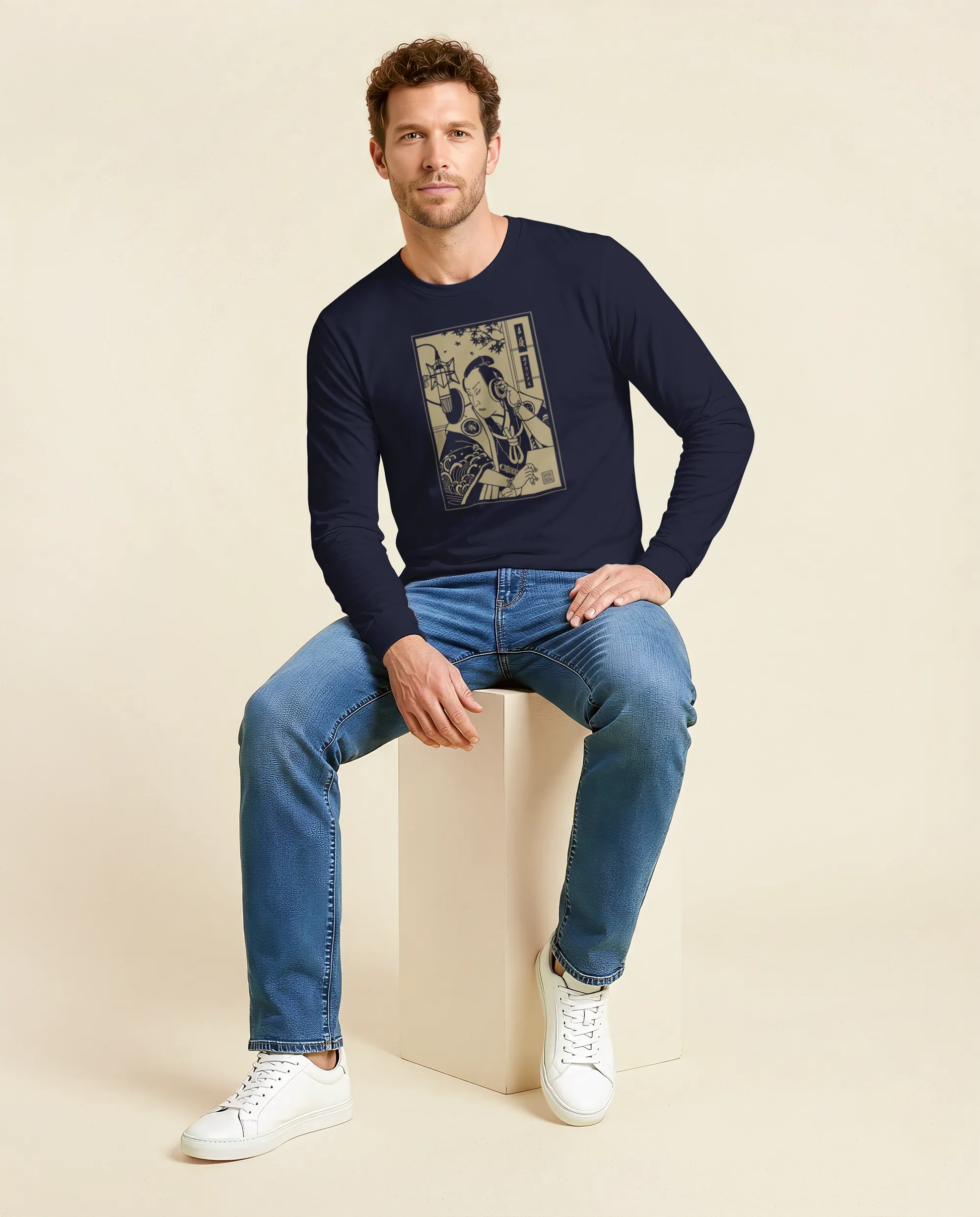 Samurai Voice Actor Japanese Ukiyo-e Unisex Long Sleeve Tee