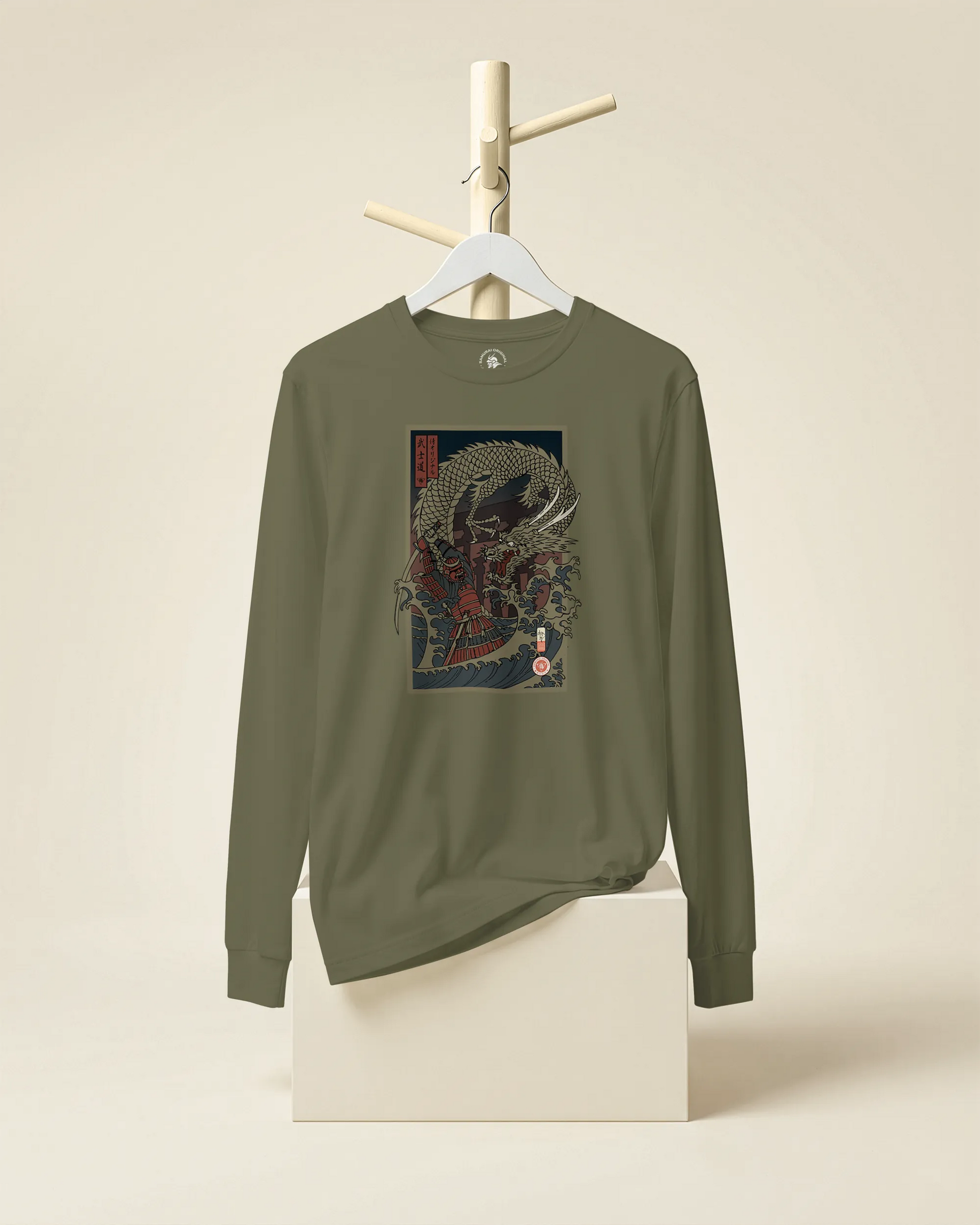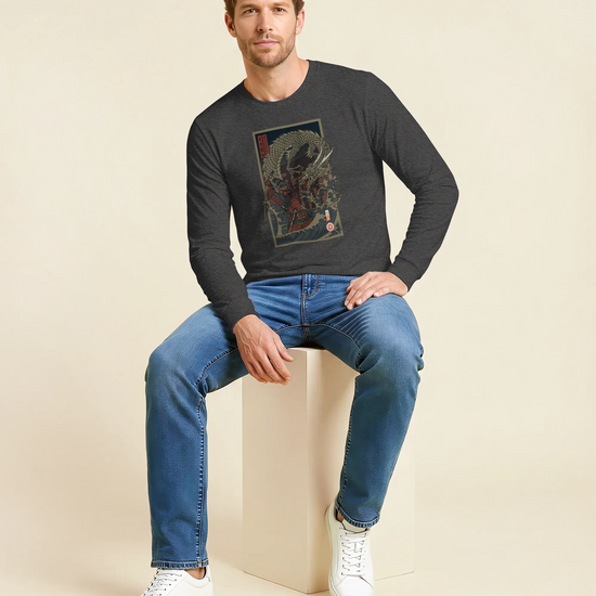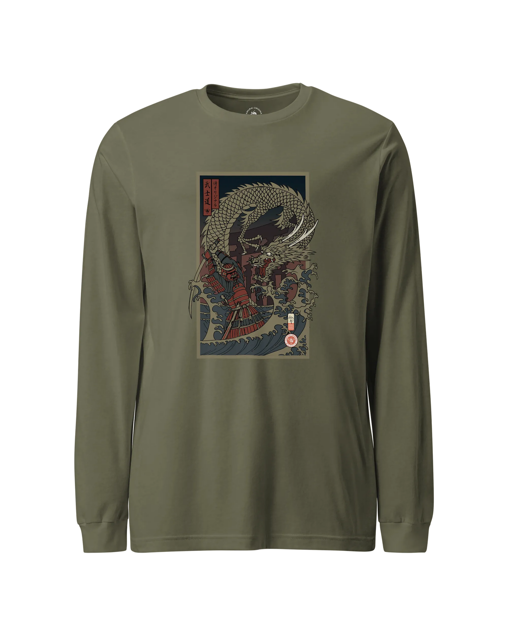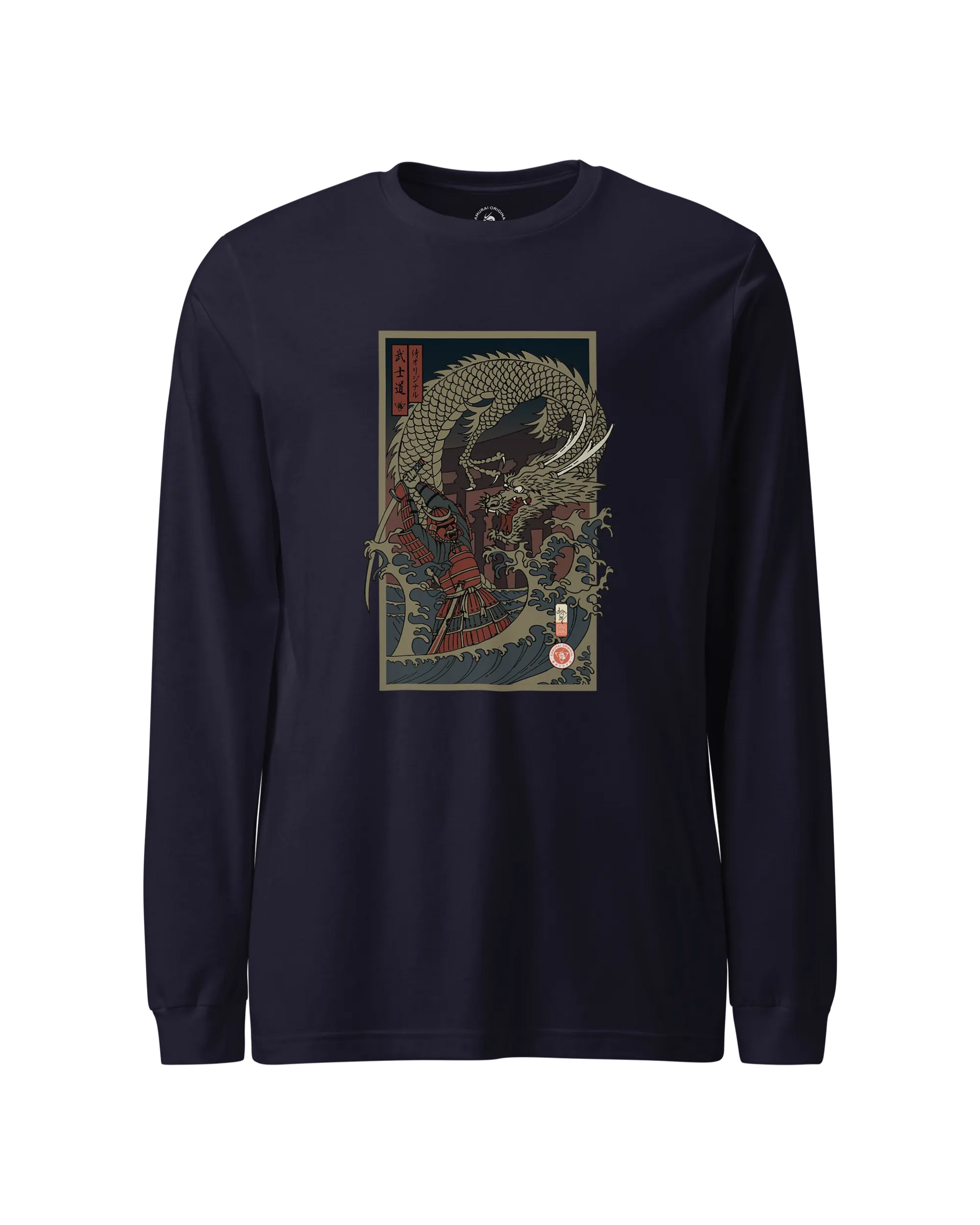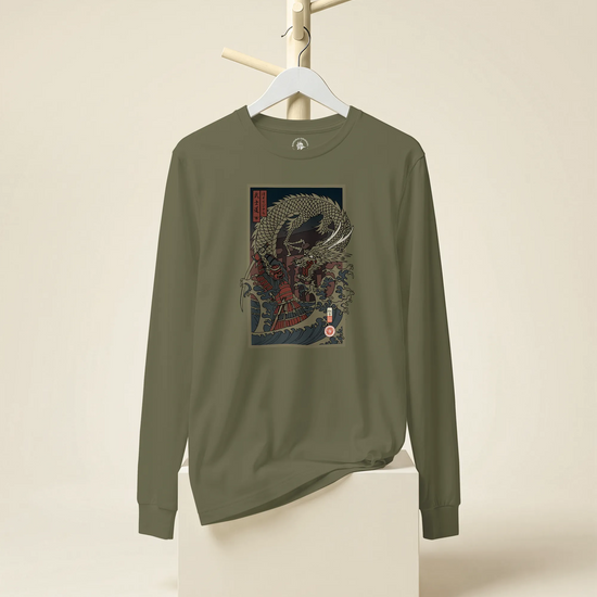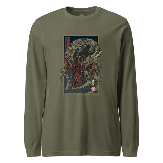 Samurai vs Dragon Warrior Ukiyo-e Unisex Long Sleeve Tee