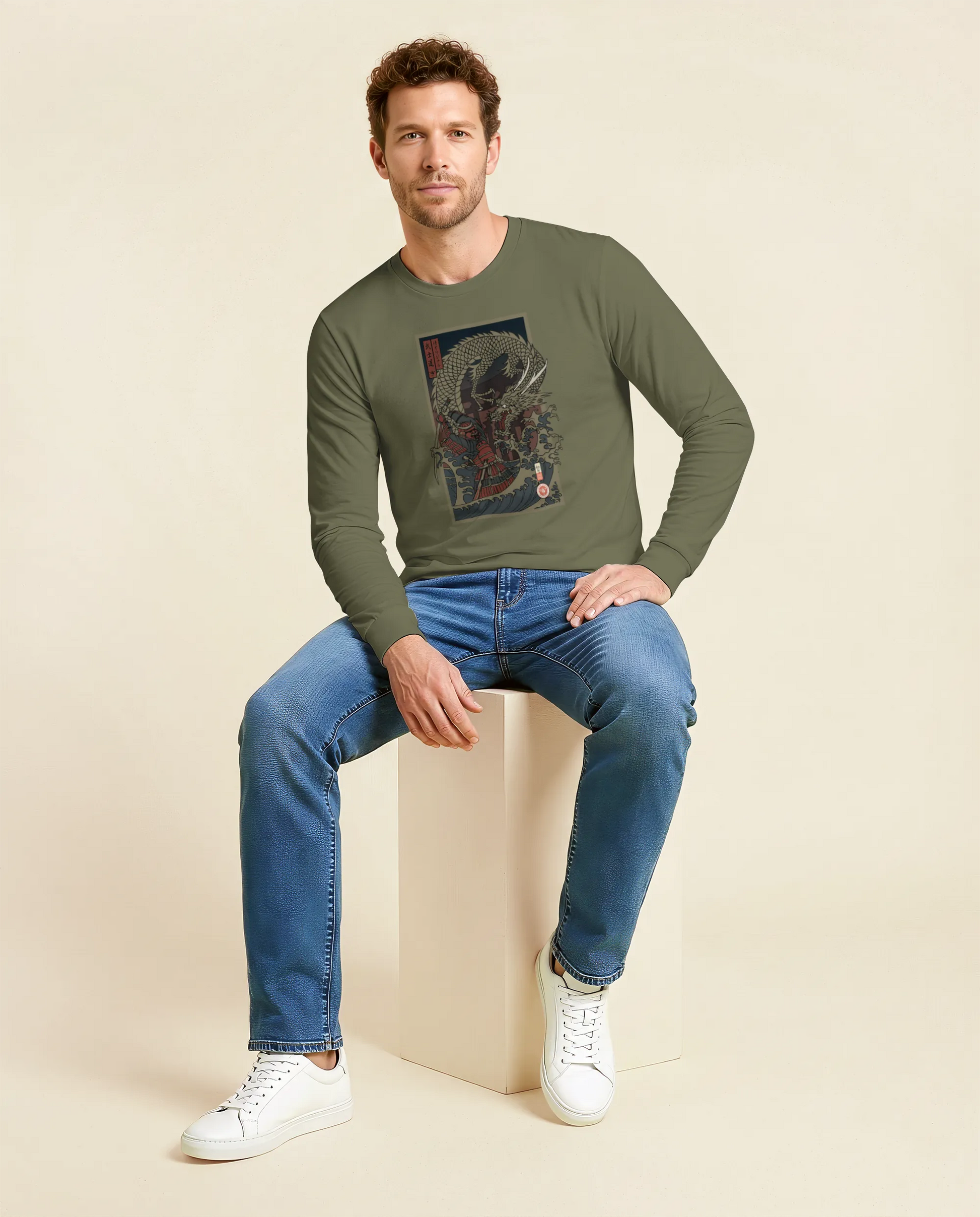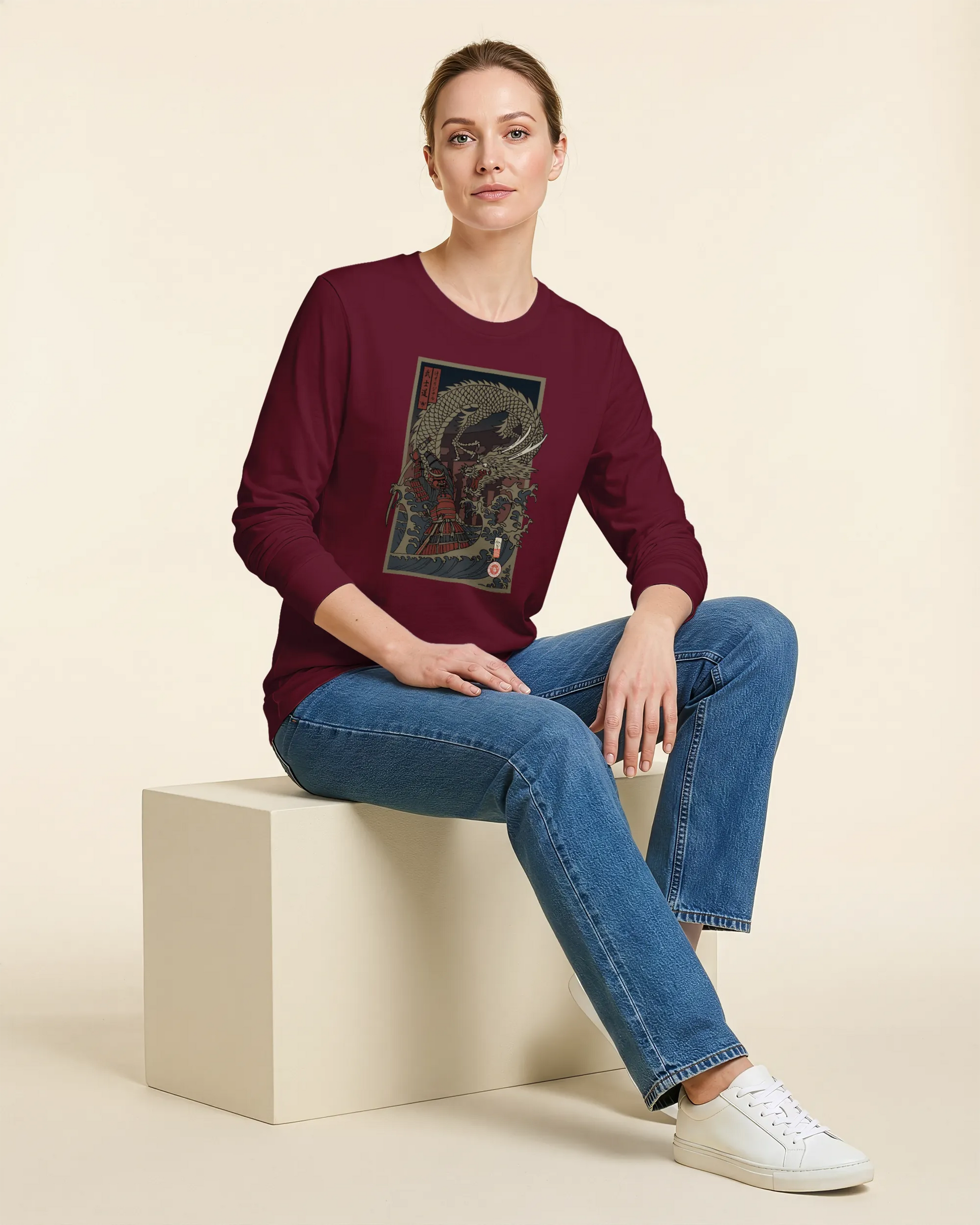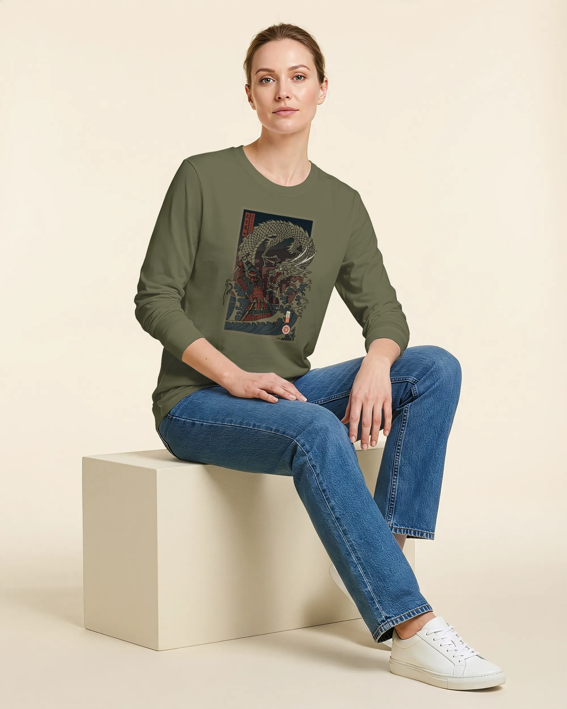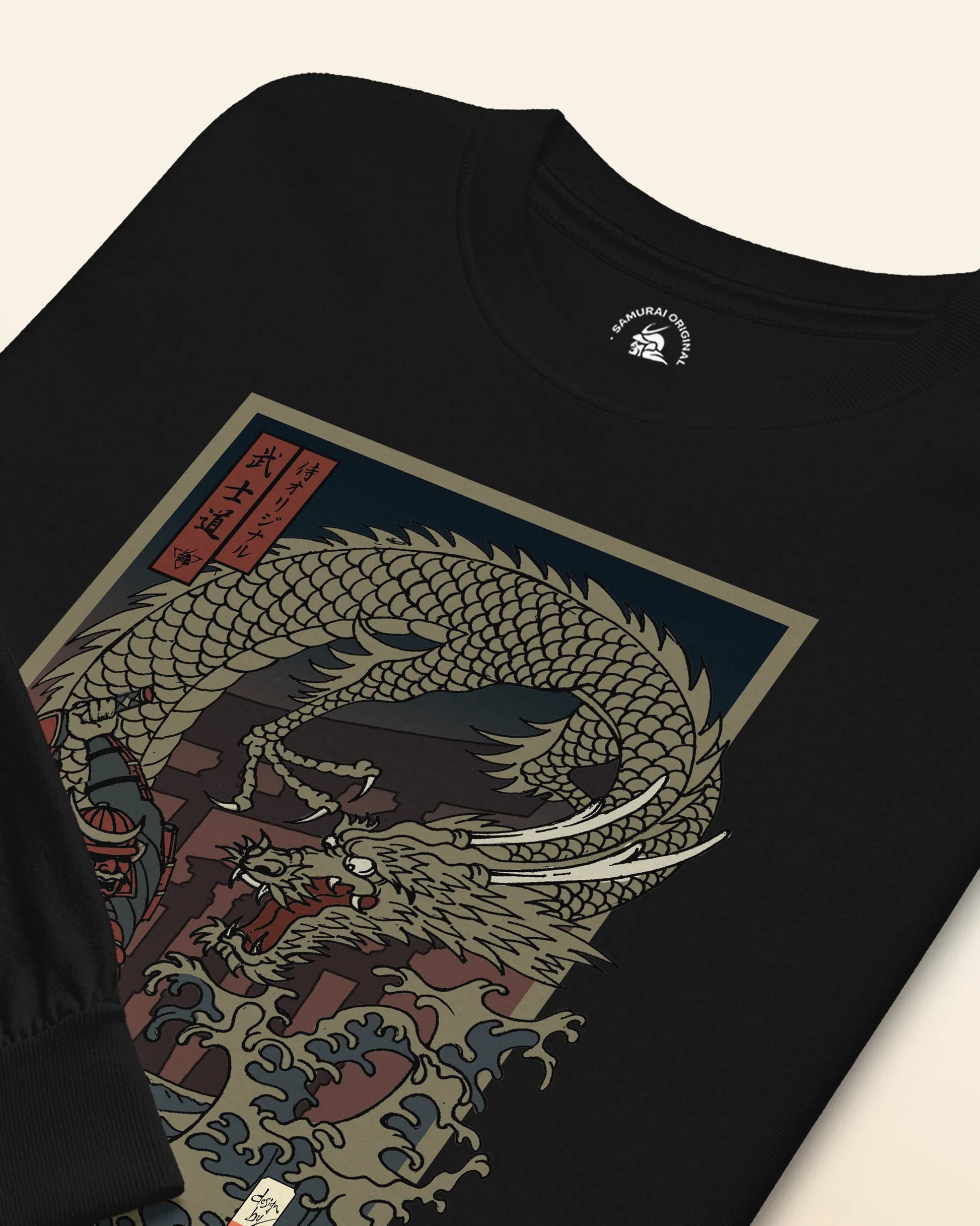 Samurai vs Dragon Warrior Ukiyo-e Unisex Long Sleeve Tee