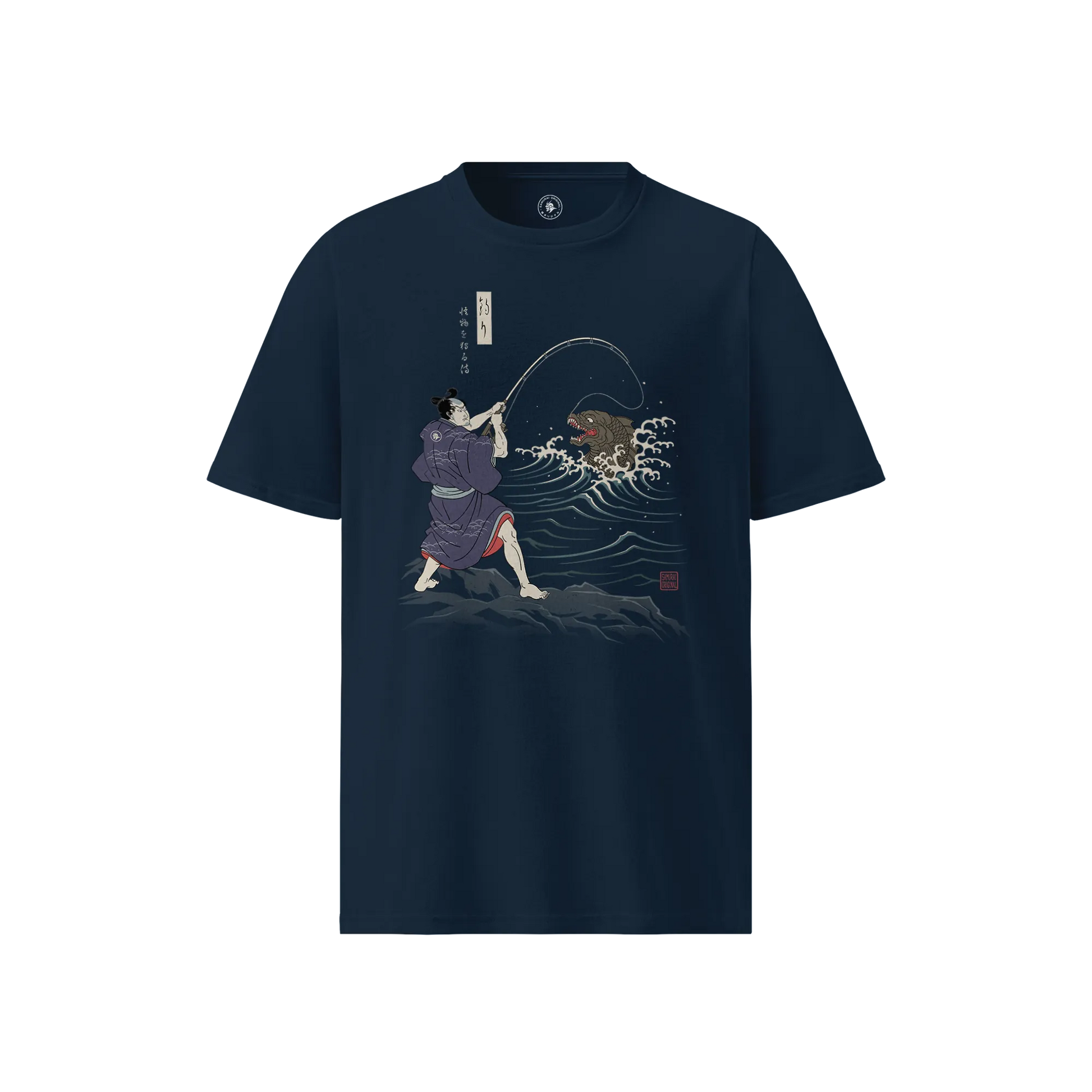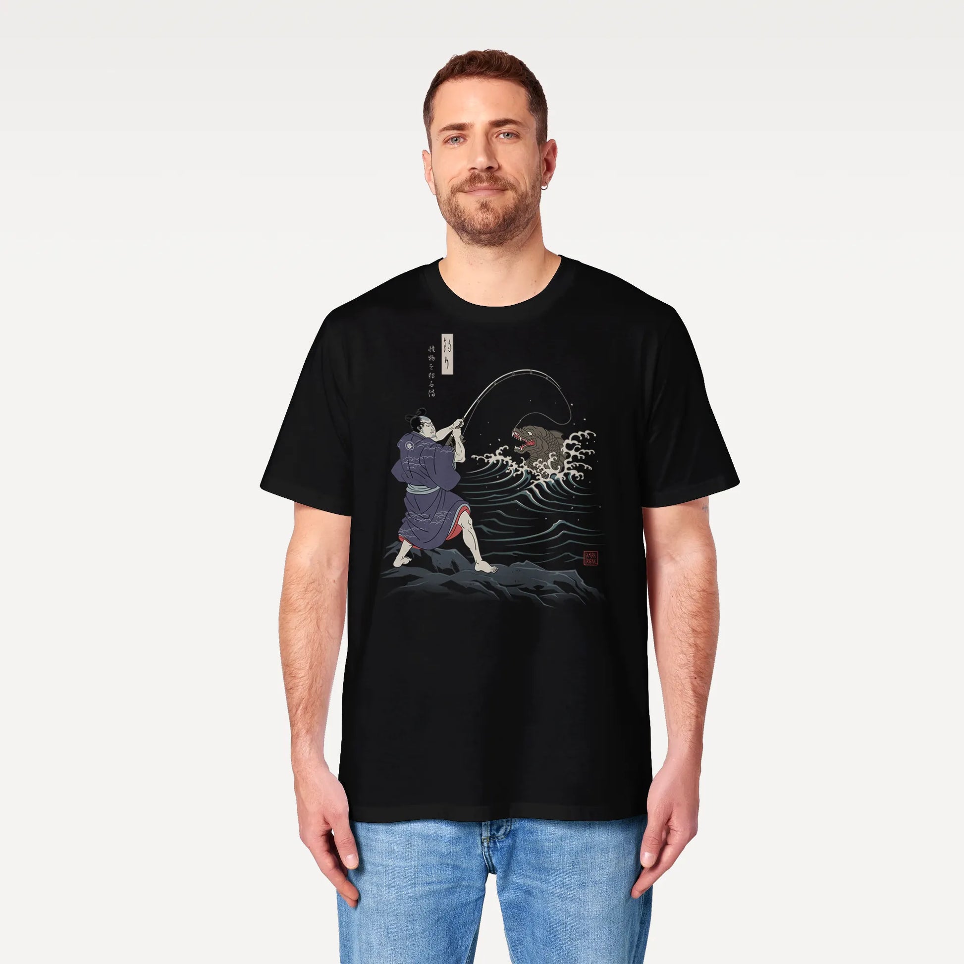 Samurai vs Sea Monste Japanese Ukiyo-e Unisex Organic T-shirt