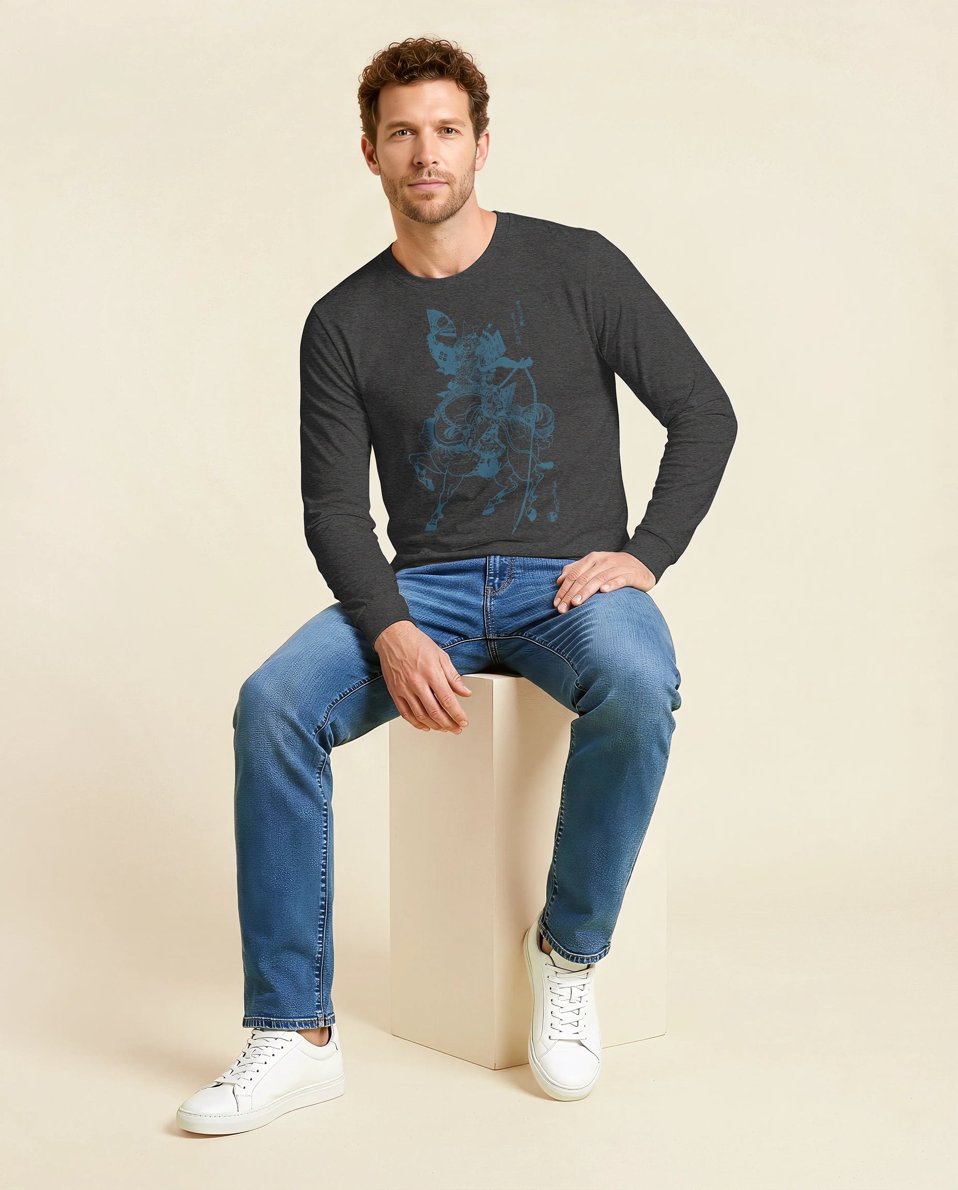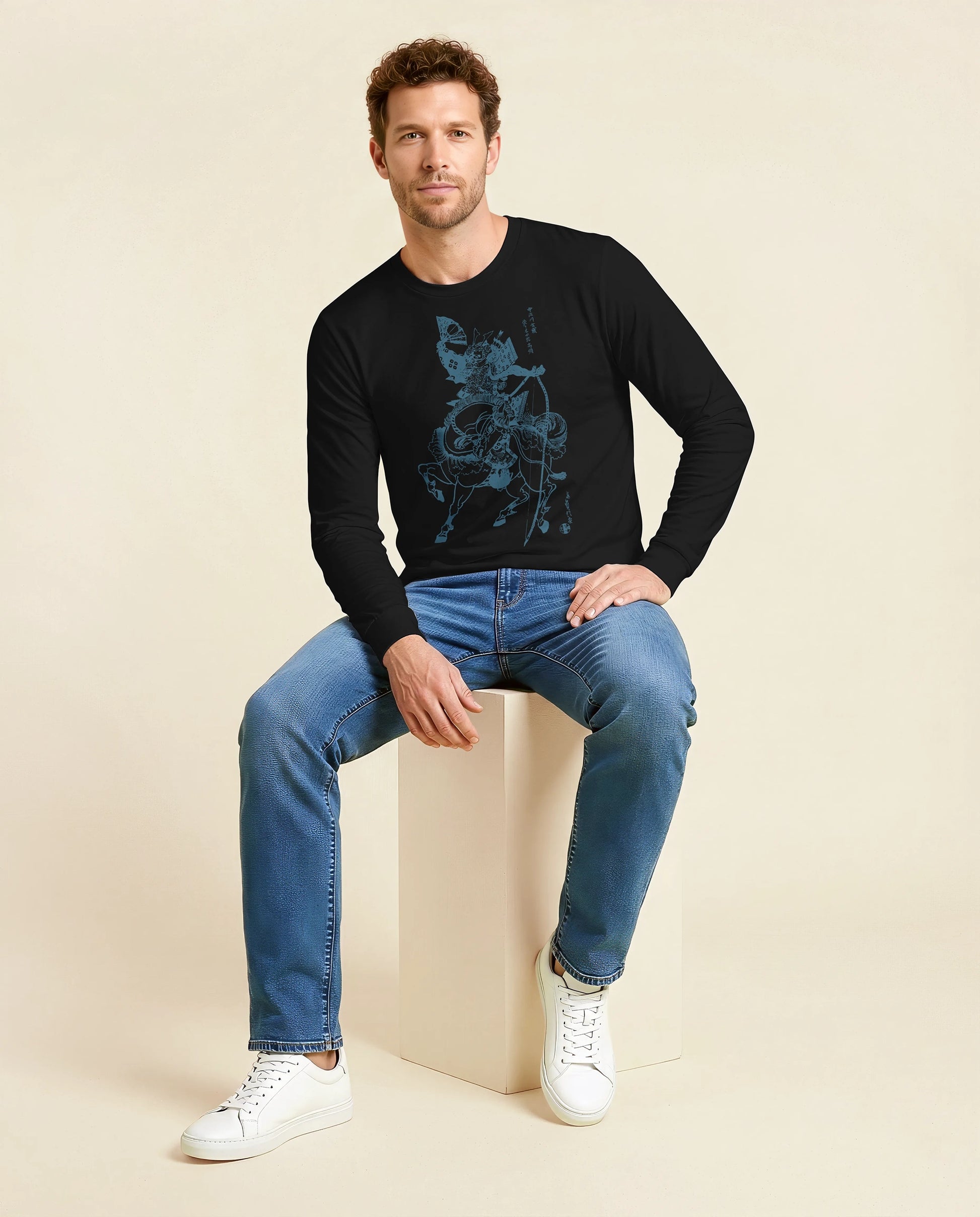 Sasaki Takatsuna Samurai vs Horse Ukiyo-e Unisex Long Sleeve Tee